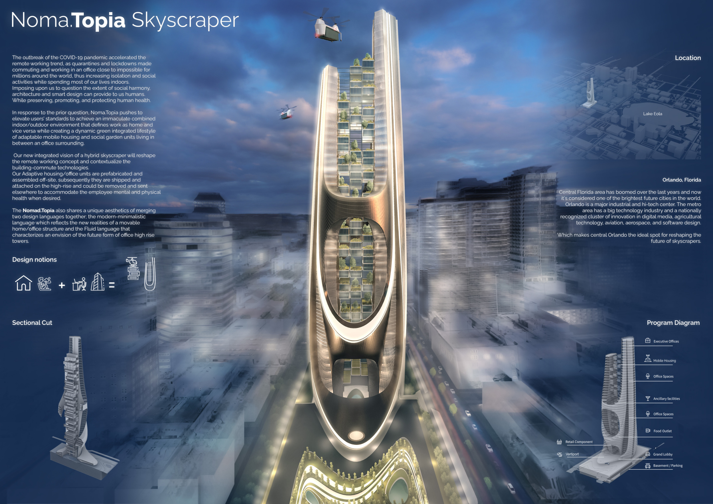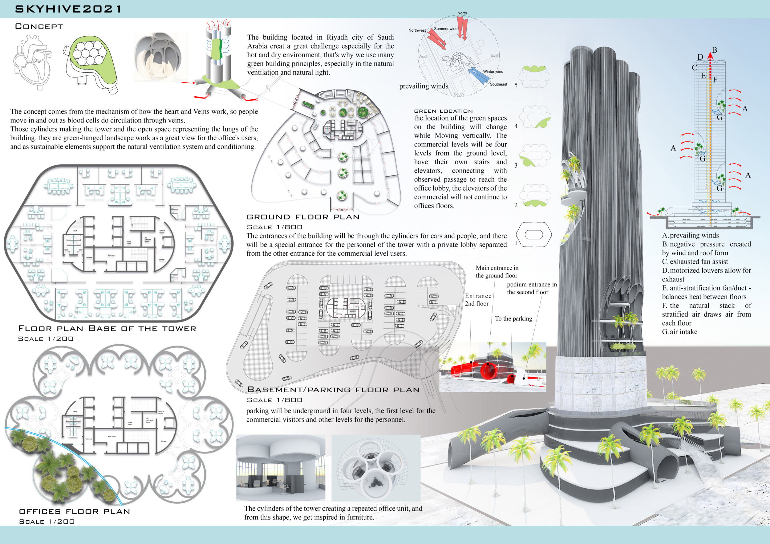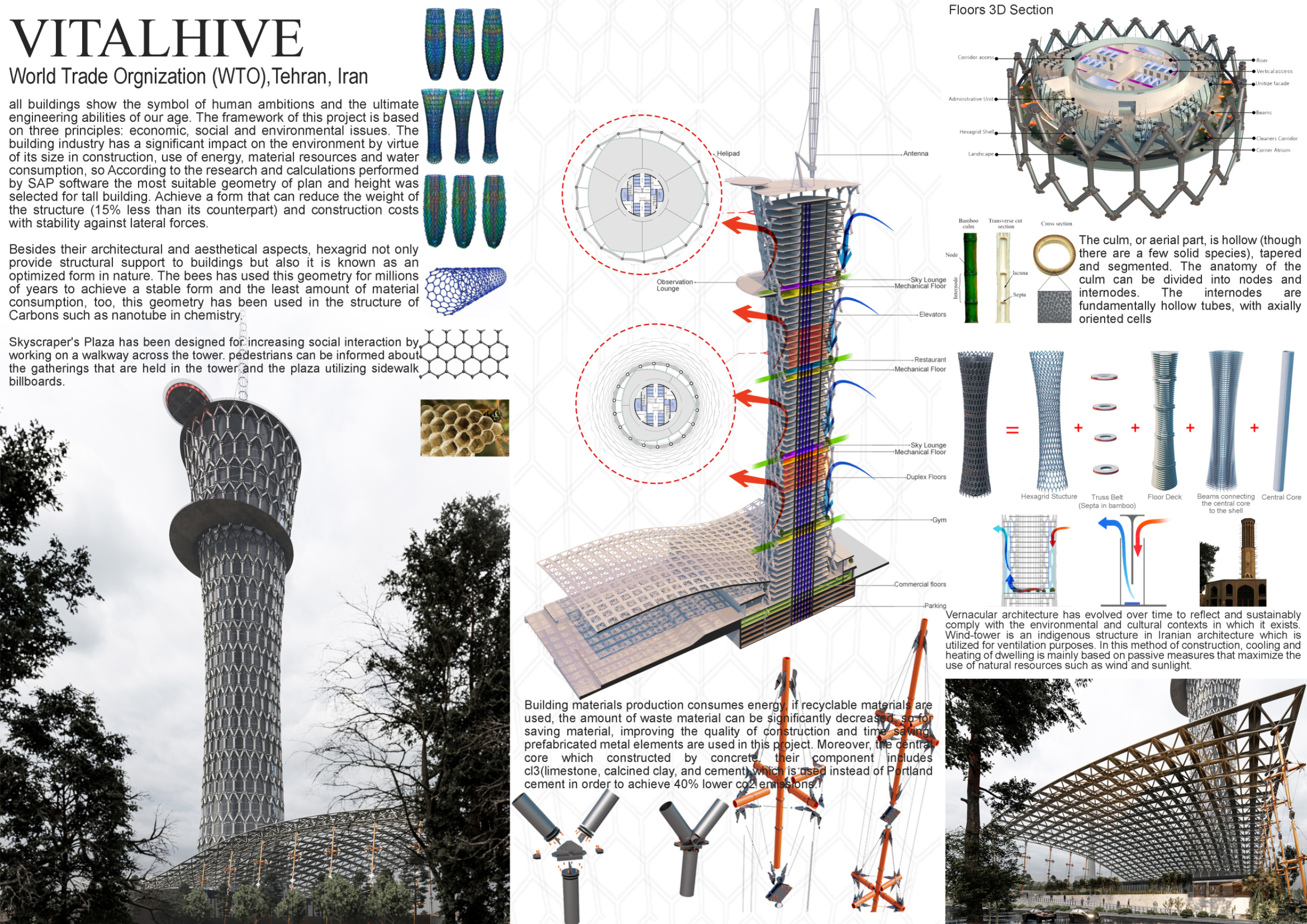 The SKYHIVE 2021 Skyscraper Challenge was the fourth annual architecture competition by Bee Breeders, seeking innovative concepts for an iconic high-rise tower. Designs that propose unique structural systems, innovative ideas related to sustainability, new facade typologies, forms, and building functions were encouraged.