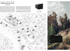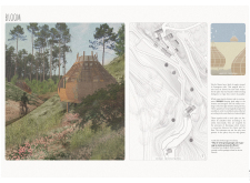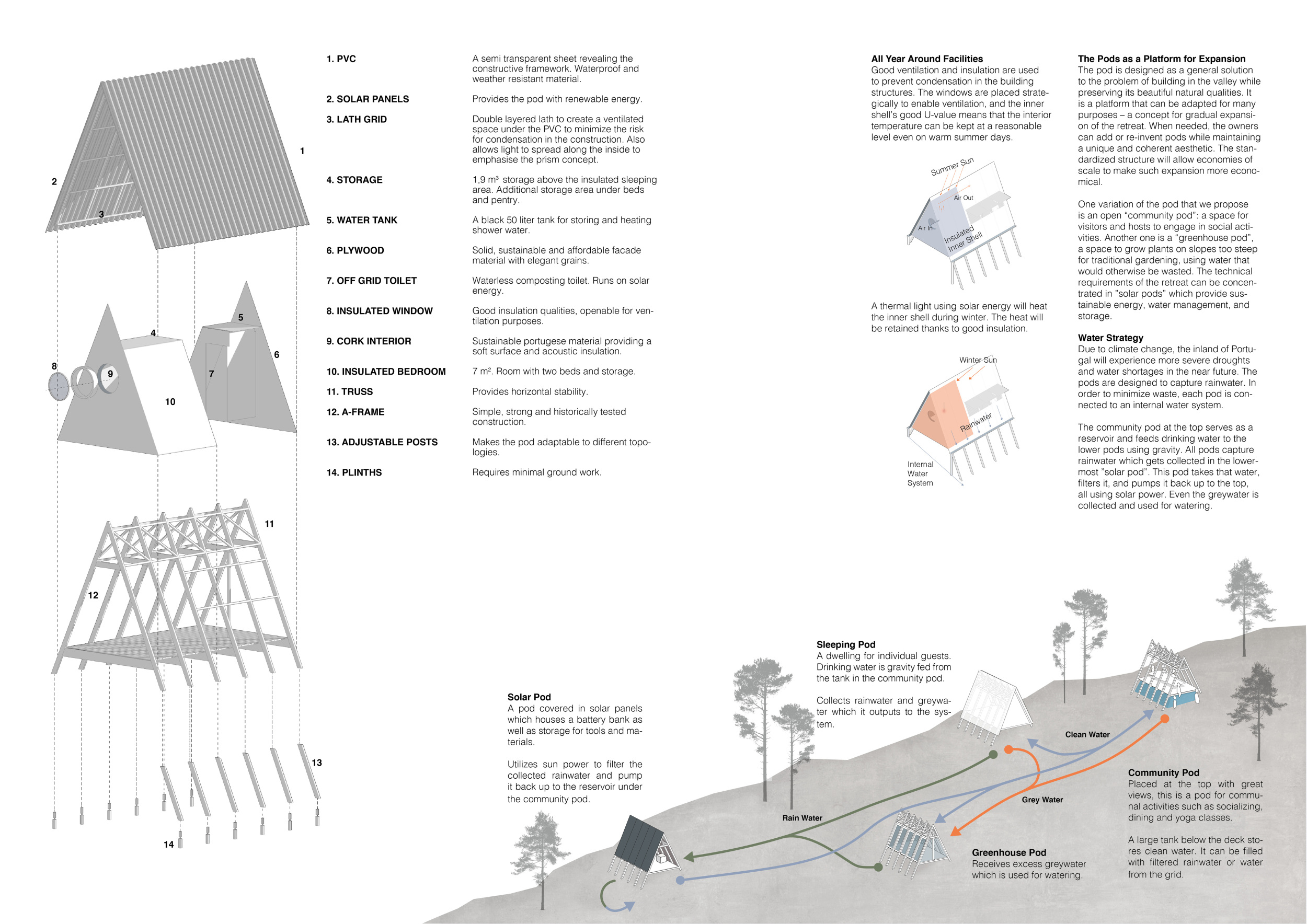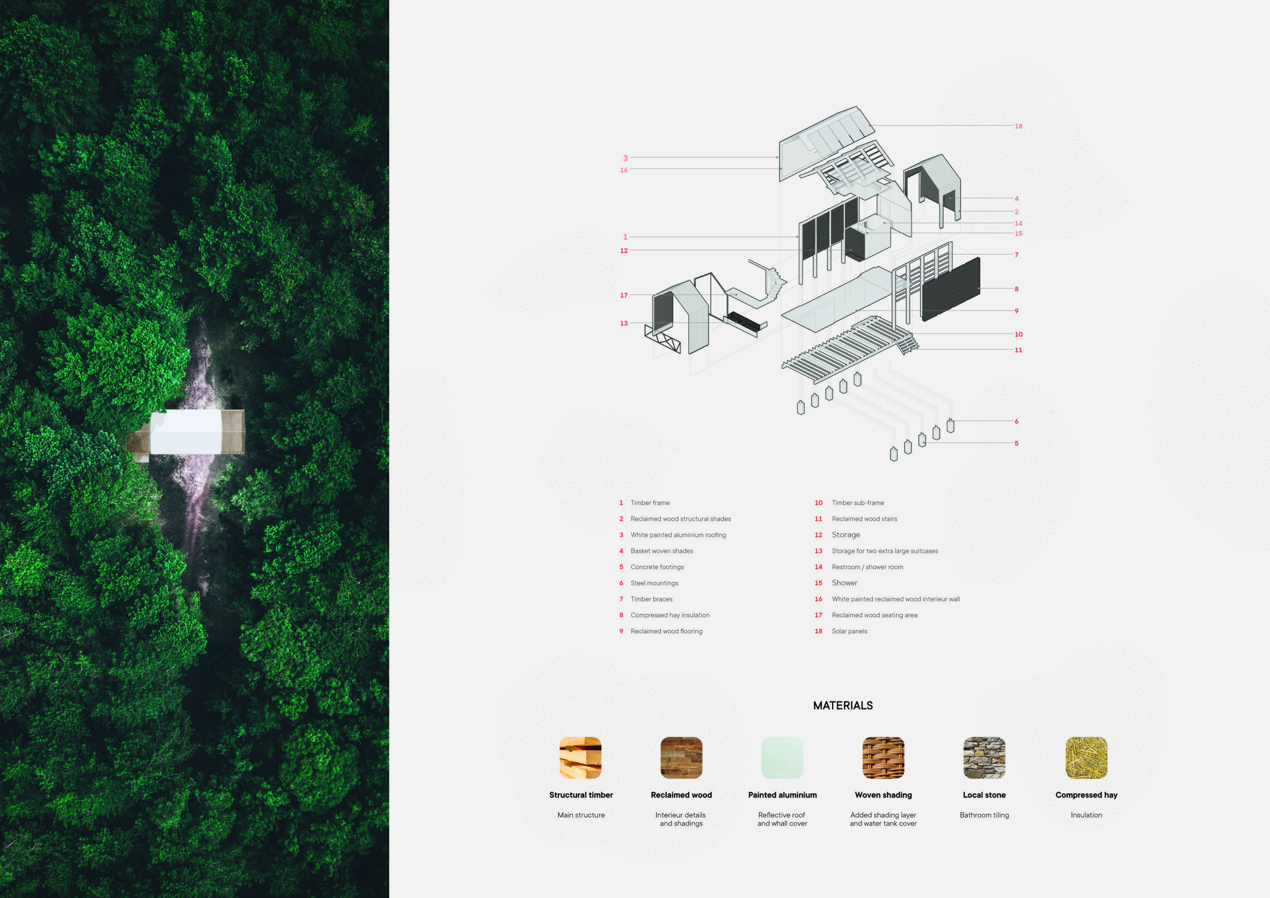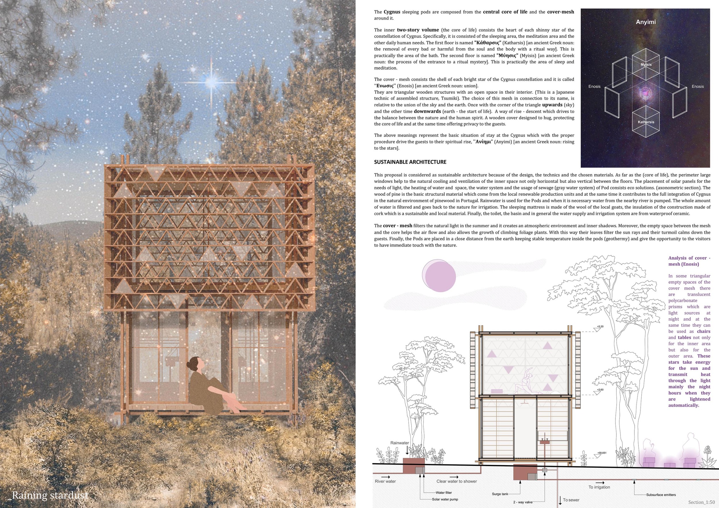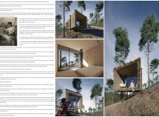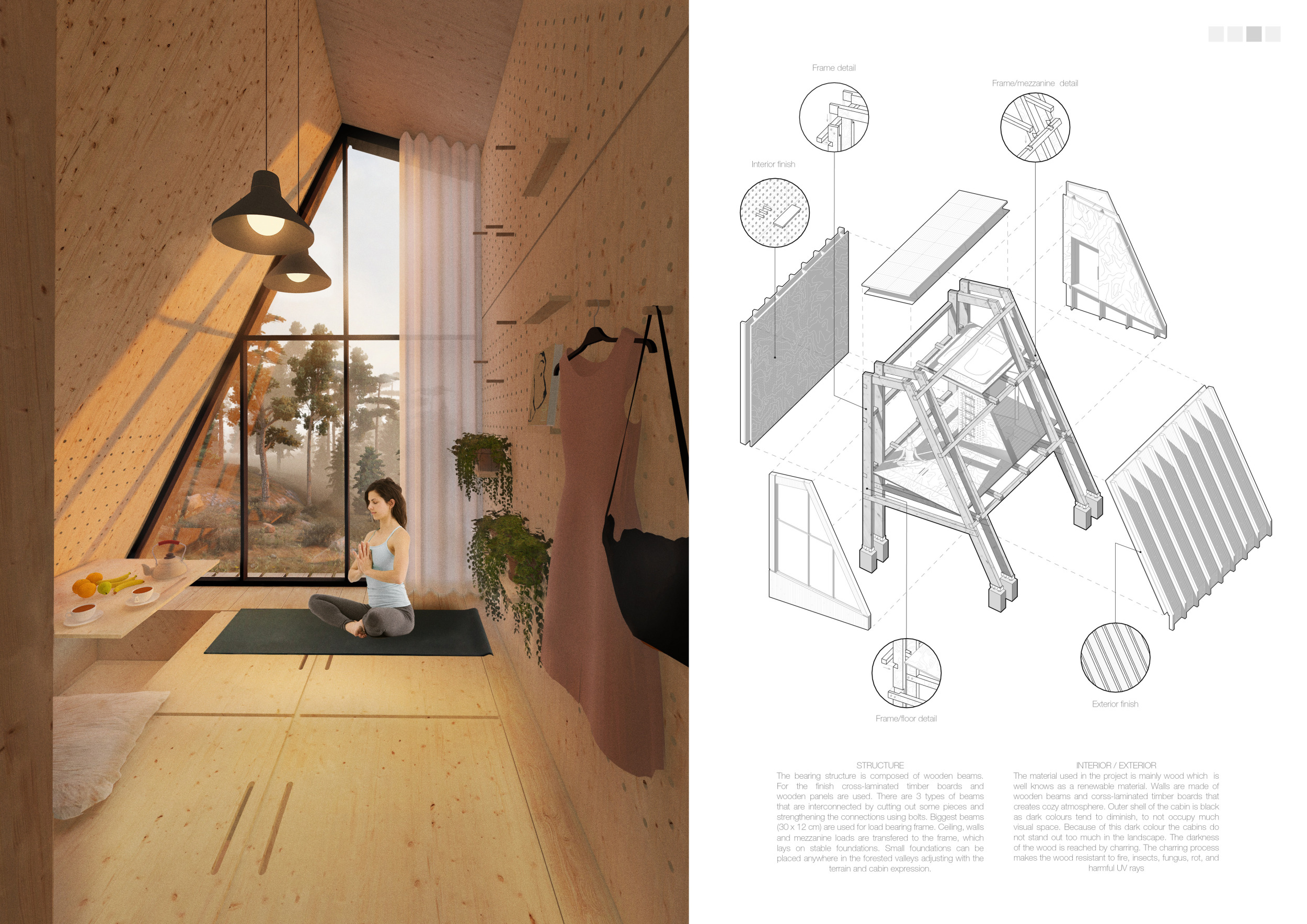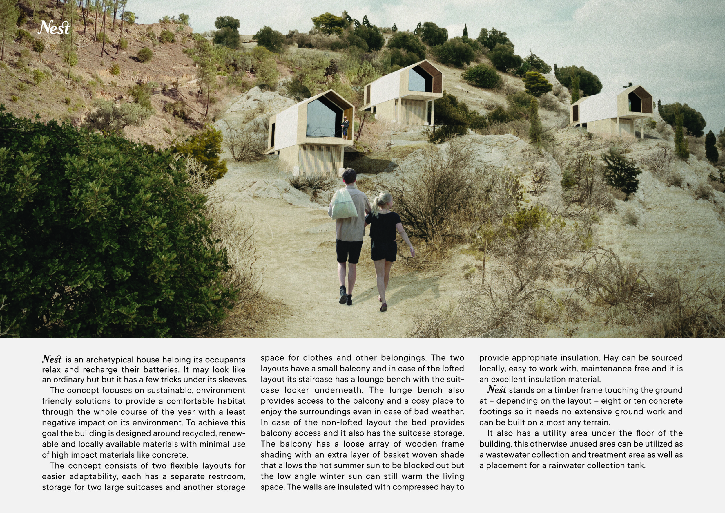 The current infrastructure of the retreat consists of four once-abandoned stone farmhouse cottages that are now repurposed. For the Sleeping Pods on a Cliff competition, participants were tasked with proposing design solutions for simple sleeping pods that could accommodate a couple of guests at a time. Each sleeping pod was to include a basic sleeping zone as well as washing facilities.