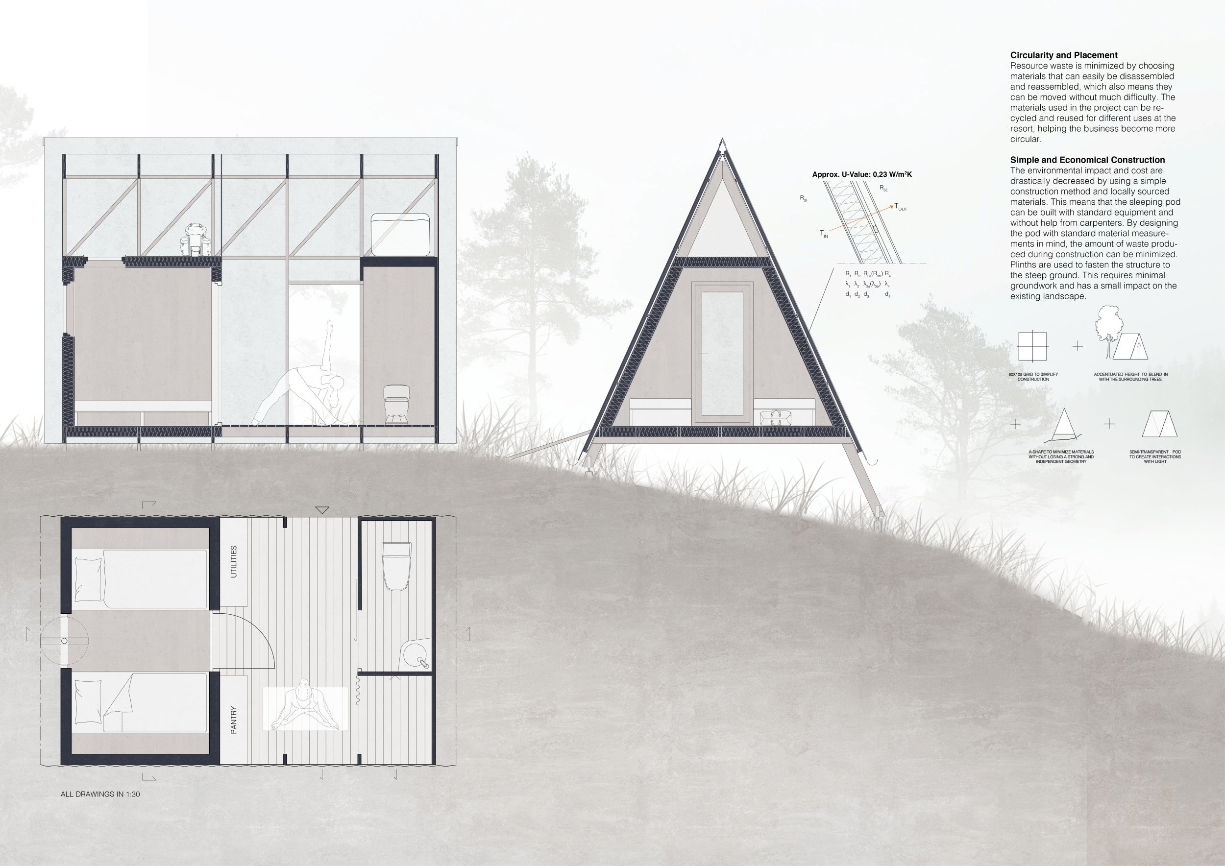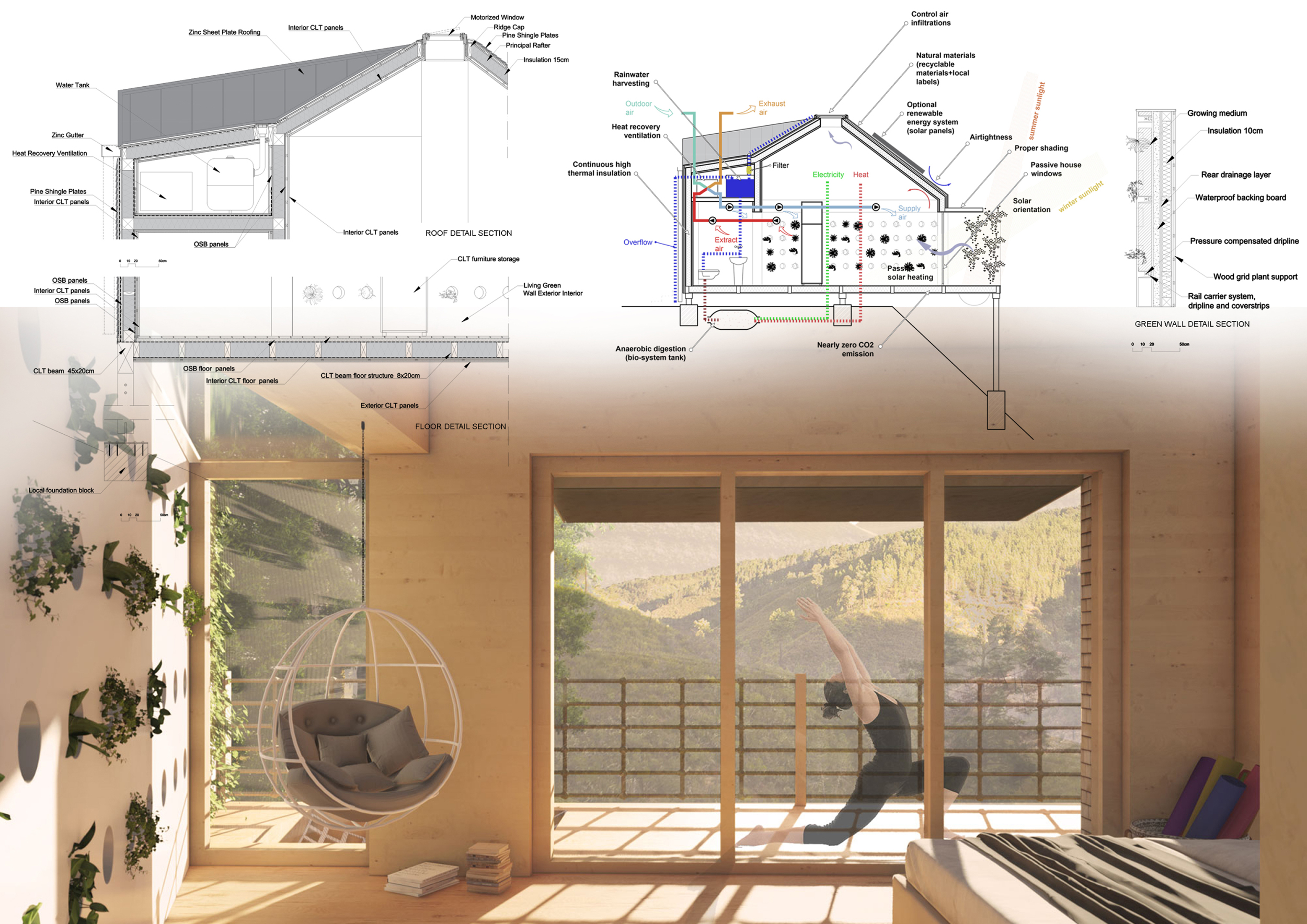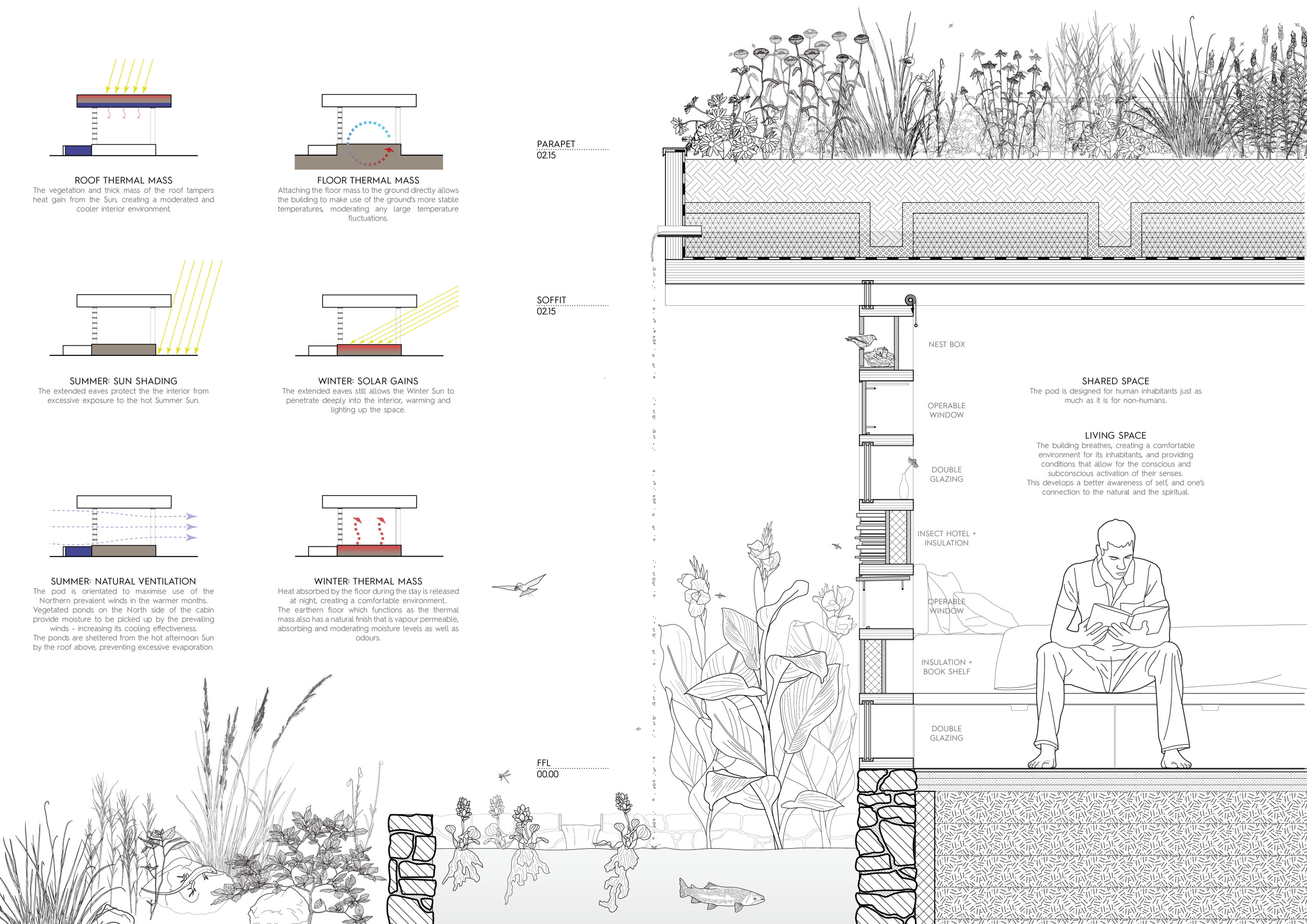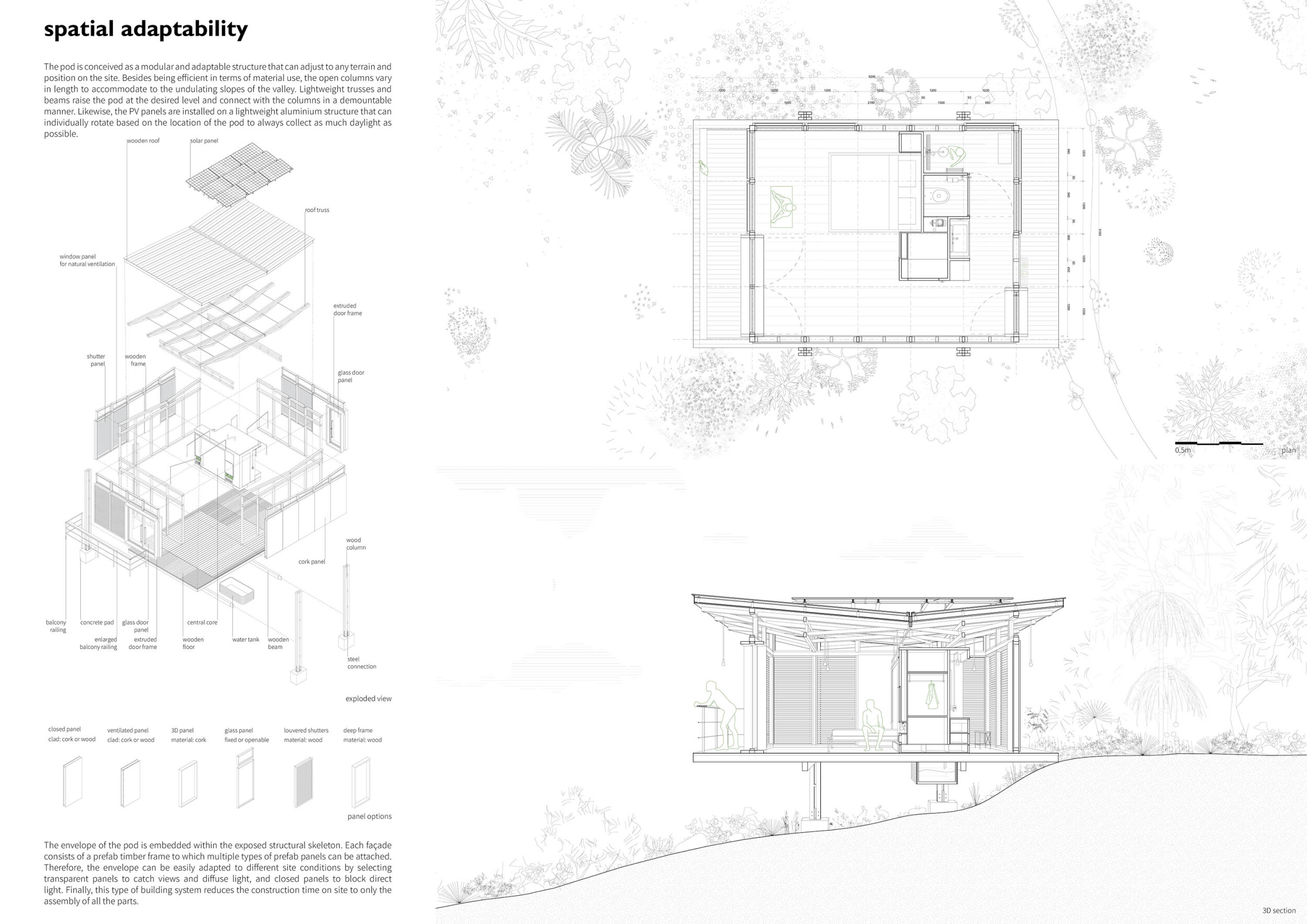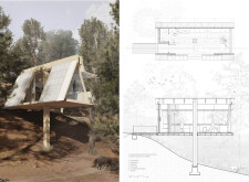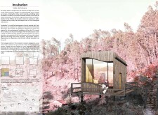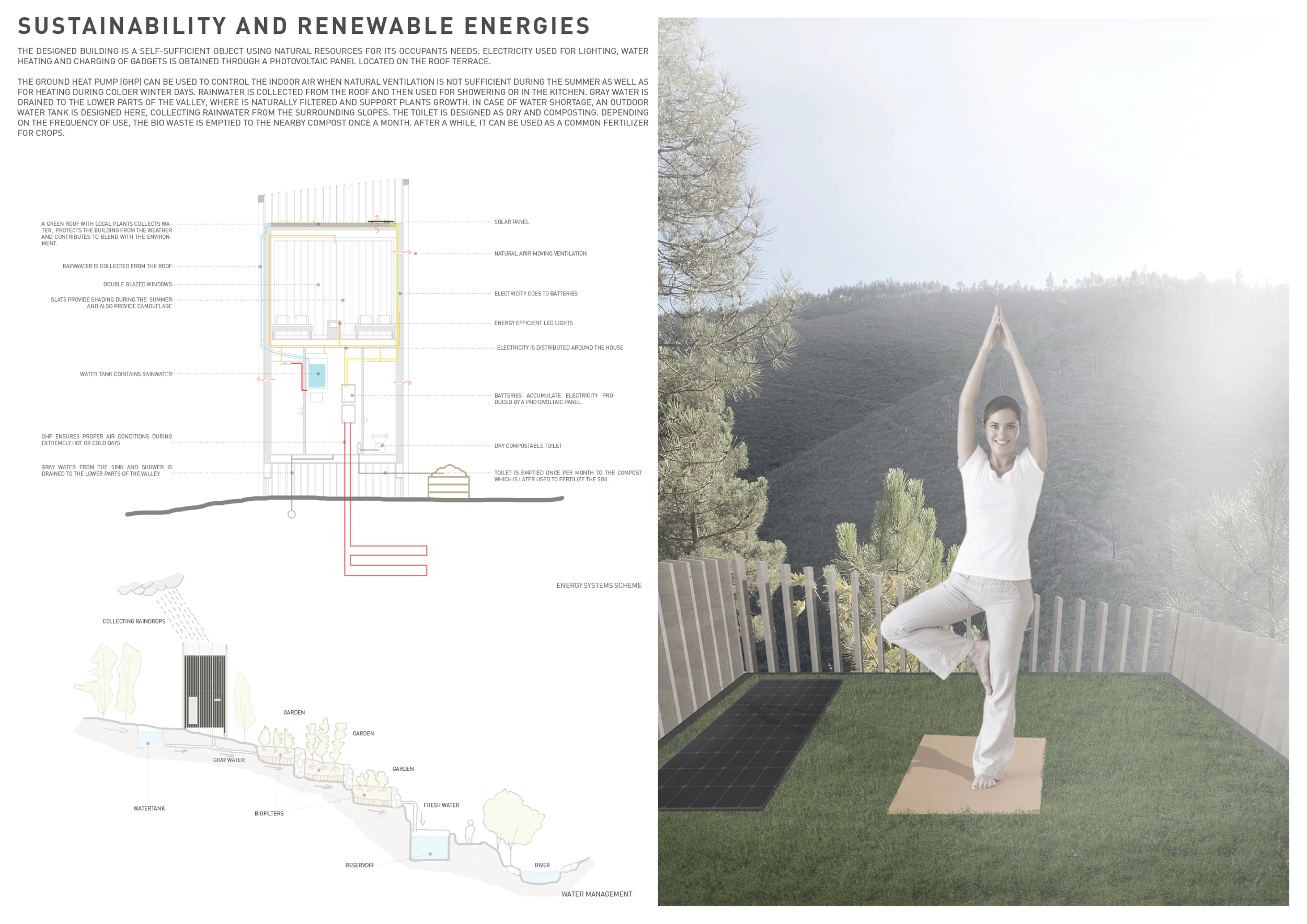 The current infrastructure of the retreat consists of four once-abandoned stone farmhouse cottages that are now repurposed. For the Sleeping Pods on a Cliff competition, participants were tasked with proposing design solutions for simple sleeping pods that could accommodate a couple of guests at a time. Each sleeping pod was to include a basic sleeping zone as well as washing facilities.