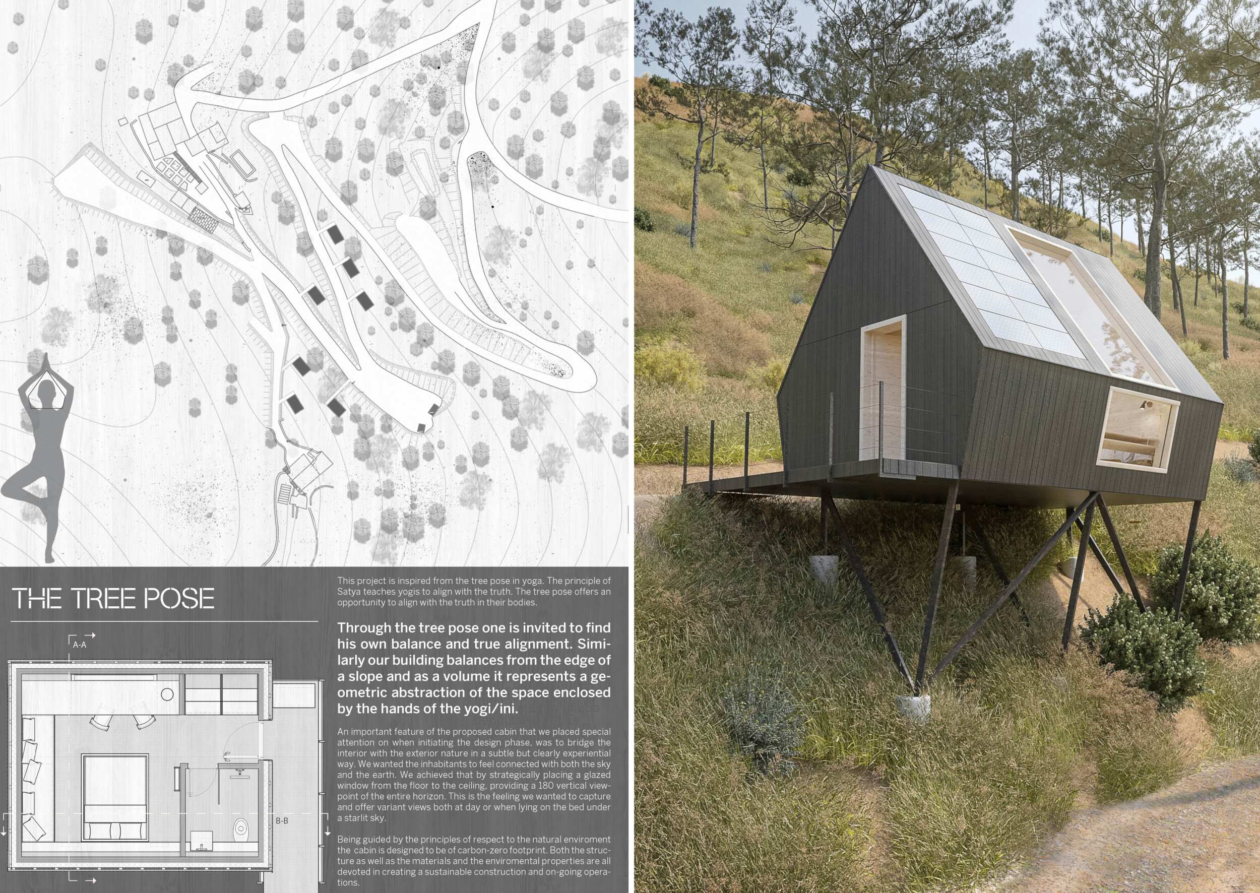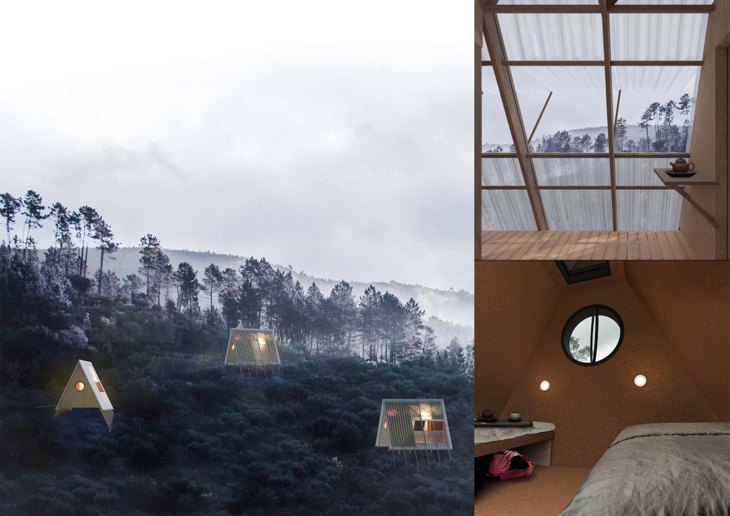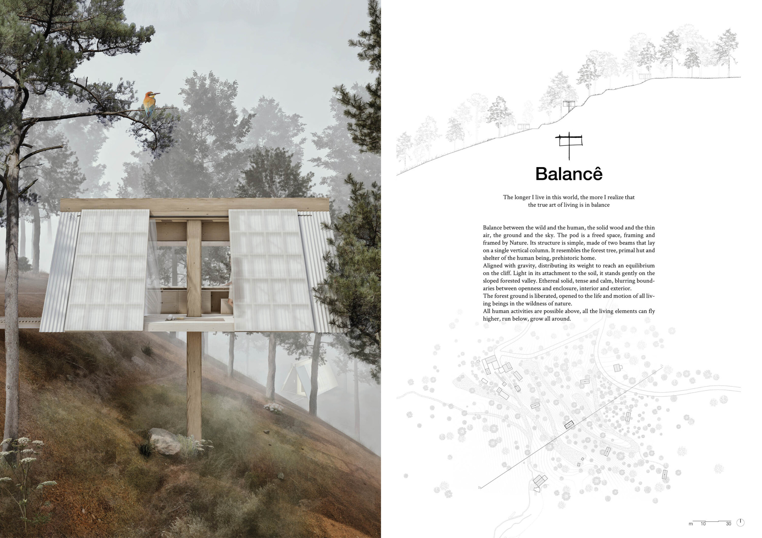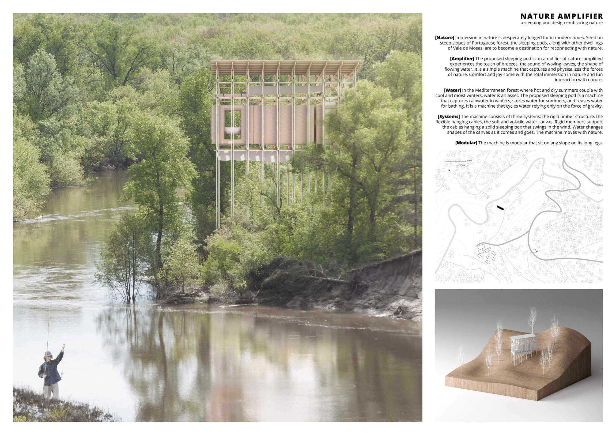 The Sleeping Pods on a Cliff competition is the third collaboration between Bee Breeders and the Vale de Moses Yoga Retreat – a site located in the remote pine and eucalyptus forests of central Portugal, and a destination for hundreds of international guests each year. Like the previous competitions for the Vale de Moses Meditation Cabins and Yoga House on a Cliff, this event was a great success, drawing high-quality submissions from designers around the world.