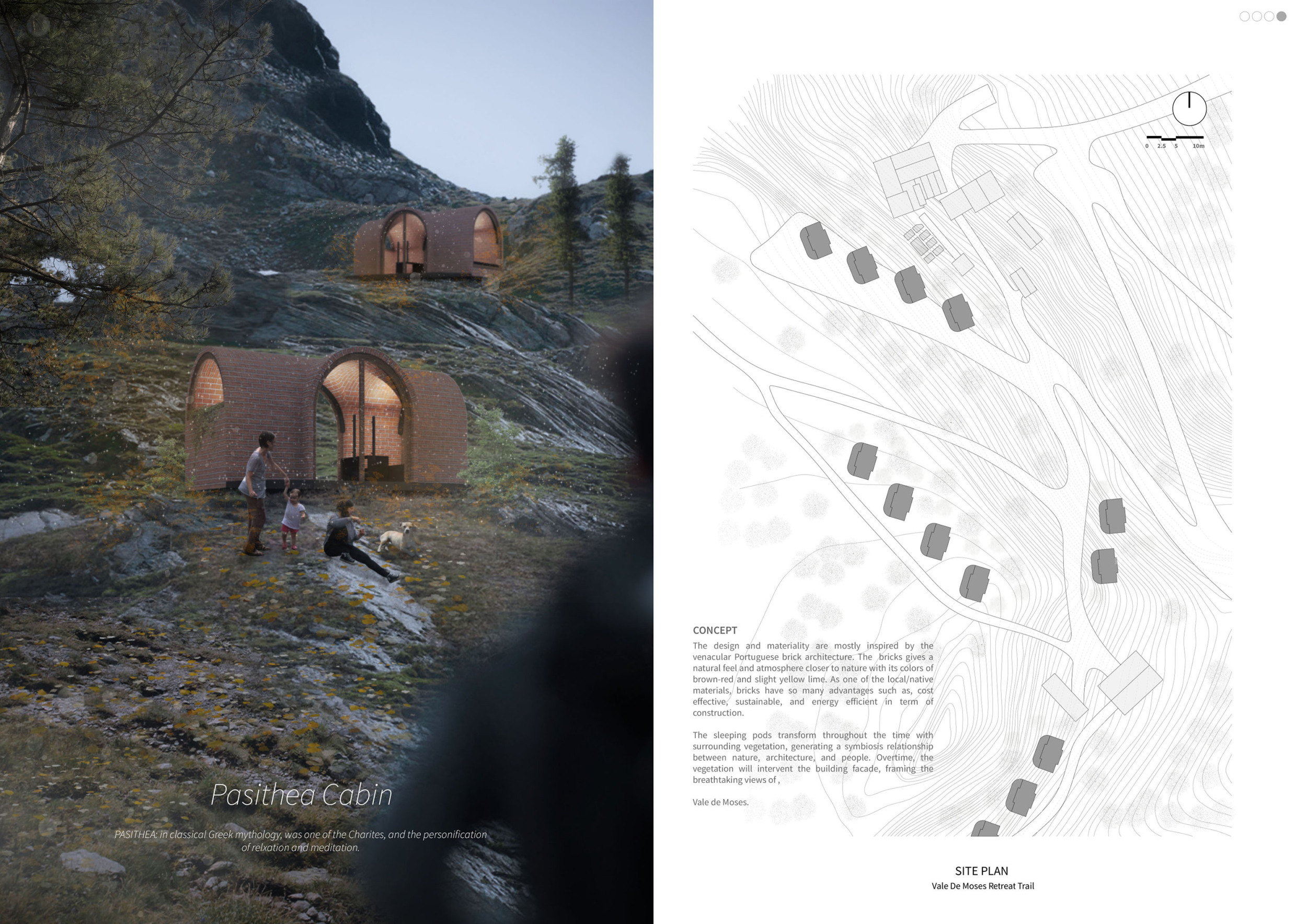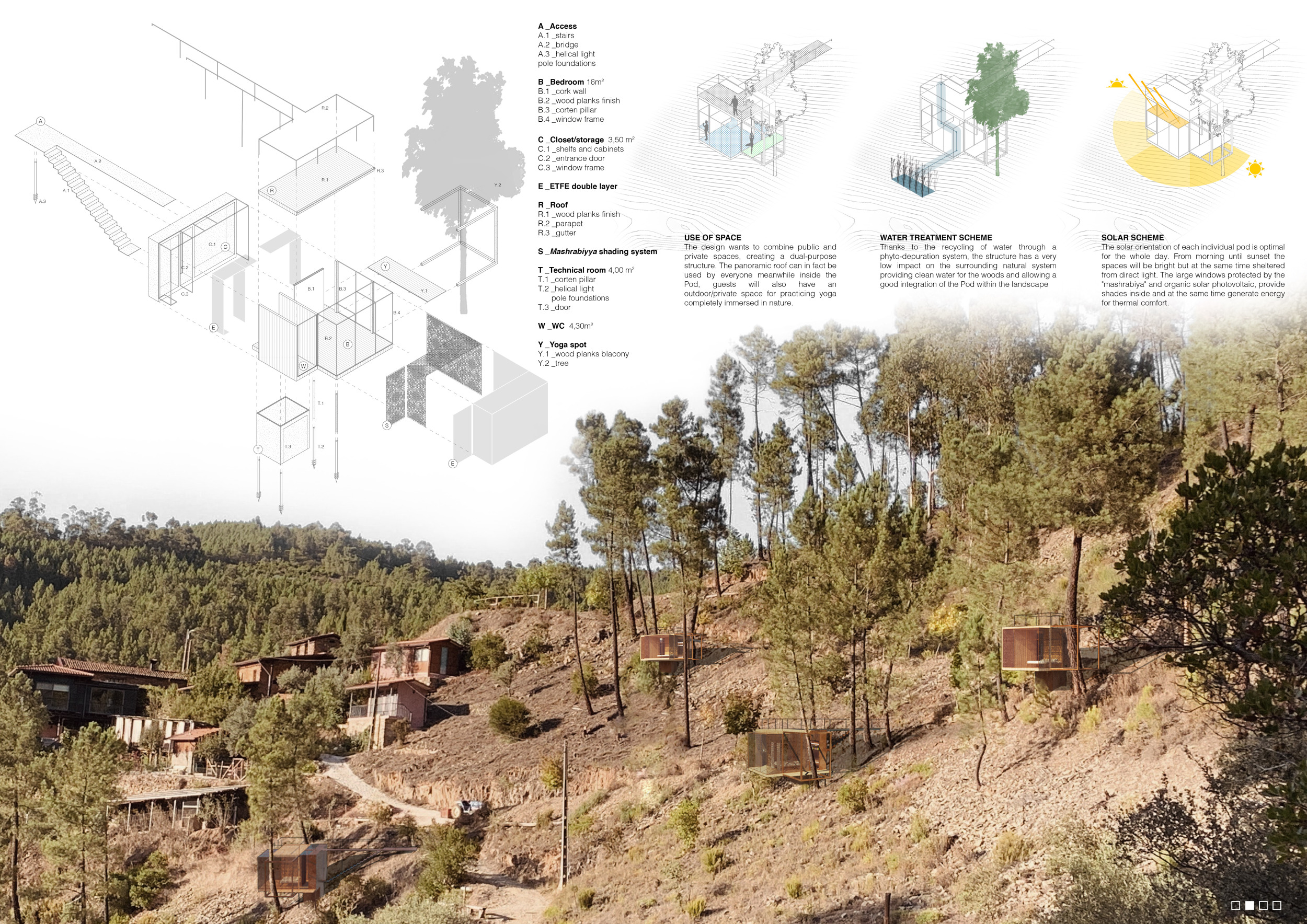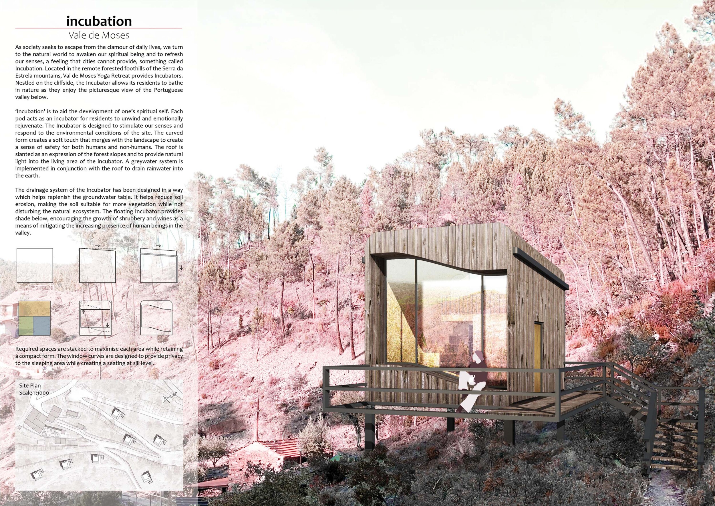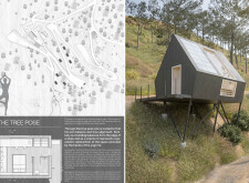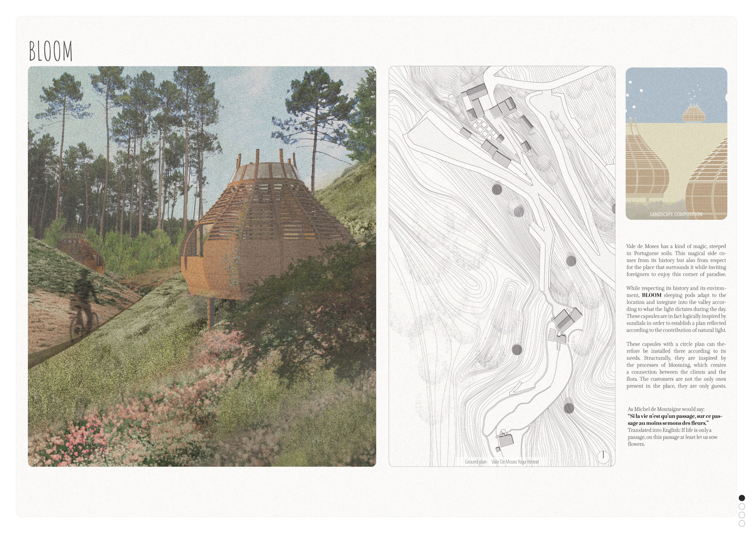 The Sleeping Pods on a Cliff competition is the third collaboration between Bee Breeders and the Vale de Moses Yoga Retreat – a site located in the remote pine and eucalyptus forests of central Portugal, and a destination for hundreds of international guests each year. Like the previous competitions for the Vale de Moses Meditation Cabins and Yoga House on a Cliff, this event was a great success, drawing high-quality submissions from designers around the world.