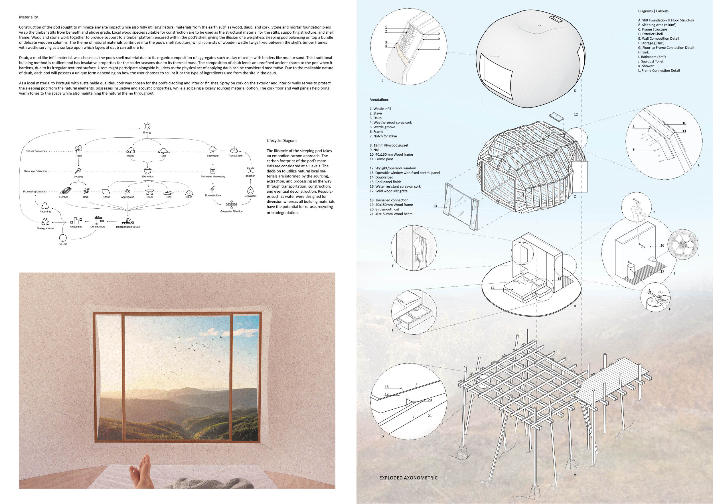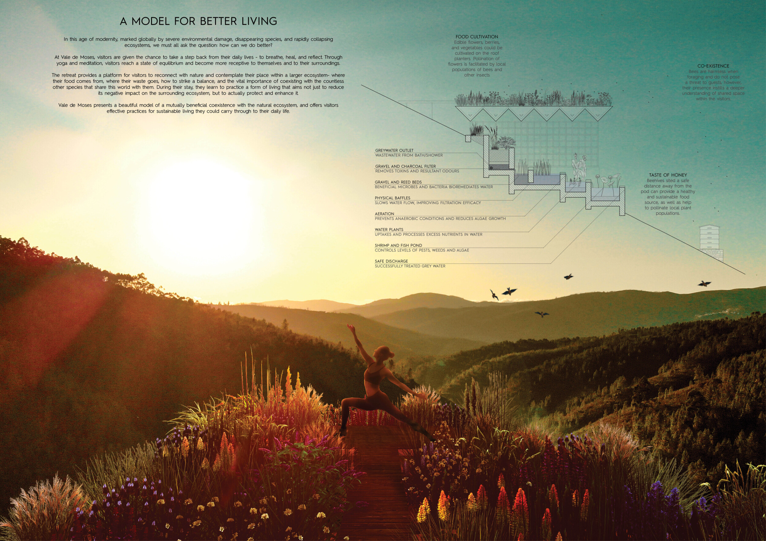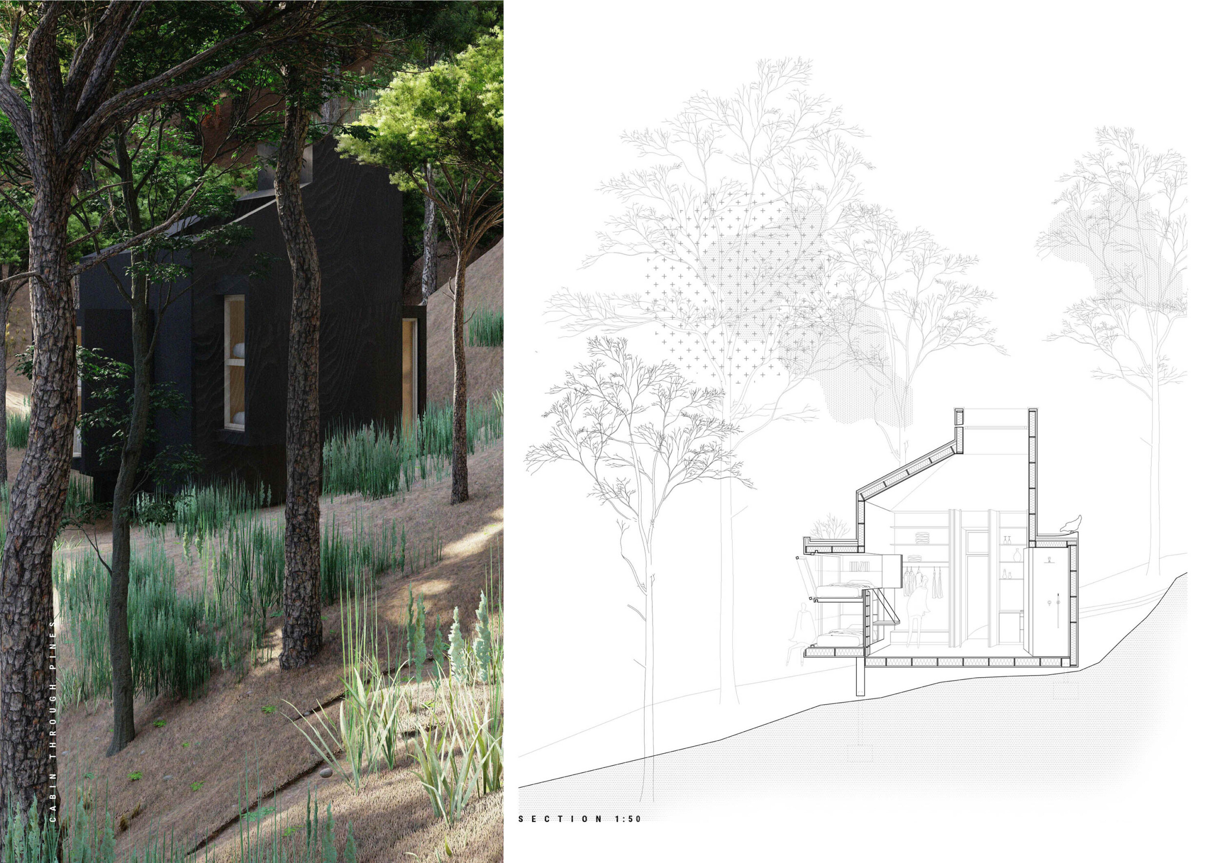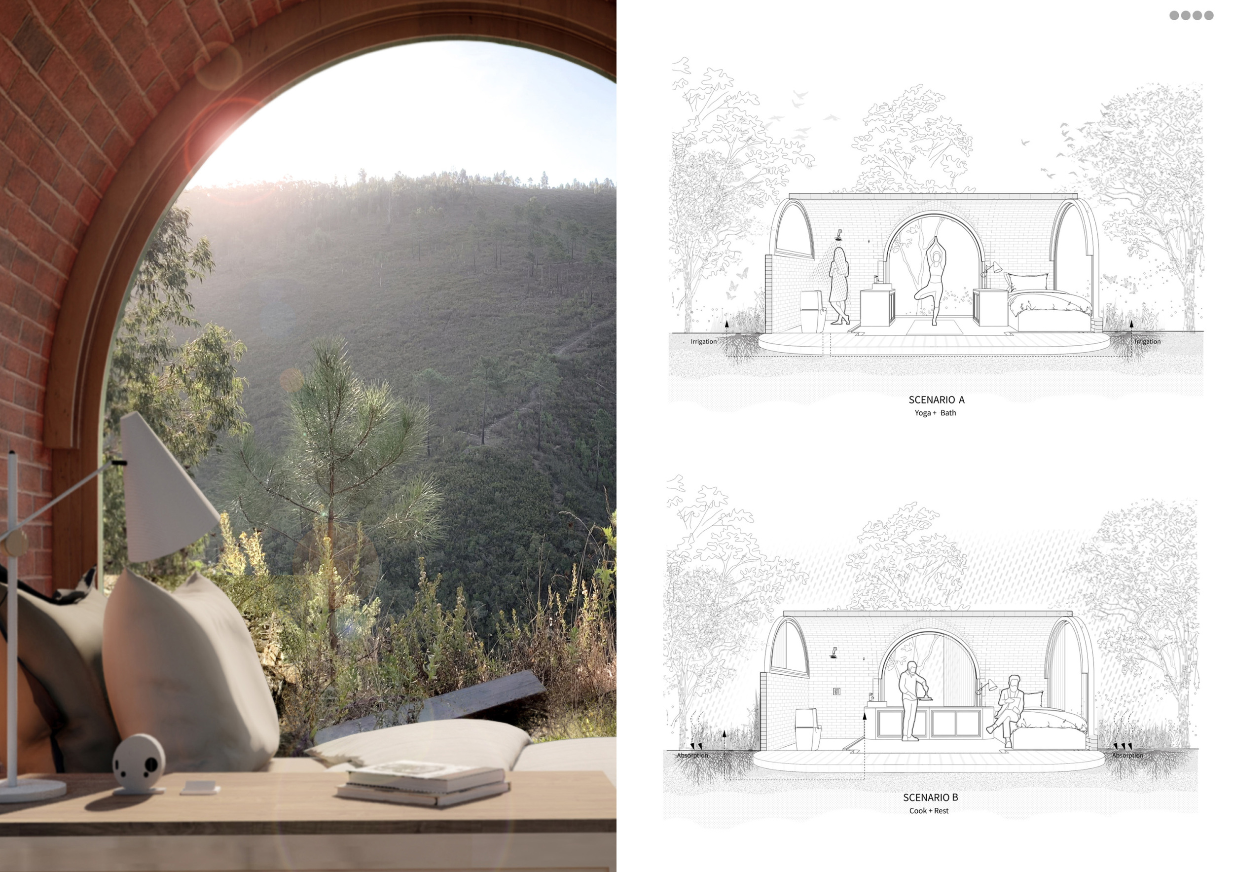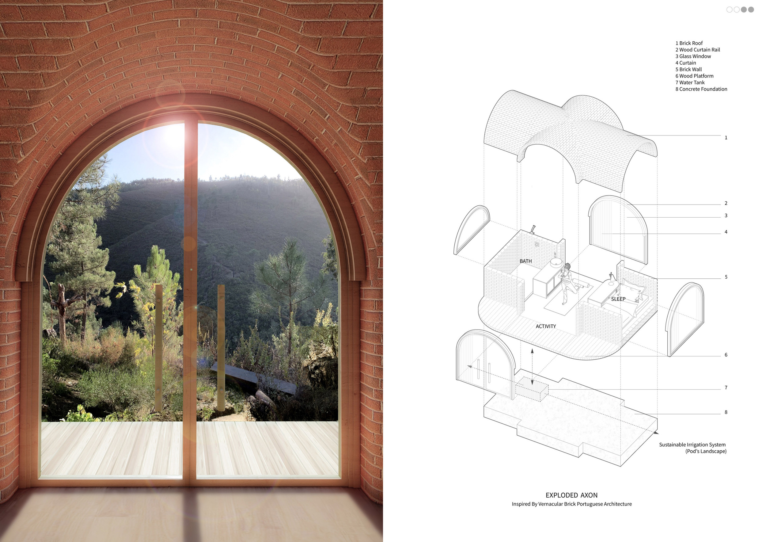 The Sleeping Pods on a Cliff competition is the third collaboration between Bee Breeders and the Vale de Moses Yoga Retreat – a site located in the remote pine and eucalyptus forests of central Portugal, and a destination for hundreds of international guests each year. Like the previous competitions for the Vale de Moses Meditation Cabins and Yoga House on a Cliff, this event was a great success, drawing high-quality submissions from designers around the world.