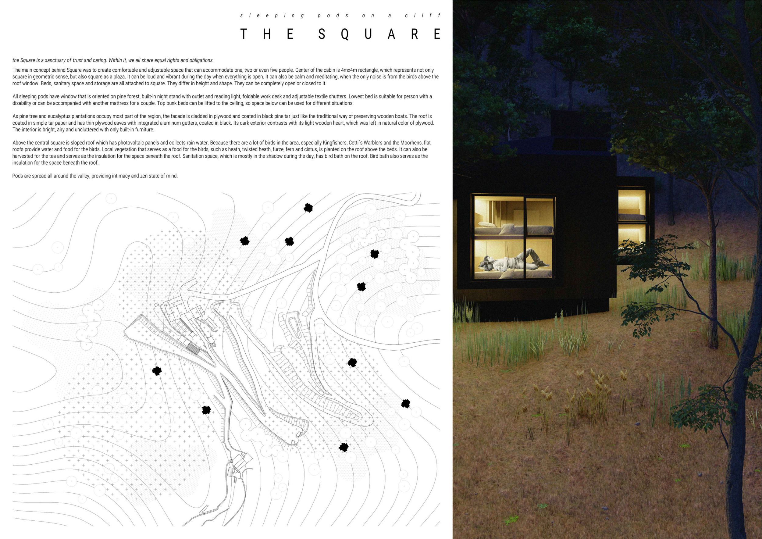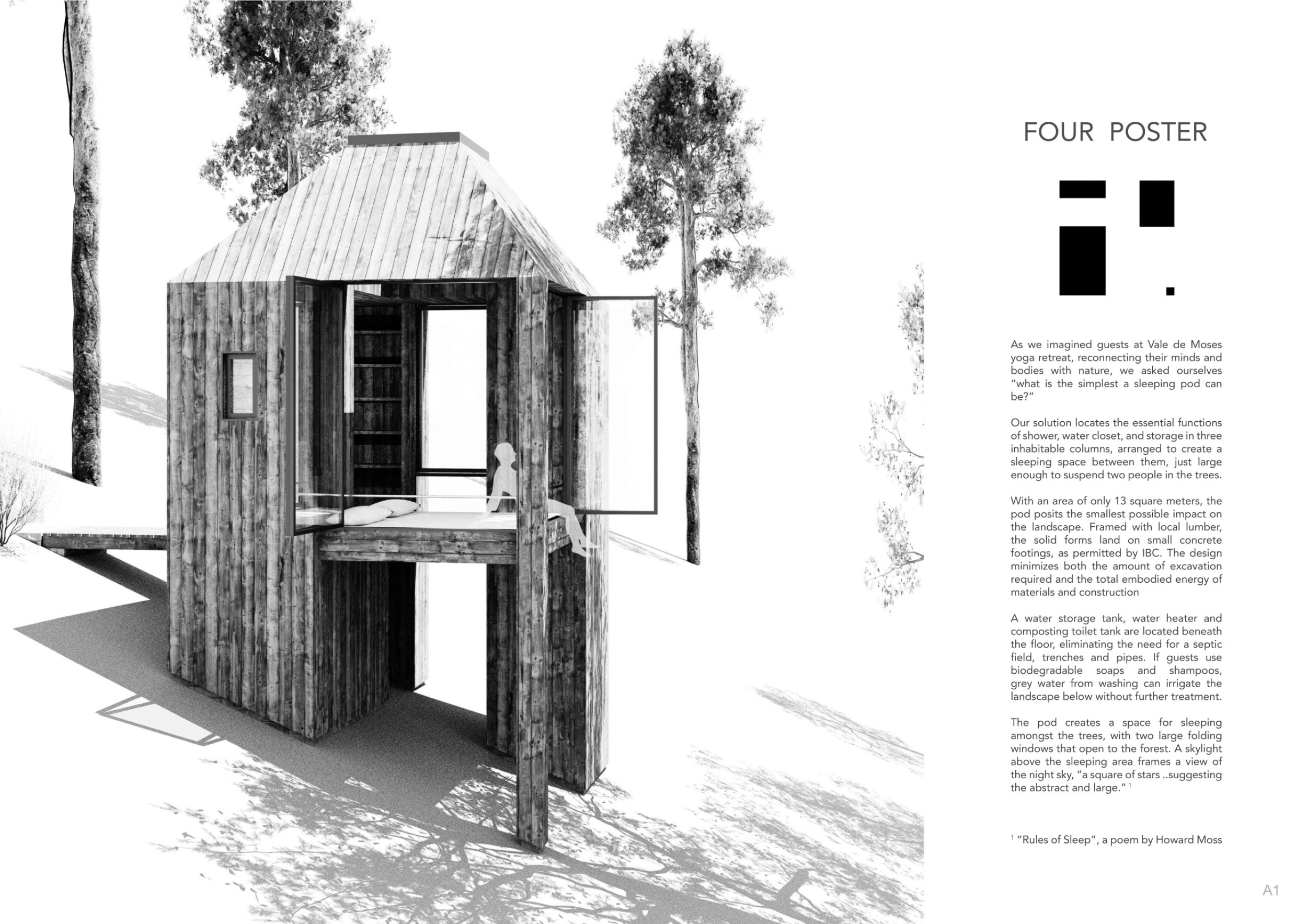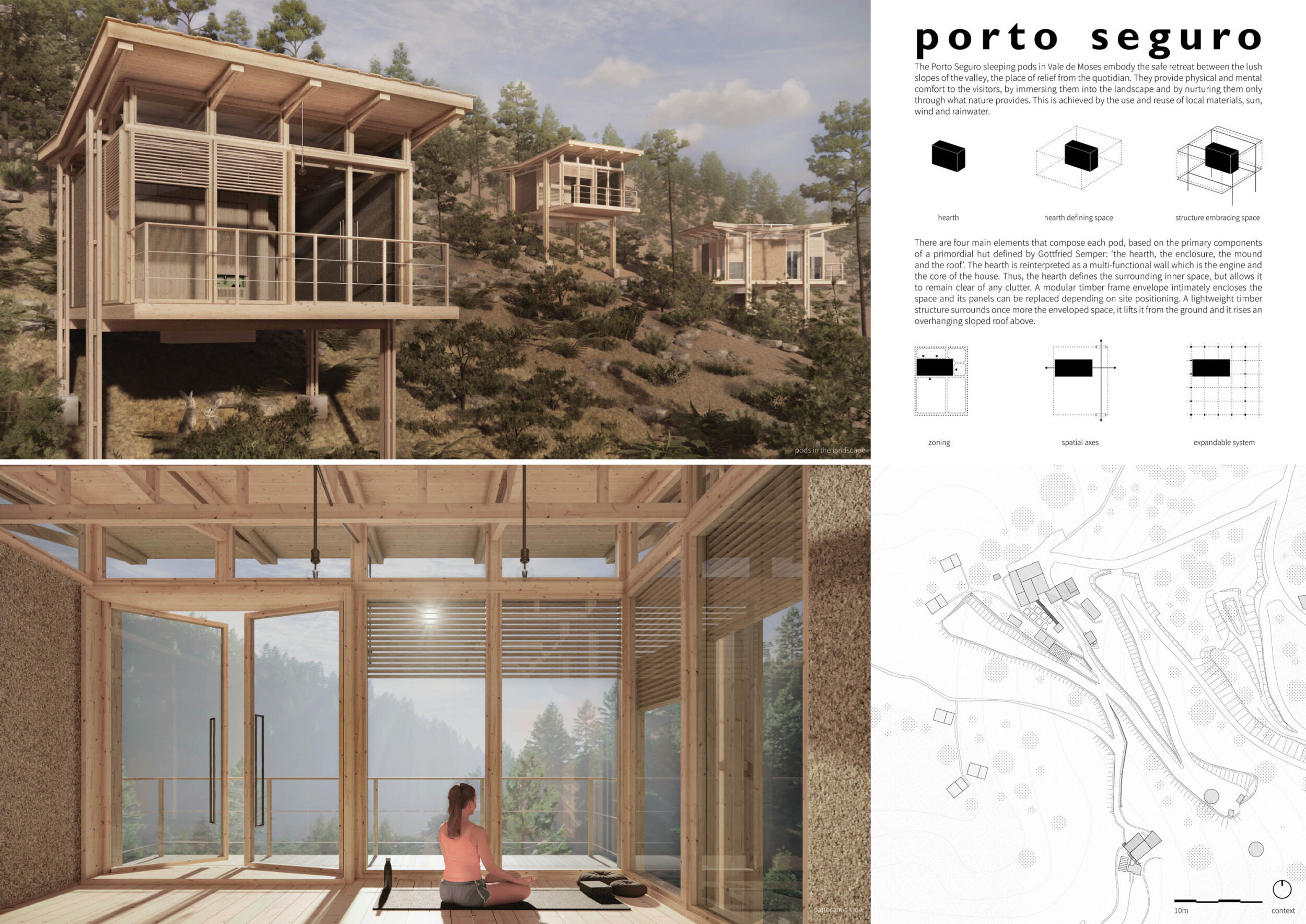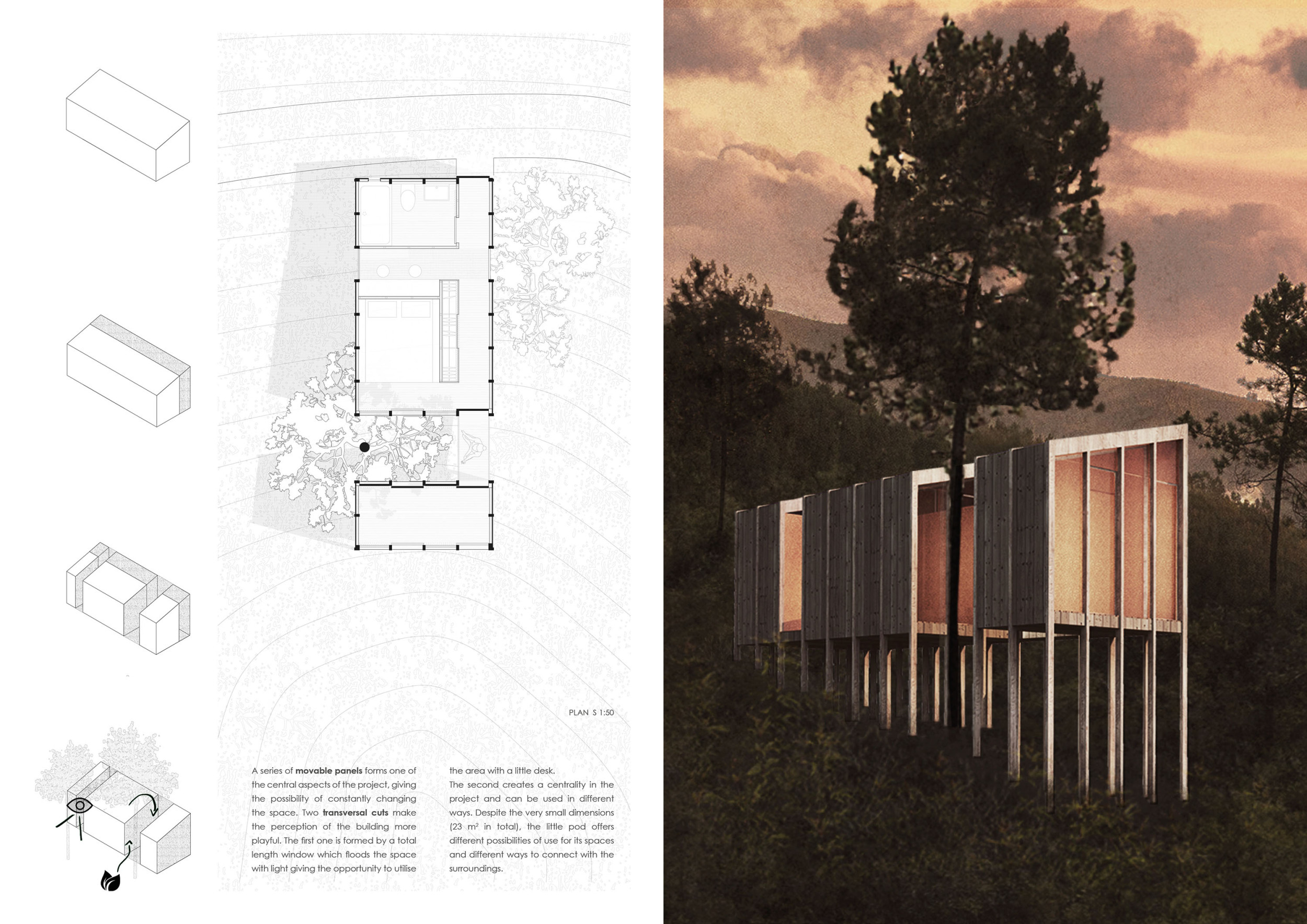 The Sleeping Pods on a Cliff competition is the third collaboration between Bee Breeders and the Vale de Moses Yoga Retreat – a site located in the remote pine and eucalyptus forests of central Portugal, and a destination for hundreds of international guests each year. Like the previous competitions for the Vale de Moses Meditation Cabins and Yoga House on a Cliff, this event was a great success, drawing high-quality submissions from designers around the world.