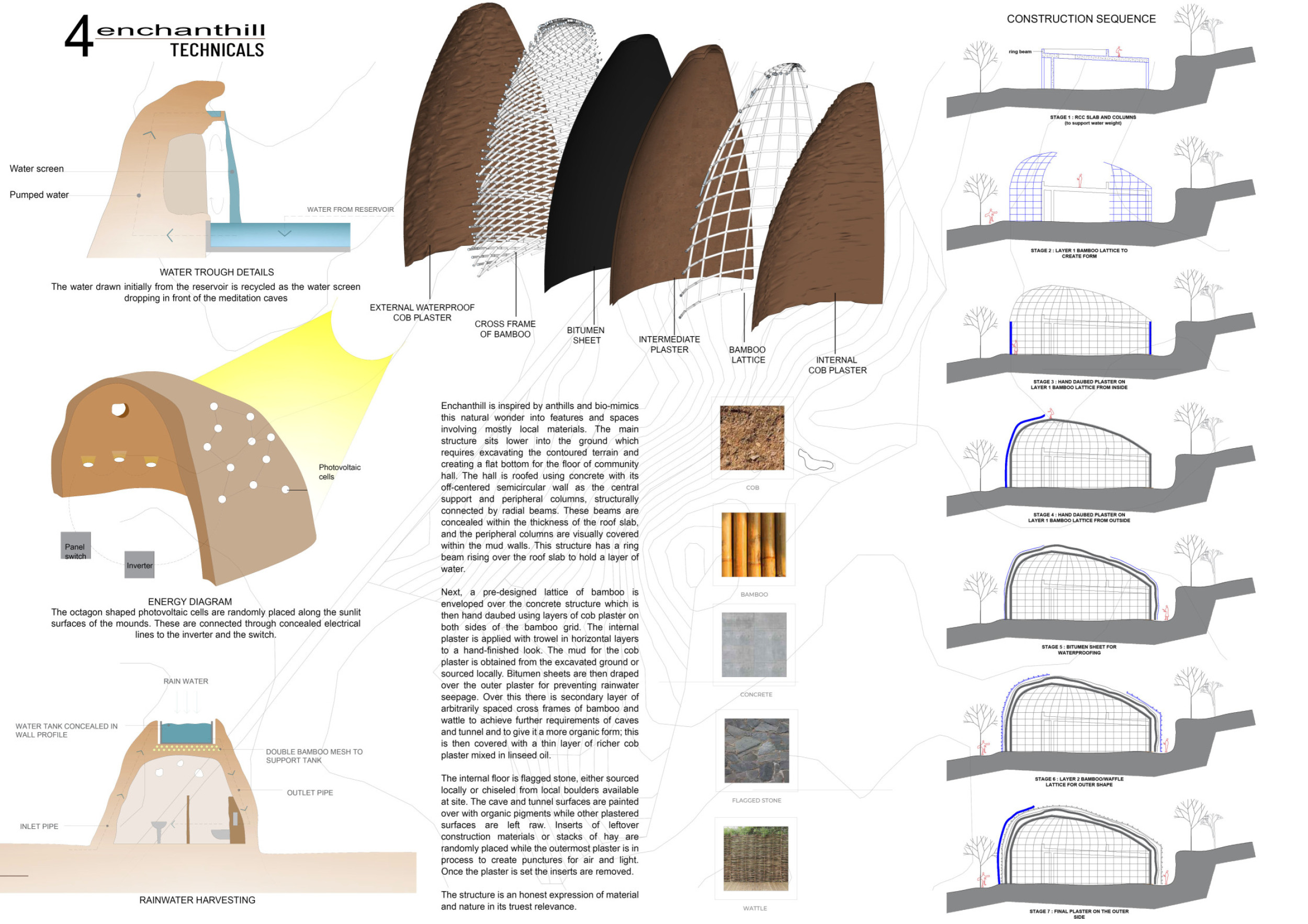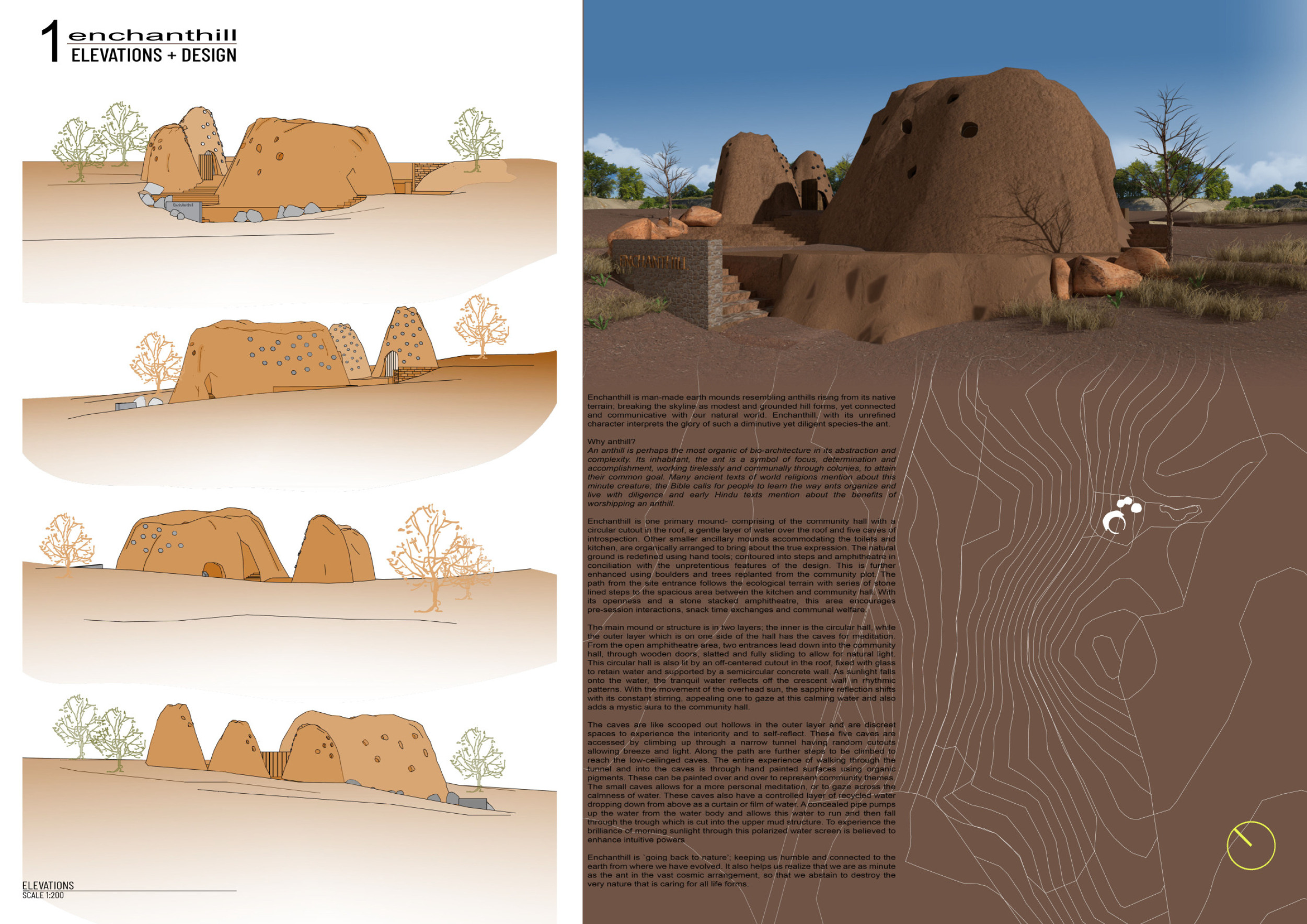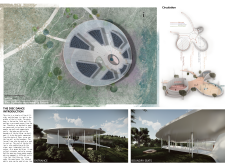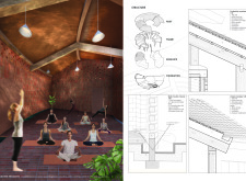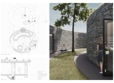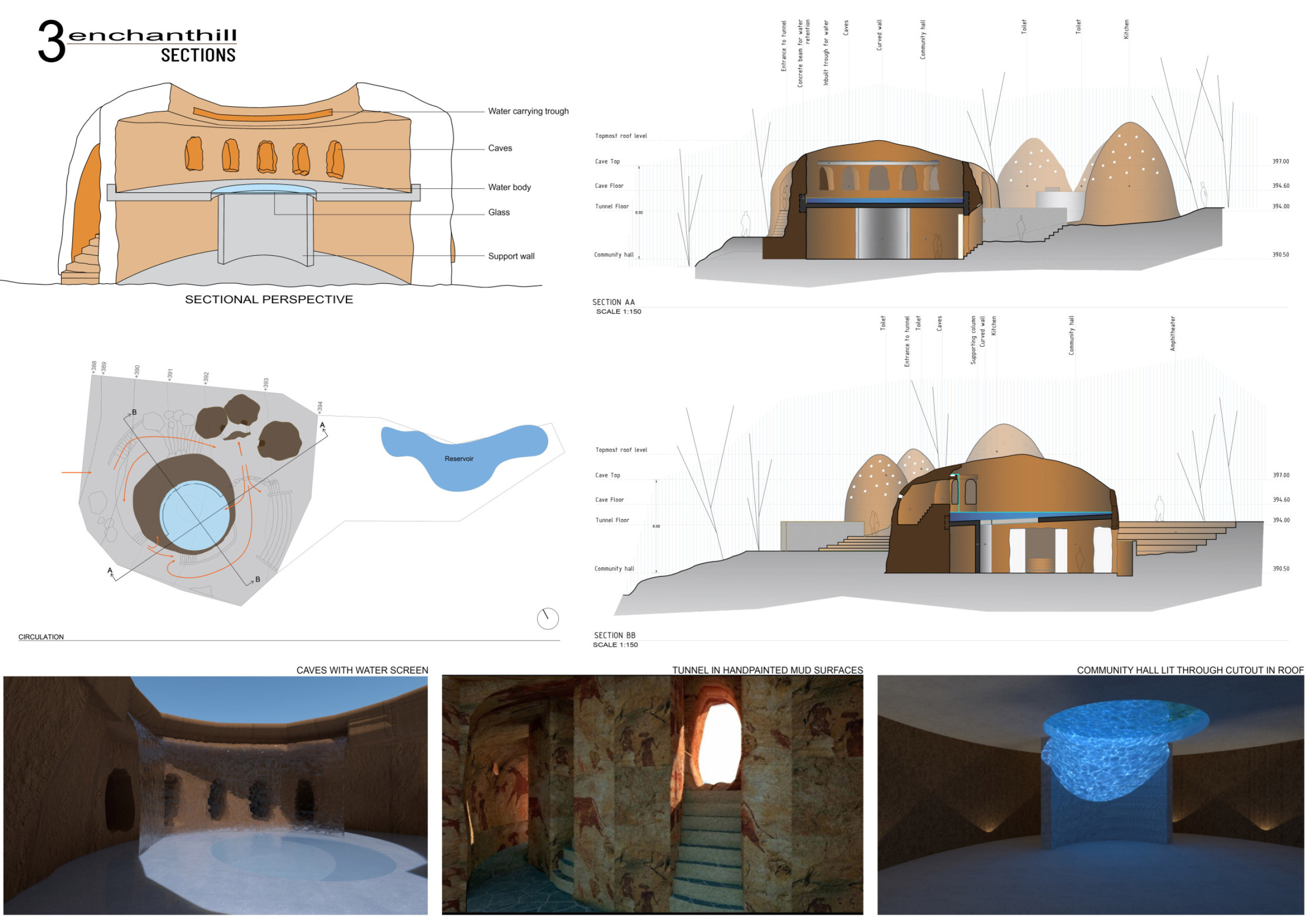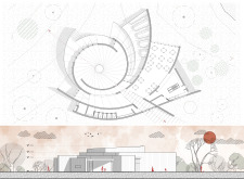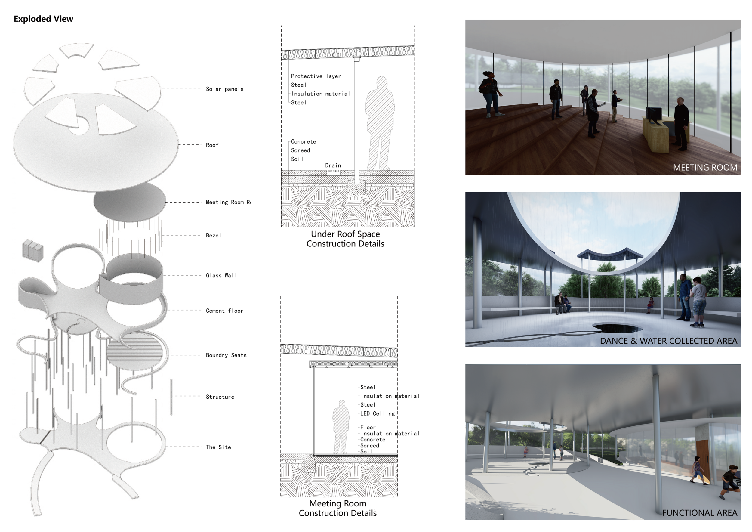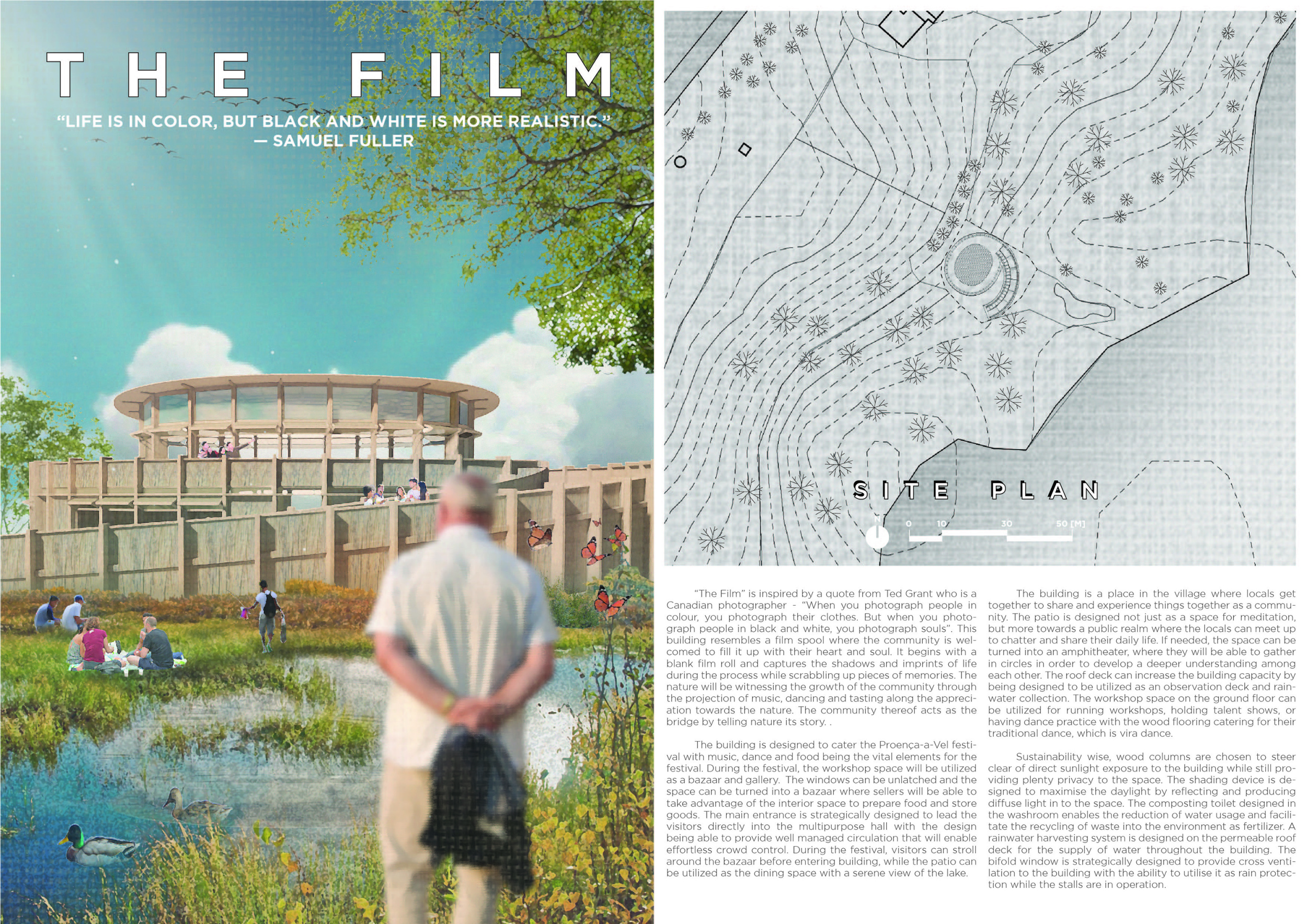 The project, titled ‘Swirl Pavilion’, proposes a circular structure made of rammed earth and timber, featuring openings on the east and west for natural ventilation, and an inclined green roof centered on a skylight. According to the jury, “There is a quiet subtlety about this design that made this proposal stand out.