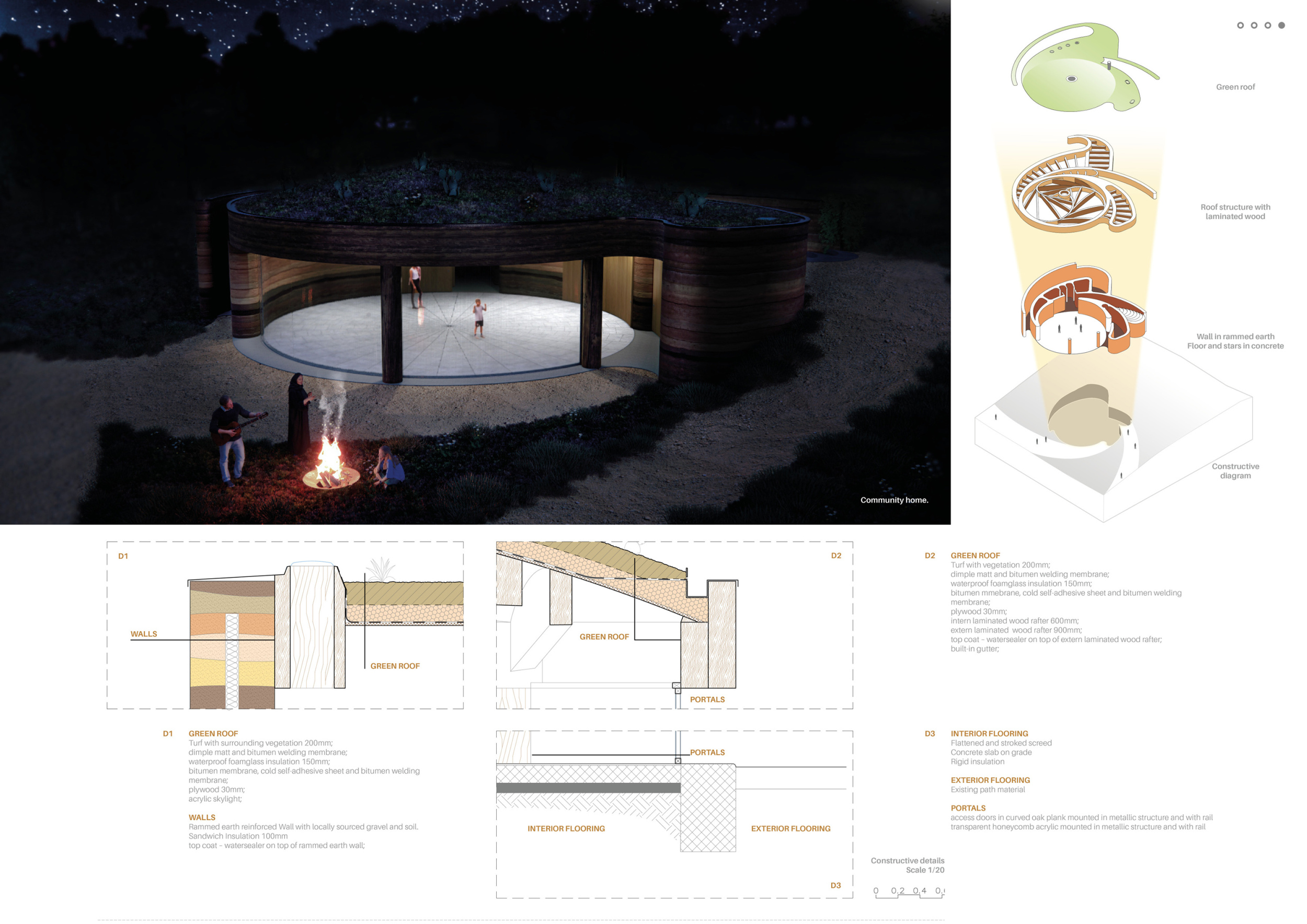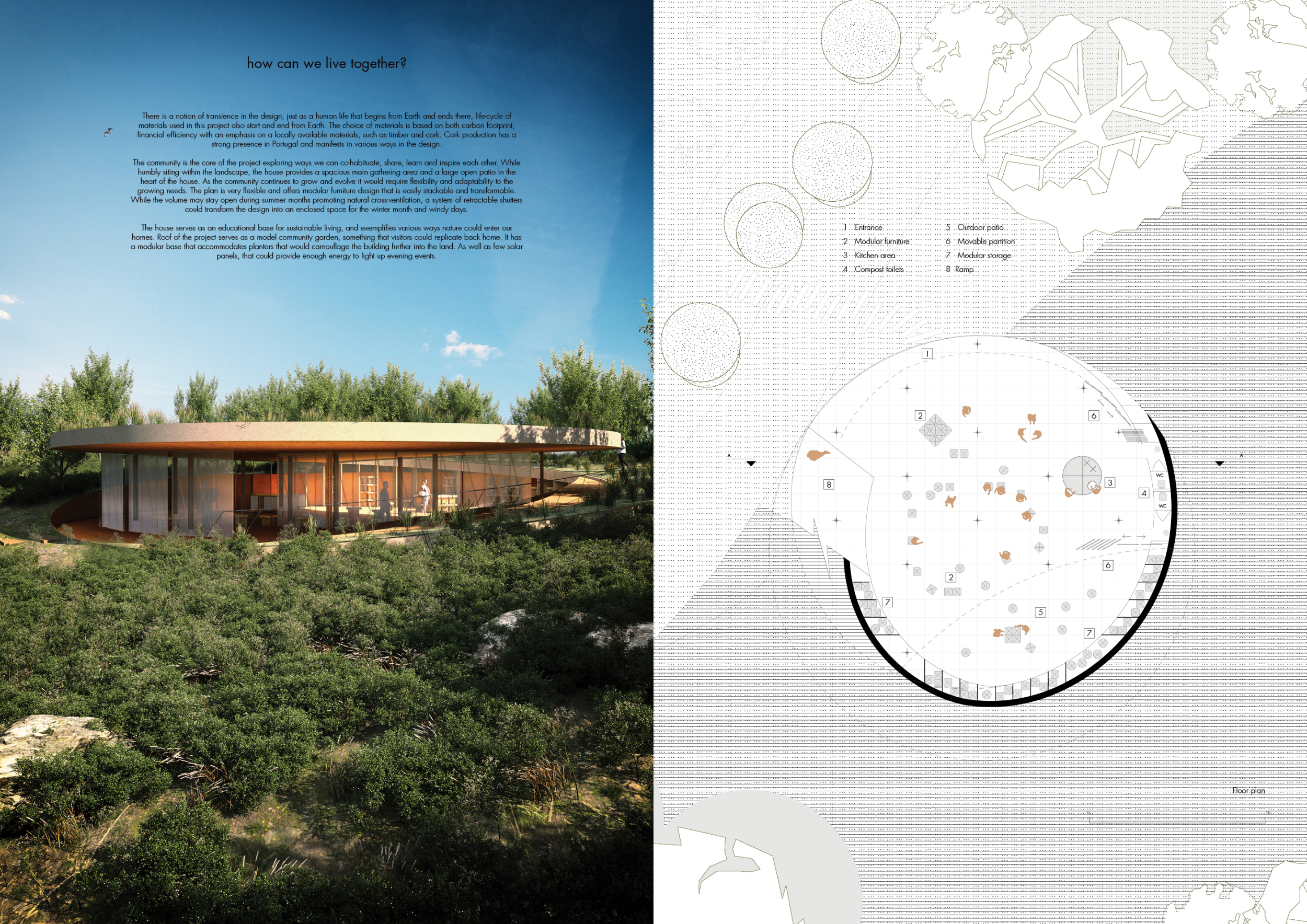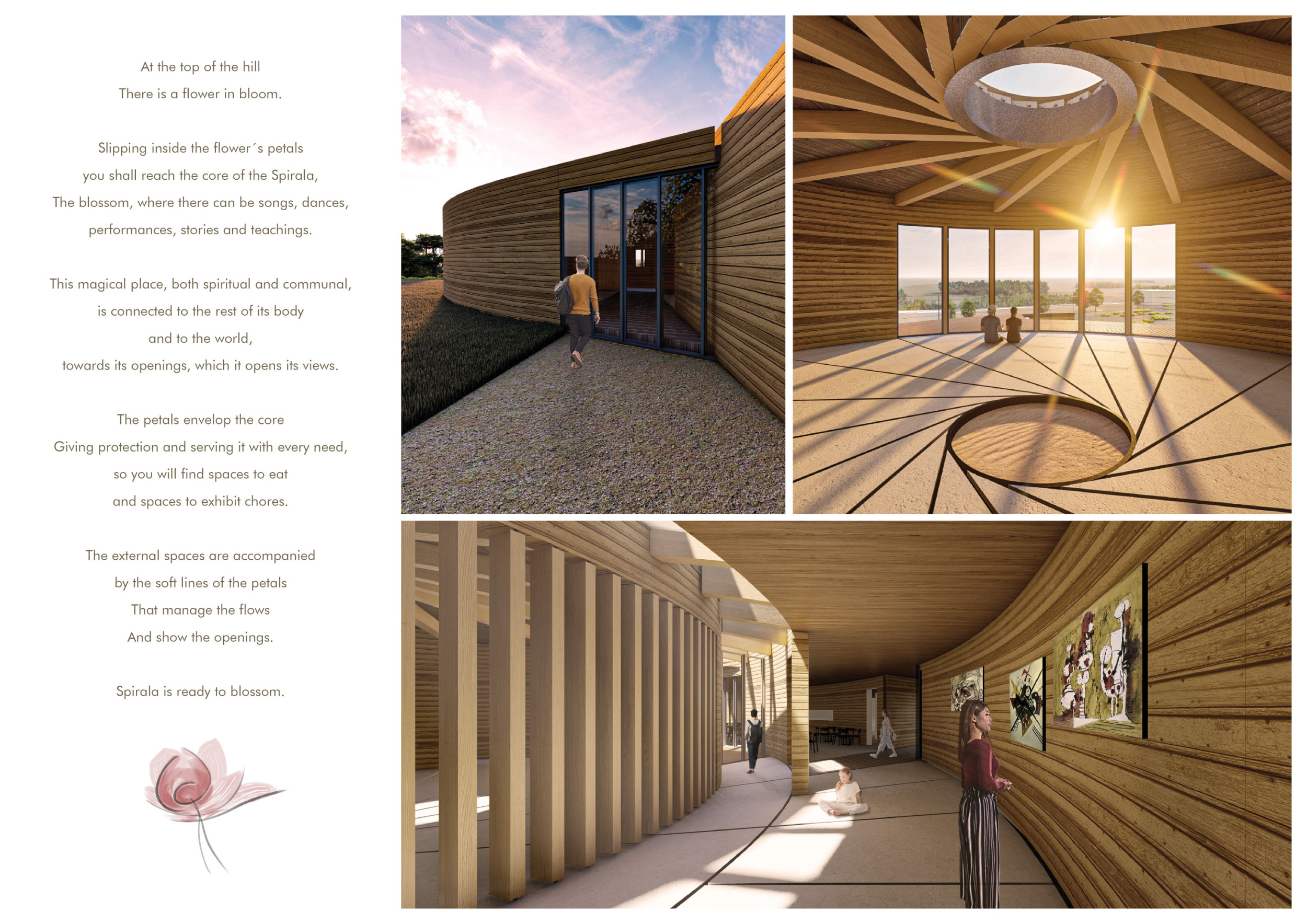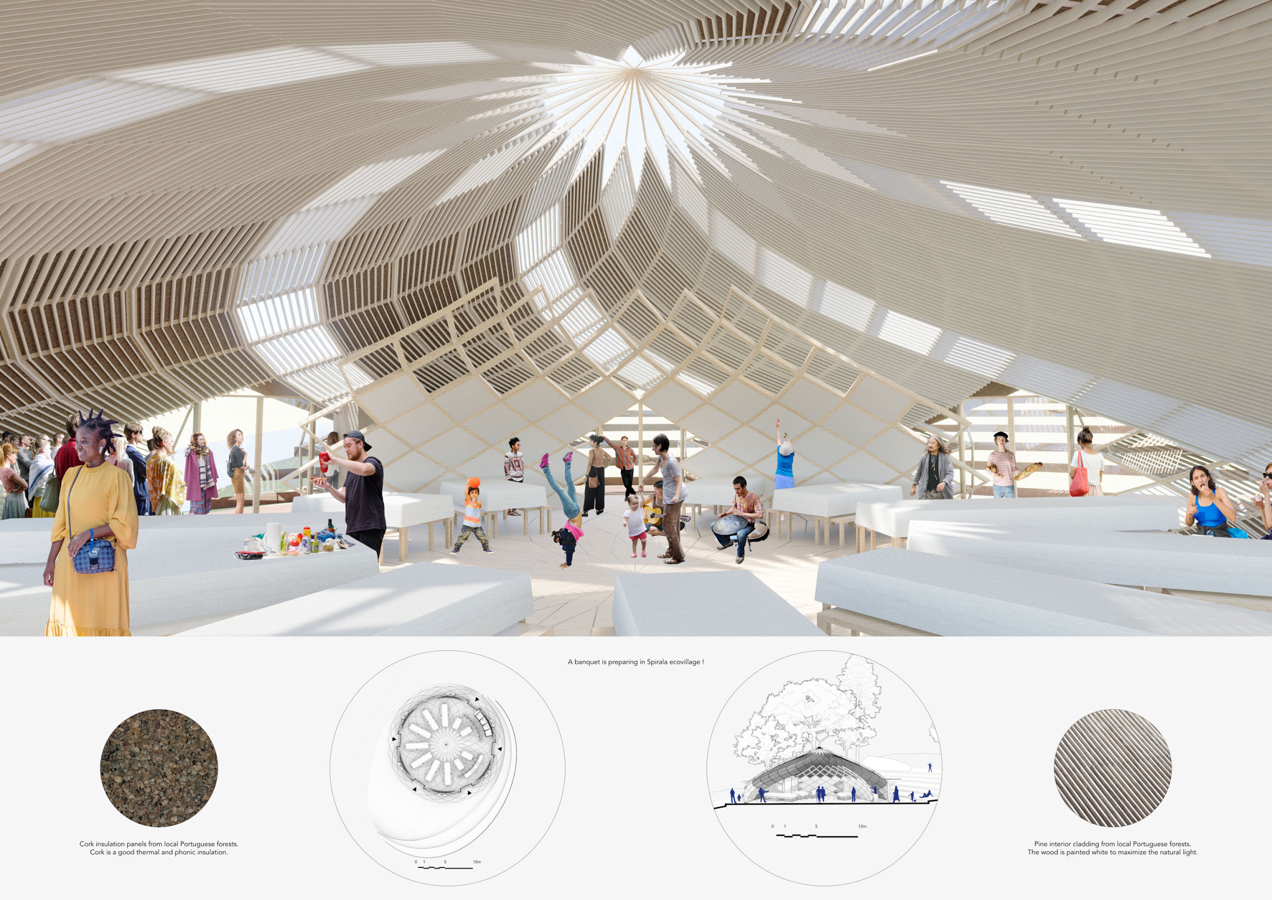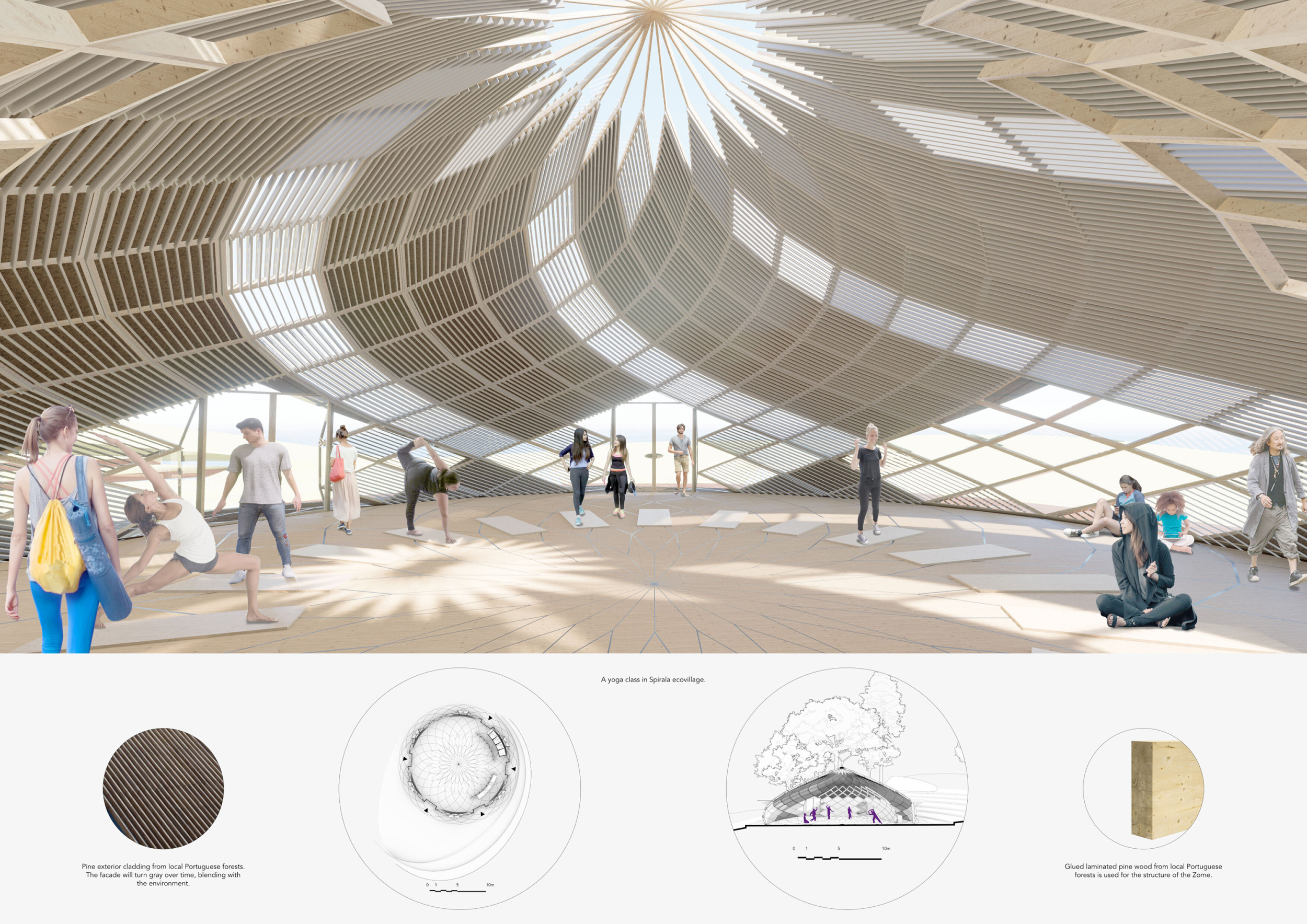 For this design competition, Bee Breeders partnered with the Spirala Ecological Village, a pioneering project focused on self-development and connection with nature. This community and farm, based in Northern Portugal, is planned to consist of 20 buildings in which residents live and work together and practice ways of connecting with nature while reducing their ecological footprint on Earth.