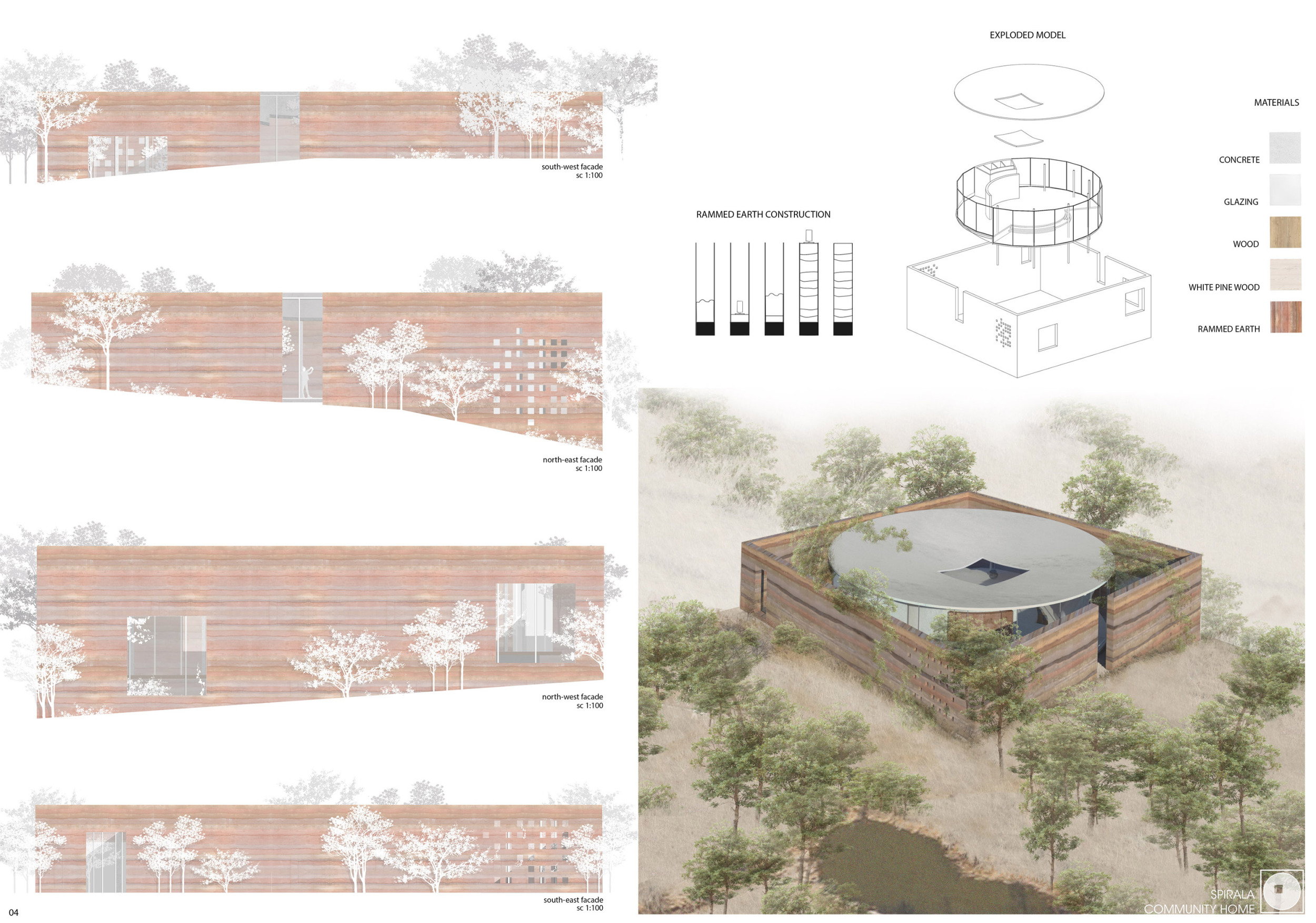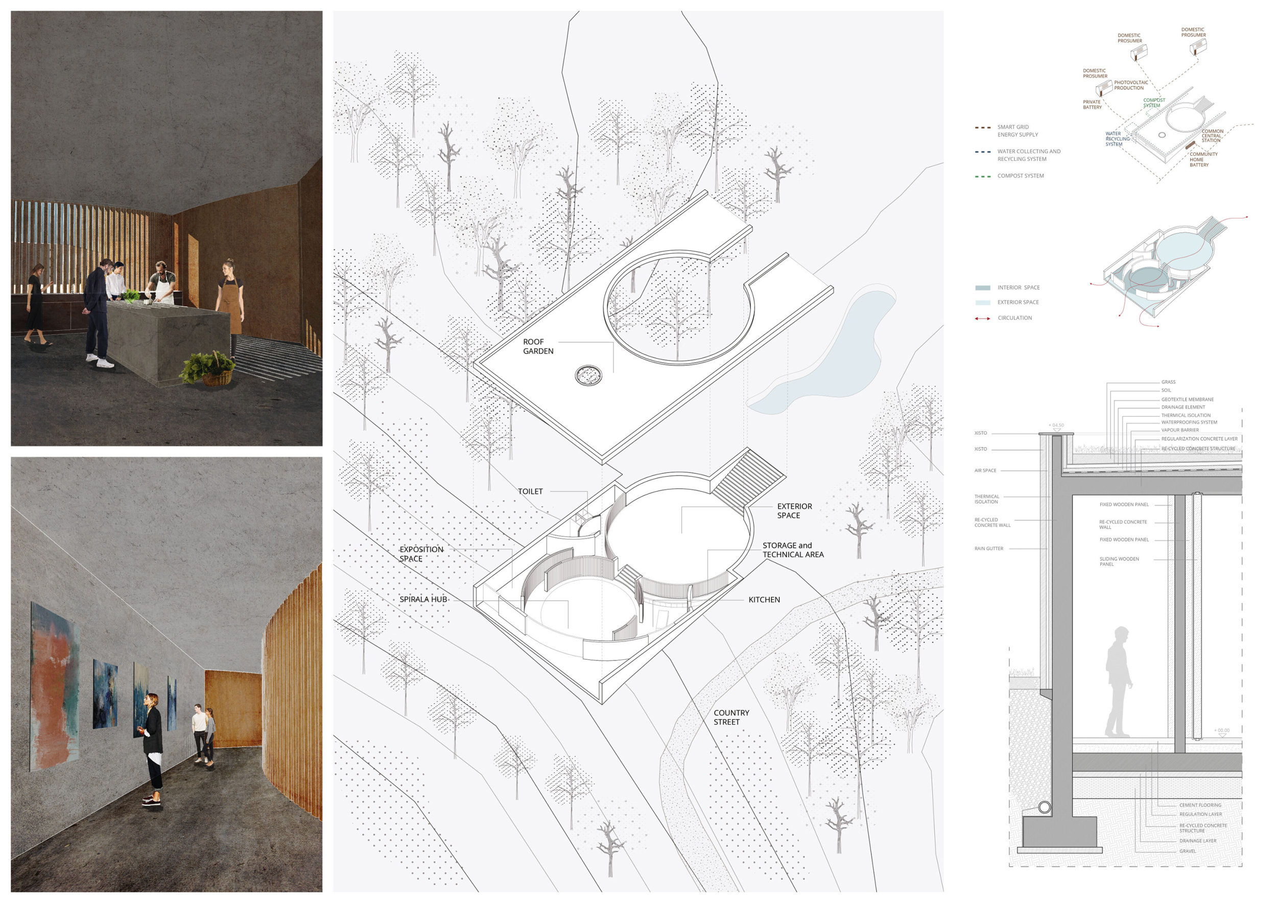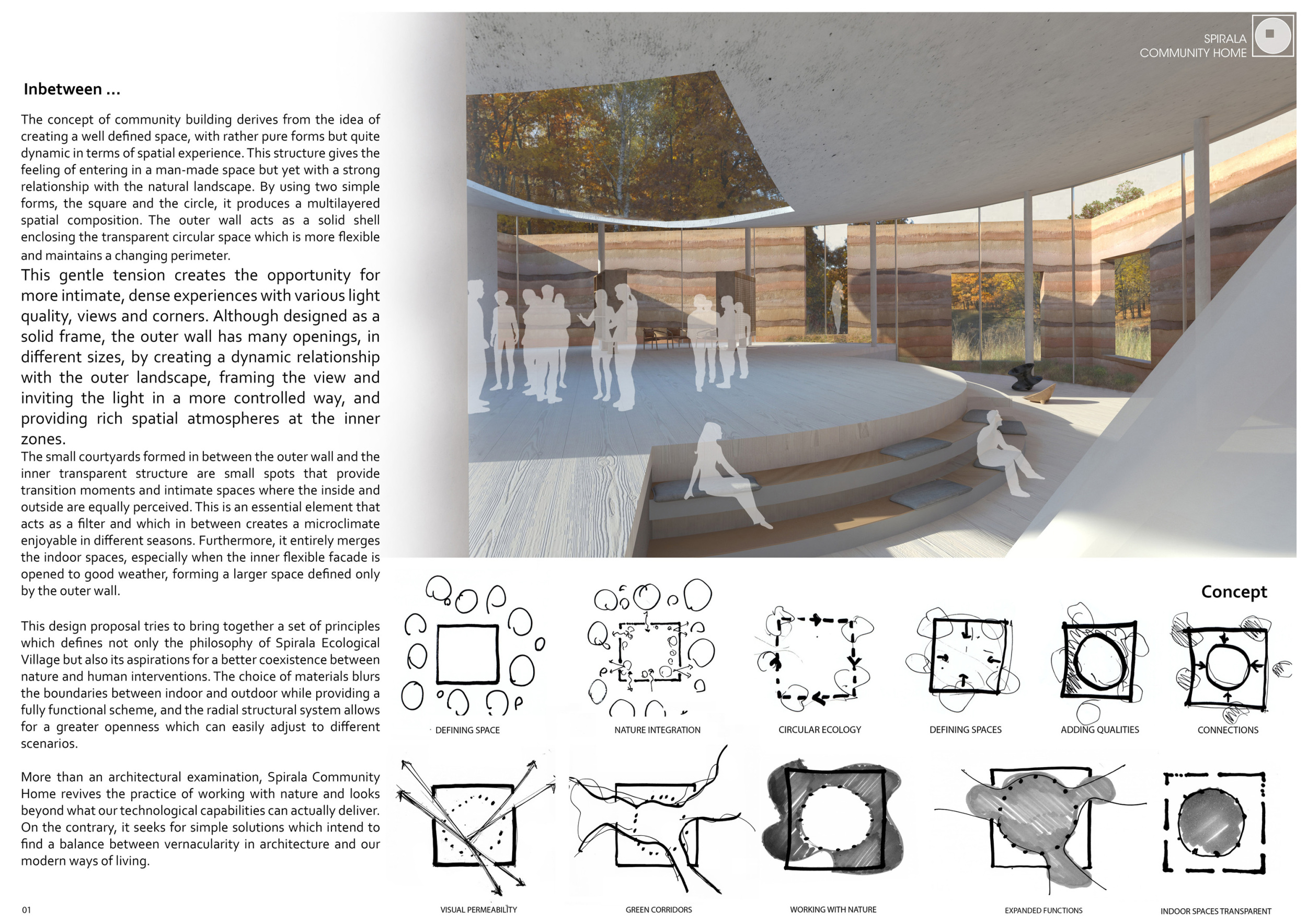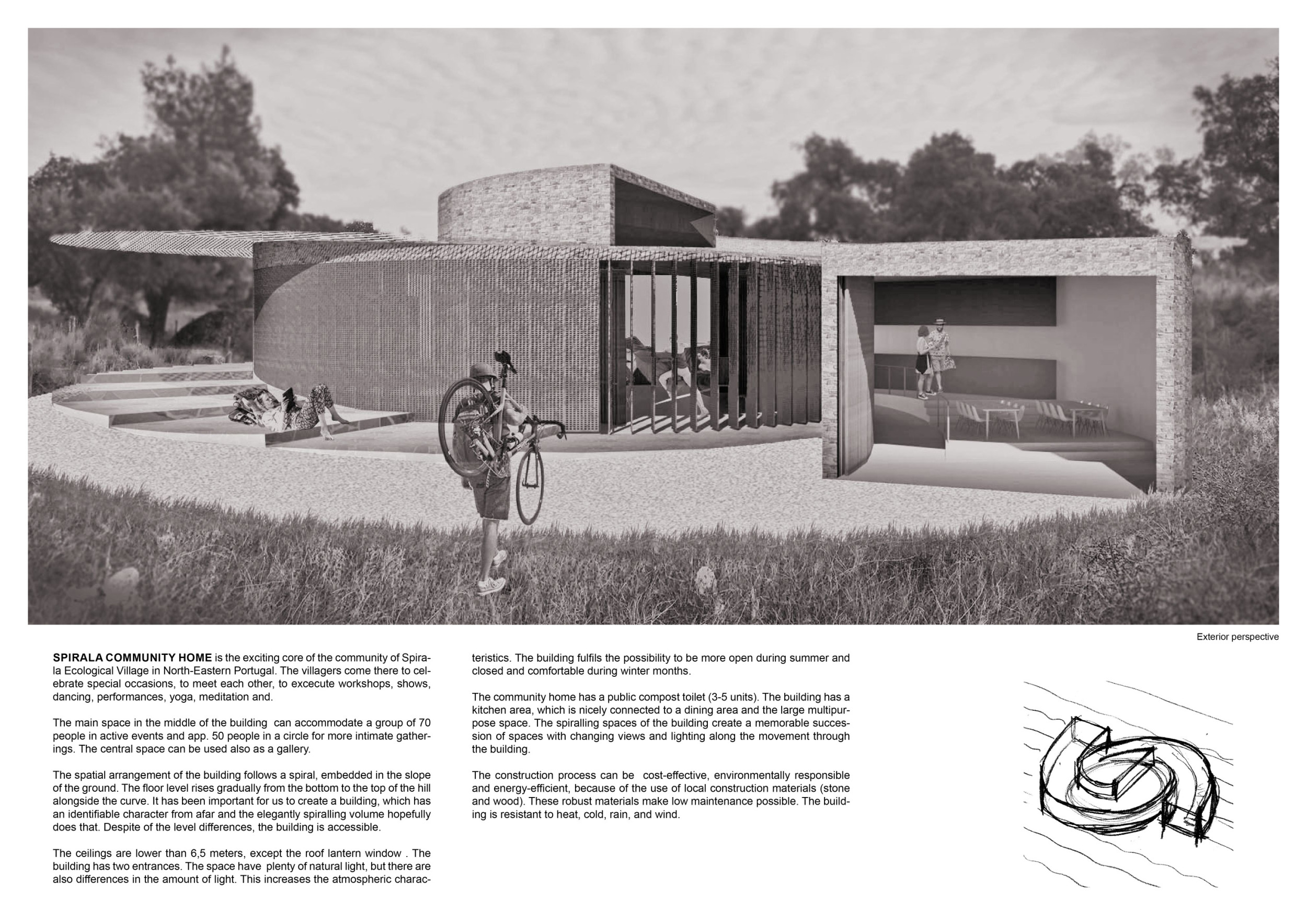 The Spirala Community Home Competition called for submissions for a shared building that will form the heart of the Spirala Ecological Village – a space where community members could gather together and meet for events, workshops, or socializing. It should have both indoor and outdoor spaces for congregating for various purposes throughout the year. As winning designs will be considered for construction, the founders of the ecological village and the jurors sought solutions that would best serve the various needs of the community, while also being examples of green building practices and sustainable design.