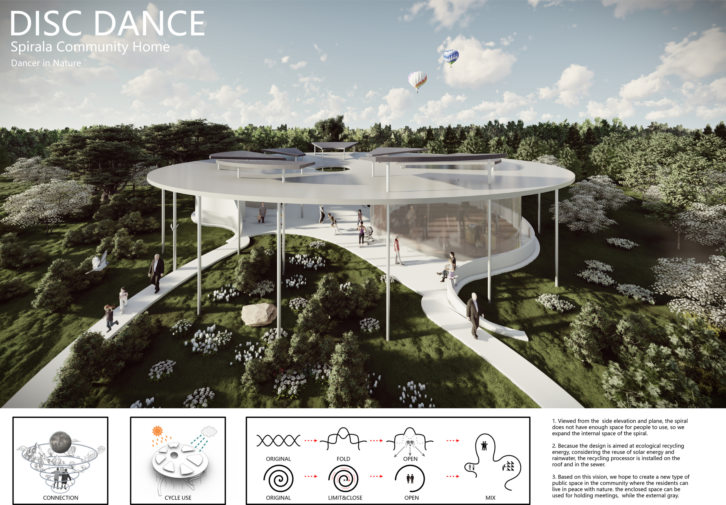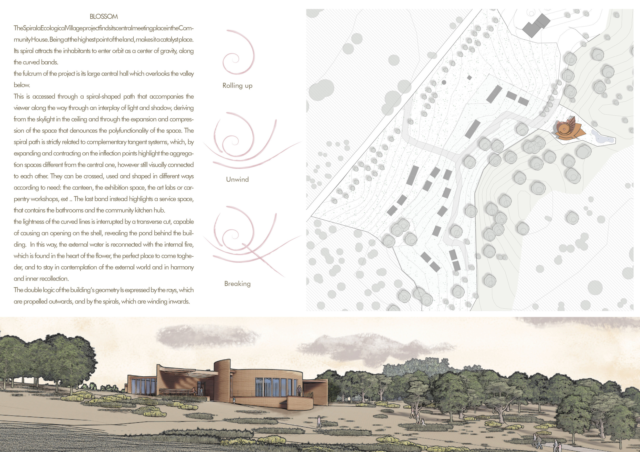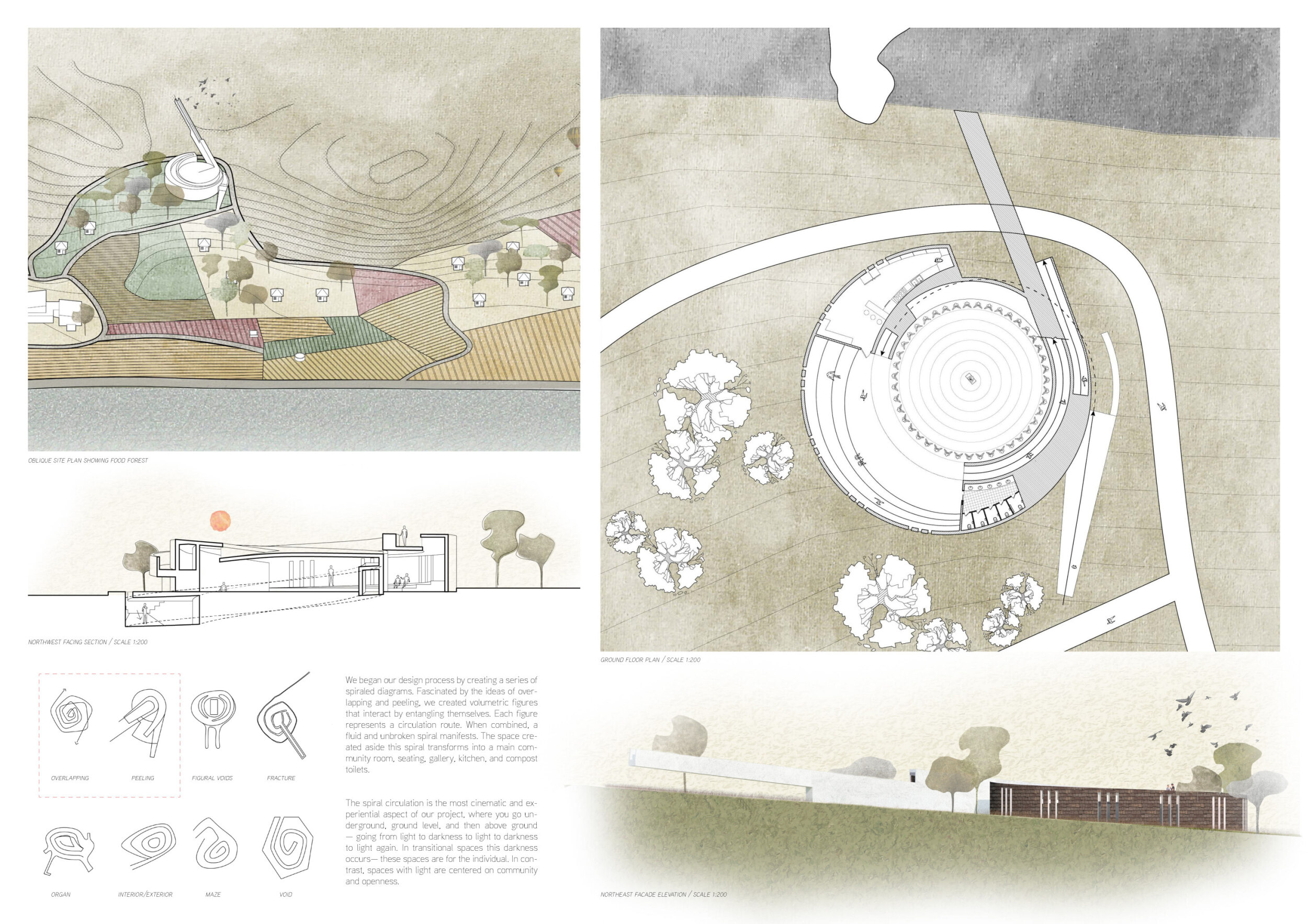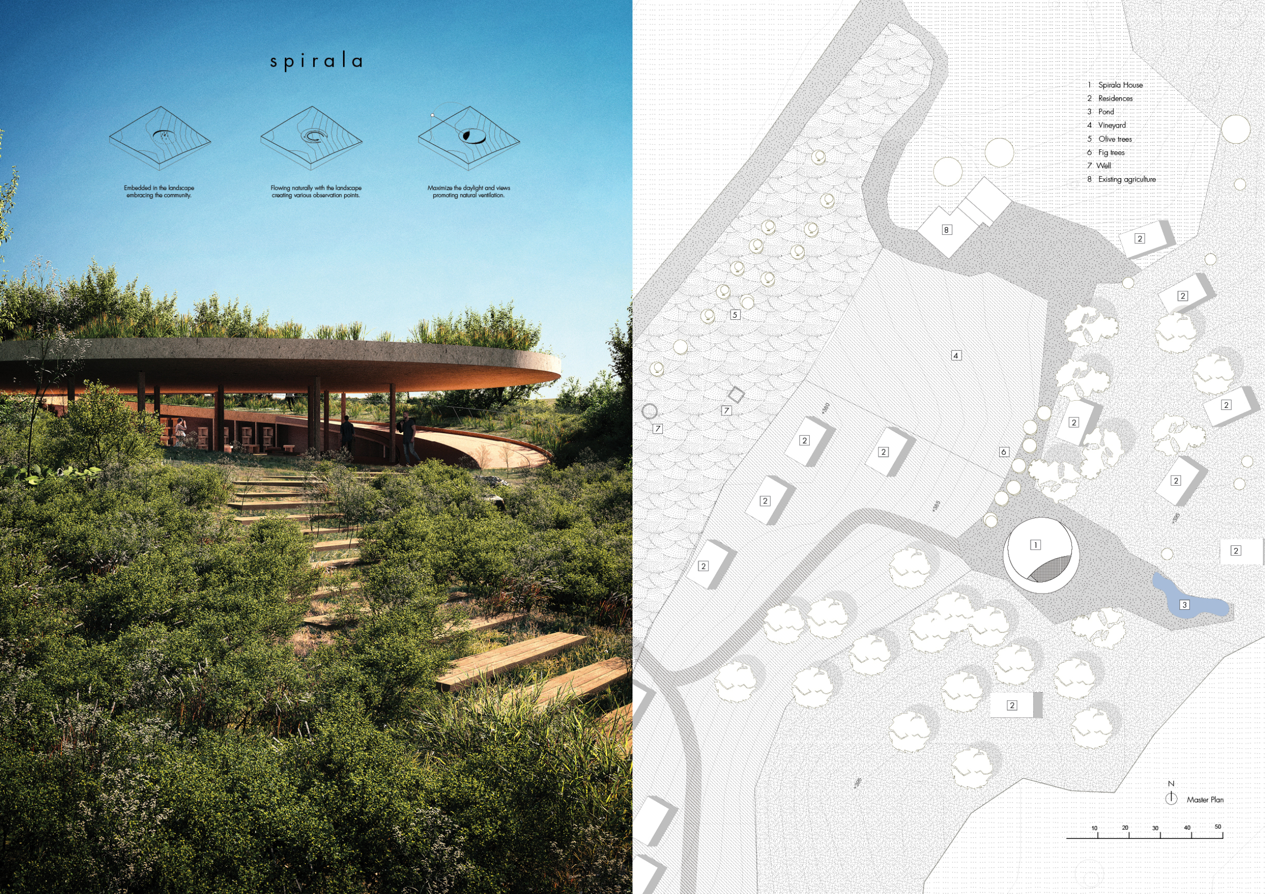 The Spirala Community Home Competition called for submissions for a shared building that will form the heart of the Spirala Ecological Village – a space where community members could gather together and meet for events, workshops, or socializing. It should have both indoor and outdoor spaces for congregating for various purposes throughout the year. As winning designs will be considered for construction, the founders of the ecological village and the jurors sought solutions that would best serve the various needs of the community, while also being examples of green building practices and sustainable design.