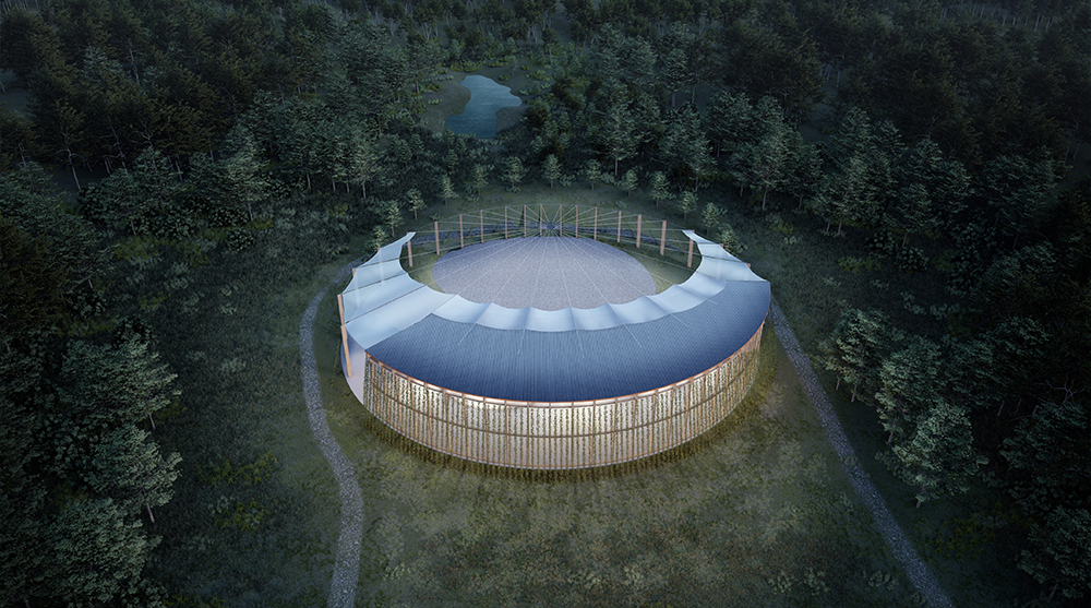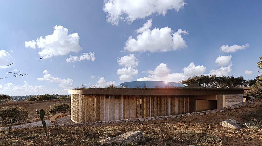 First prize was awarded to Ekin Turgay and Serkan Sonar from Turkey. Their ‘Swirl Pavilion’ project proposes a circular structure made of rammed earth and timber, featuring openings on the east and west for natural ventilation, and an inclined green roof centered on a skylight. The jury loved the “quiet subtlety” of this design, with great thought being given to the sourcing of the materials and the climate of the building.