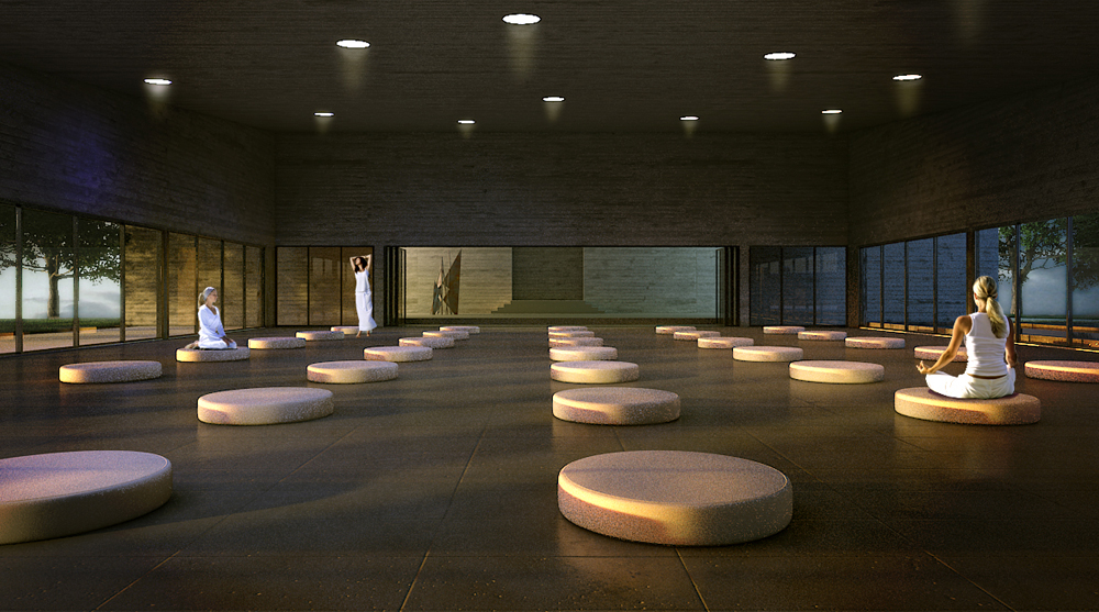 The International Meditation Centre maximises the use of natural light to create a calming meditation space. Image source