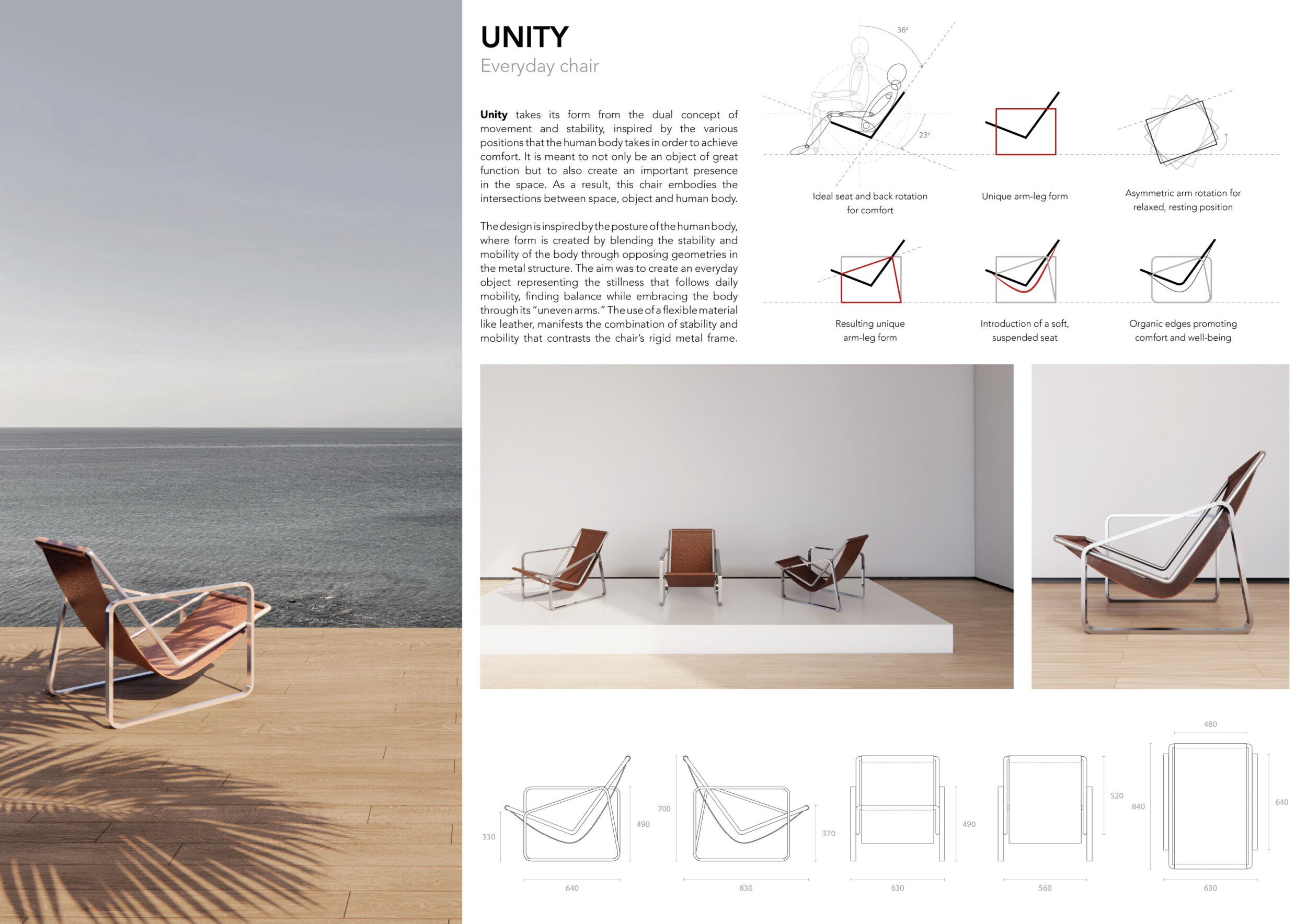 The three primary images at the top of the page provide a comprehensive view of the chair from multiple angles, ensuring that a viewer fully understands its structure, materials, and craftsmanship. The contrast between the chair and its industrial background creates strong visual interest without overwhelming the clarity of the design. Read more However, it raises a question—does this setting truly reflect the intended environment for the chair? The inclusion of production photos is a standout element, immediately communicating the level of craftsmanship and reinforcing that this is a realized, tested project, likely developed by a team. This tangible proof of execution adds credibility and impact. The text is well-structured, using clear titles and short, well-organized paragraphs with subtitles that highlight key points. One area for improvement is annotation. Adding callouts directly on the images—highlighting joint construction, materials, and dimensions—would provide additional clarity and make the presentation even stronger.