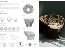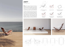 The presentation is clean and effective, using three equally sized renderings or photos that immediately draw the reviewer’s eye. A slight variation in lighting and background colors adds subtle engagement, while the third image does an excellent job of showcasing the chair’s joinery and materials—an essential detail in a competition focused on craftsmanship. However, the first two renderings are quite similar in scale and perspective, limiting the variety of information they provide. Read more While the central image effectively presents the chair’s proportions and geometry in direct elevation, the first image would be more impactful if it showed the chair from a profile or rear angle to offer a fuller understanding of the design. Additionally, the accompanying text could be streamlined. Breaking it into shorter sections or simplifying key points would improve readability and make the information easier to absorb at a glance. These small adjustments would further strengthen an already well-executed presentation.