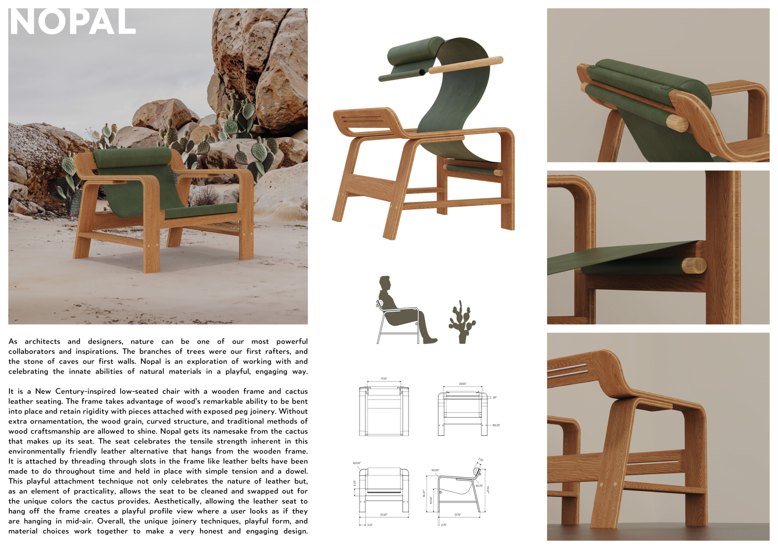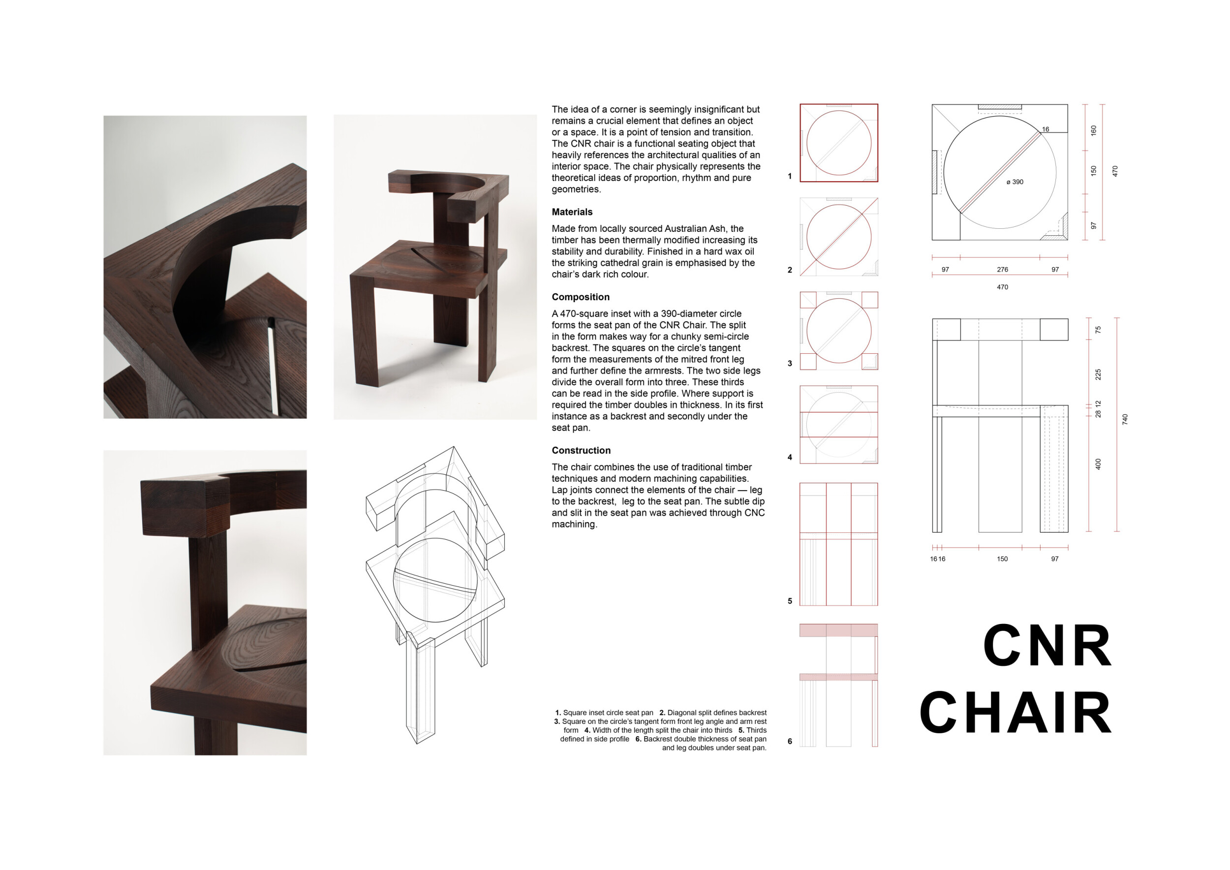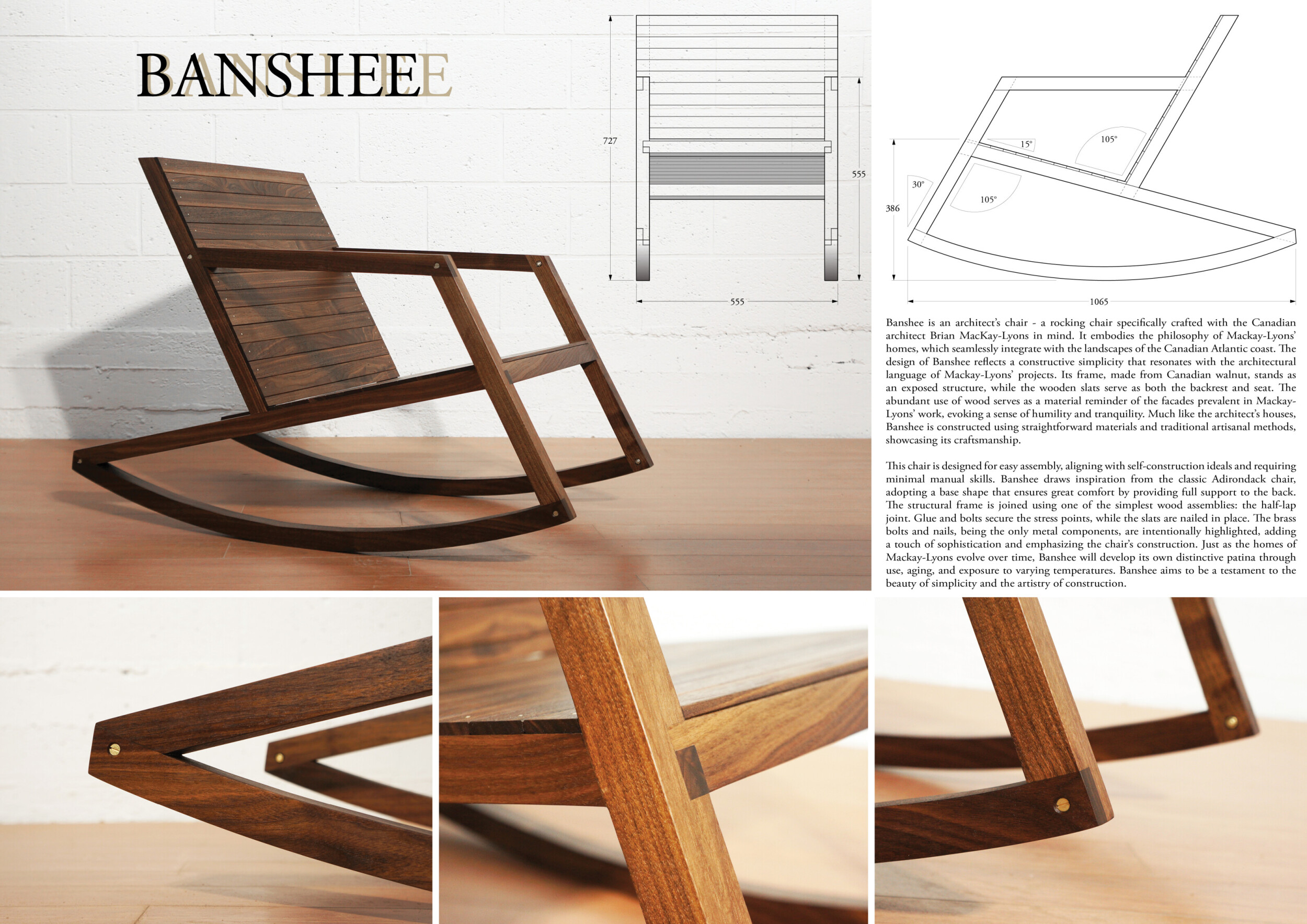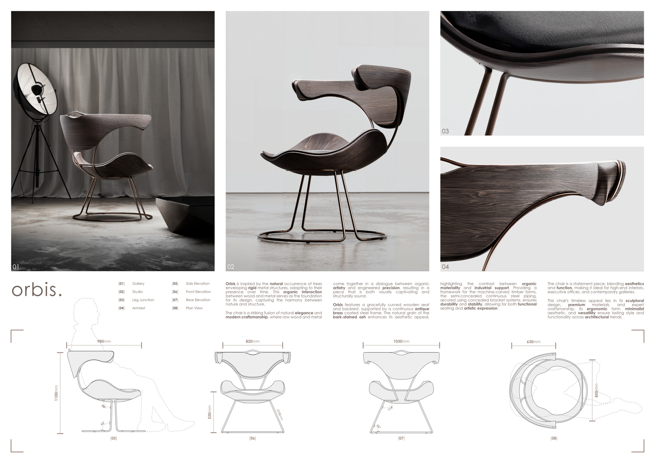 The three primary images at the top of the page provide a comprehensive view of the chair from multiple angles, ensuring that a viewer fully understands its structure, materials, and craftsmanship. The contrast between the chair and its industrial background creates strong visual interest without overwhelming the clarity of the design. Read more However, it raises a question—does this setting truly reflect the intended environment for the chair? The inclusion of production photos is a standout element, immediately communicating the level of craftsmanship and reinforcing that this is a realized, tested project, likely developed by a team. This tangible proof of execution adds credibility and impact. The text is well-structured, using clear titles and short, well-organized paragraphs with subtitles that highlight key points. One area for improvement is annotation. Adding callouts directly on the images—highlighting joint construction, materials, and dimensions—would provide additional clarity and make the presentation even stronger.