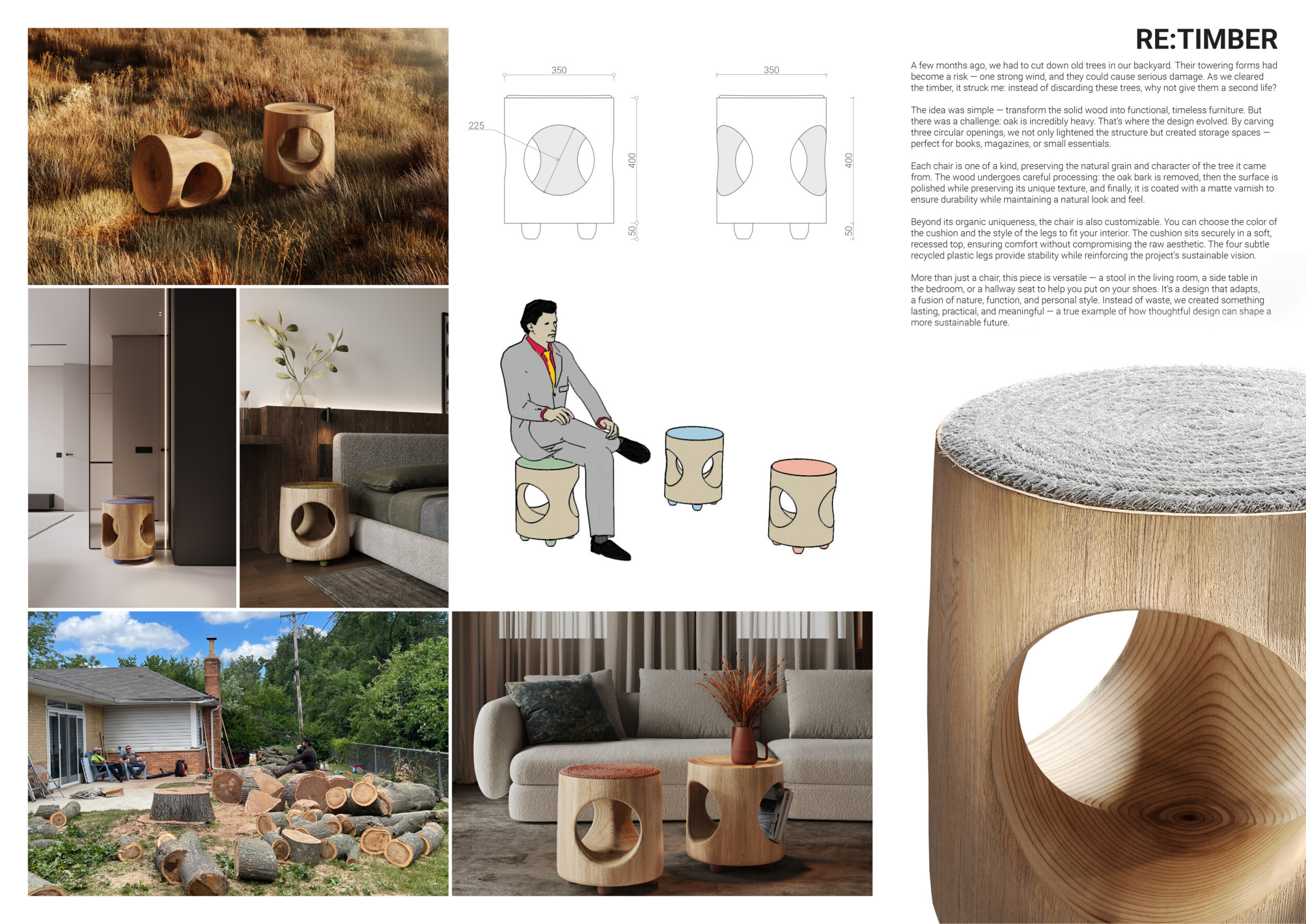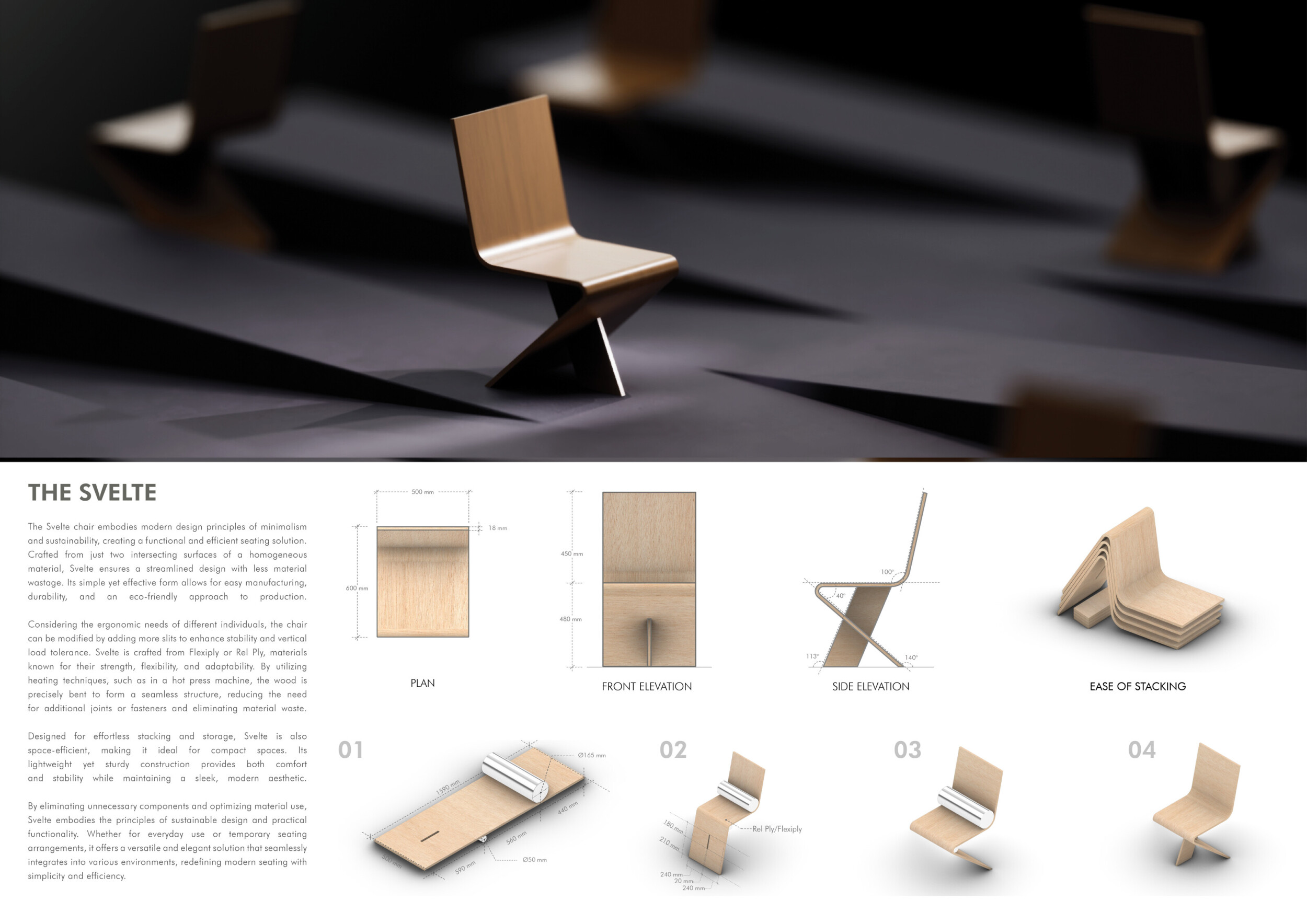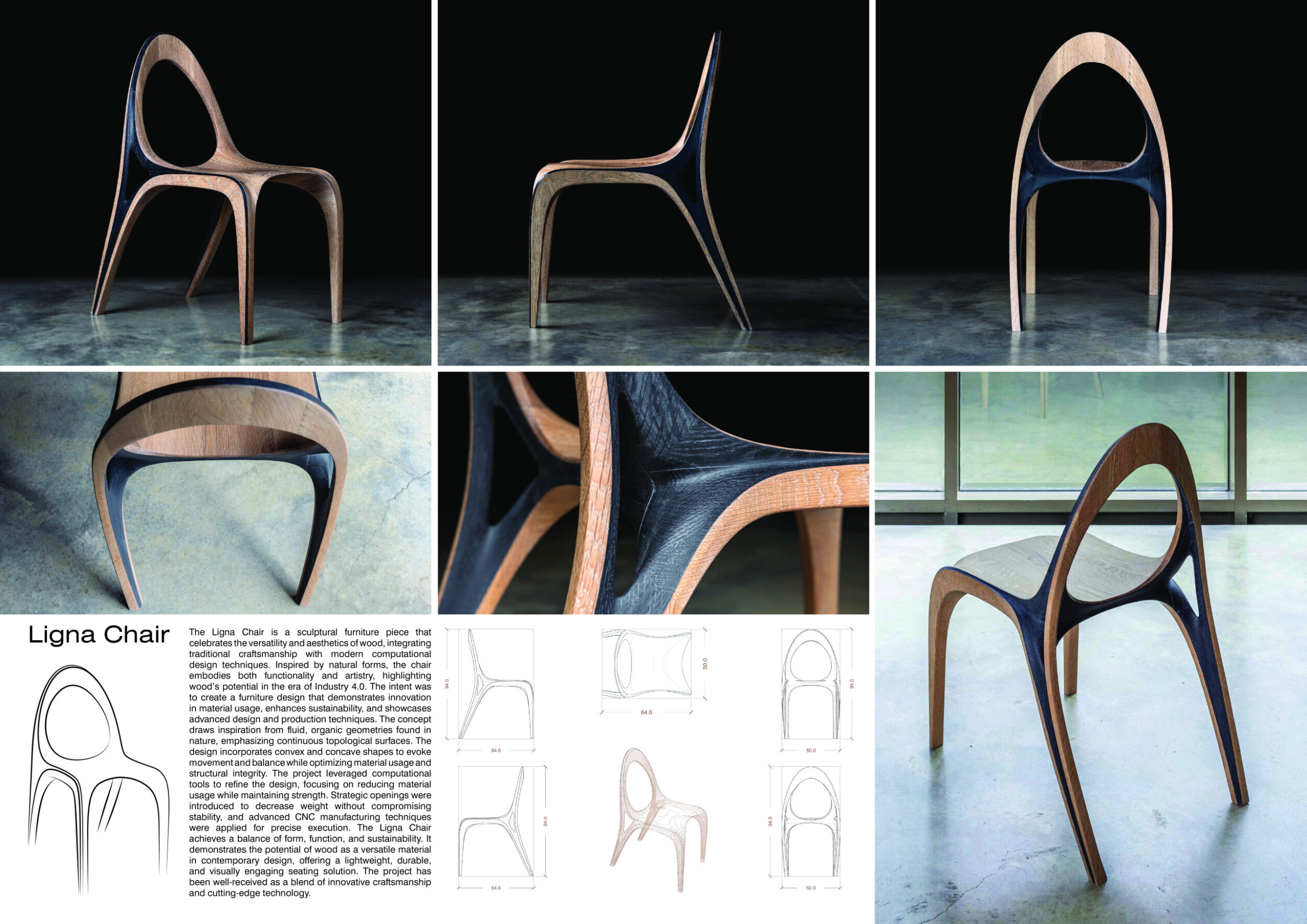 A thoughtfully designed, well-crafted piece that merges digital precision with traditional woodworking expertise. Its ergonomic refinements and sustainable material choices add value to its functional and environmental considerations. Further explorations into adaptability, stackability, or multi-purpose use could elevate its versatility without compromising its minimalist elegance. It suggests a well-thought-out seating experience, but I am a little concerned about the statics in the legs: it seems like they will need a beam in between.
