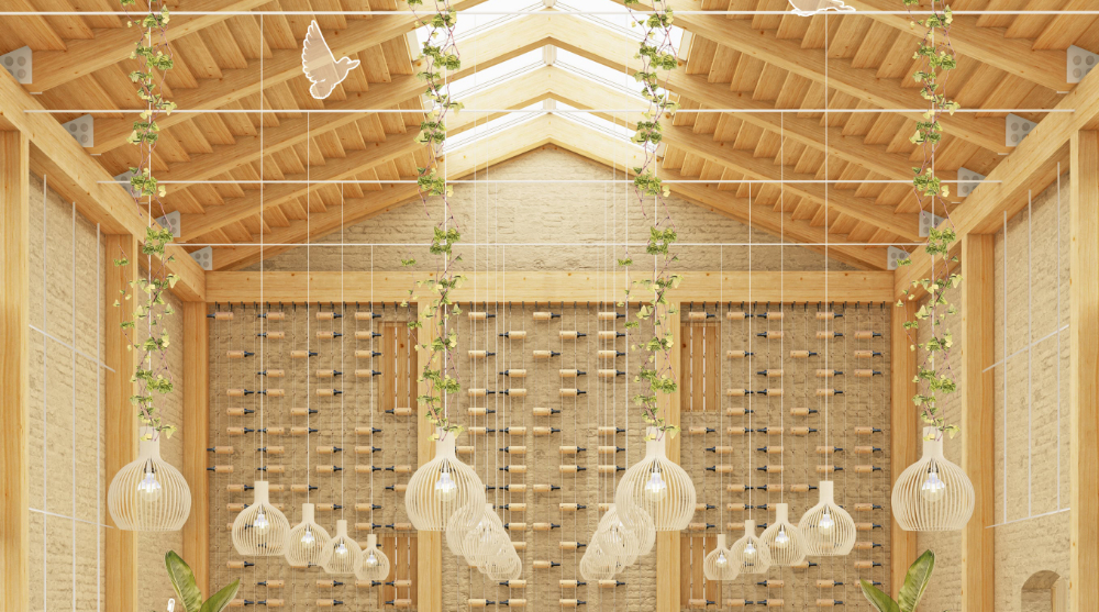First prize winners Adil Yirmibeş and Ozan Yalçın from Turkey designed a series of rectangular structures around a central courtyard, restoring the existing two-storey building as a wine-tasting space. The jury found the project to be an “elegant proposal that artfully incorporates the existing building and sustainable local materials.”
