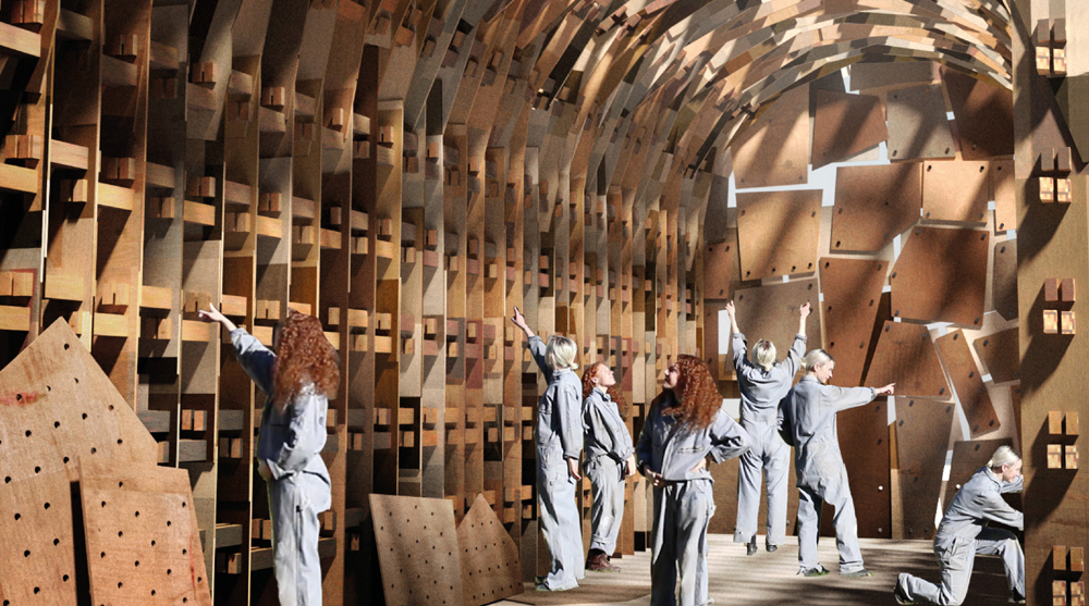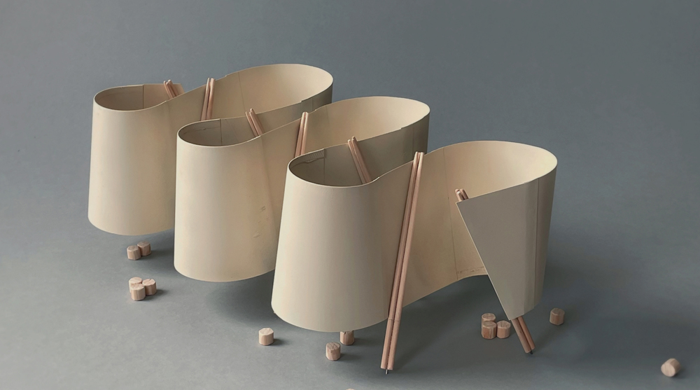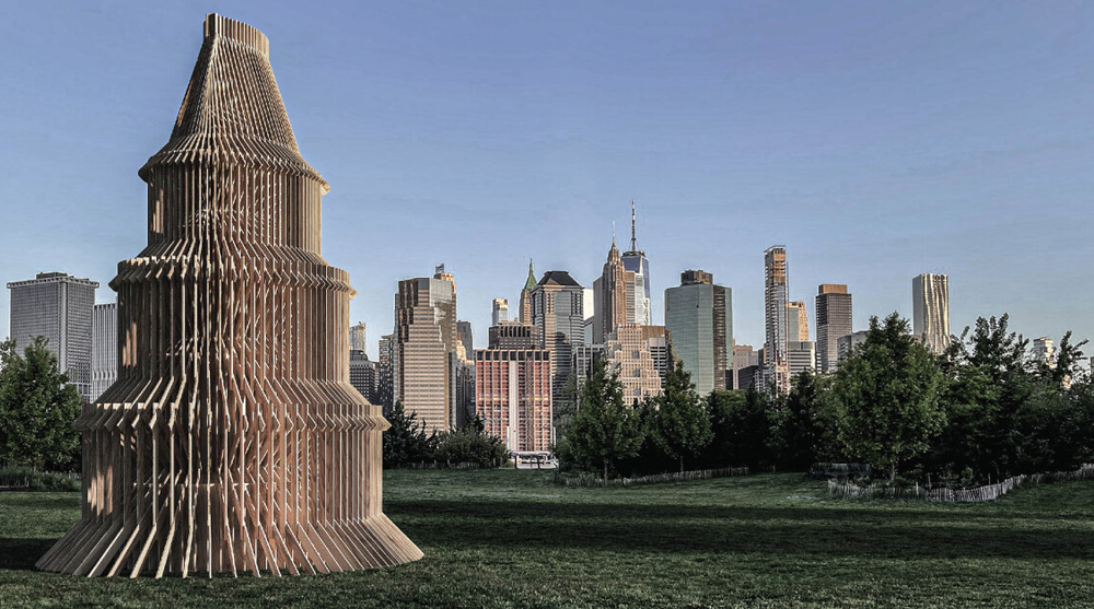 First prize and the Aapparel Sustainability Award went to architecture designer Emma Jurczynski from the UK. Her ‘Rough Cut’ project proposed a pavilion to be constructed of reused or leftover timber elements. She inventively chose to locate her structure in industrial Red Hook in New York, adjacent to an IKEA store. The jury writes, “This submission embodies how we should be thinking about timber in the present day and future. The scrap and leftovers in the building industry offer a huge potential to rethink the design process according to the availability of the construction material.”