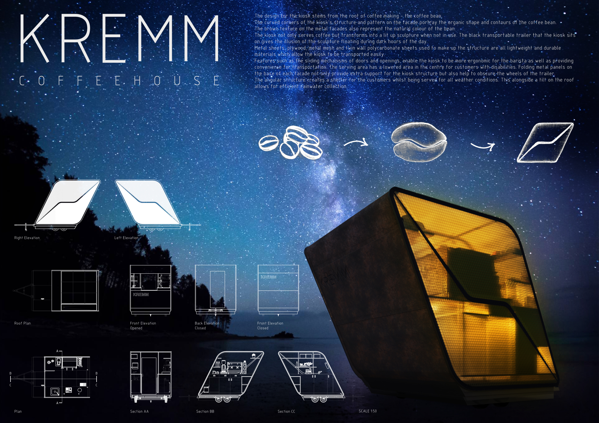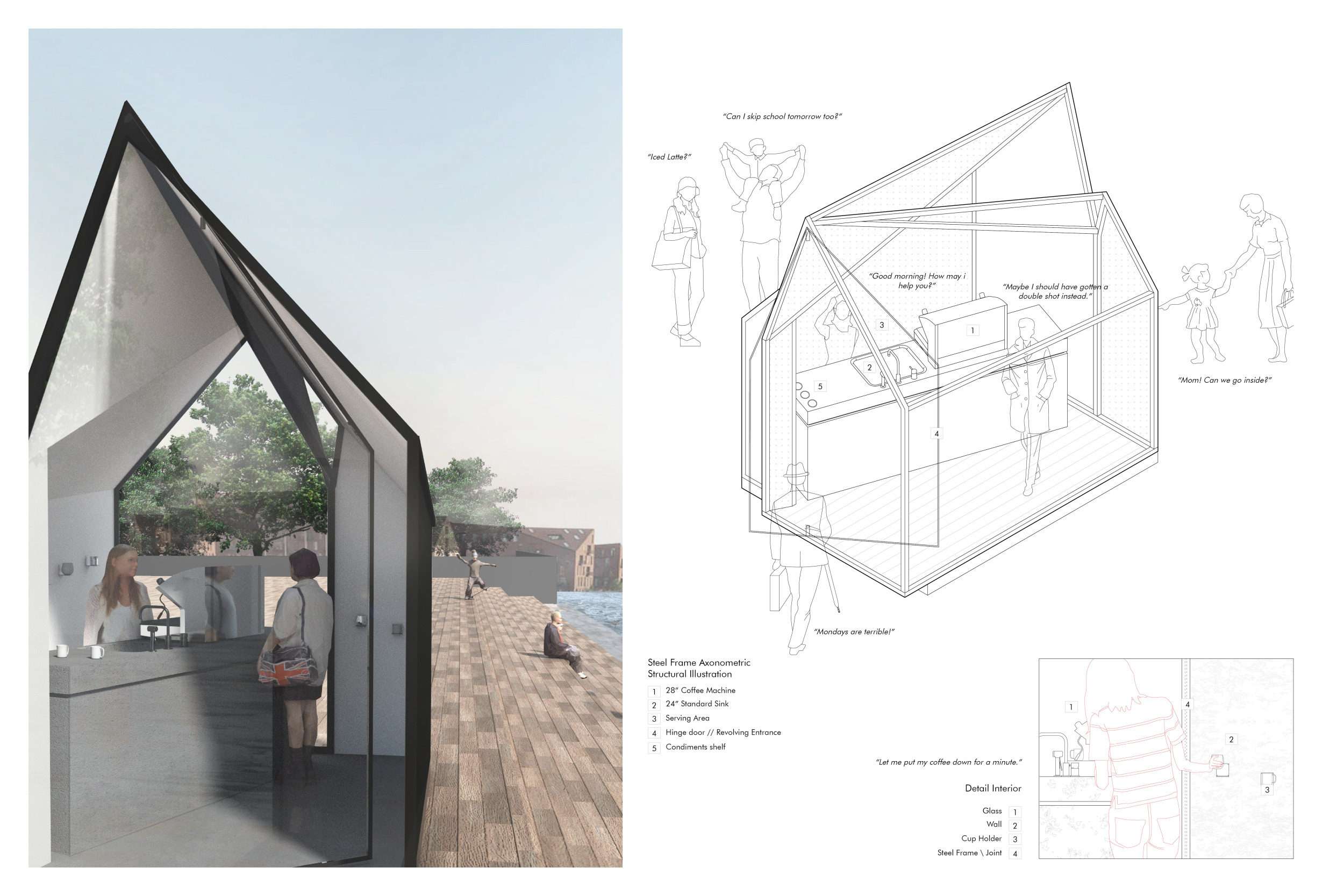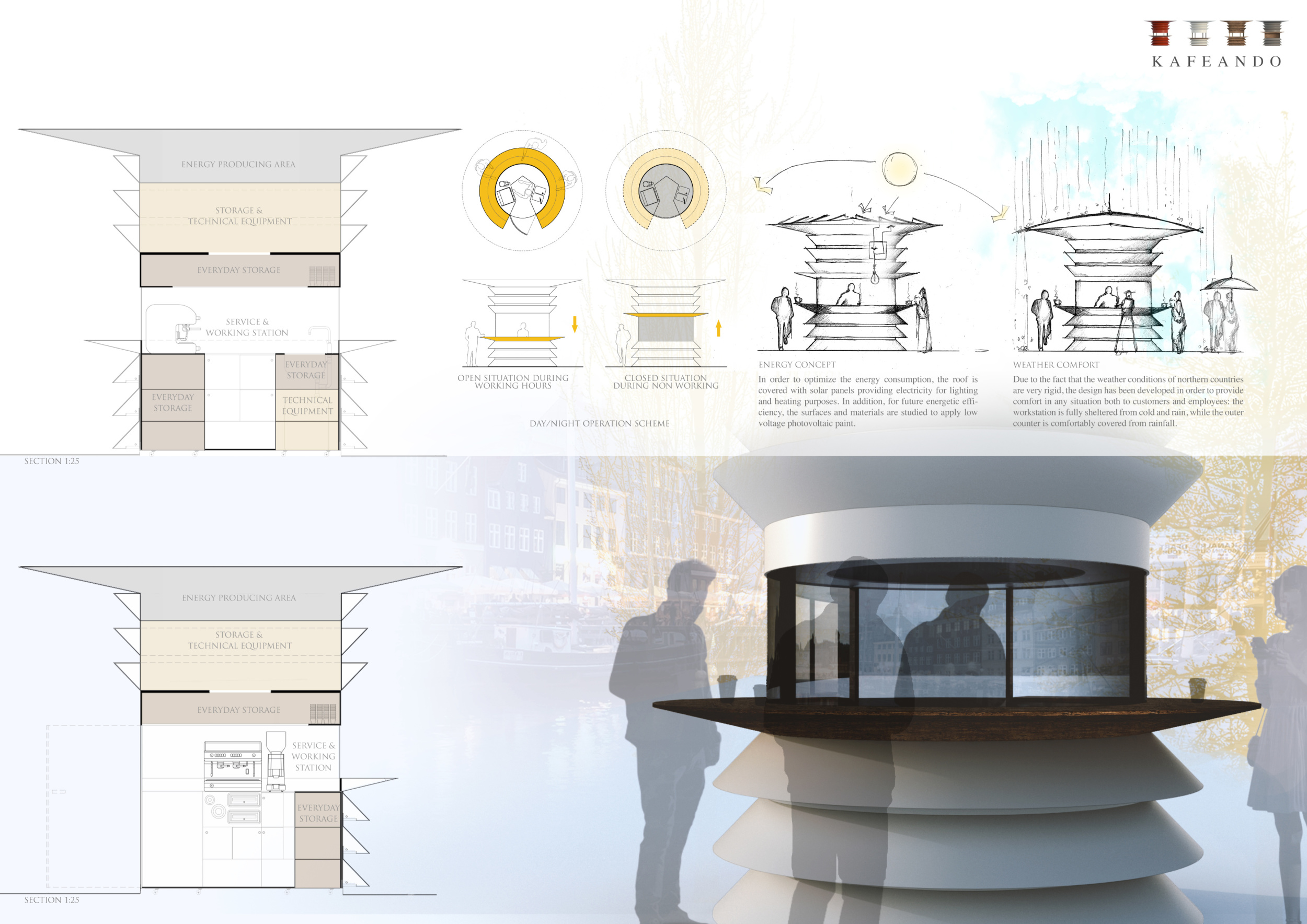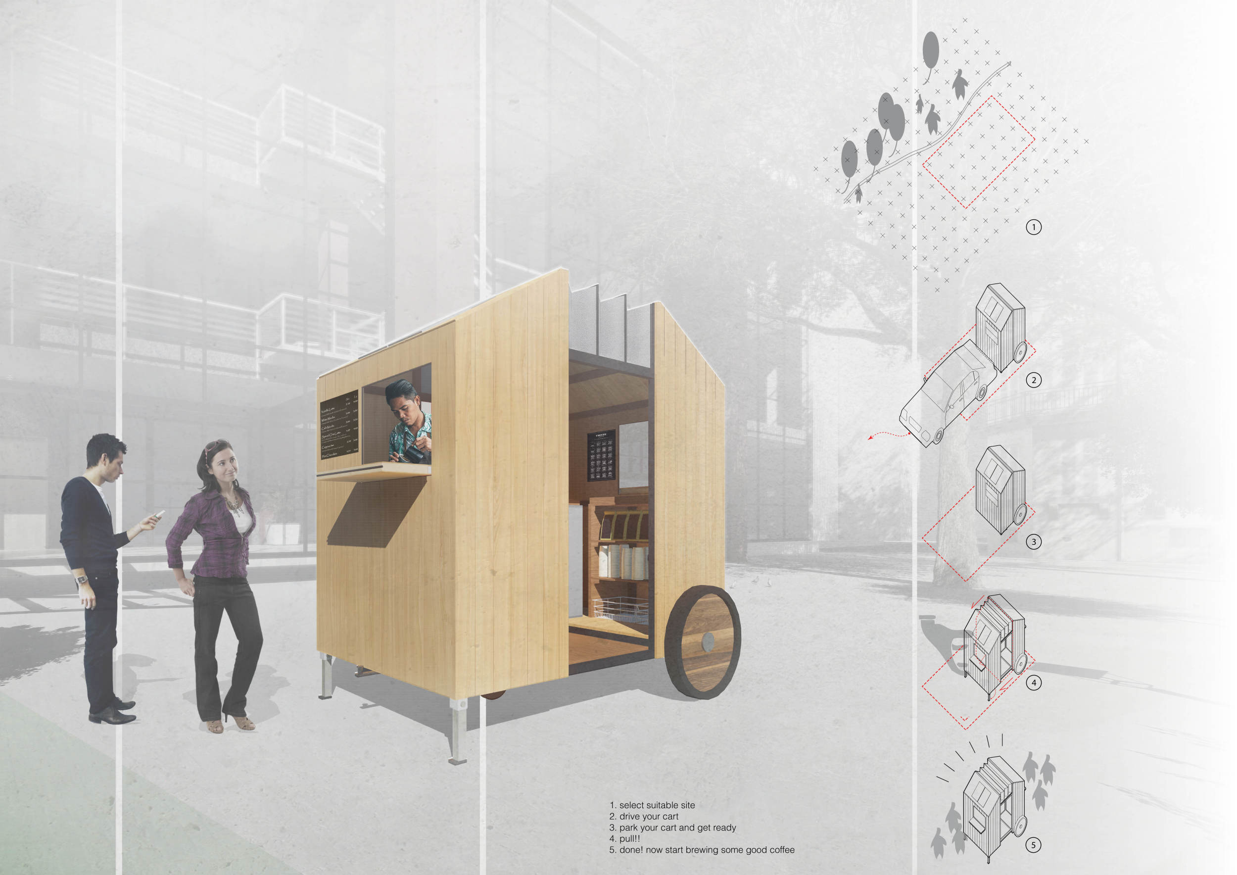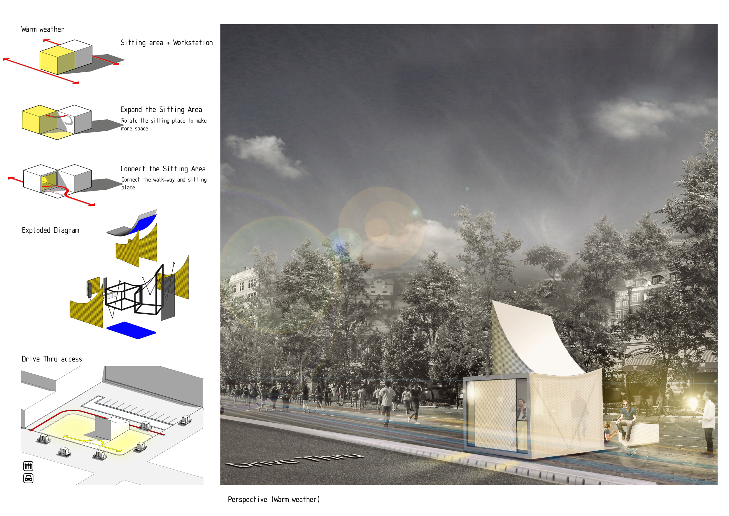 Participants of this competition were tasked with expanding the premise of the modern coffee shop, creating a design that could be easily replicated in miniscule locations across northern Europe. They were asked to look past the traditional lounge motif that permeates today’s coffee shop culture, and create a new iconic look for the caffeine dispensary.