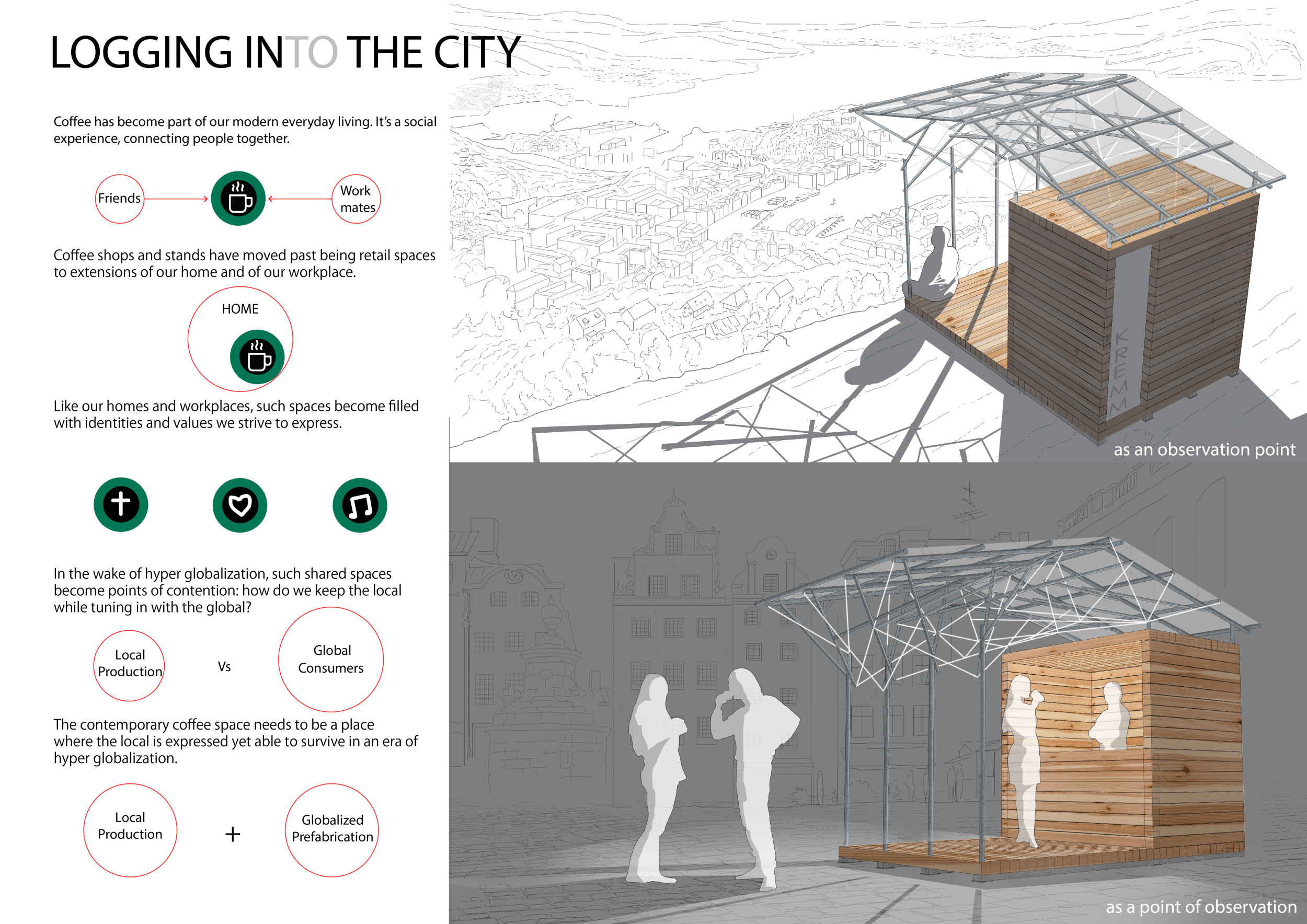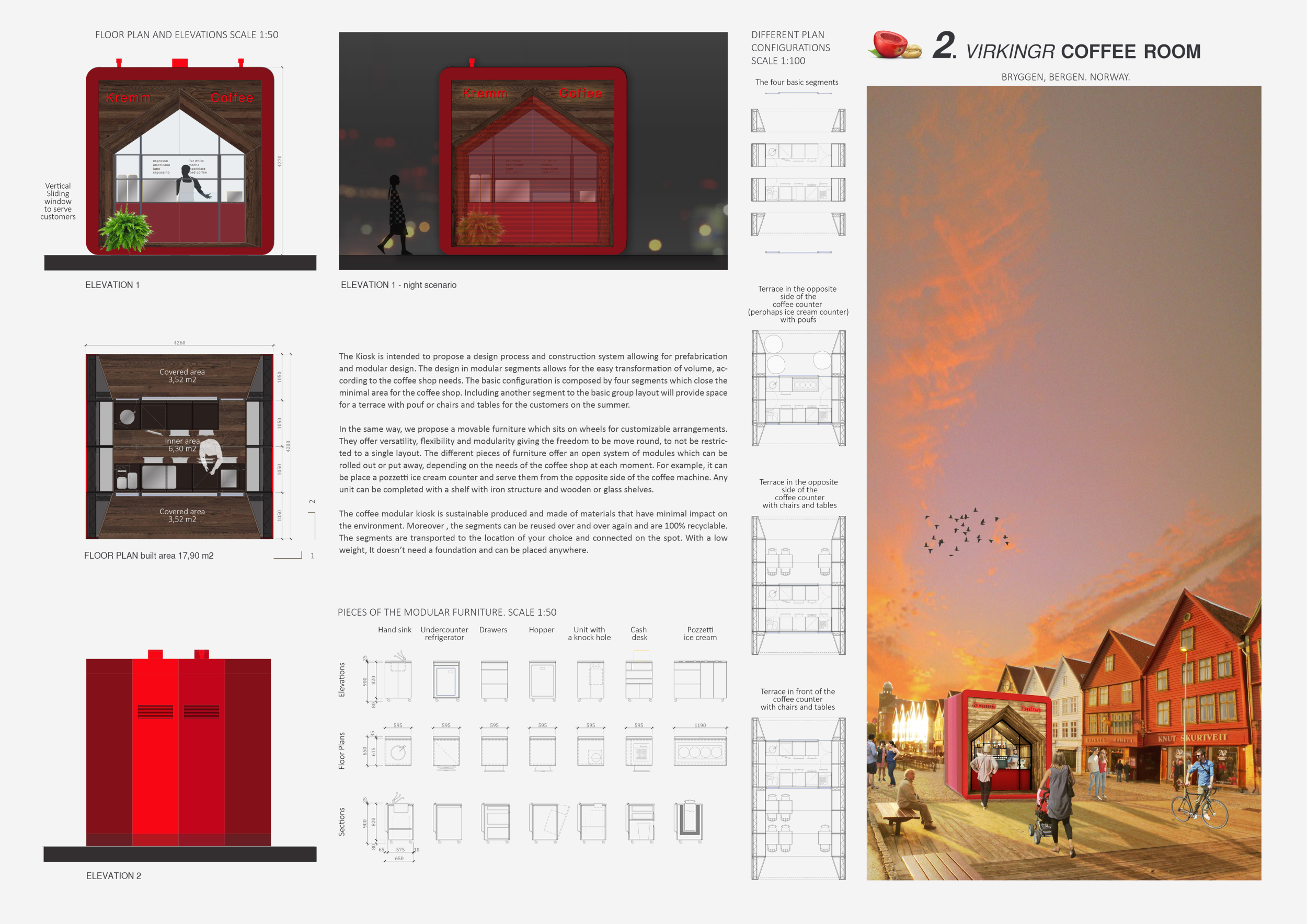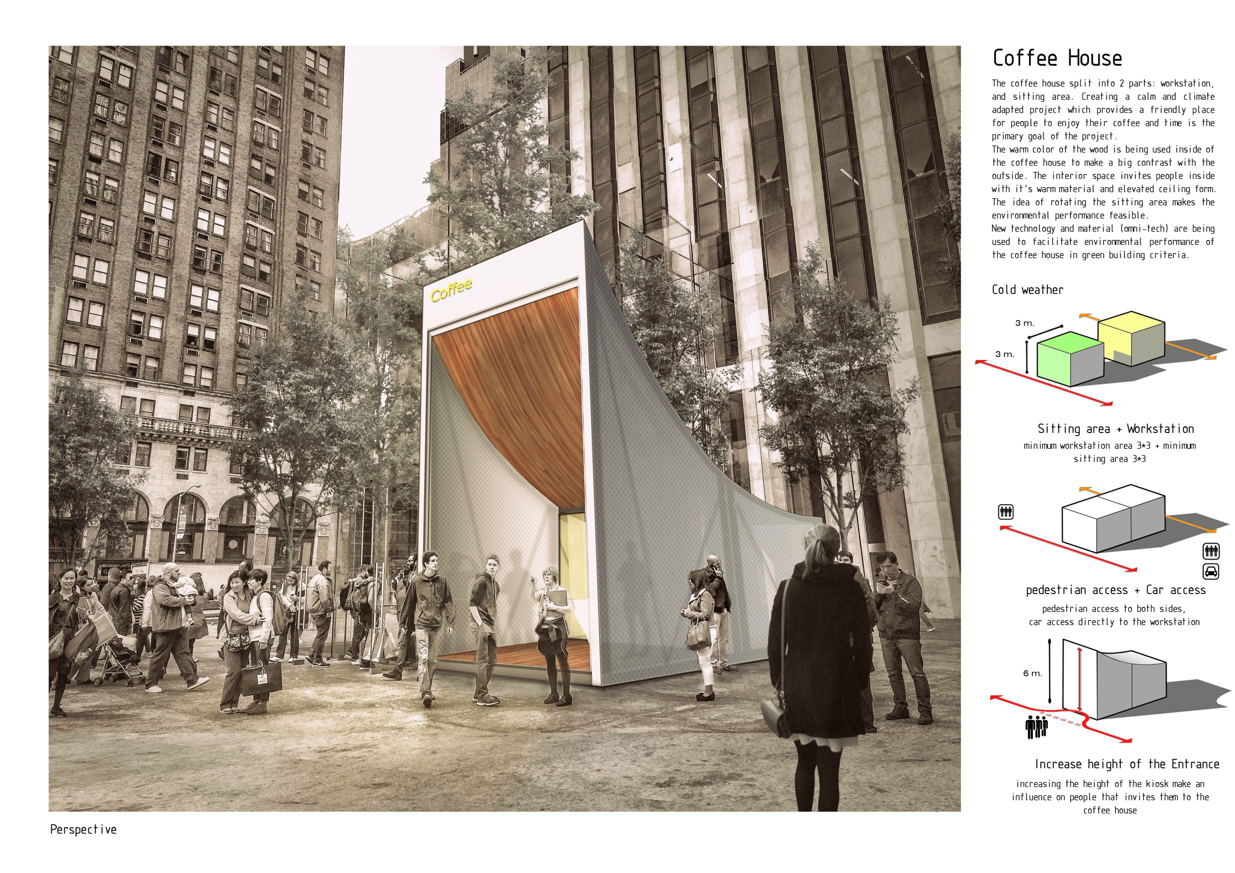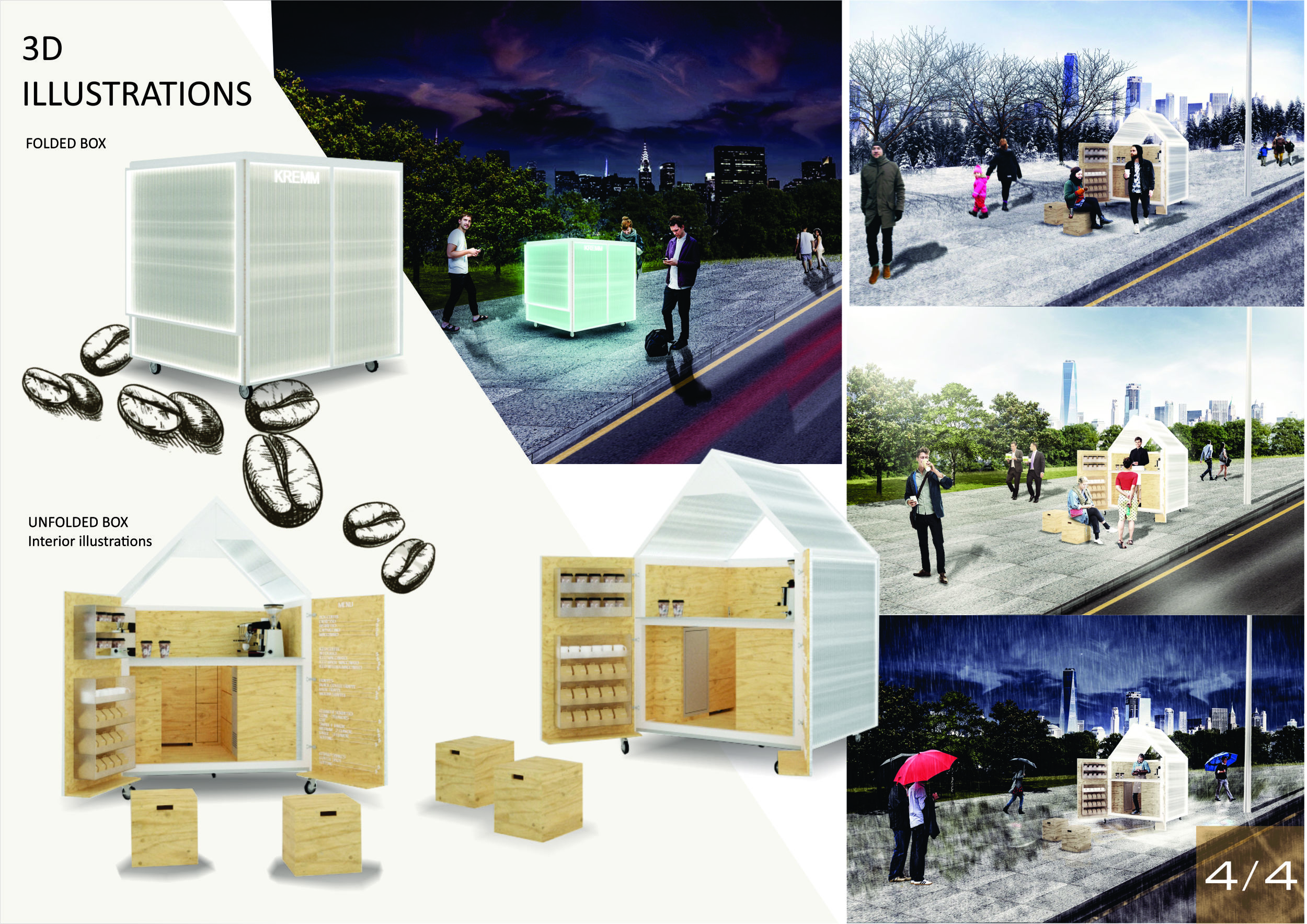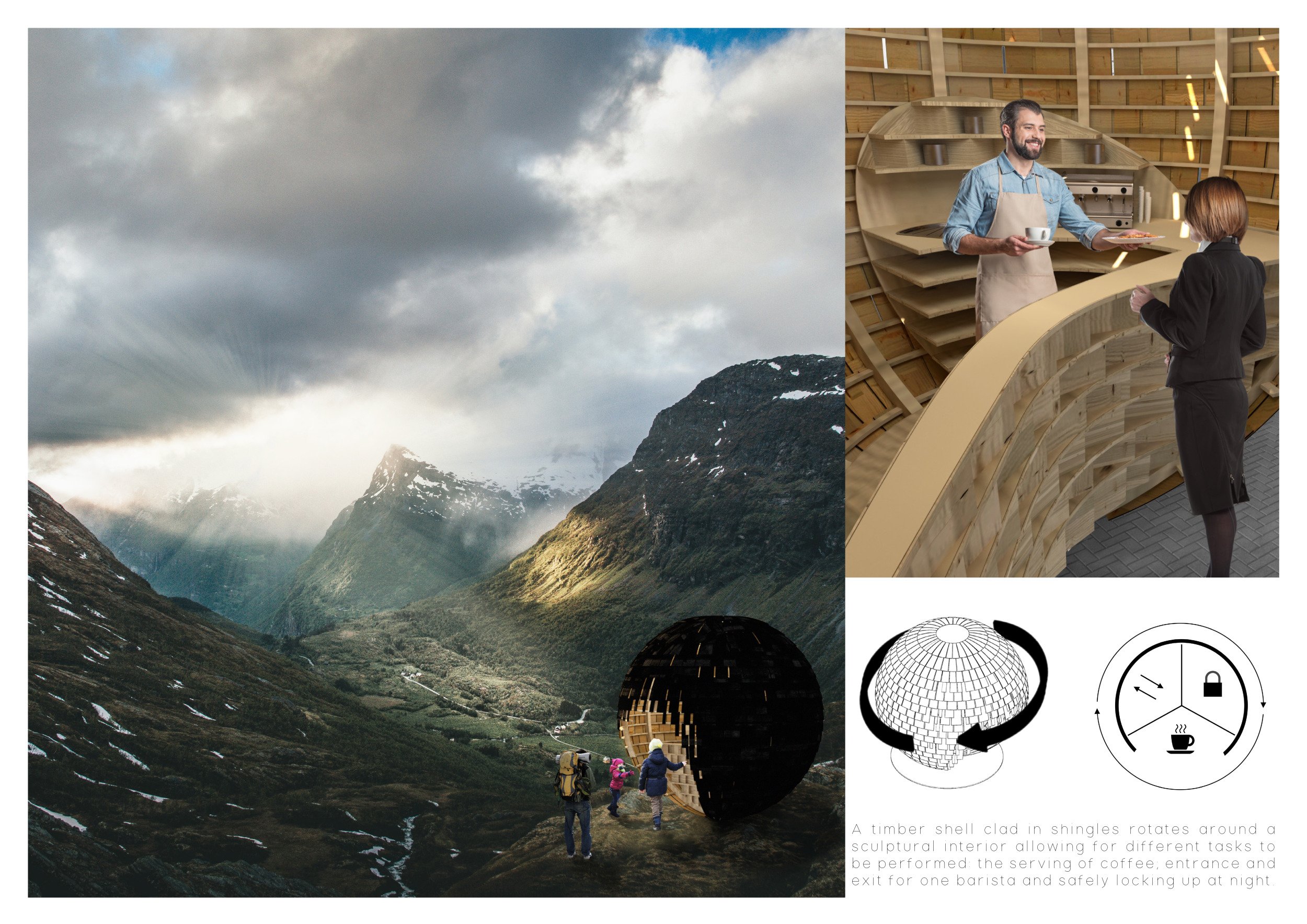 Participants of this competition were tasked with expanding the premise of the modern coffee shop, creating a design that could be easily replicated in miniscule locations across northern Europe. They were asked to look past the traditional lounge motif that permeates today’s coffee shop culture, and create a new iconic look for the caffeine dispensary.
