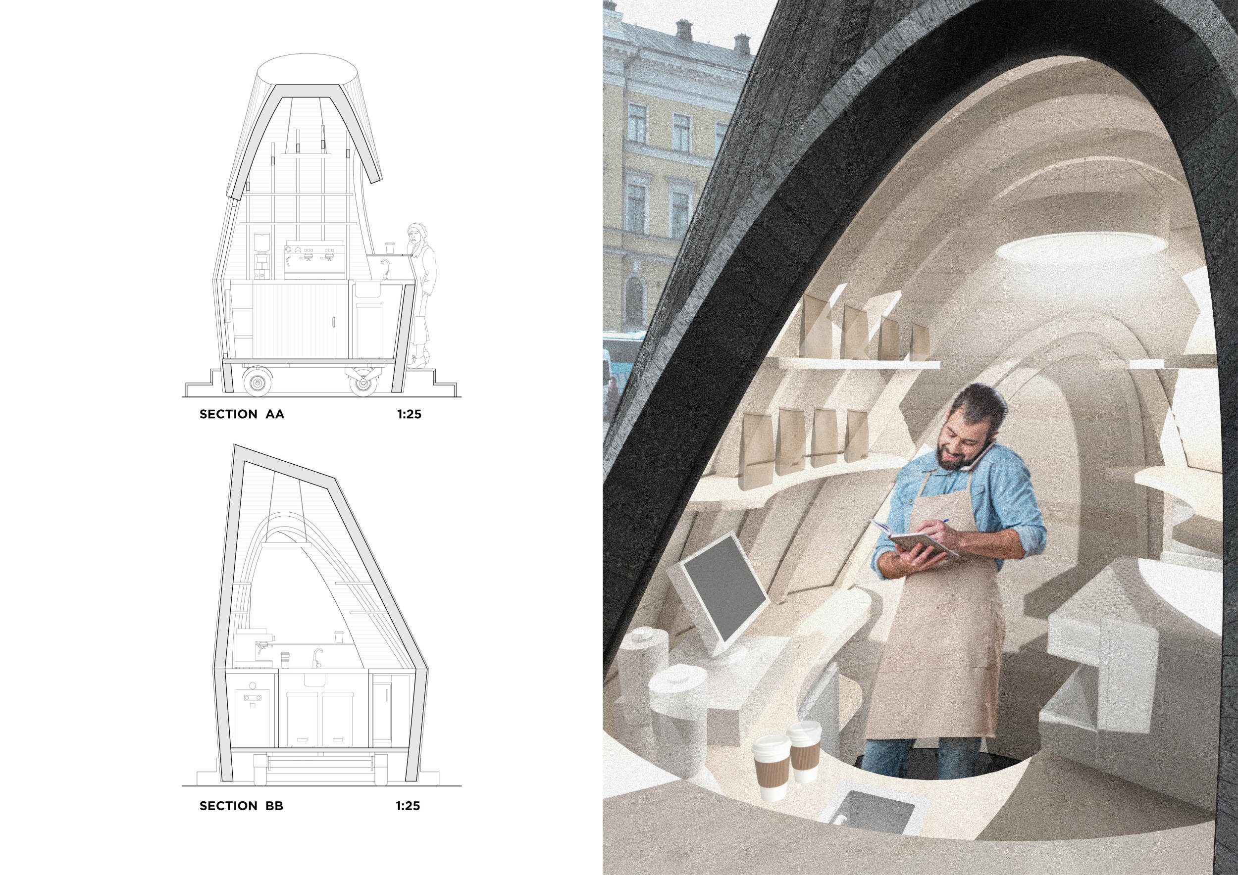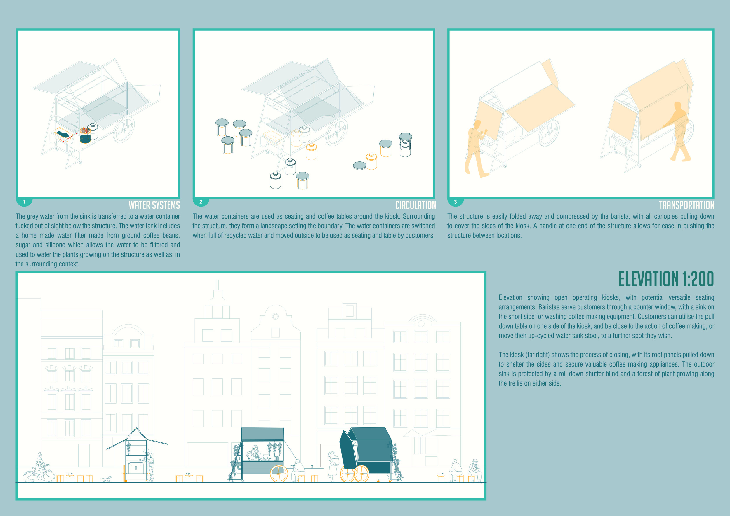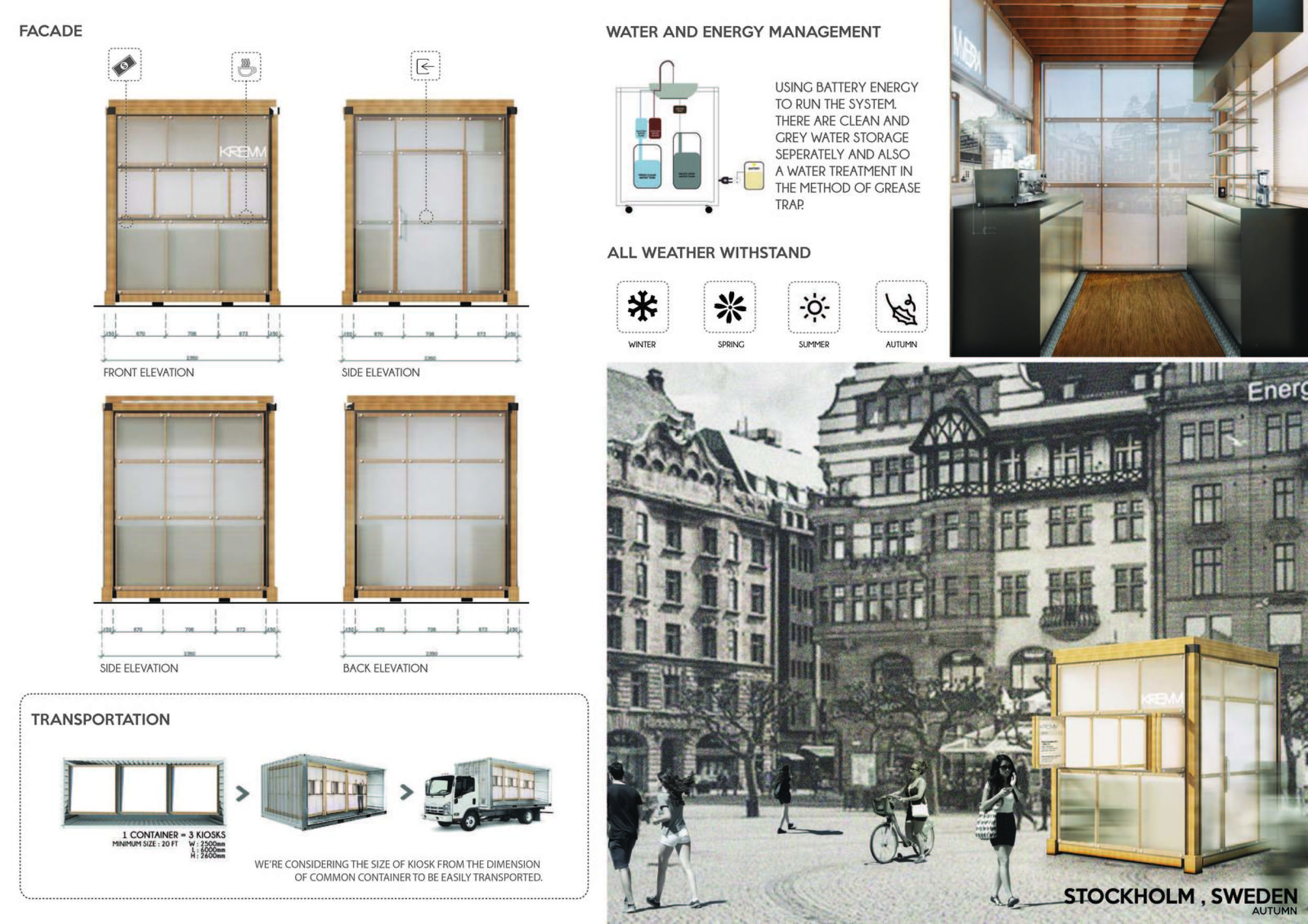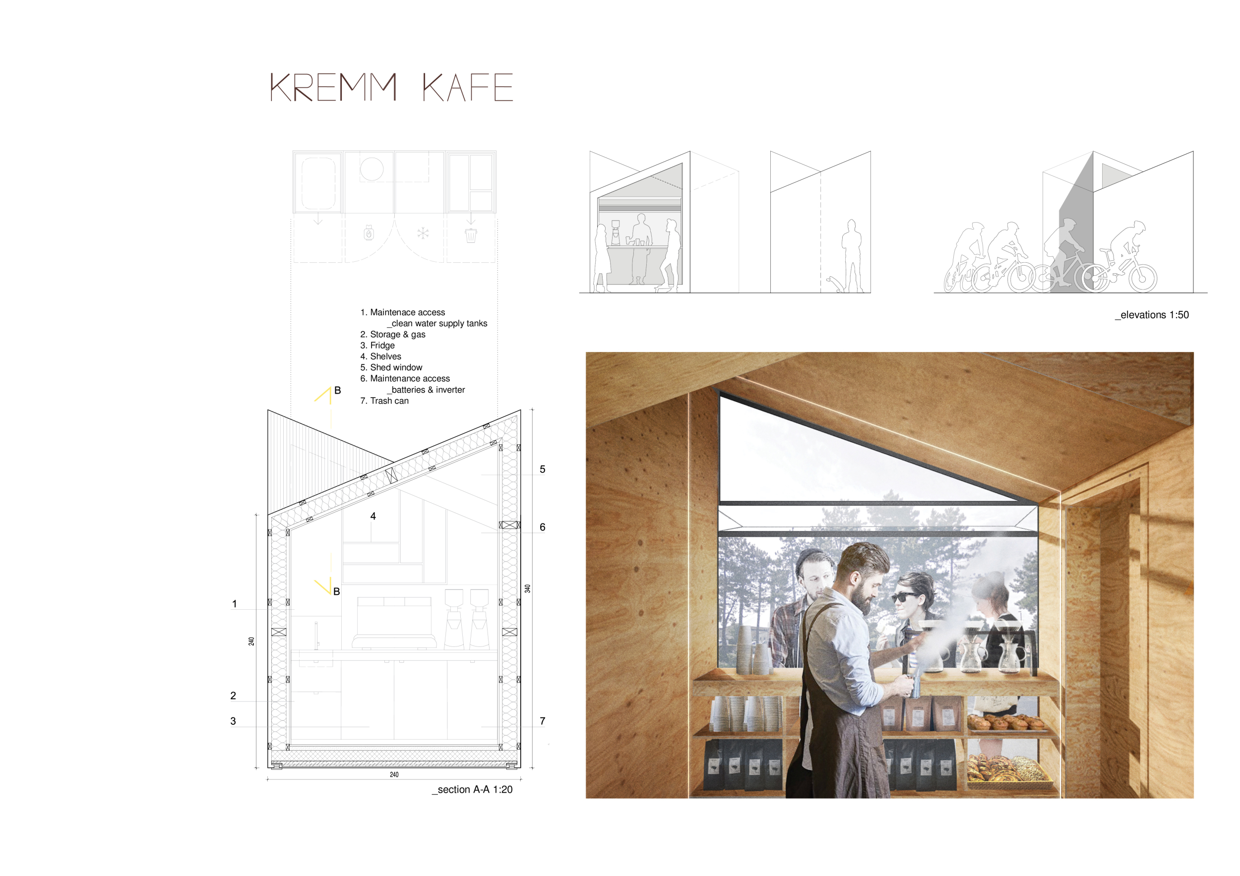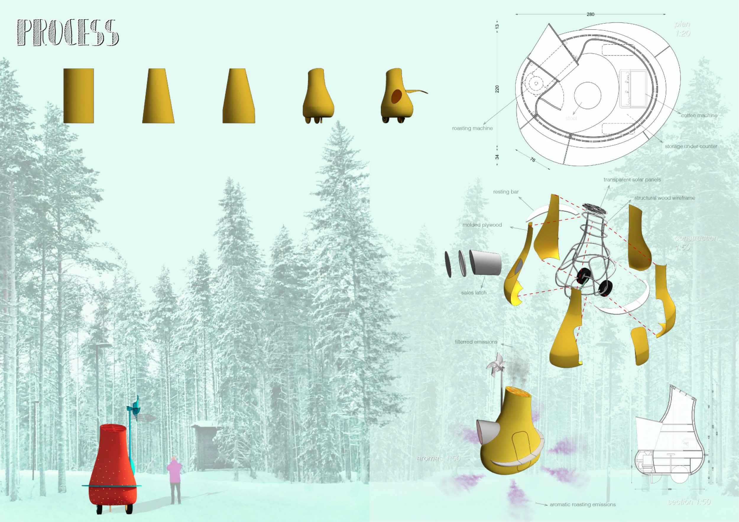 Participants of this competition were tasked with expanding the premise of the modern coffee shop, creating a design that could be easily replicated in miniscule locations across northern Europe. They were asked to look past the traditional lounge motif that permeates today’s coffee shop culture, and create a new iconic look for the caffeine dispensary.
