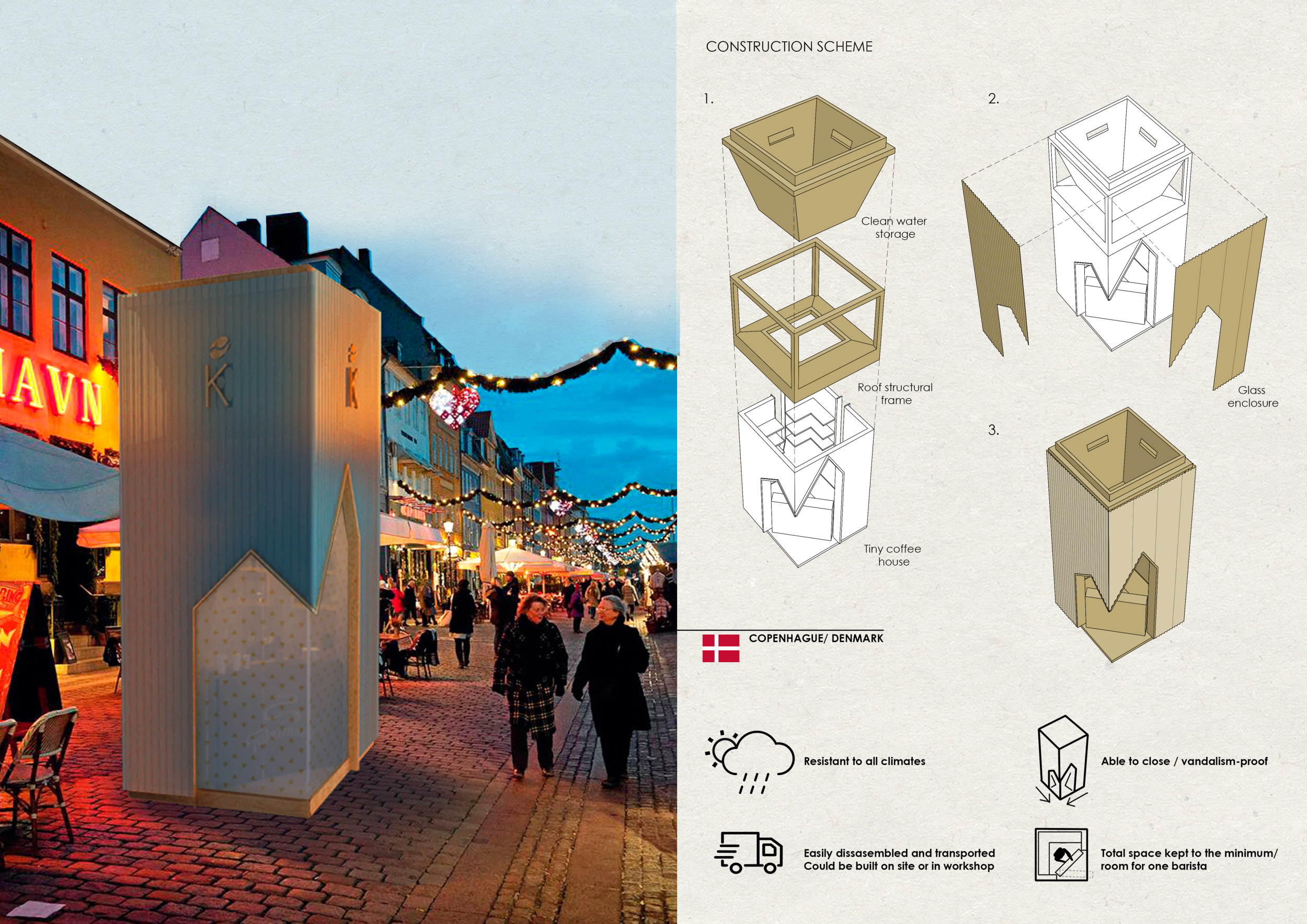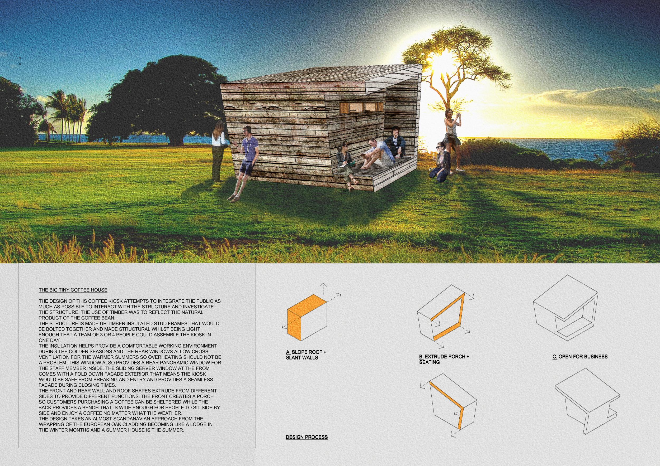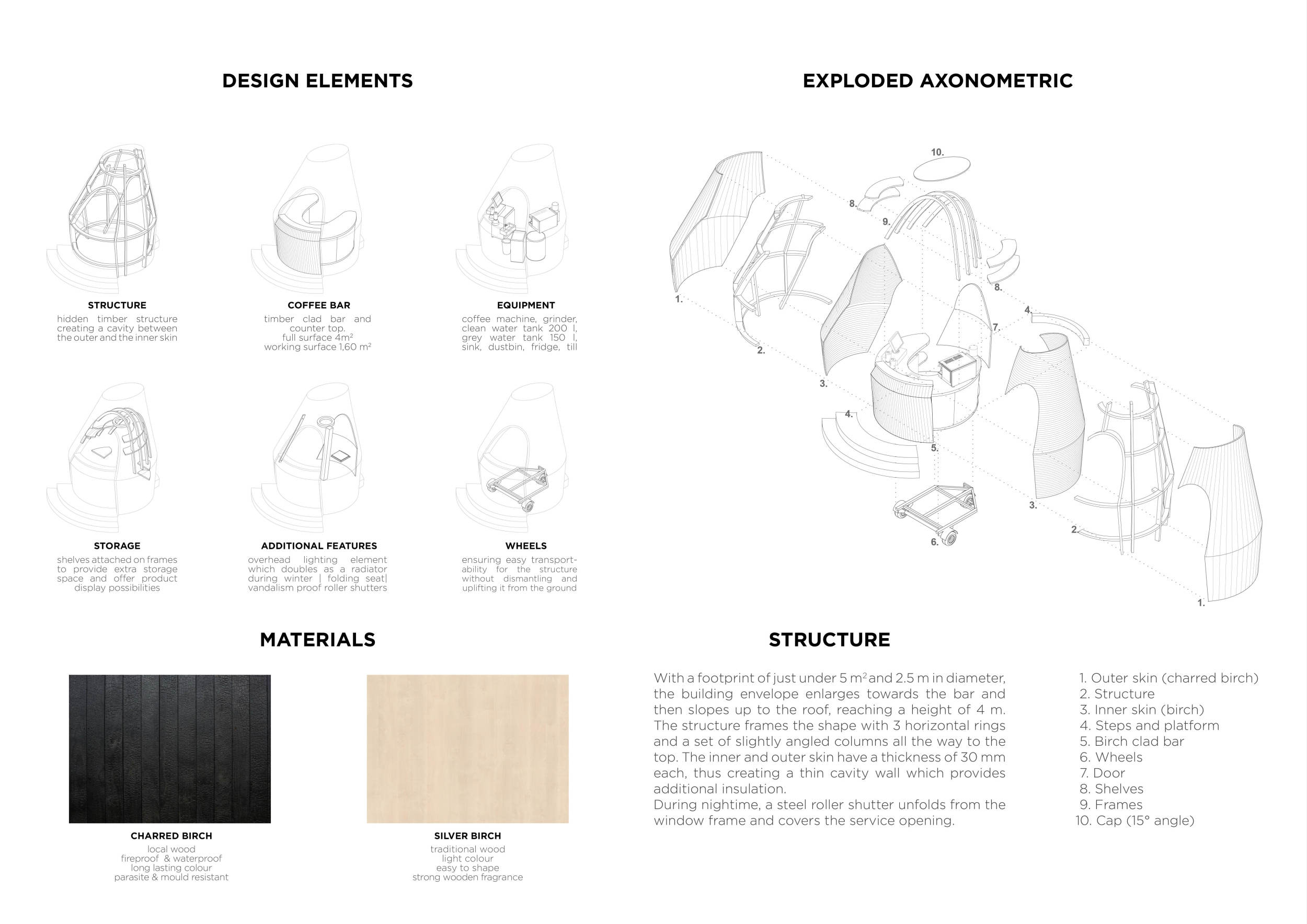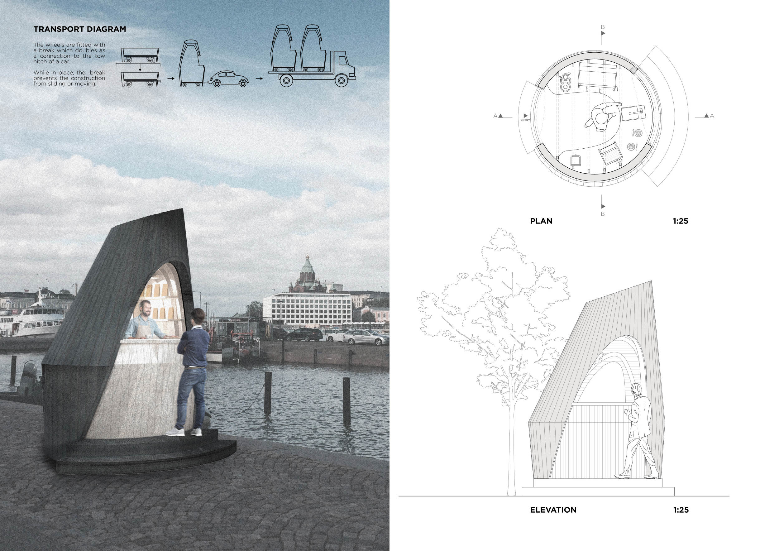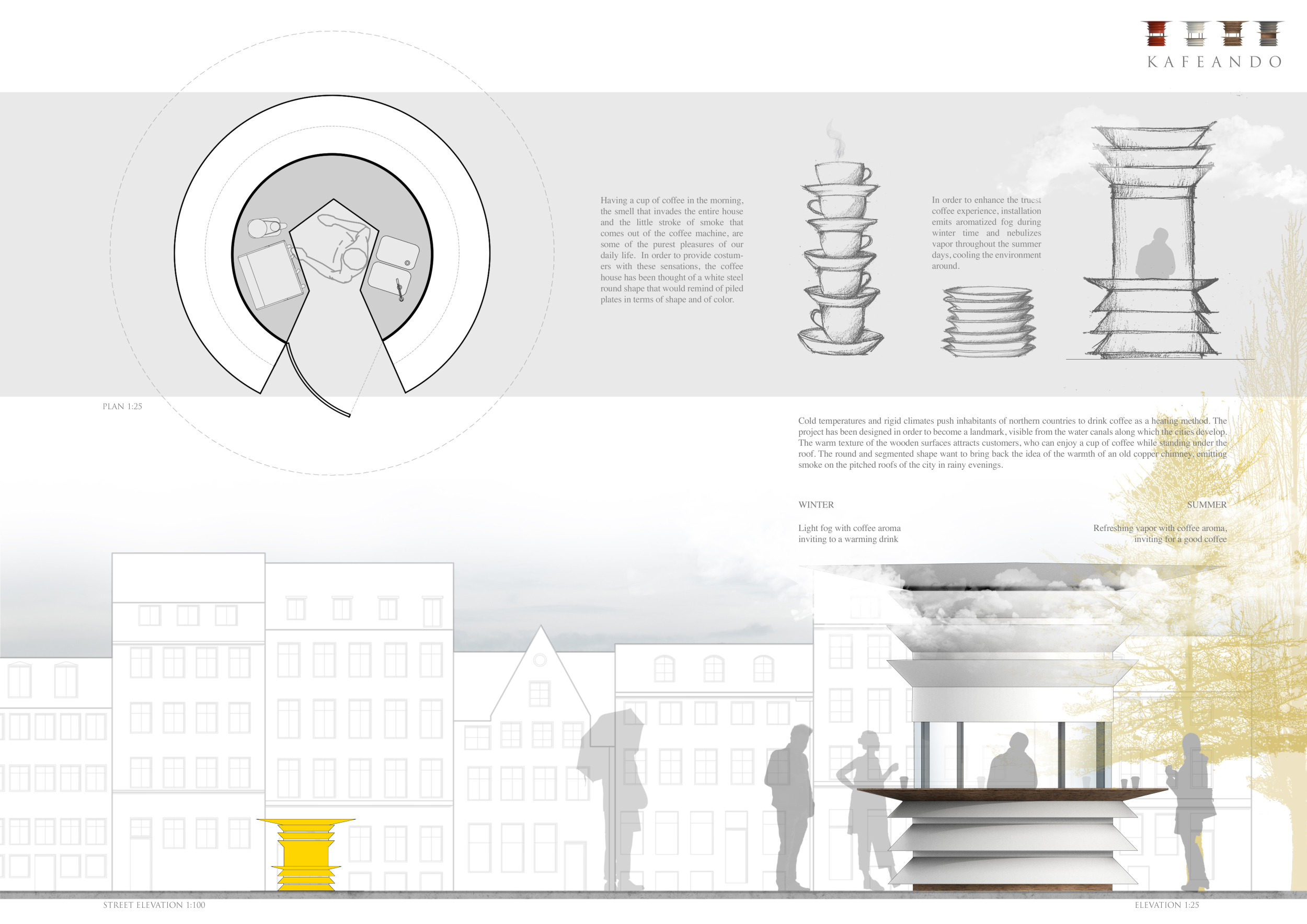 Participants of this competition were tasked with expanding the premise of the modern coffee shop, creating a design that could be easily replicated in miniscule locations across northern Europe. They were asked to look past the traditional lounge motif that permeates today’s coffee shop culture, and create a new iconic look for the caffeine dispensary.
