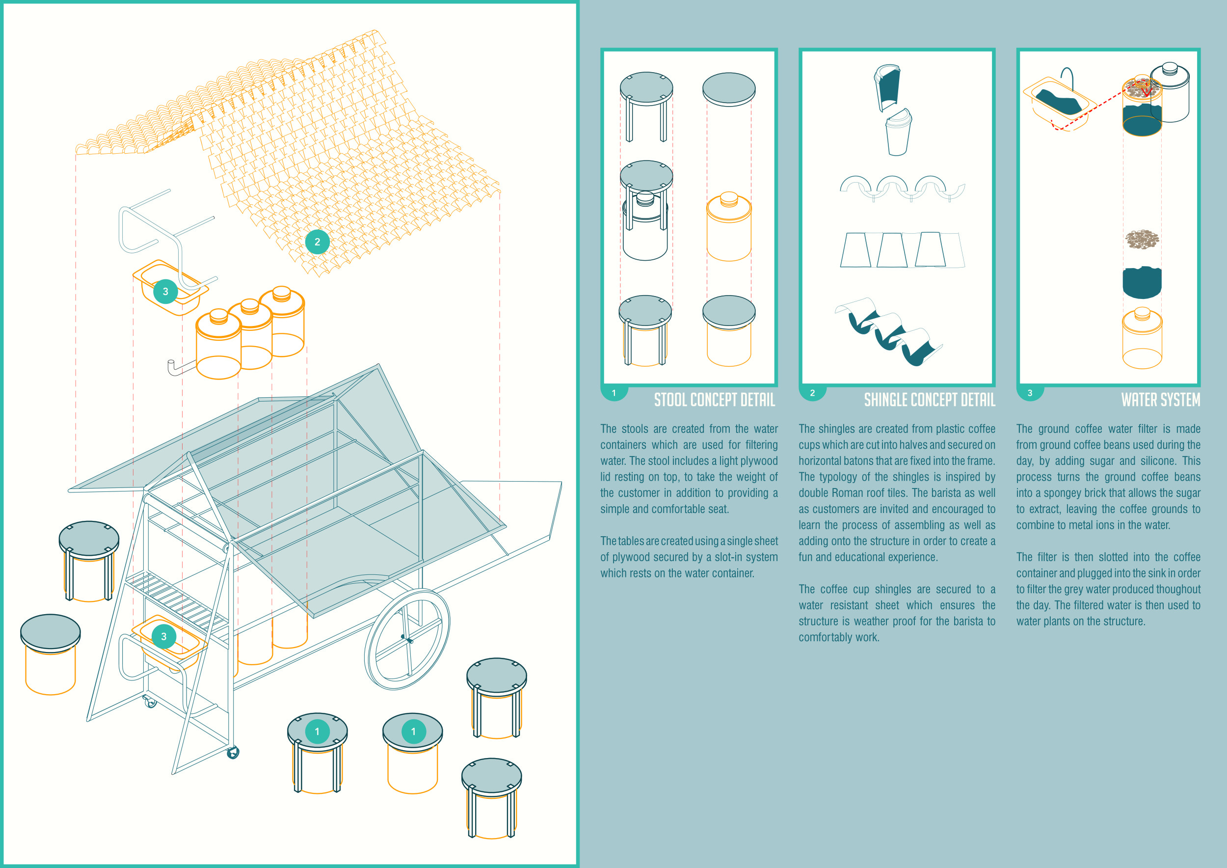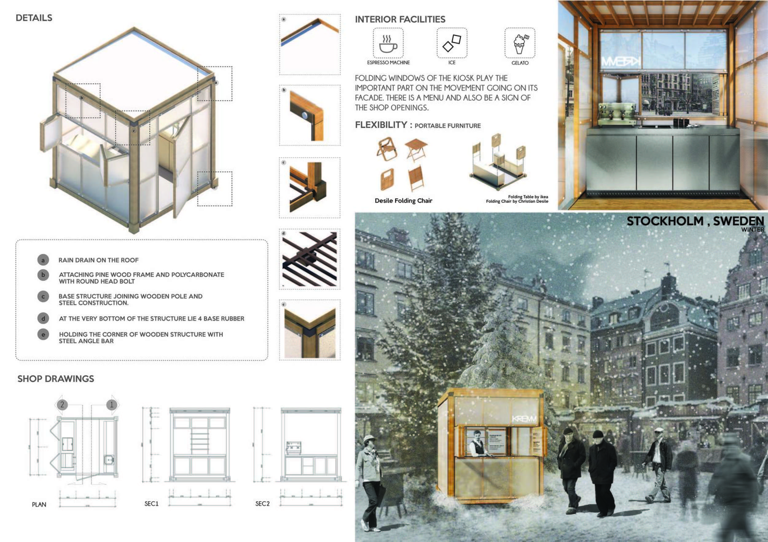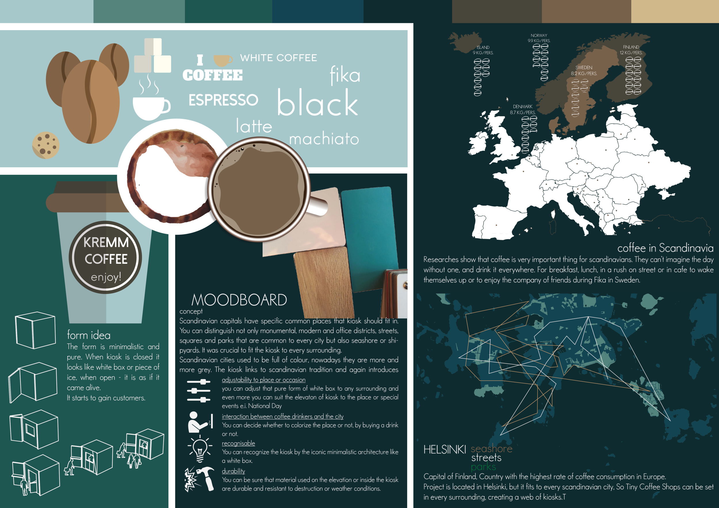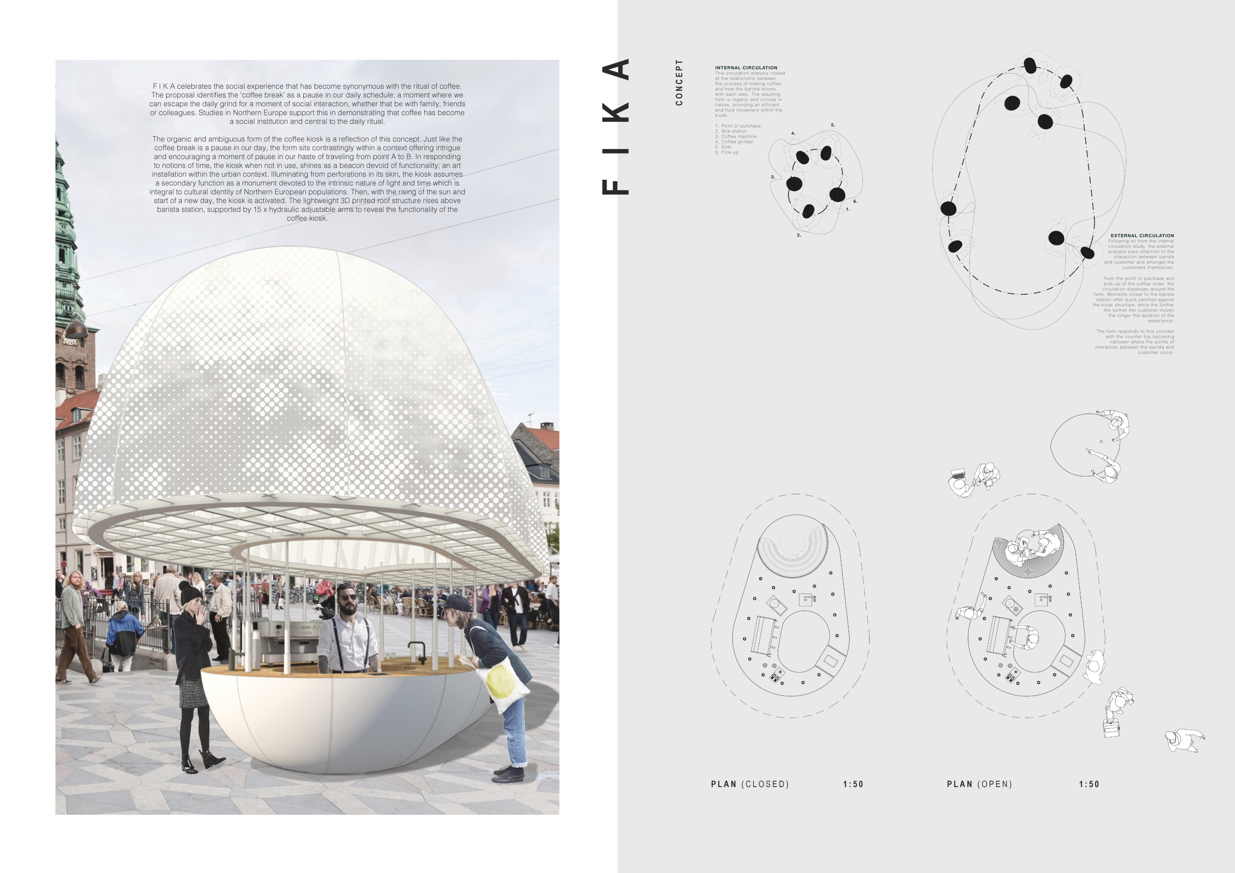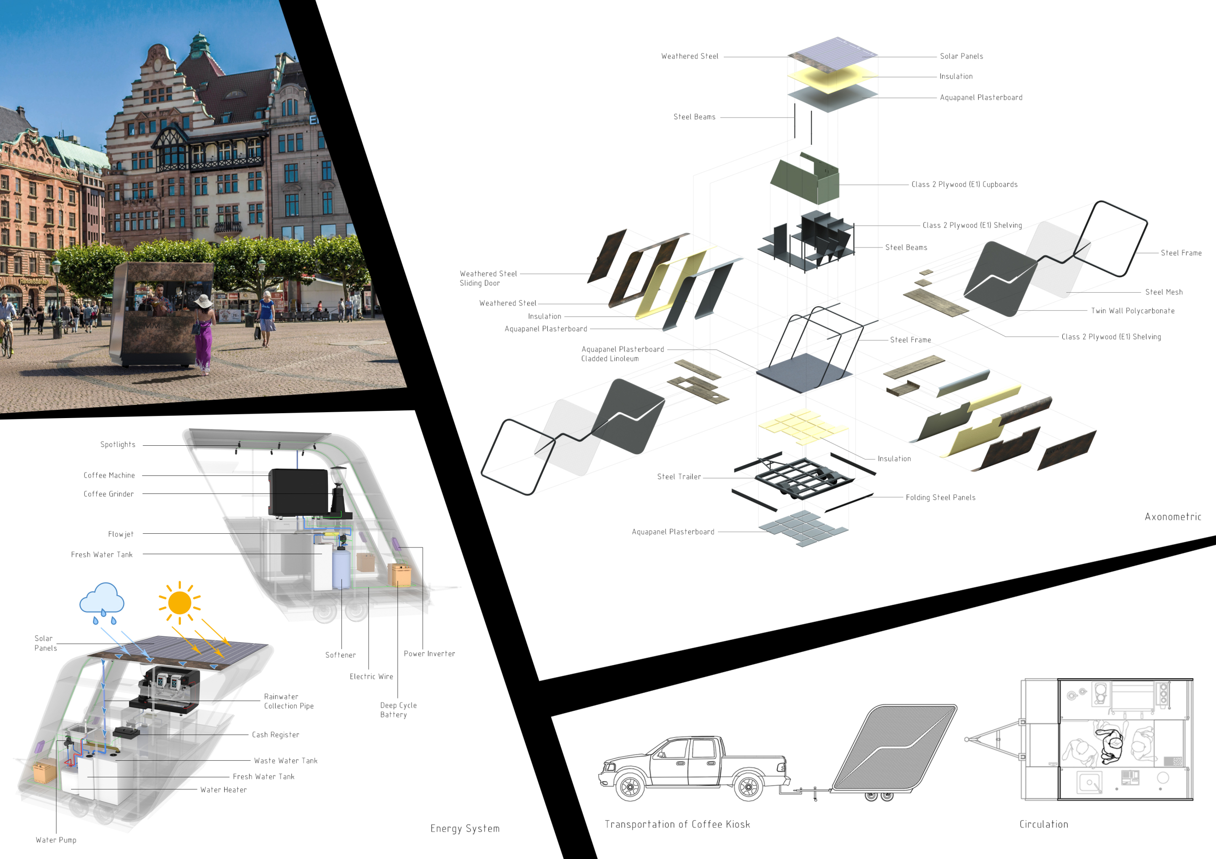 Participants of this competition were tasked with expanding the premise of the modern coffee shop, creating a design that could be easily replicated in miniscule locations across northern Europe. They were asked to look past the traditional lounge motif that permeates today’s coffee shop culture, and create a new iconic look for the caffeine dispensary.