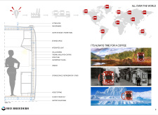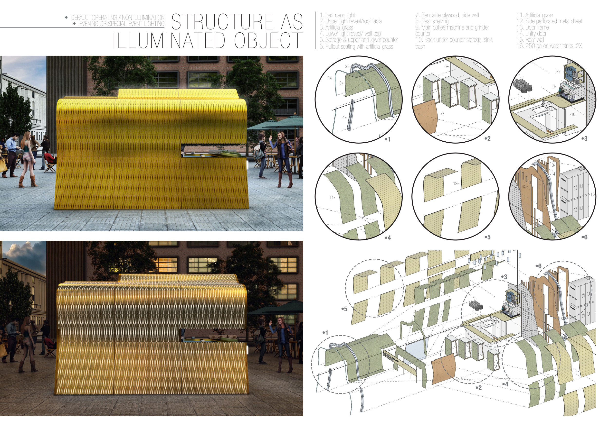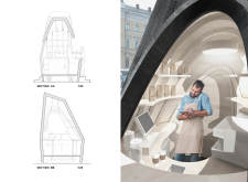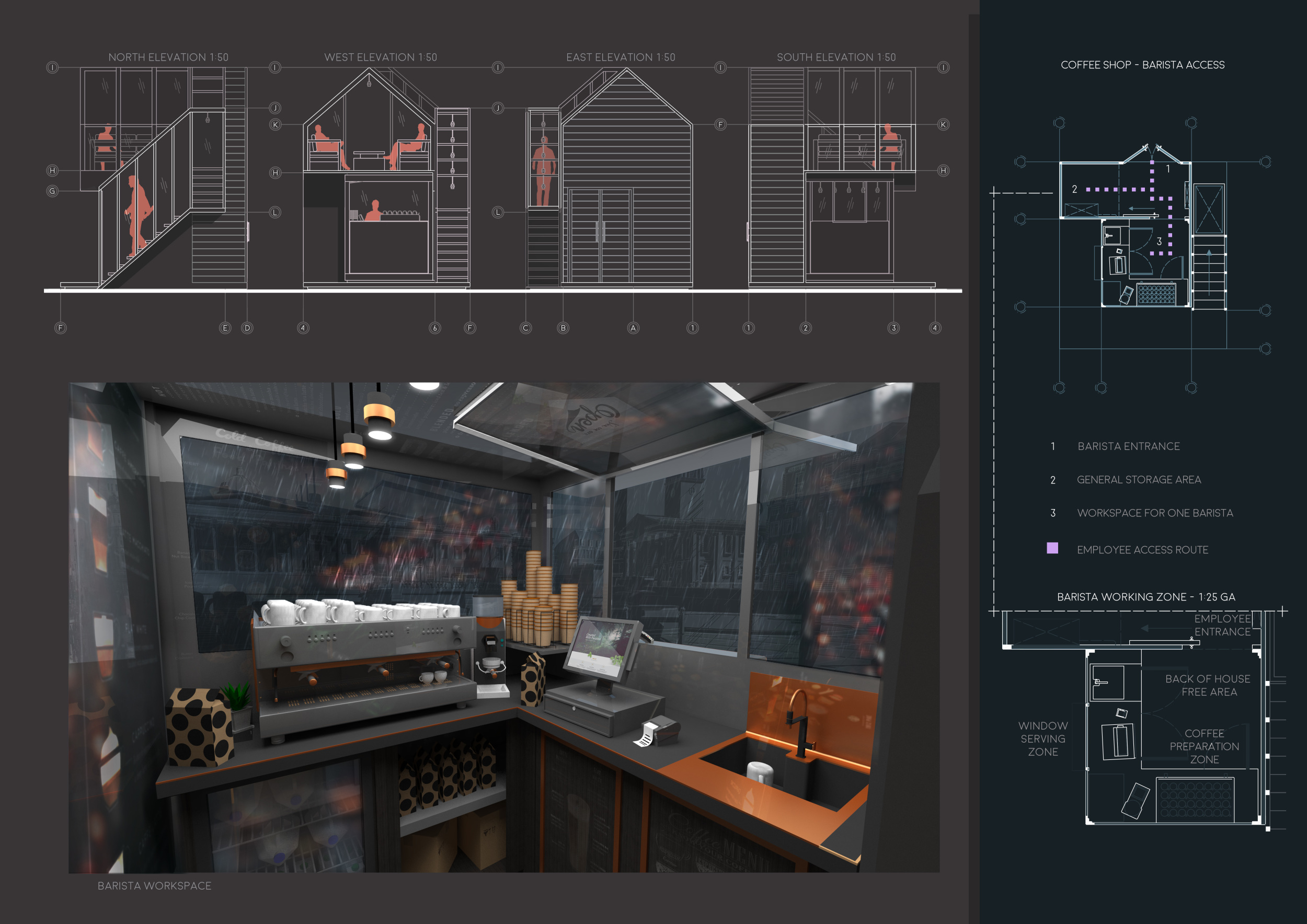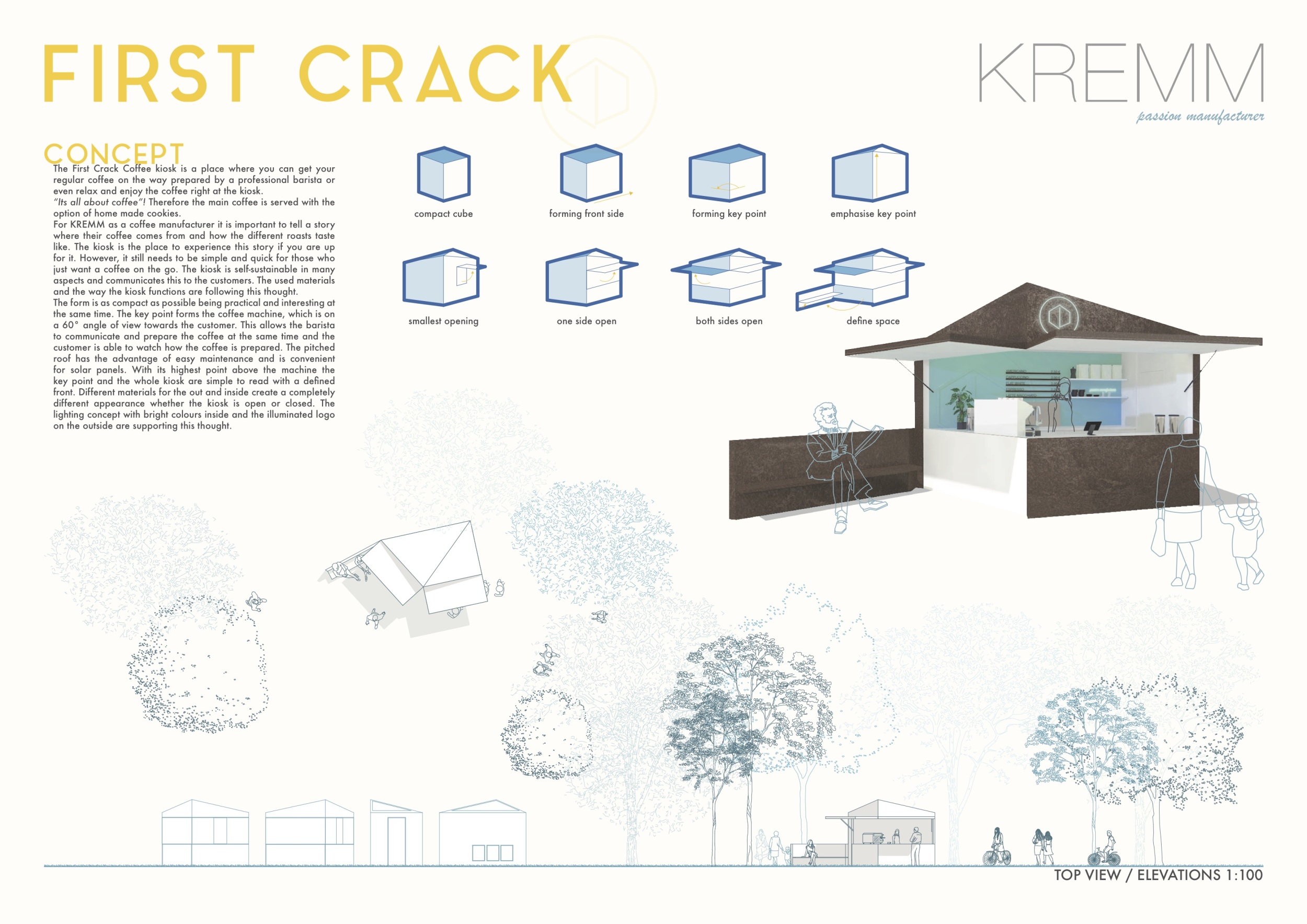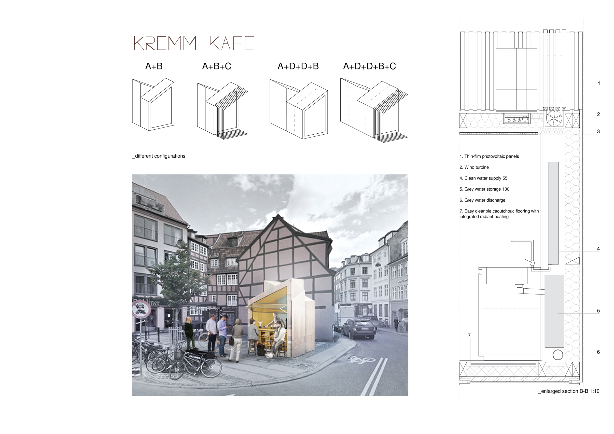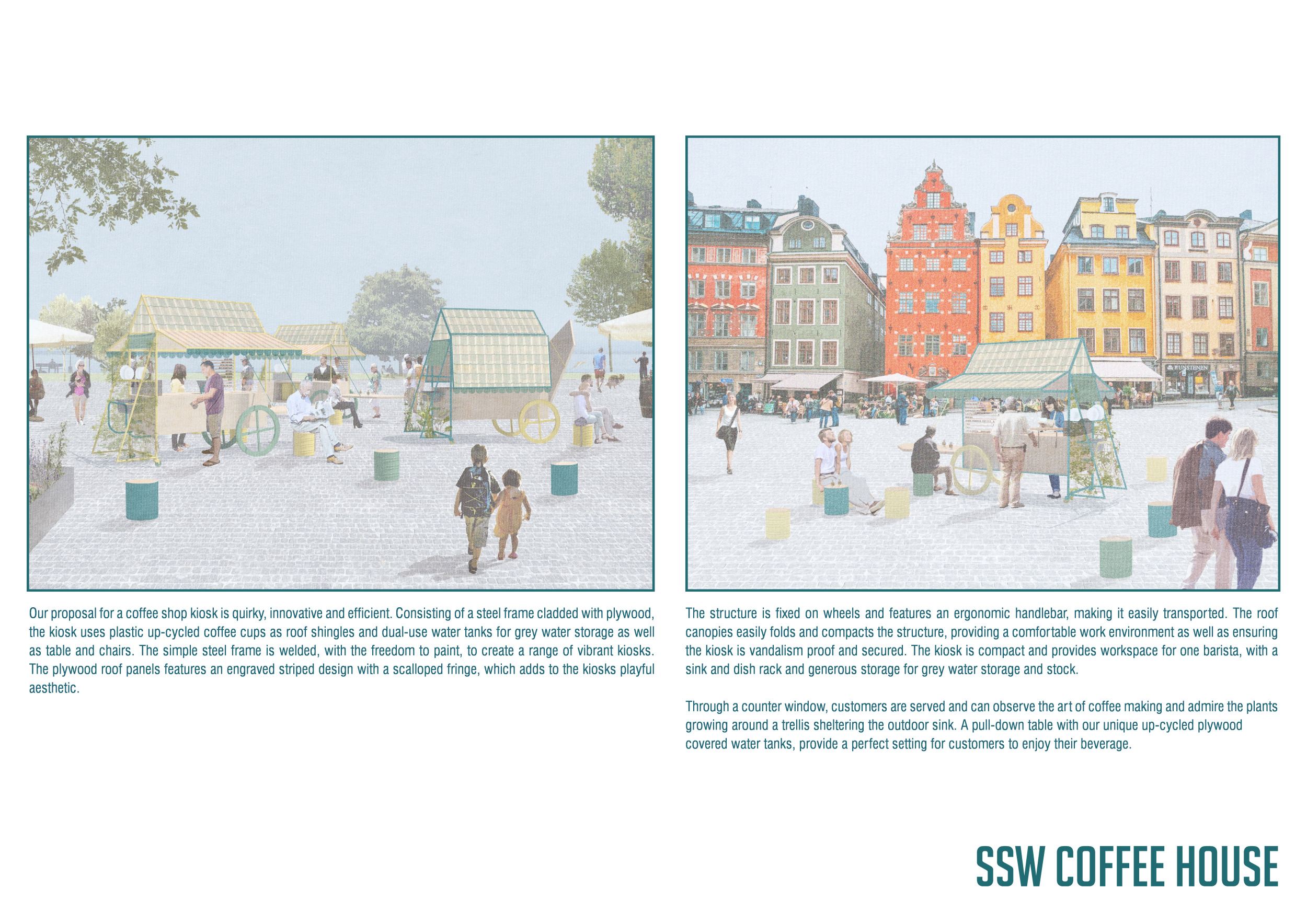 Participants of this competition were tasked with expanding the premise of the modern coffee shop, creating a design that could be easily replicated in miniscule locations across northern Europe. They were asked to look past the traditional lounge motif that permeates today’s coffee shop culture, and create a new iconic look for the caffeine dispensary.