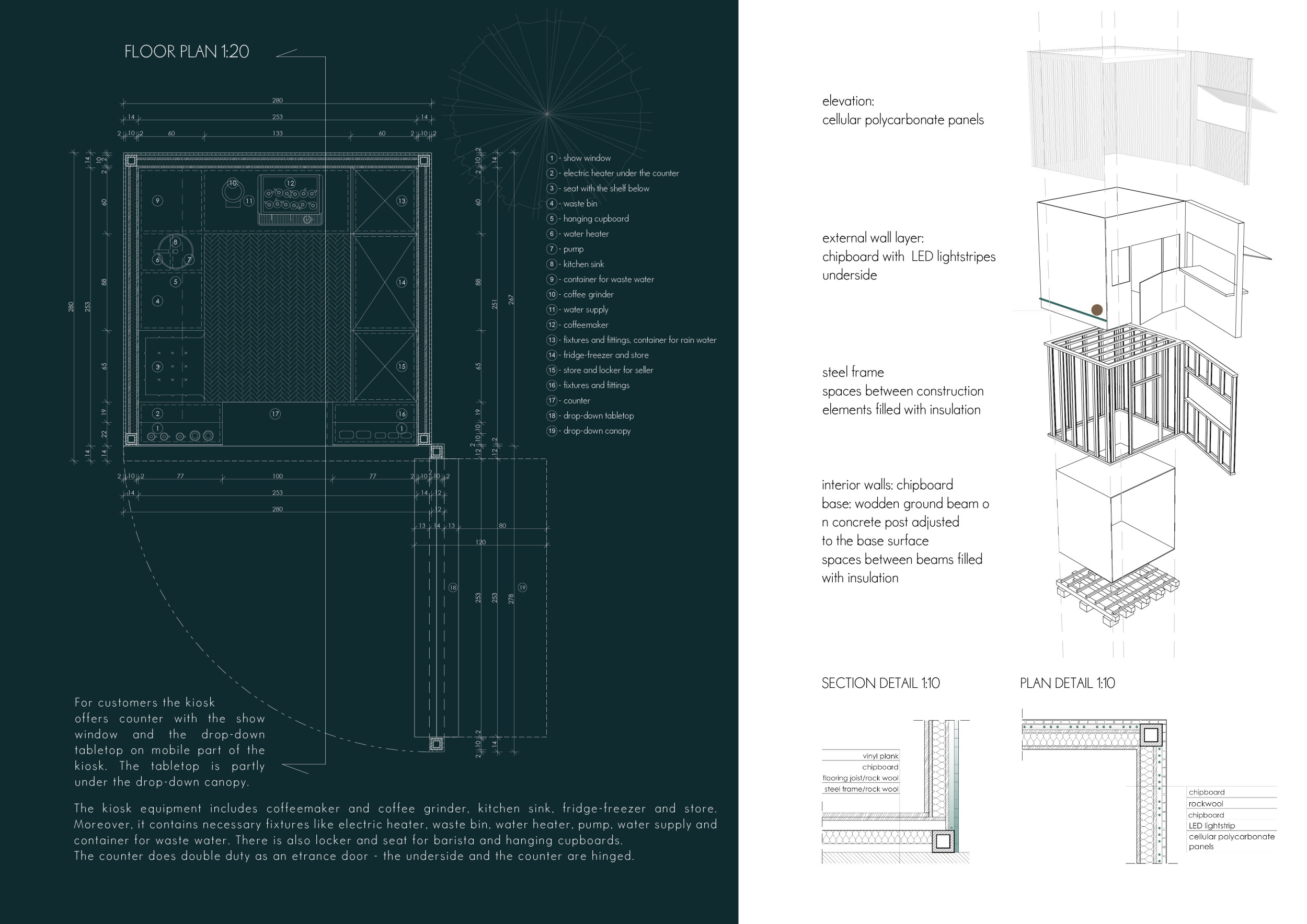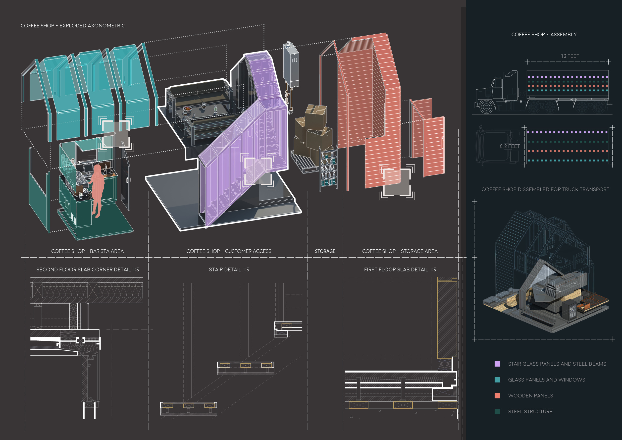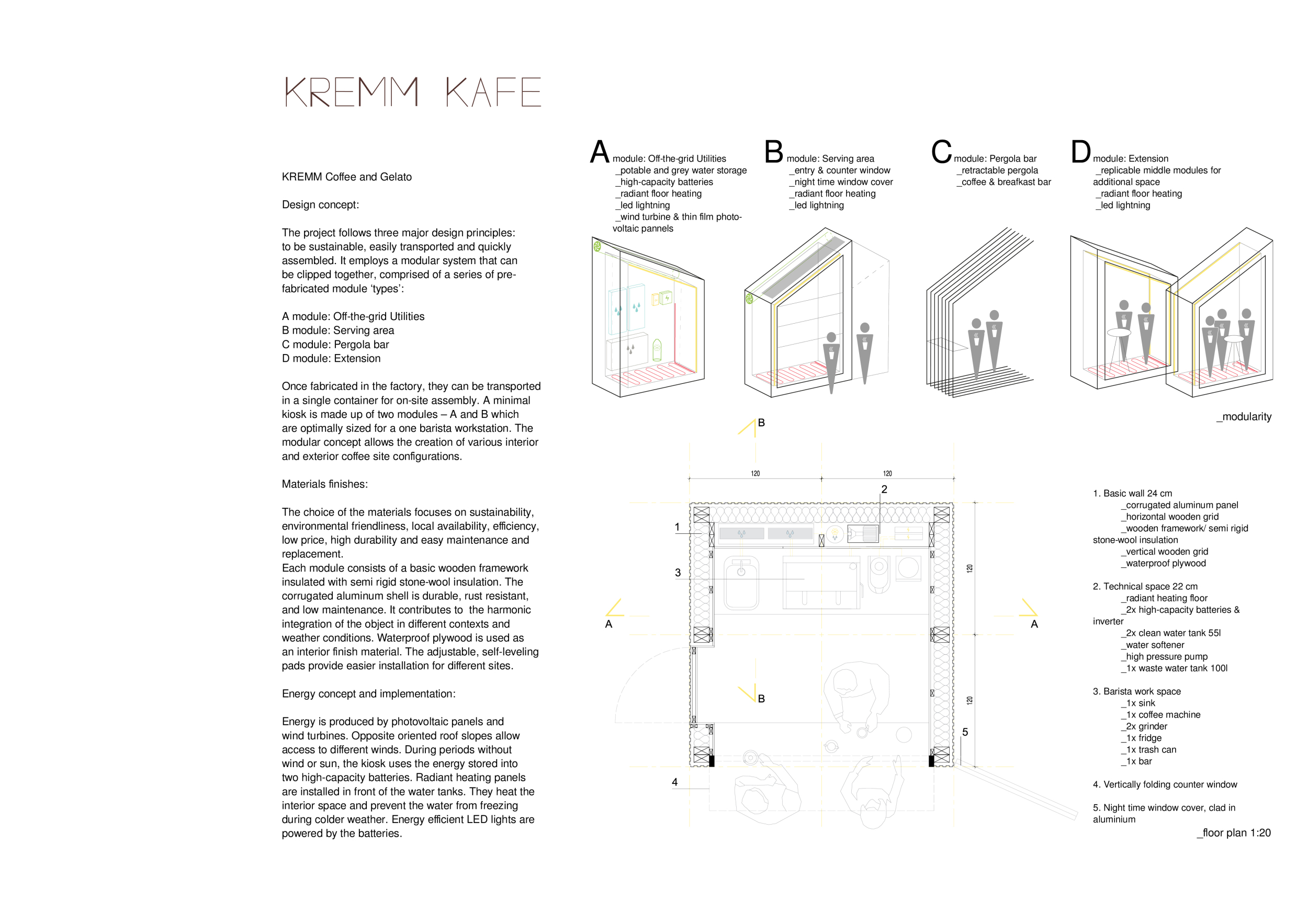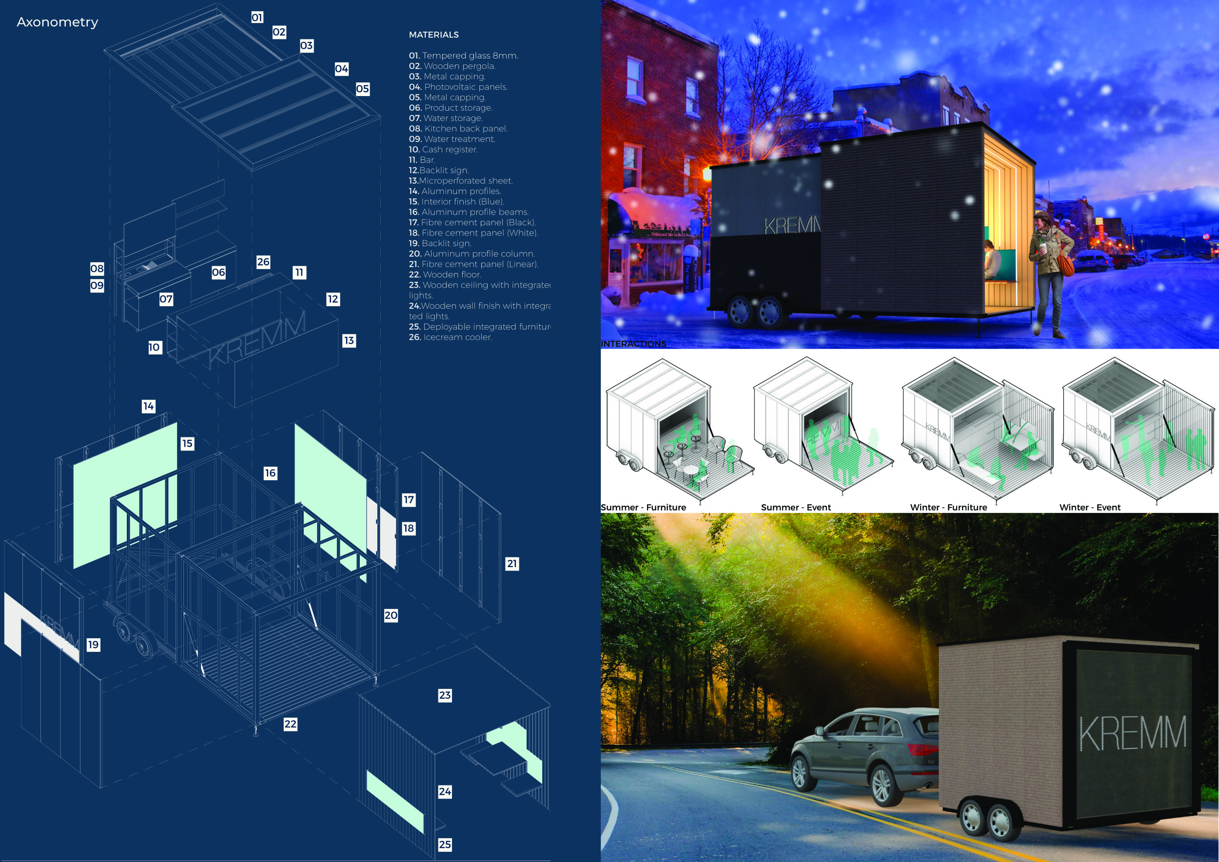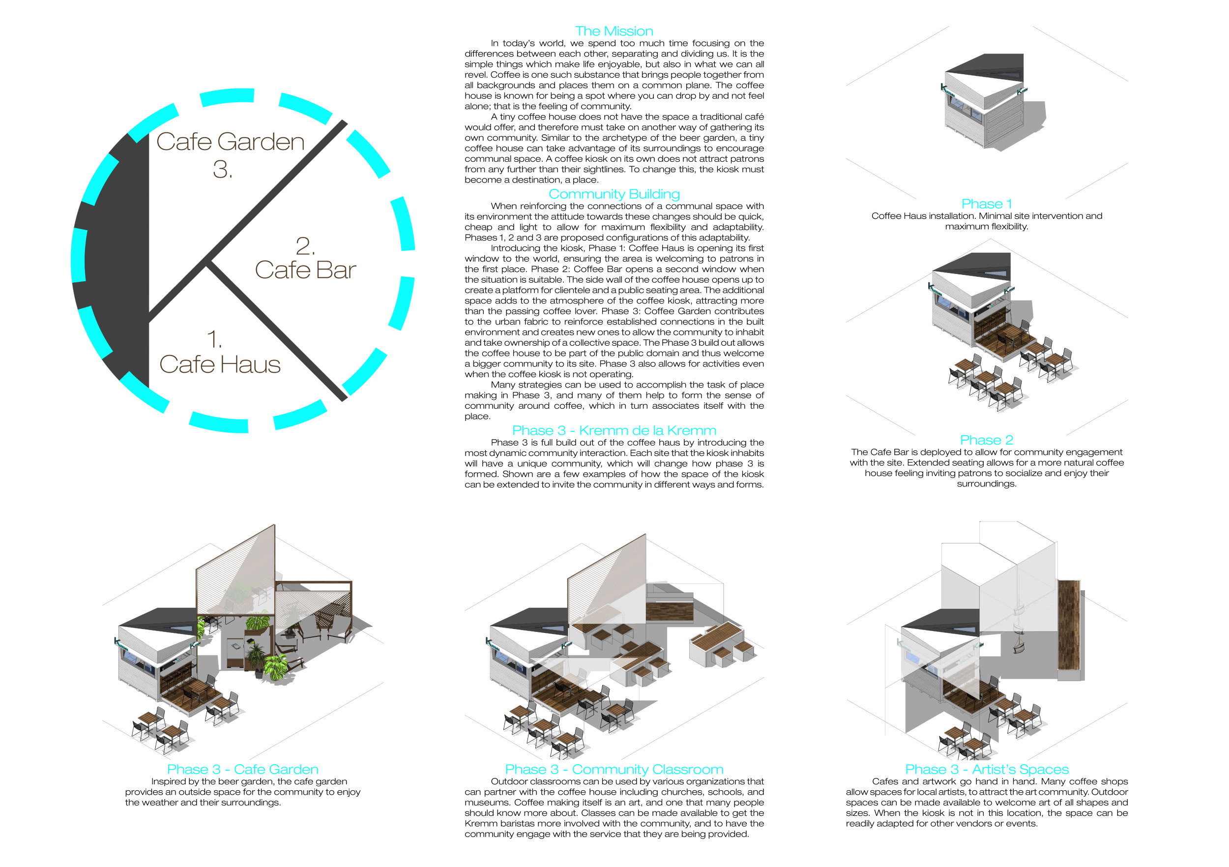 Participants of this competition were tasked with expanding the premise of the modern coffee shop, creating a design that could be easily replicated in miniscule locations across northern Europe. They were asked to look past the traditional lounge motif that permeates today’s coffee shop culture, and create a new iconic look for the caffeine dispensary.