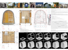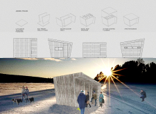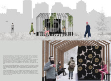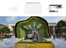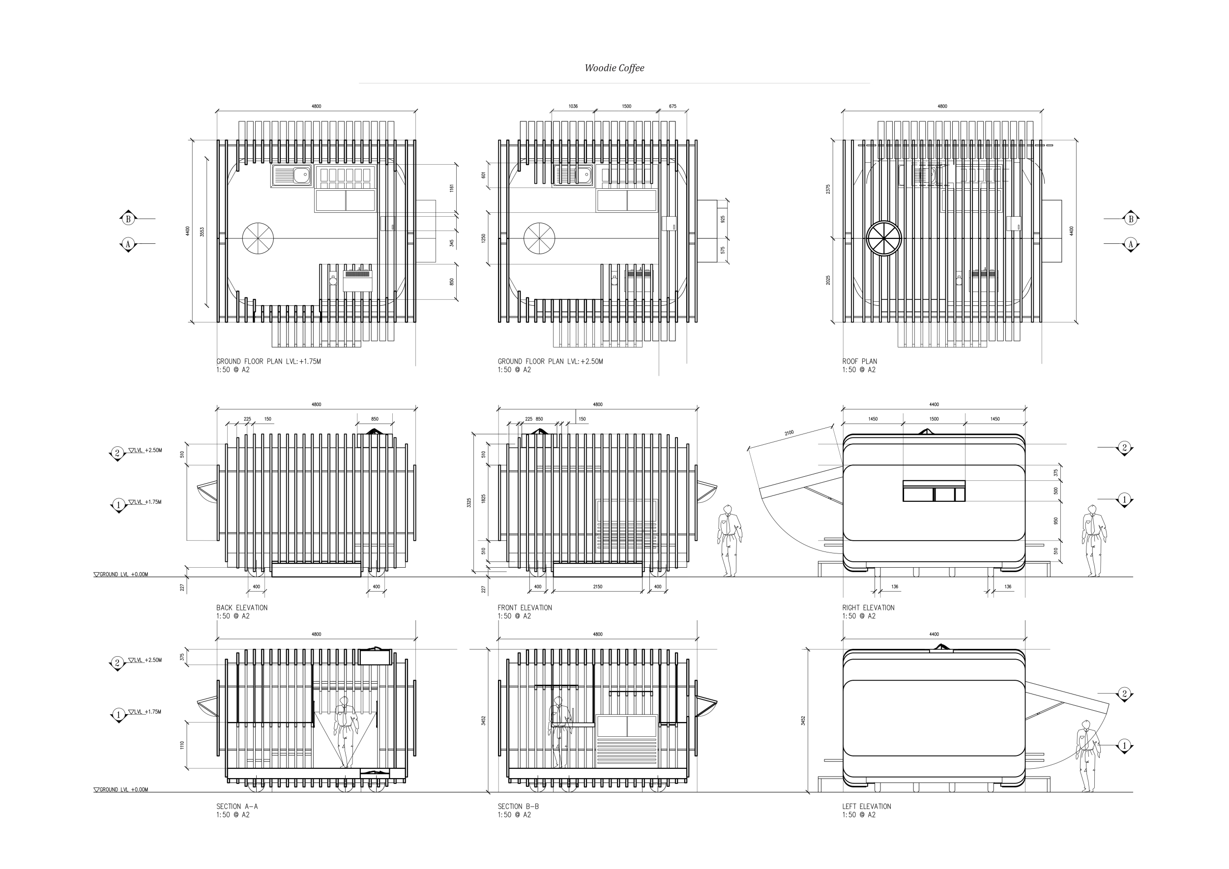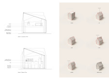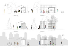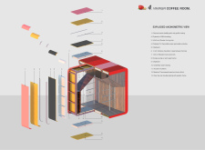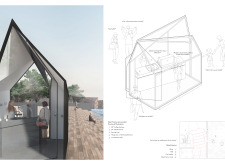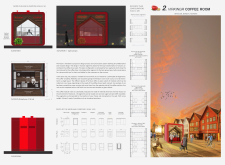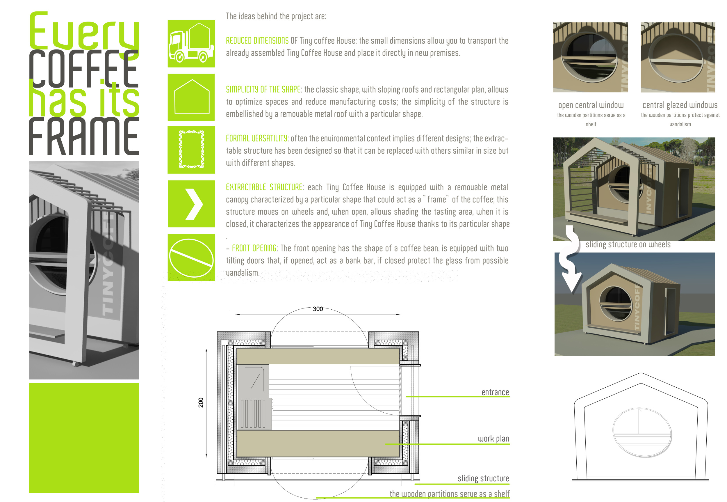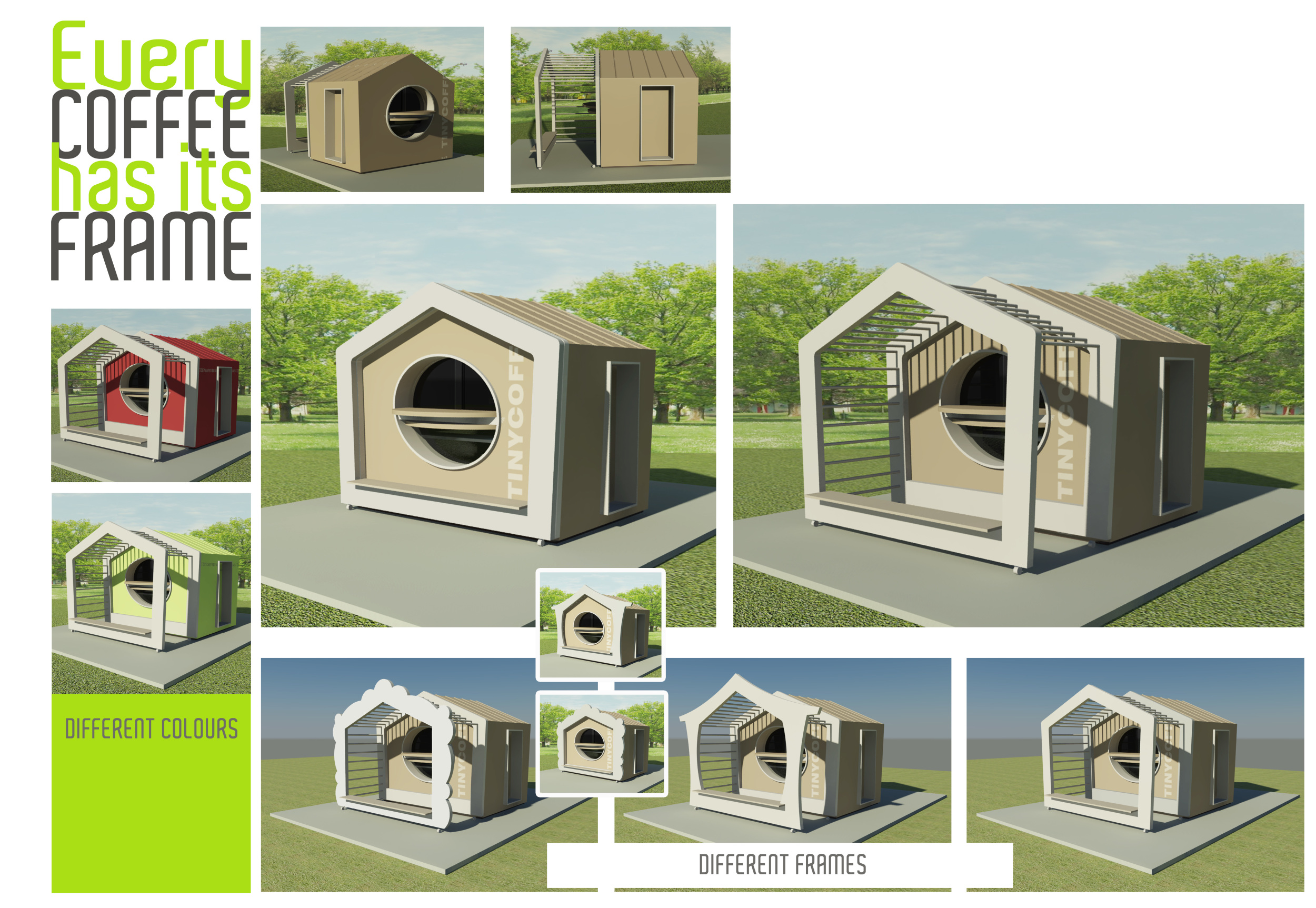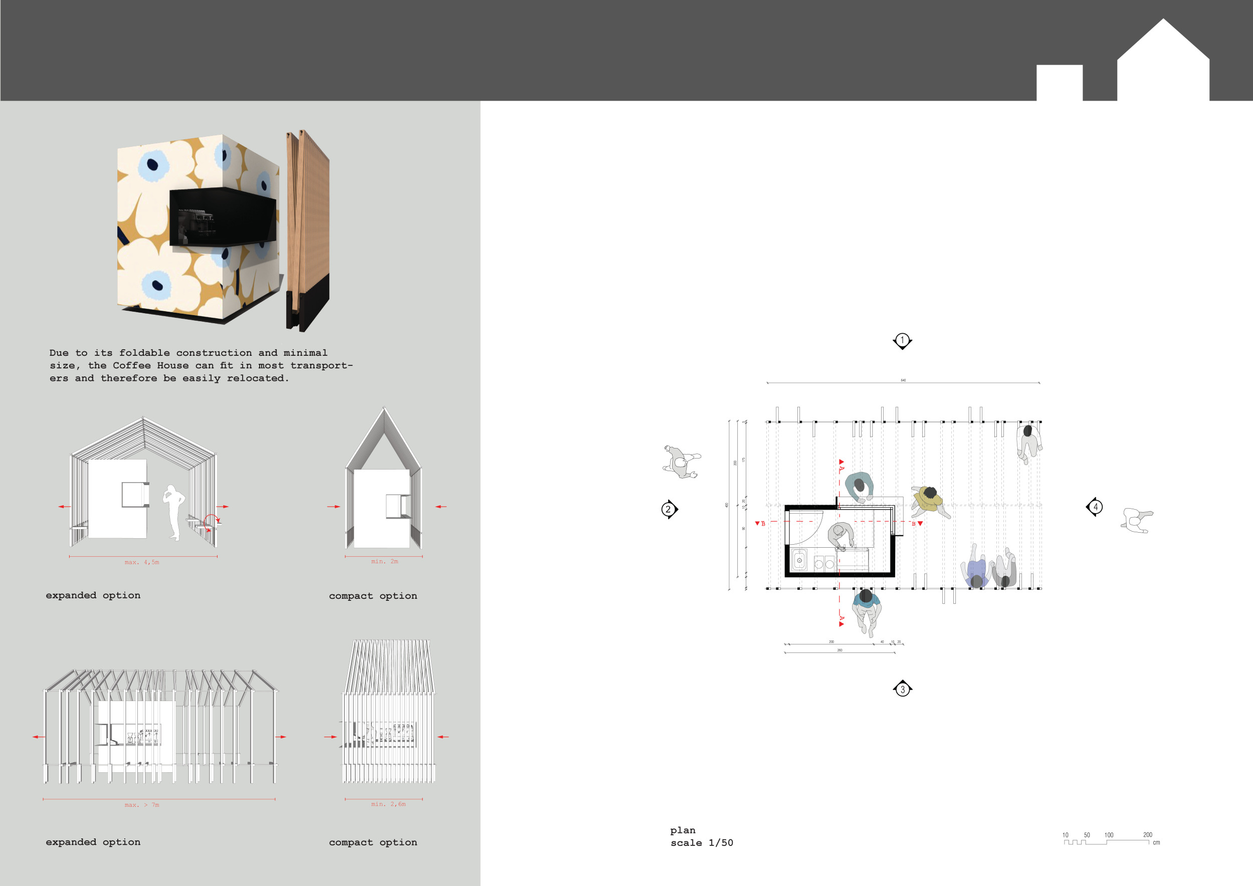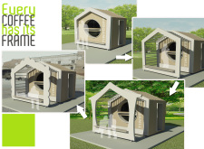 The “Tiny Coffee House” project features an eye-catching steeped entrance, creating a unique and iconic look that has the potential to be used for the company’s brand identity. Split into two parts, the Coffee House has a dedicated workstation, and sitting area, the latter of which looks to provide a calm climate for customers to stop off and enjoy their coffee. The interior space is inviting, with its warm material and elevated ceiling form. Read more The building has an adaptable structure which can be changed throughout the year, opening up the sitting area to provide outside seating during warm weather.