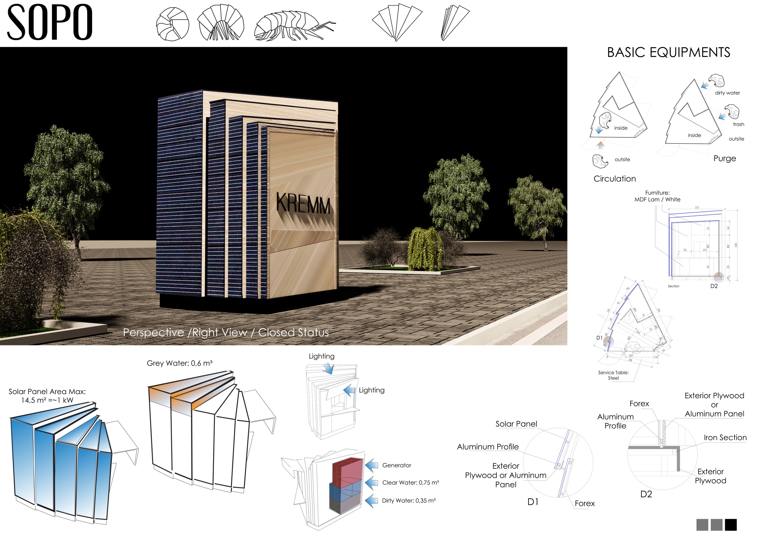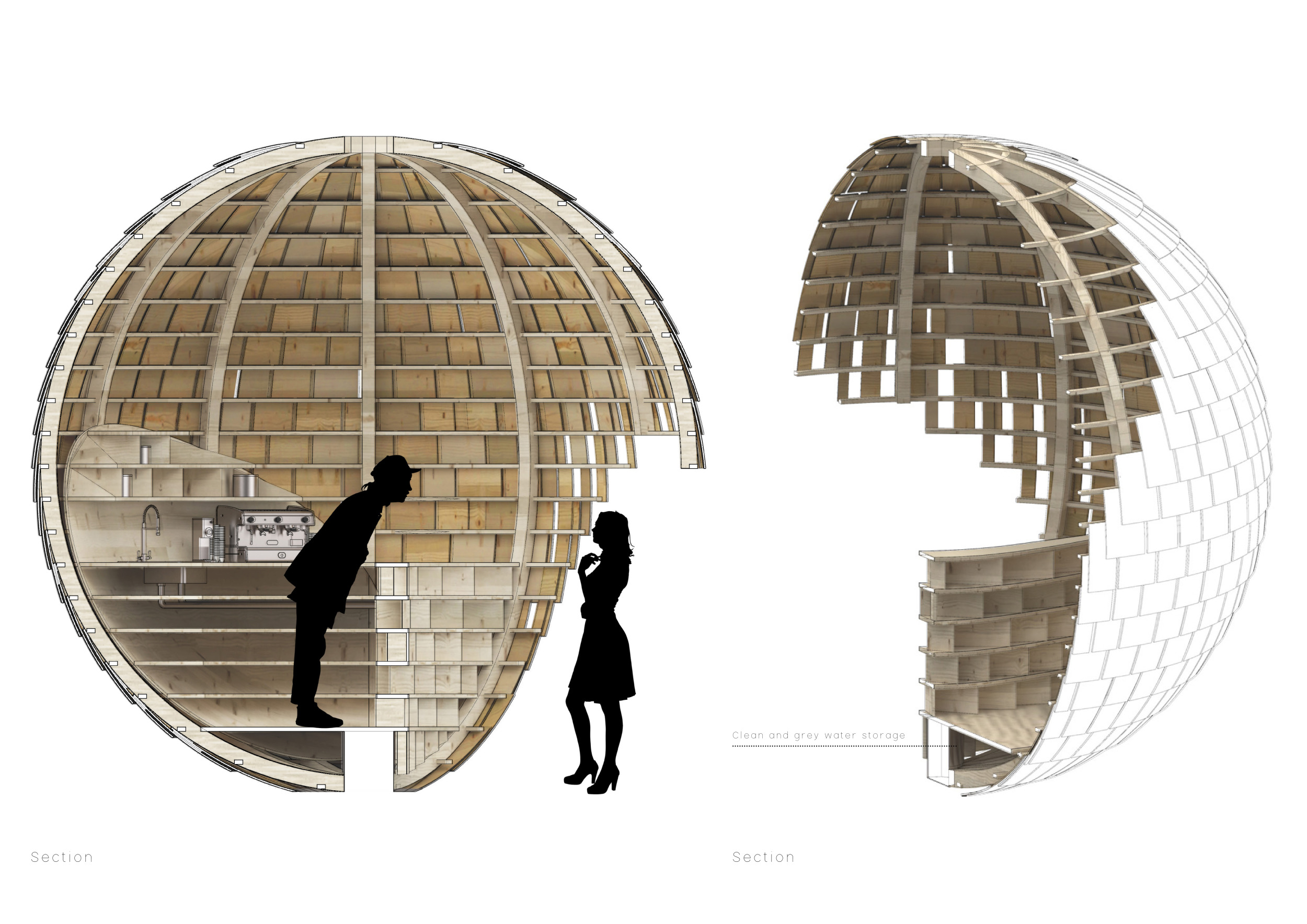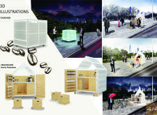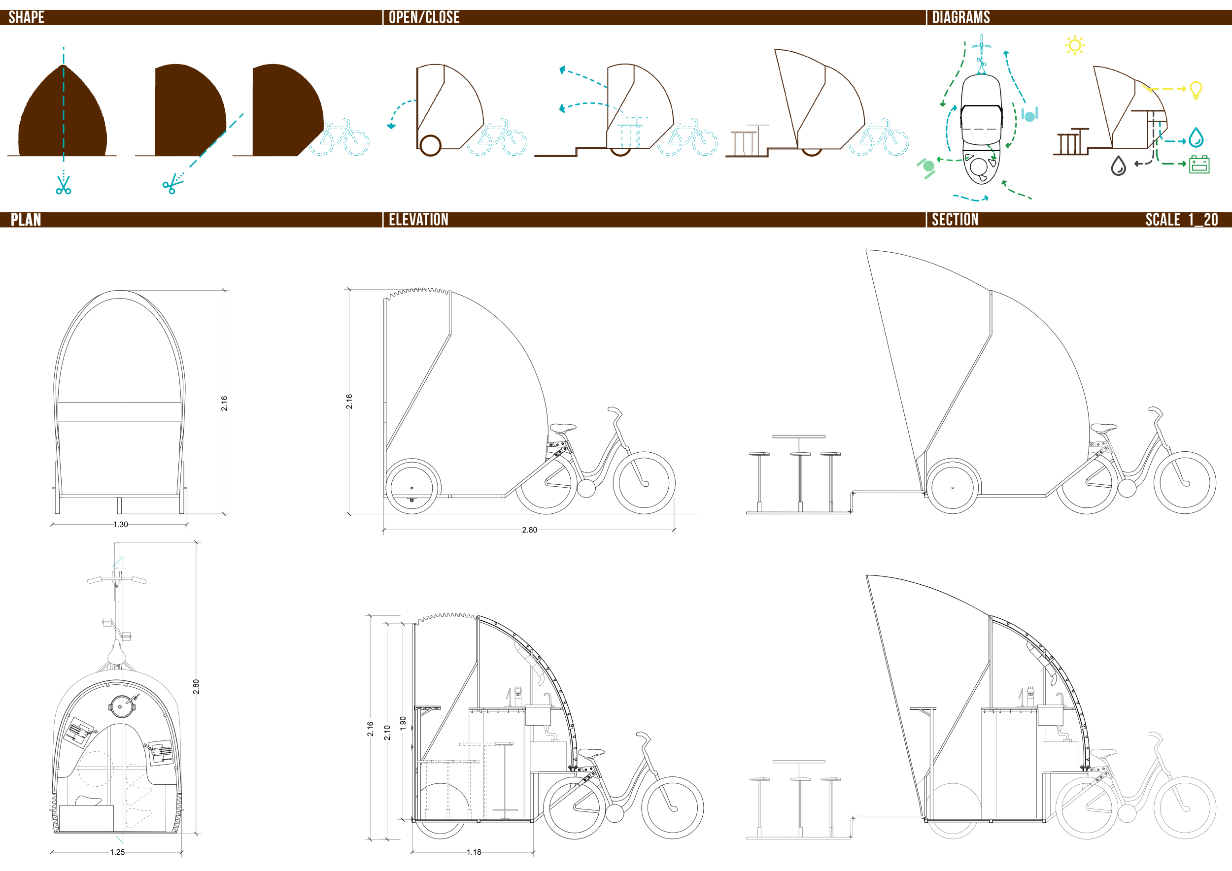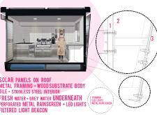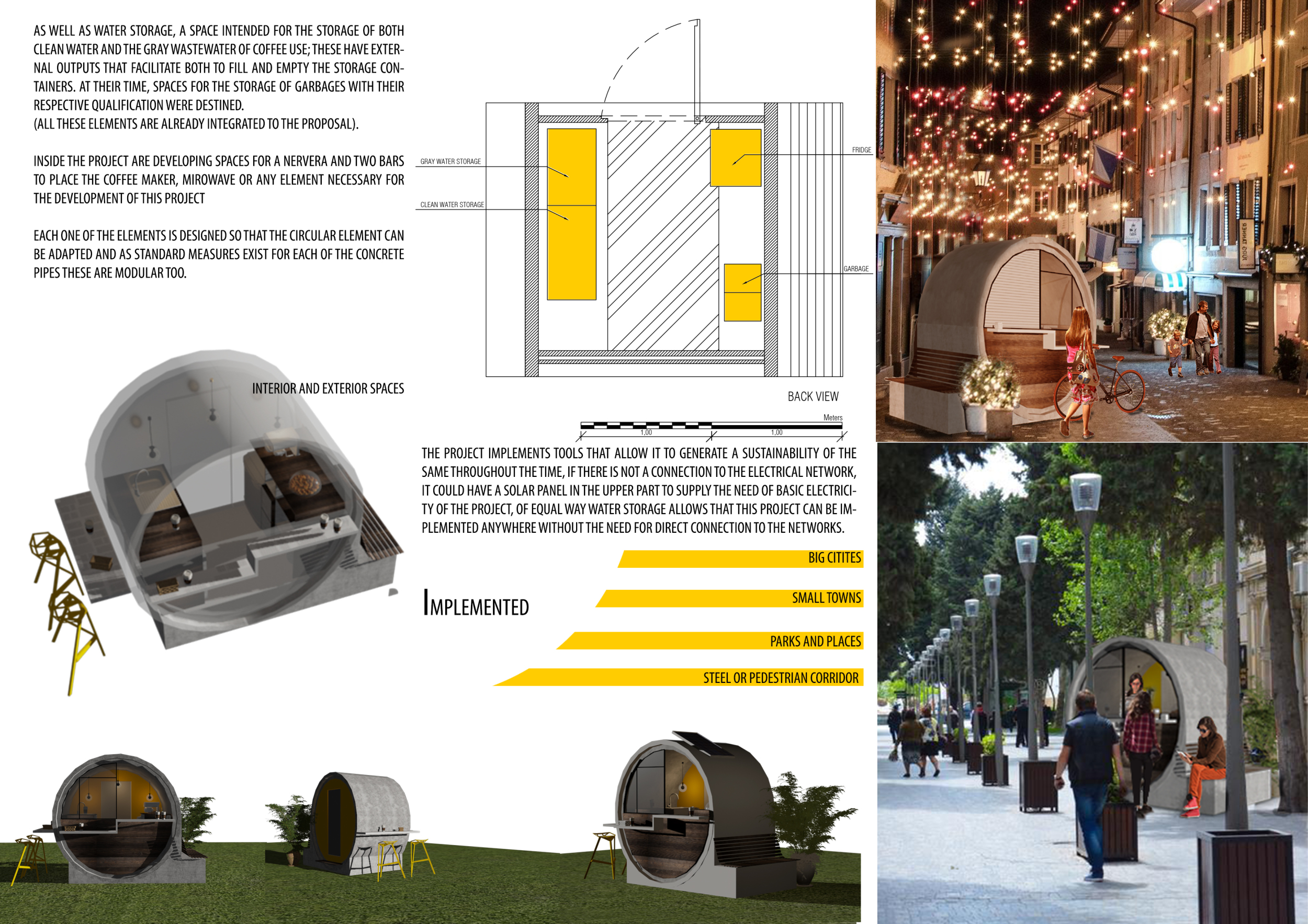 The pragmatic “AsHome” project follows two guidelines that are indicative of Scandinavian countries: order and simplicity. This portable coffee house’s framework is made of non-toxic recyclable aluminium coated with wood, creating a cosy area where customers can relax and enjoy a hot cup of coffee. It features solar-powered LED lighting as well as two large glass walls, placed lengthwise along the sides. Read more The project aims to allow customers to enjoy homemade coffee in whichever location it is placed, creating a warm and cosy environment, while at the same time organizing the space in a functional and harmonious way.