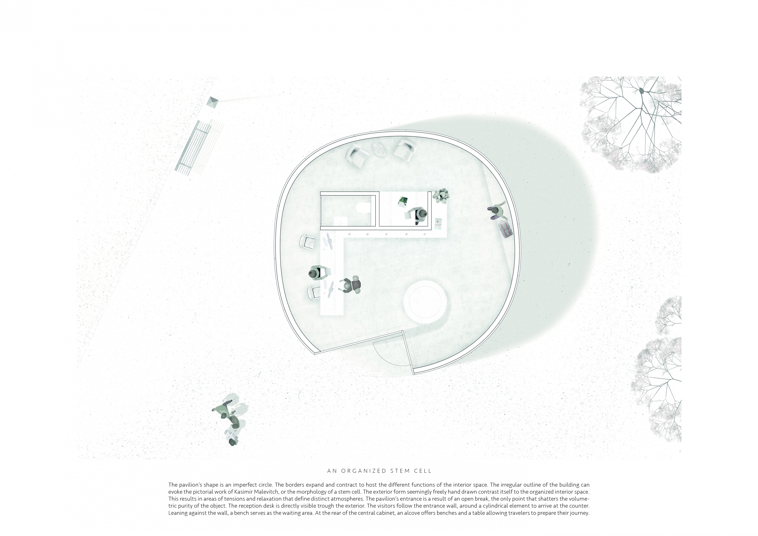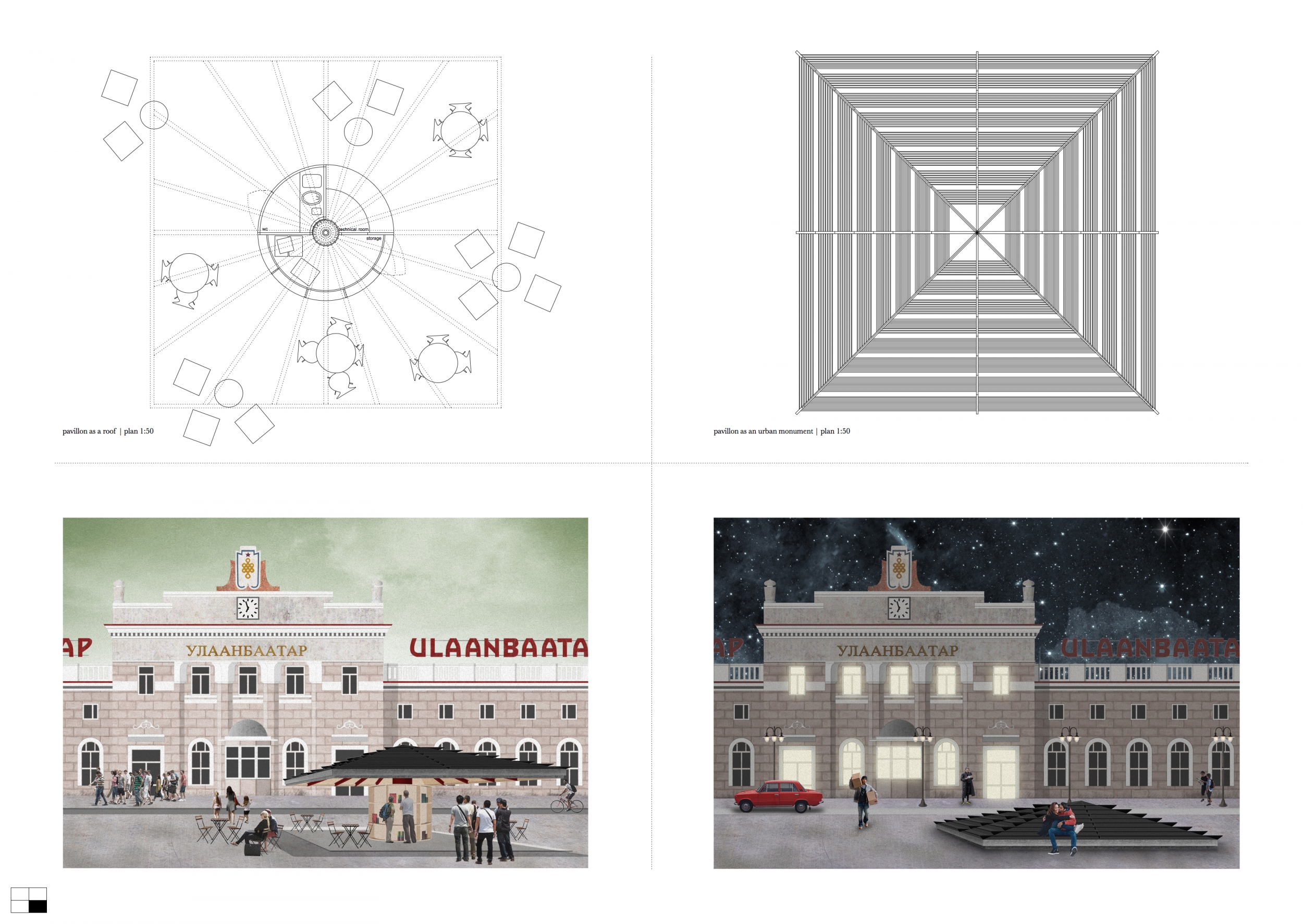 The third place project, Anamorphosis, works to integrate itself within its surroundings with a mirrored facade. What made this design stand out to the jury panel is the dichotomy of its nature, its impressive design making it stand out while at the same time reflecting on the world around it. The exact same pavilion can be placed in Moscow, Kazan or Ulaanbaatar and have a completely different appearance as it is a reflection of its environment.