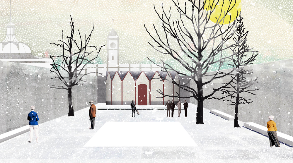 Our first place winners from the UK created an iconic design that was both sustainable and rooted in the history of the railway. Combining traditional forms of architecture and the dynamic nature of the railway, our first prize winners created a bold geometric silhouette that was lifted off the ground, allowing for greater insulation during winter months.