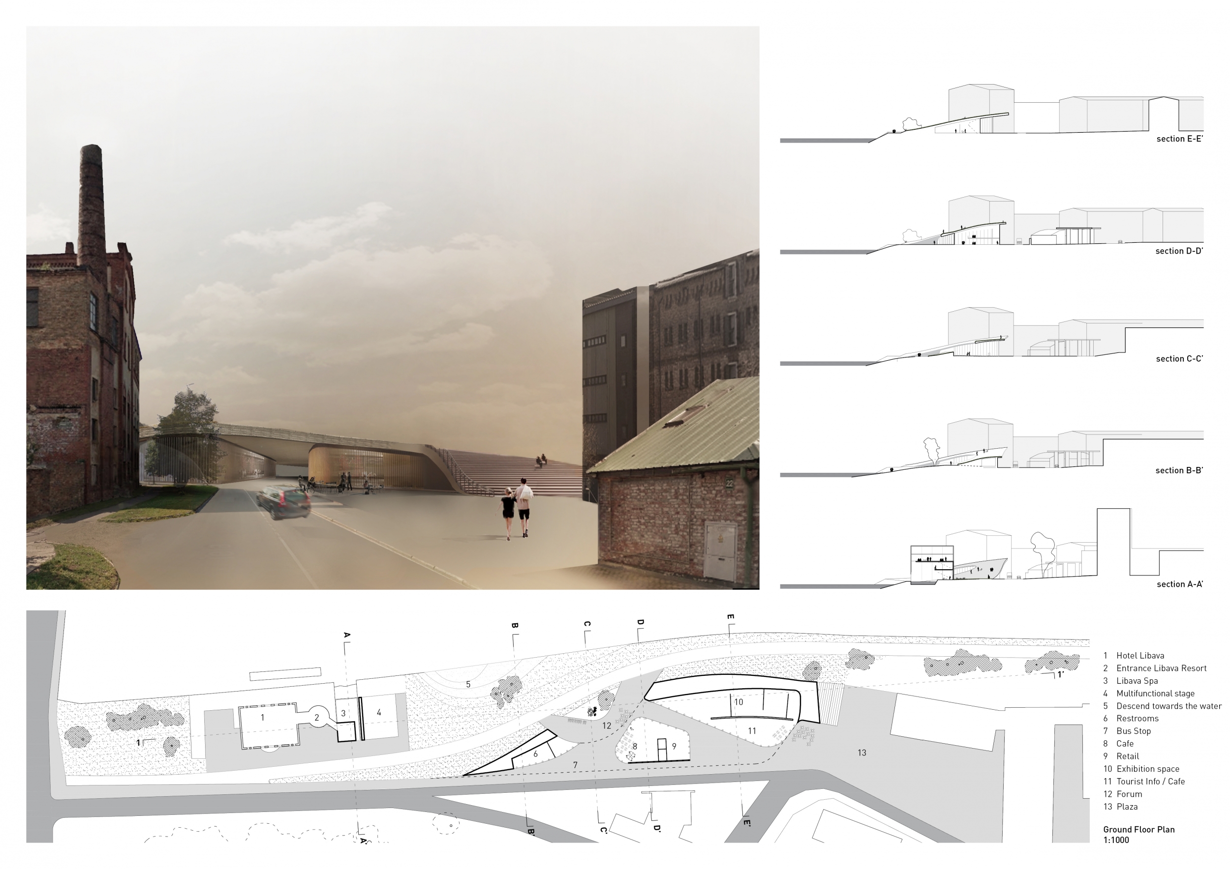 Liepaja is a city of the in-between. It is bound by both old and new world tradition, Baltic sea and continent, Eastern and Western European economics, politics, and history. Amidst these conditions, the city has experienced the rise and fall of kingdoms, empires, republics, and unions. Now a decade and a half into what is oft referred the urban century, as characterized by expounding growth of global epicenters and overnight megalopolises, the Triple Bridge Waterfront Competition provokes a prescient question: what is an appropriate model of development for all those other cities, comparably static, of regional importance, shaped and pedigreed by centuries of history and culture?