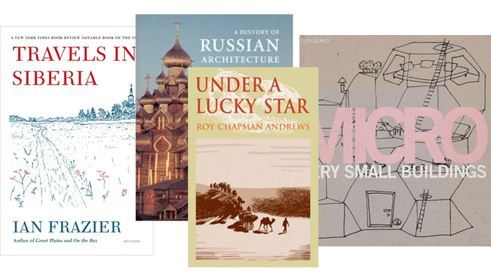 The Trans Siberian Railway, constructed at the turn of the twentieth century, connects western Russia with hundreds of cities in Siberia, China, Mongolia, and North Korea. An adventure for some, the journey across seven time zones and thousands of kilometers can also be a tiring, dreary, and monotonous experience. The lengthier stops at stations along the route are welcome moments of respite, but nearly all lack landmarks, visitor centers, or even enclosed kiosks accessible to passengers in the limited period of time available to them off the train. The following books sample subjects including microarchitecture and the history of the Trans Siberian Railway, to suggest a range of topics one might consider when designing for rest stations along the world’s longest train line.