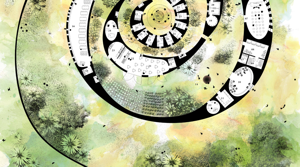 The winning team from Italy created an innovative design for a youth centre that incorporated a spiral theme, creating a coherent transition of spaces. The spiral layout makes the youth centre relatively open to the public, while at the same time keeping the inner spaces private and protected. The organic shapes and its distinctive designs were some of the main reasons our jury panel chose it as the winner, as it has the ability to quickly become recognised as a symbol for tolerance and a safe haven for those in need.