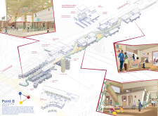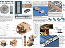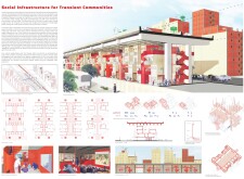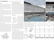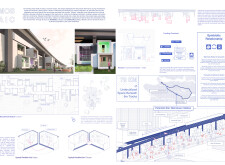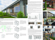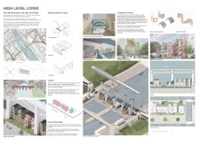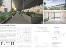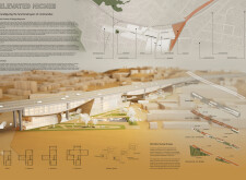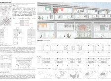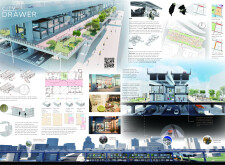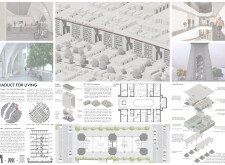 The organization and layout of this submission is highly commendable, with a clear hierarchy and unique, powerful visuals that effectively narrate the intent. The panel is thoughtfully organized, with text well divided by bold keywords and subtitles, enhancing readability. However, the diagrams and visuals, while well drawn, would benefit from additional annotations clarifying materiality, design concepts, or specific spaces. Read more These enhancements would make the presentation appear more analyzed and complete.