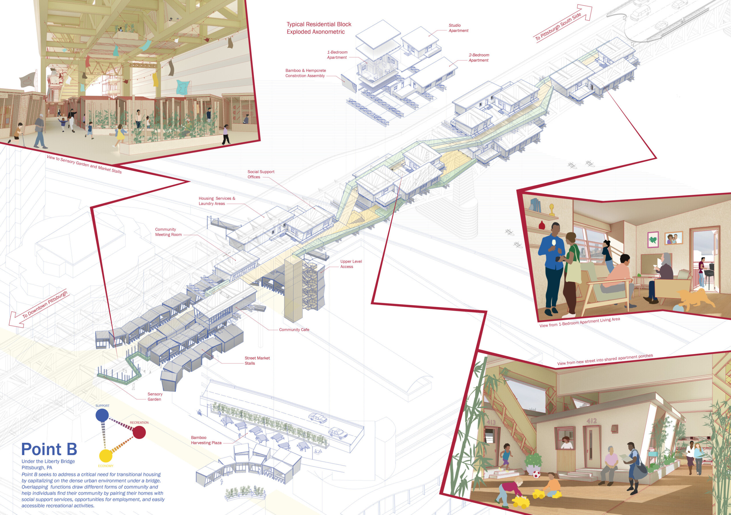 We participate in architecture competitions because we are proud of our work. In school and post-graduation, we’ve designed projects defined by public service and community remediation. We feel this is the ultimate duty of the architect, beyond the niche and aesthetic. Herein, we want to share this work with our peers and inspire those with these creative skills to design generously.
