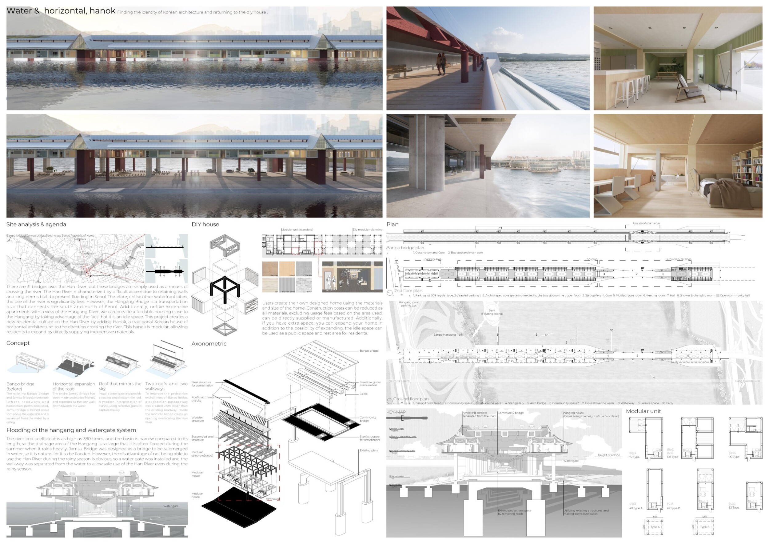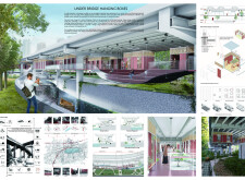 A great proposal that explores the scale of a megastructure at the urban scale and its impact on local communities. The project deals with the "negative space" and distances itself from the very high roof that forms the bridge deck to create a poetic experience at the water level and provide cultural contribution to the community. Interesting response!