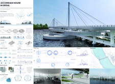 The project creates an innovative community on the water which nicely relates to the bridge that crosses it. It respects the locals' cultural traditions.