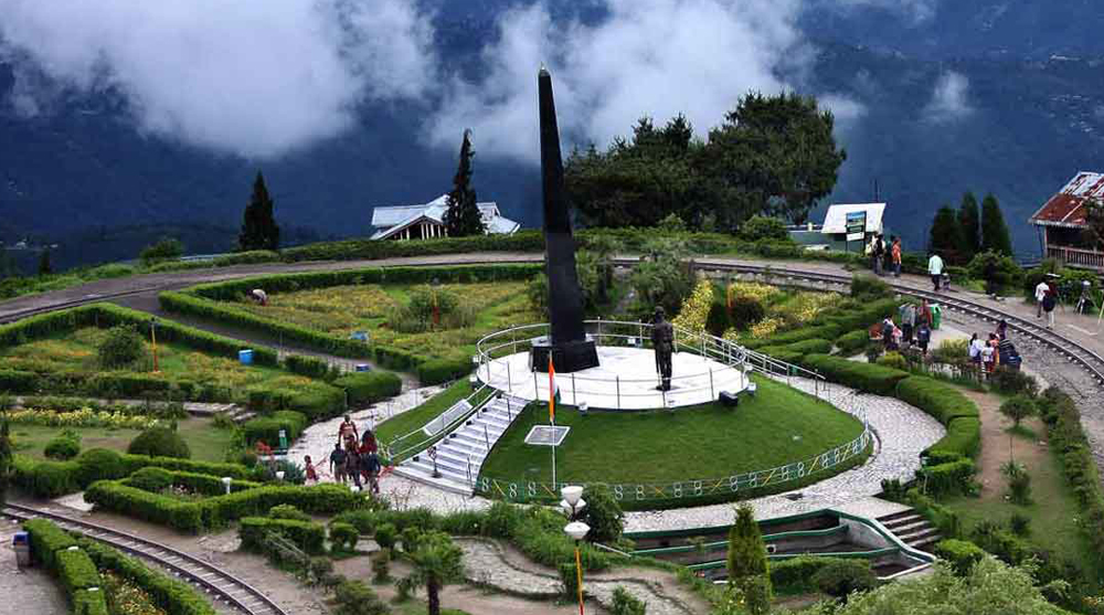 Trains that depart from the Ghum railway station descend approximately 182.9 m (1,000 ft) to Darjeeling, first crossing the graceful double loop at Batasia which translates as meaning “windy place.”