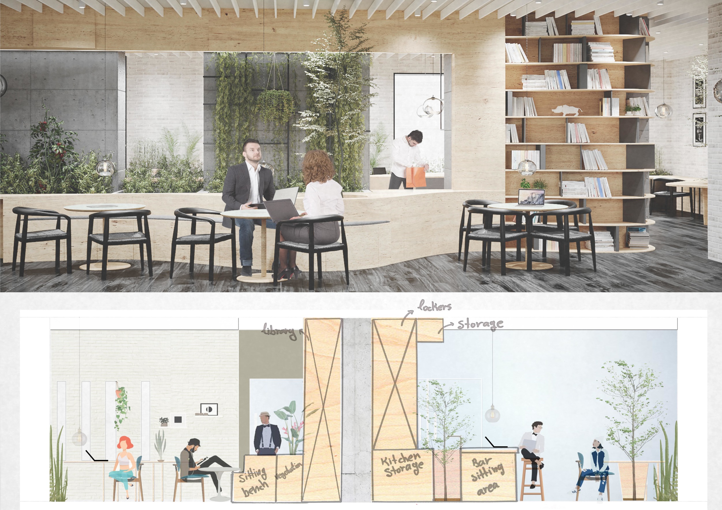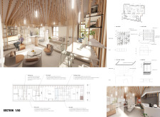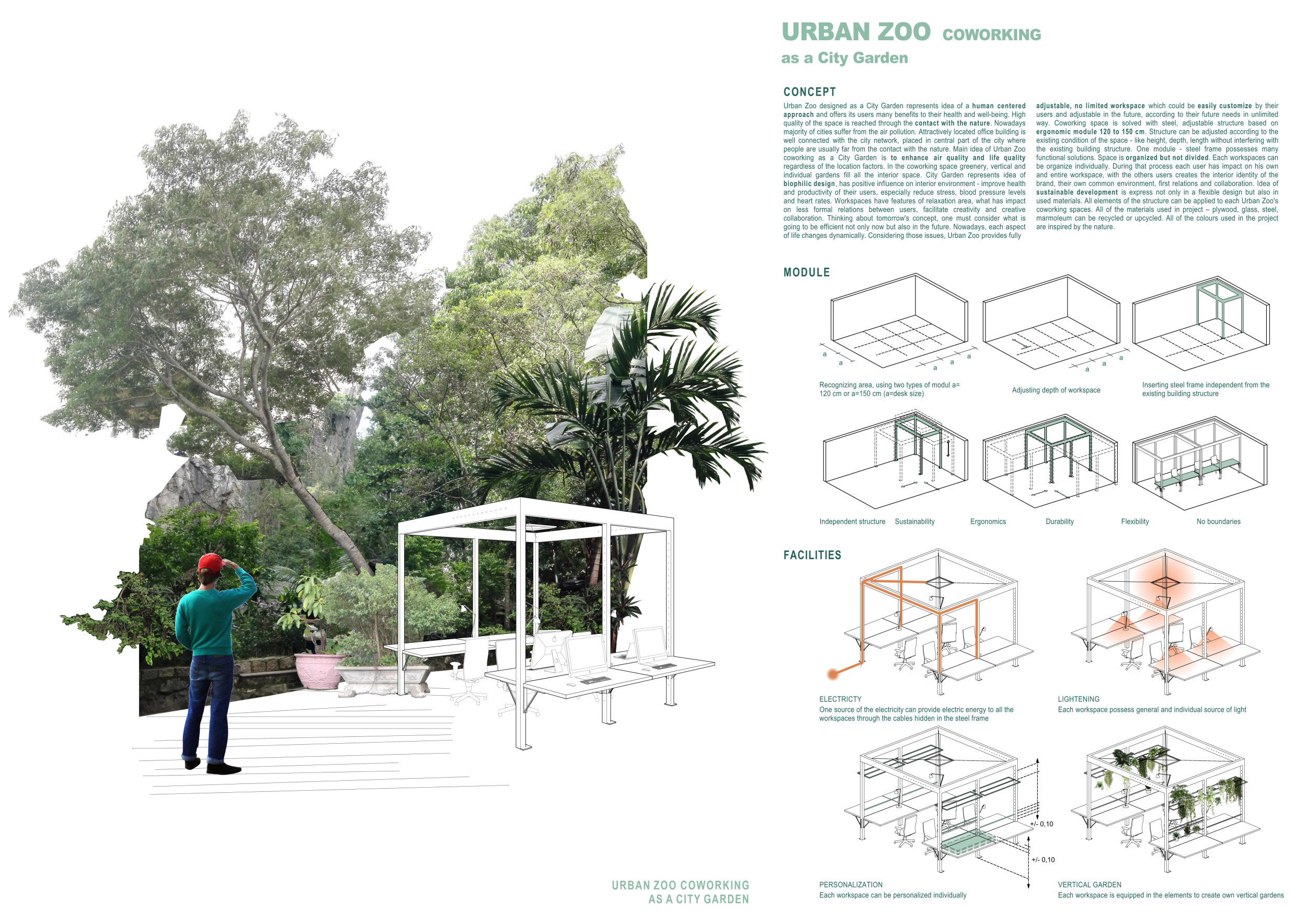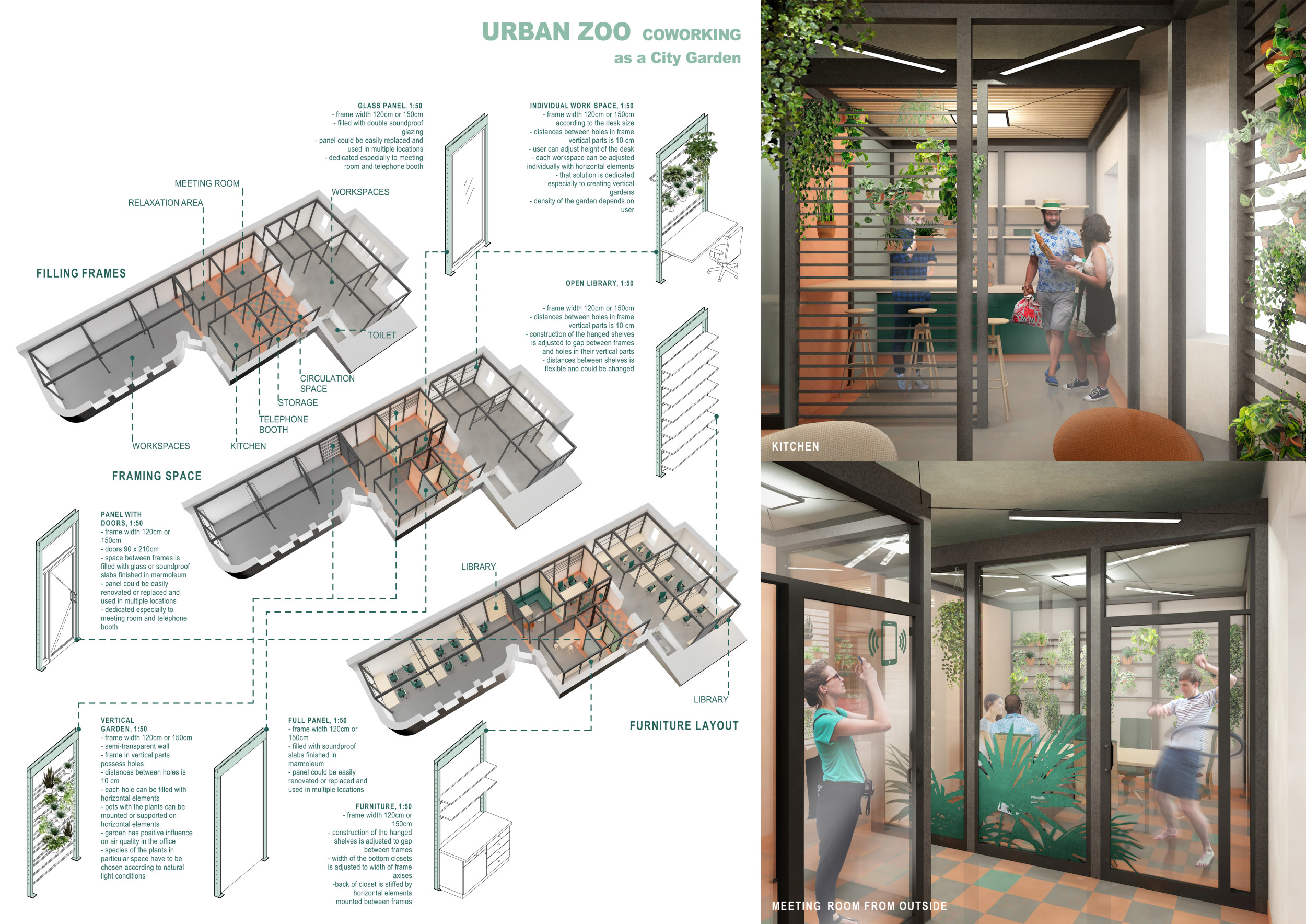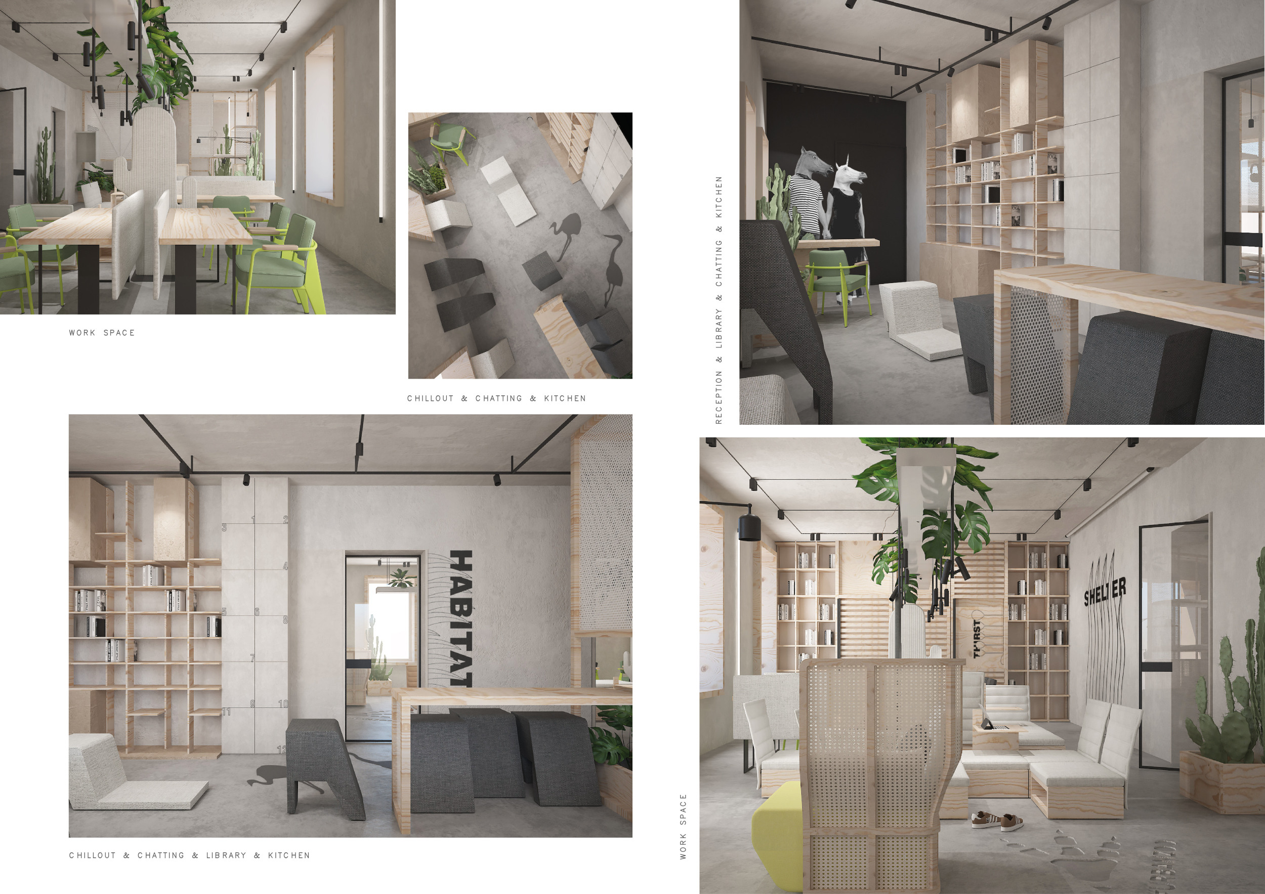 WILD took modular design to the next level, with its “Kit of Parts” enabling users to customise their work space towards either individual, isolated work, or fostering collaboration and networking within the space. The project really played well with the theme of a zoo environment, exploring varying levels of exposure established through the lightweight framework of its modular system. Read more The jury selected this project as a runner-up because the highly-functional proposed grid system showed extreme originality and ingenuity, offering a variety of different types of working spaces, presentation platforms, and storage areas. And while the design has great potential in becoming a part of the Urban Zoo Coworking bran, the jury did have slight concerns about the practicalities of the structure installation, maintenance, and cost.