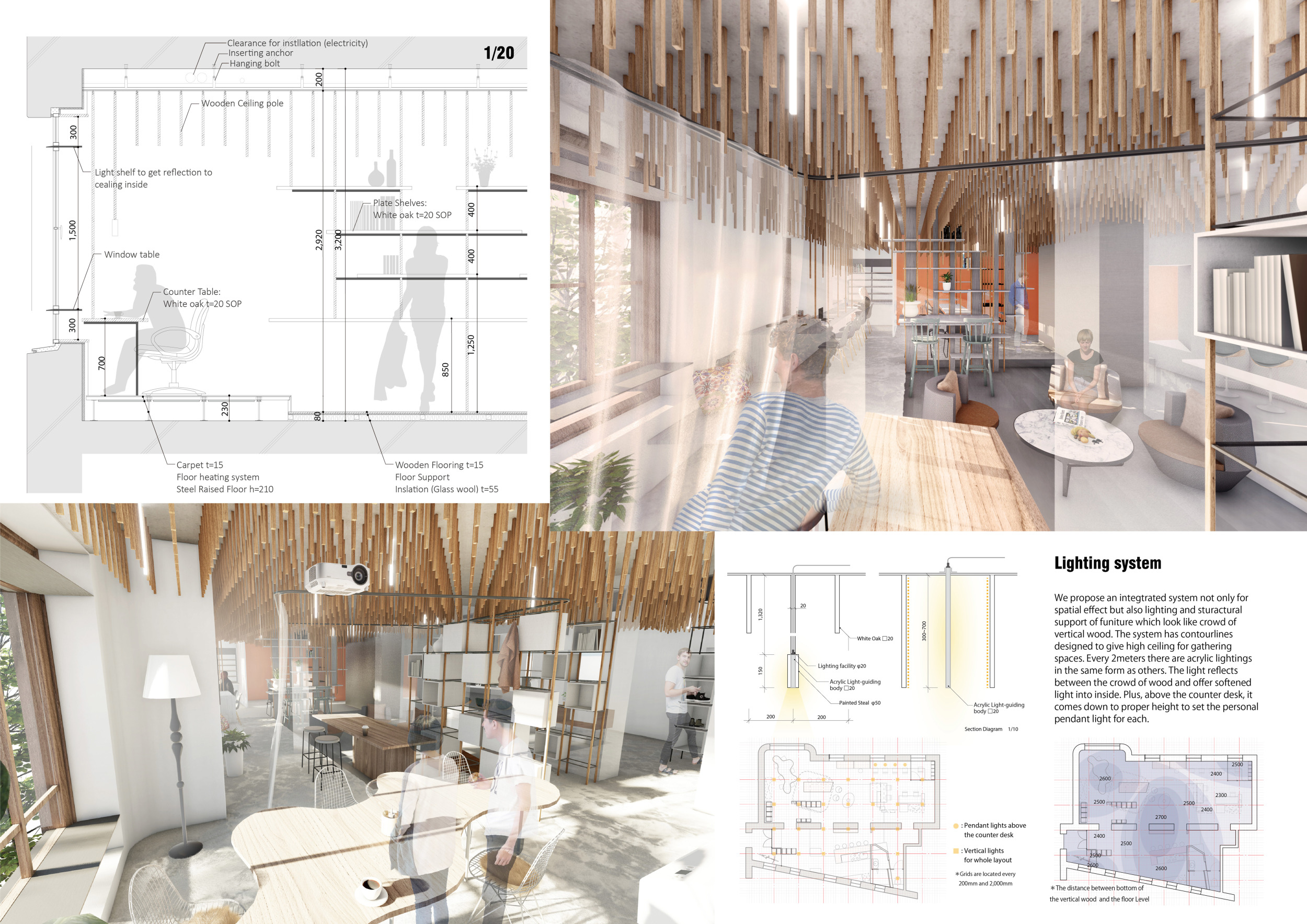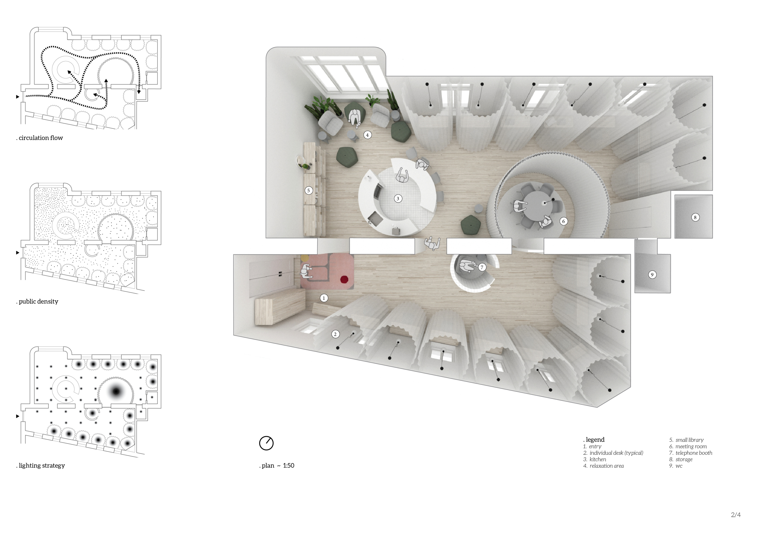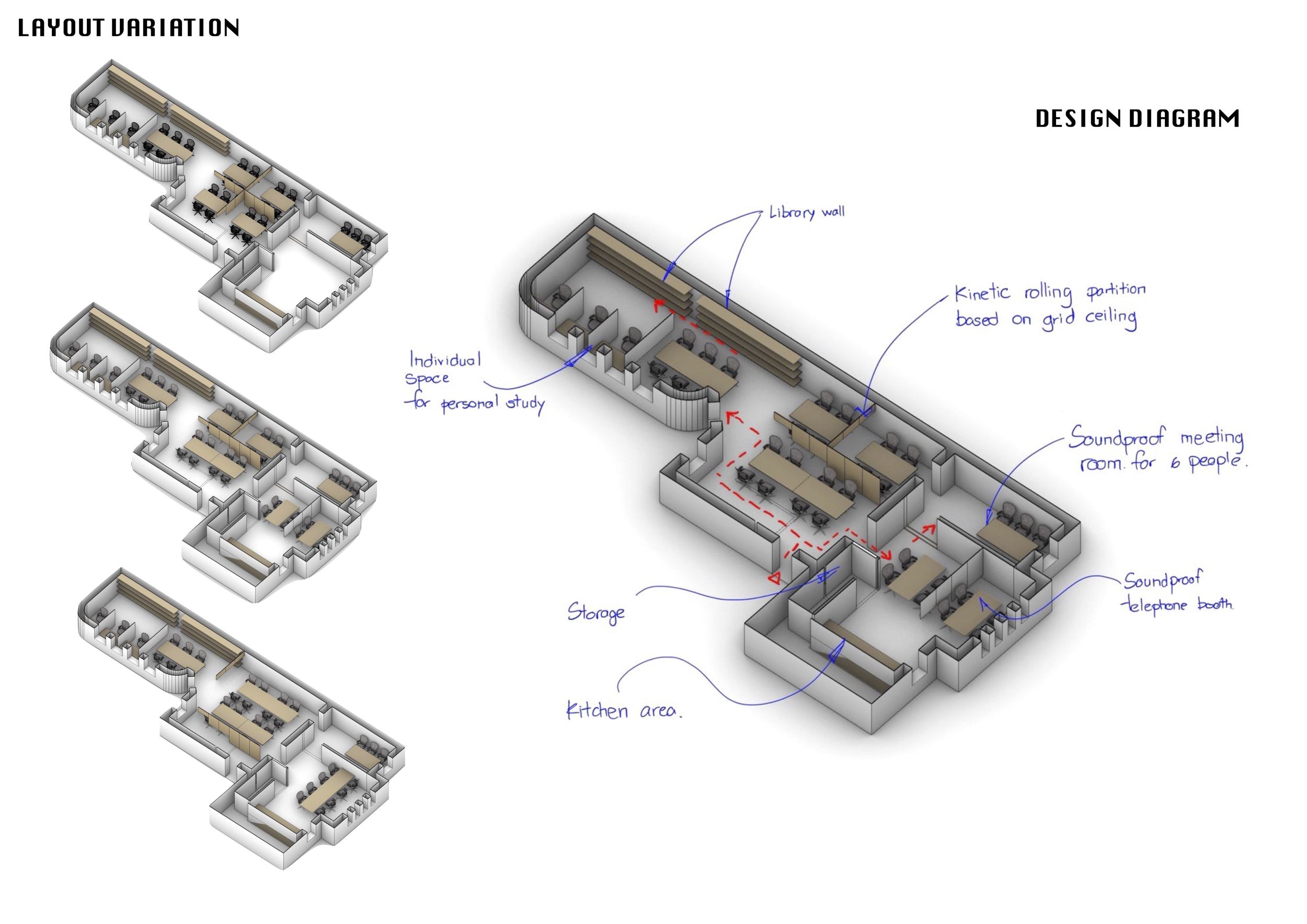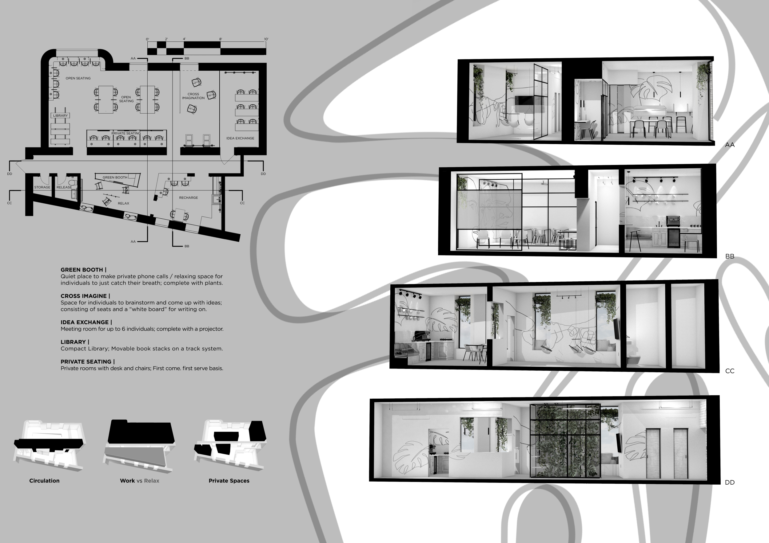 WILD took modular design to the next level, with its “Kit of Parts” enabling users to customise their work space towards either individual, isolated work, or fostering collaboration and networking within the space. The project really played well with the theme of a zoo environment, exploring varying levels of exposure established through the lightweight framework of its modular system. Read more The jury selected this project as a runner-up because the highly-functional proposed grid system showed extreme originality and ingenuity, offering a variety of different types of working spaces, presentation platforms, and storage areas. And while the design has great potential in becoming a part of the Urban Zoo Coworking bran, the jury did have slight concerns about the practicalities of the structure installation, maintenance, and cost.