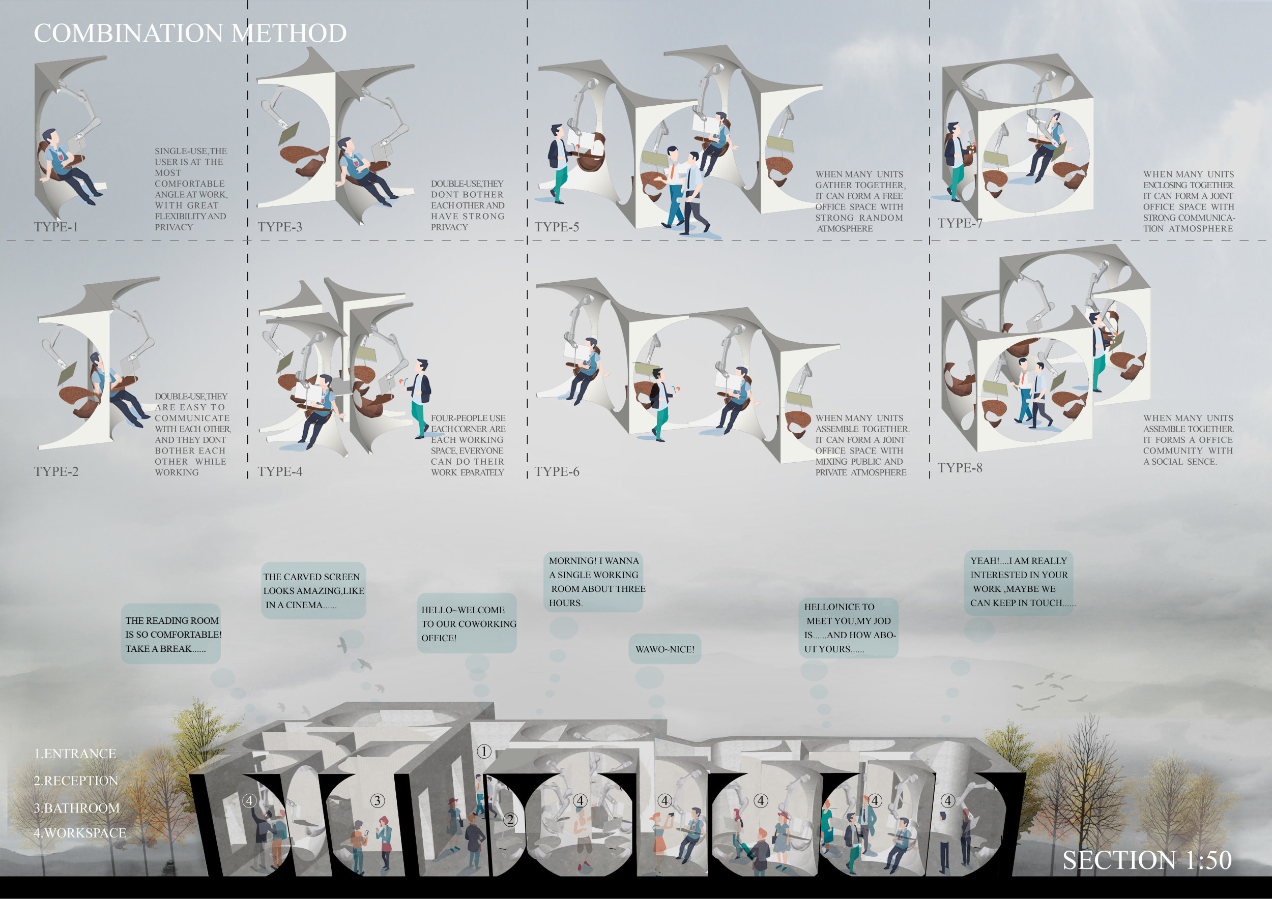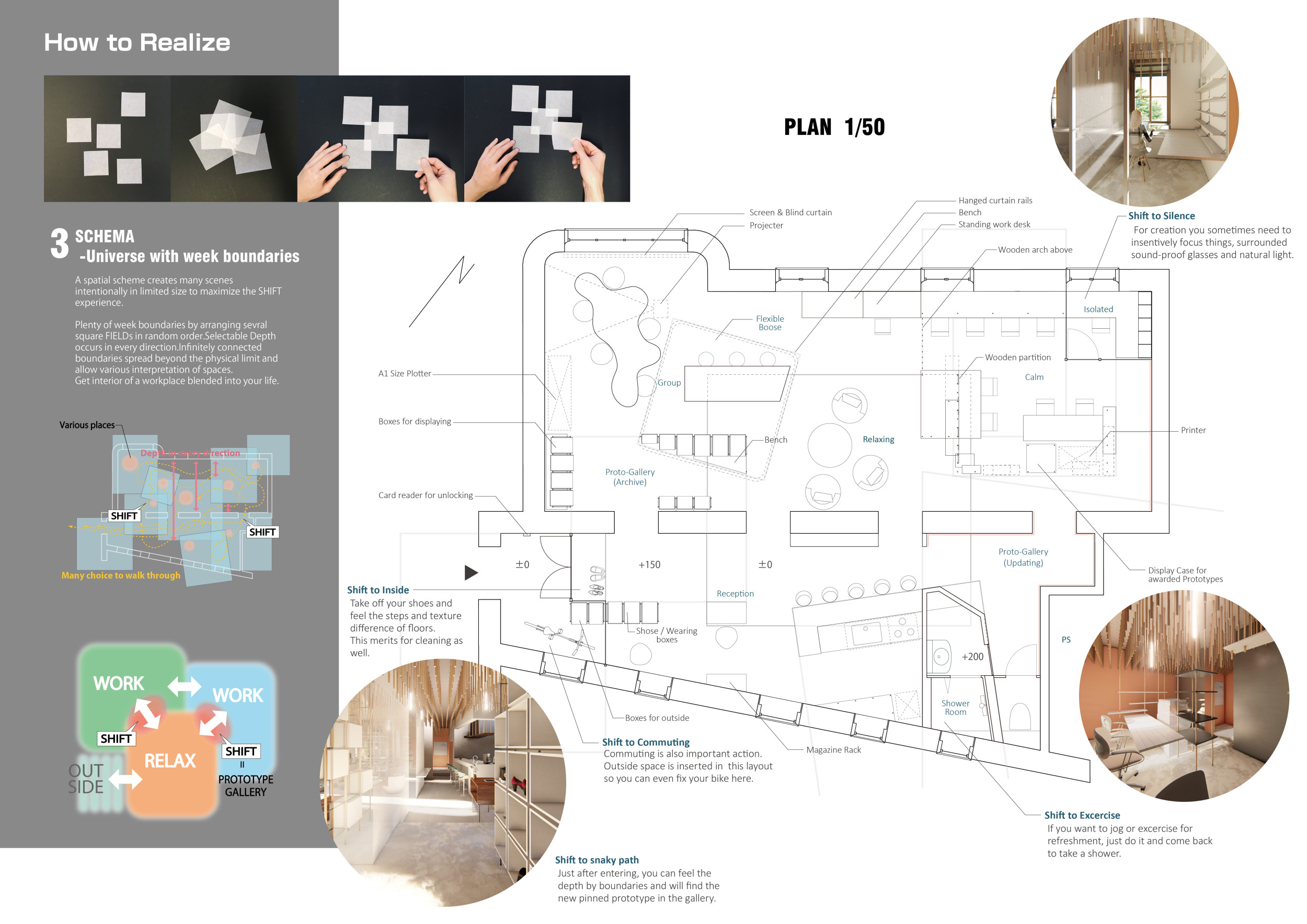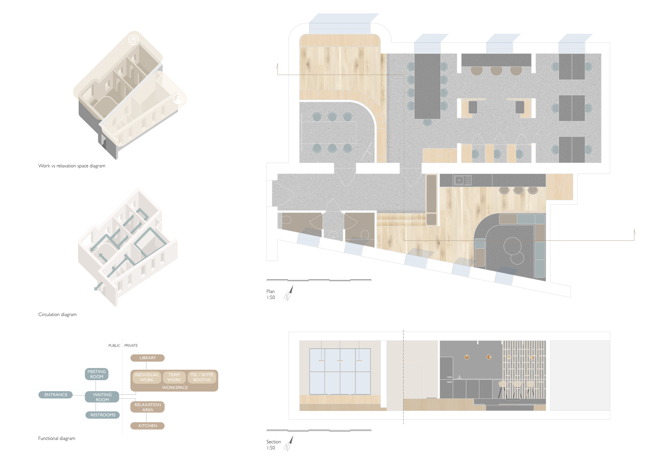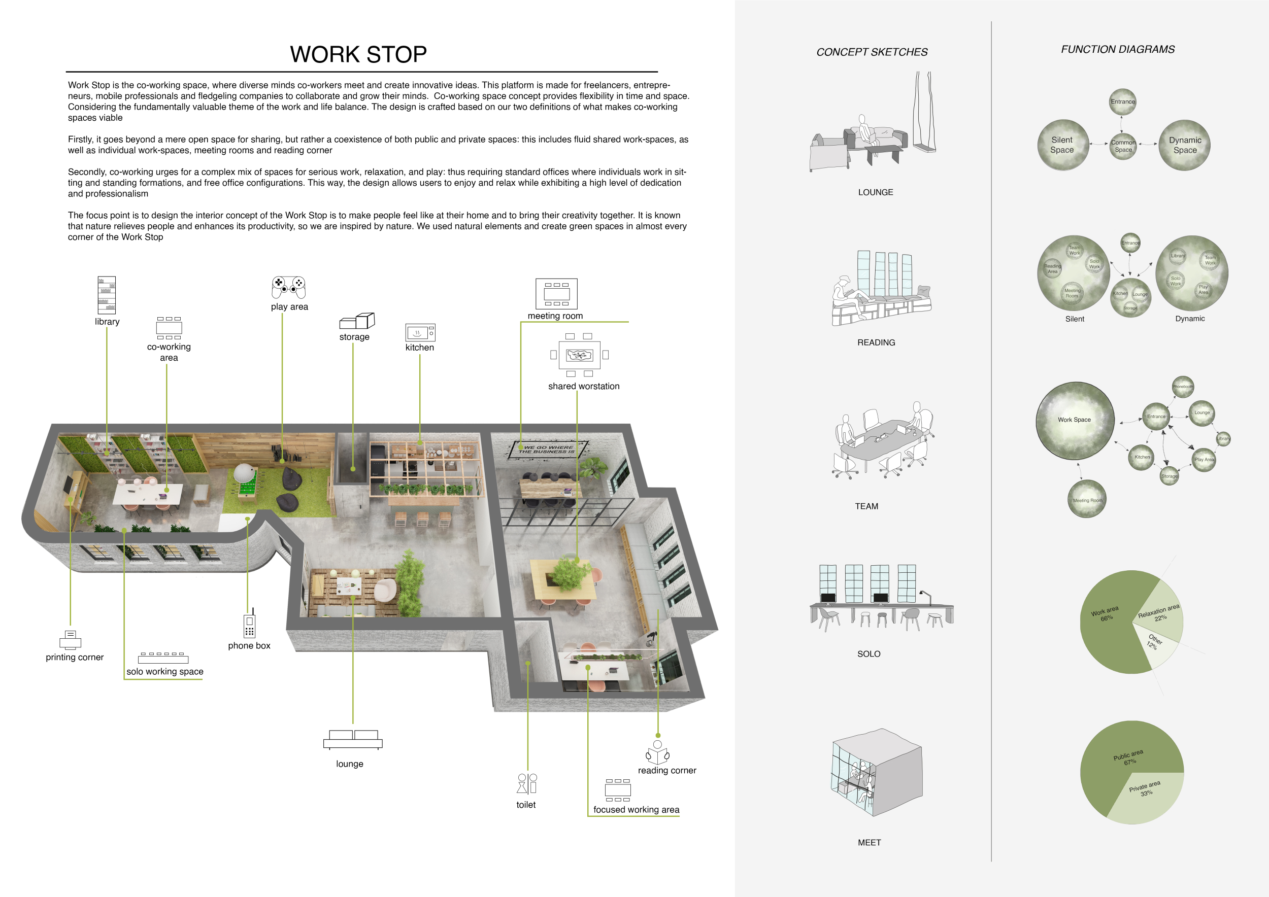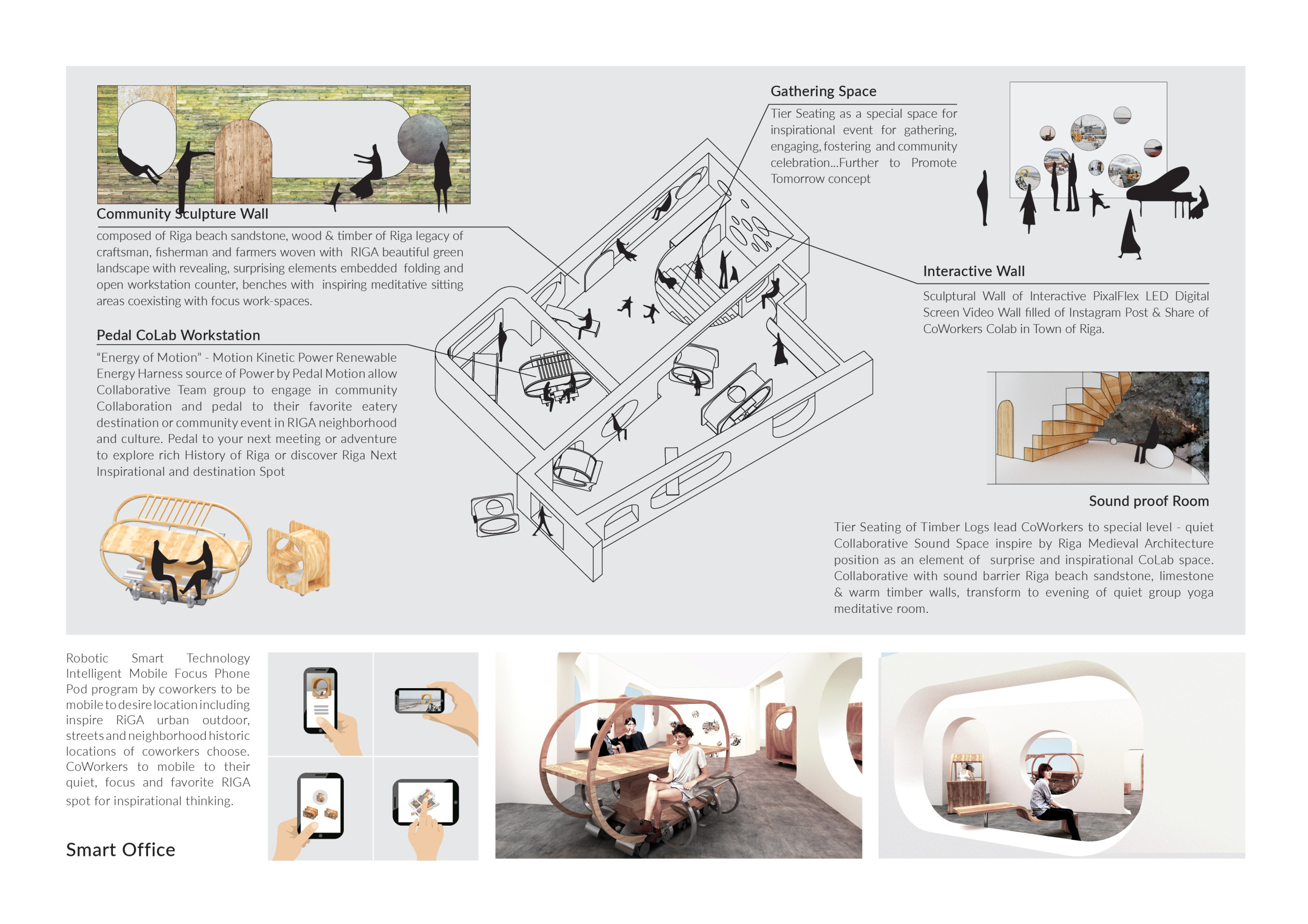 WILD took modular design to the next level, with its “Kit of Parts” enabling users to customise their work space towards either individual, isolated work, or fostering collaboration and networking within the space. The project really played well with the theme of a zoo environment, exploring varying levels of exposure established through the lightweight framework of its modular system. Read more The jury selected this project as a runner-up because the highly-functional proposed grid system showed extreme originality and ingenuity, offering a variety of different types of working spaces, presentation platforms, and storage areas. And while the design has great potential in becoming a part of the Urban Zoo Coworking bran, the jury did have slight concerns about the practicalities of the structure installation, maintenance, and cost.