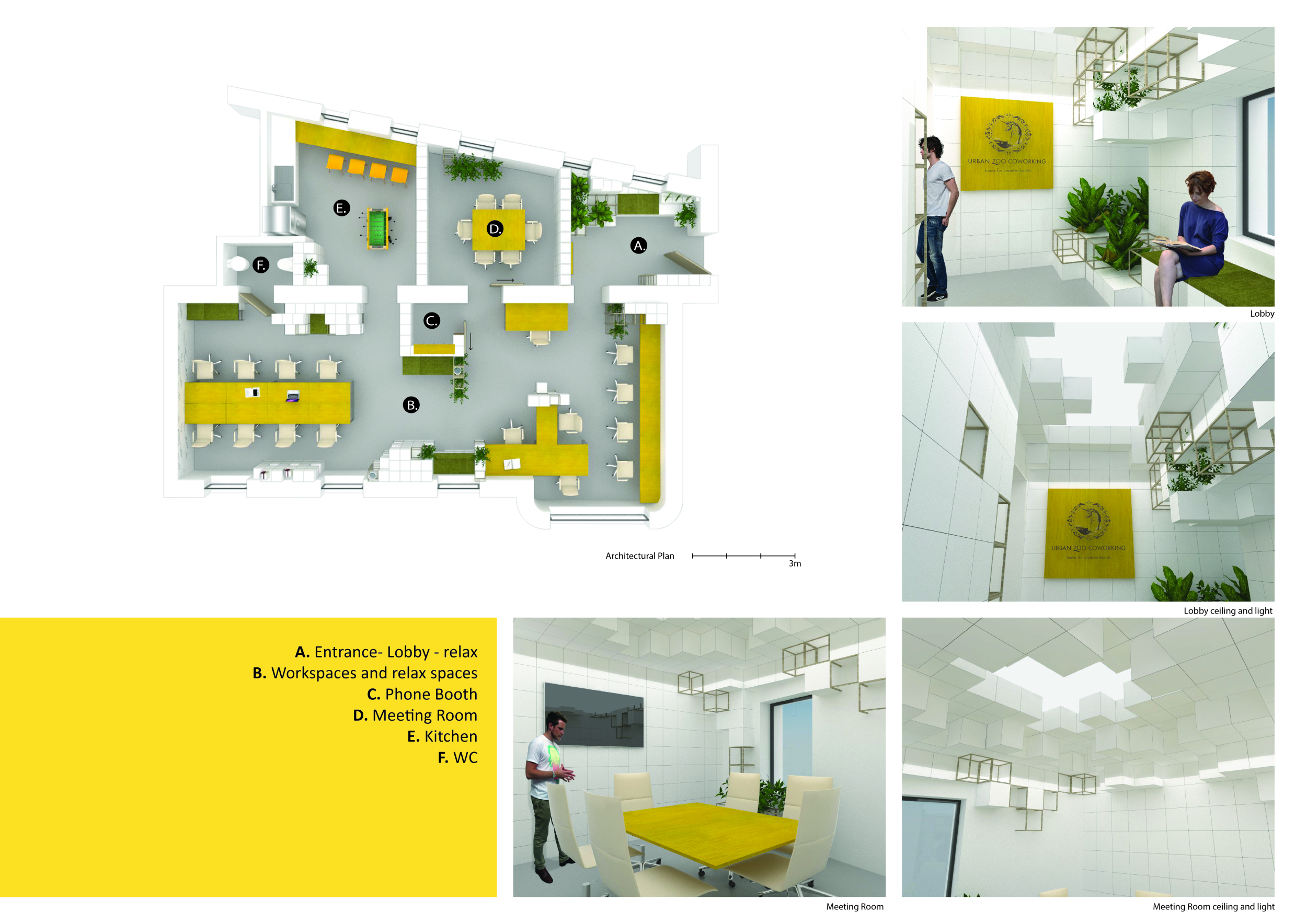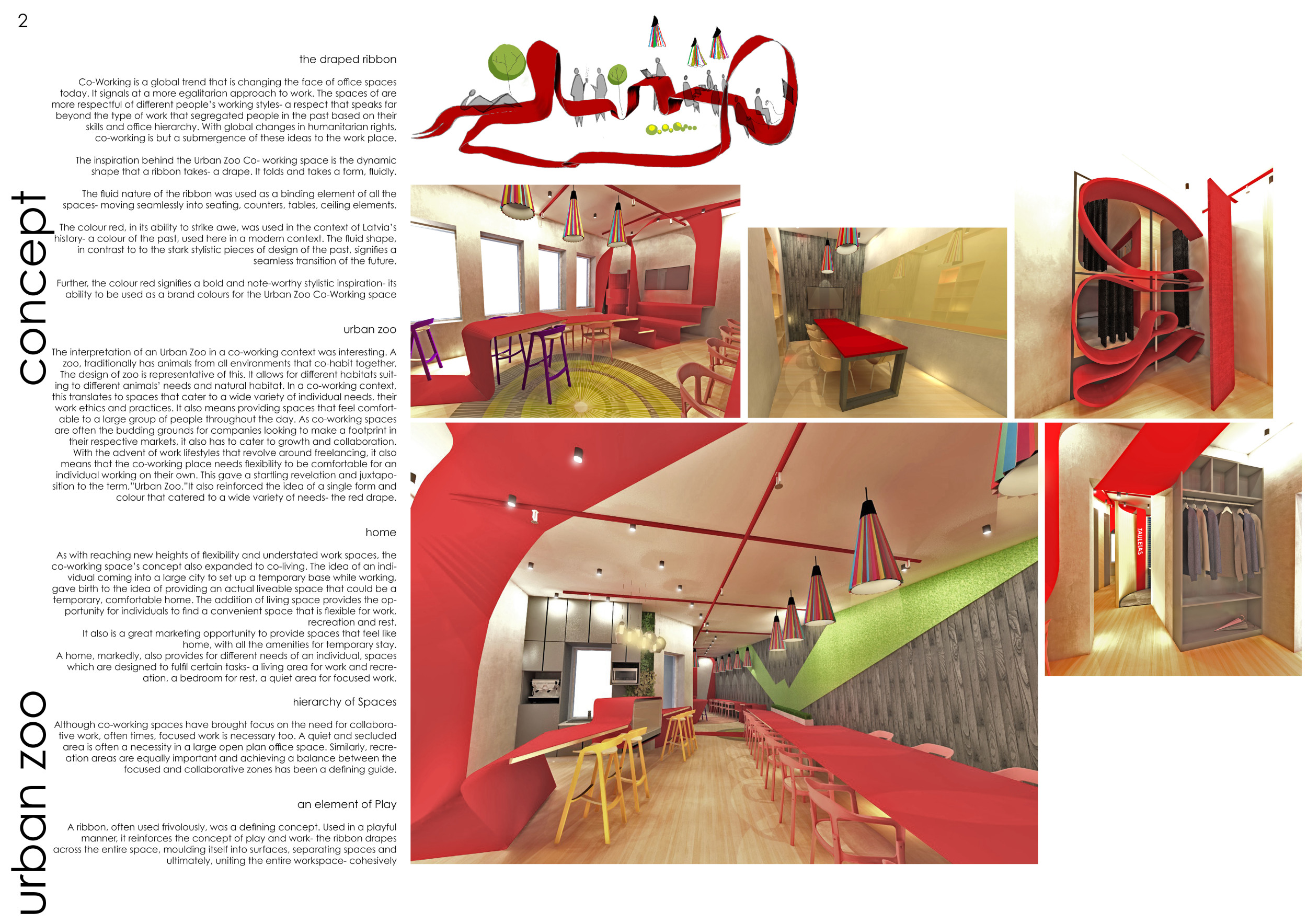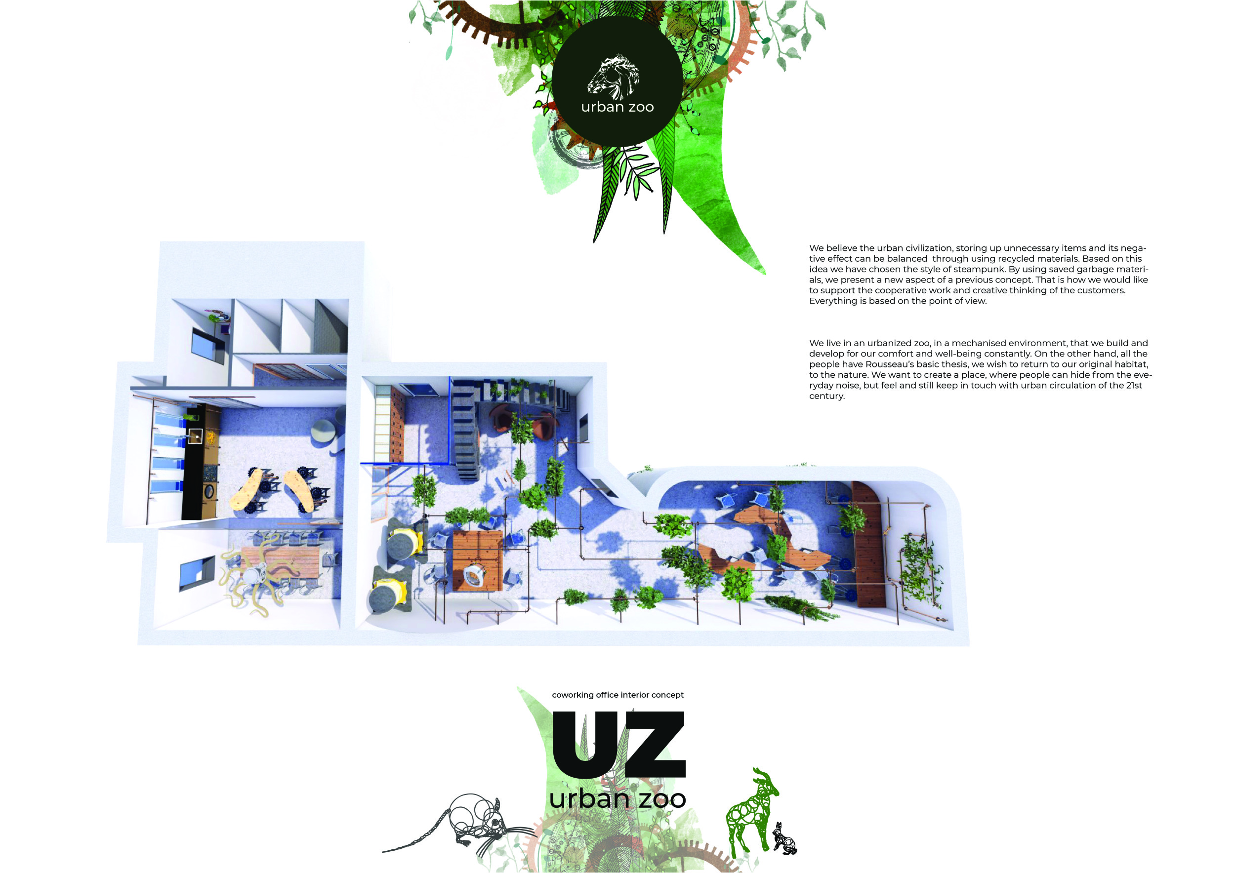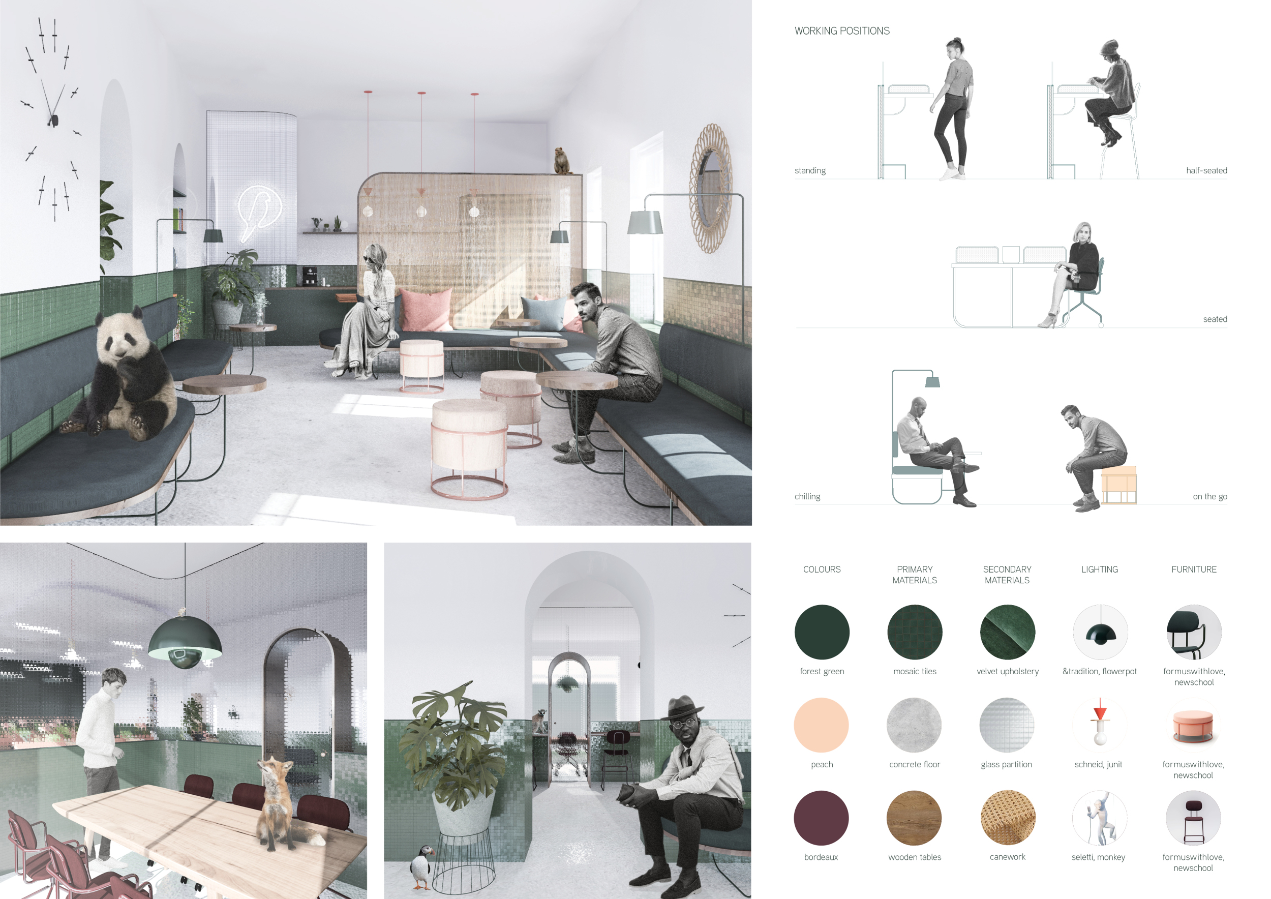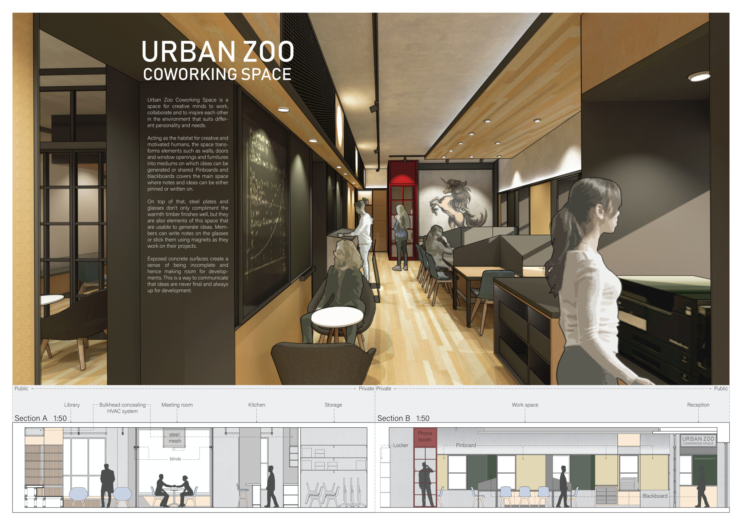 Urban Zoo Coworking was looking for a signature style for their co-working spaces, an interior design that could be applied to each new venue and customised to suit the creative needs of its users, from freelancers to startups and small businesses. Participants were challenged to create a unique space that would distinguish it from other traditional offices, invoking a sense of creativity and collaboration within the space.