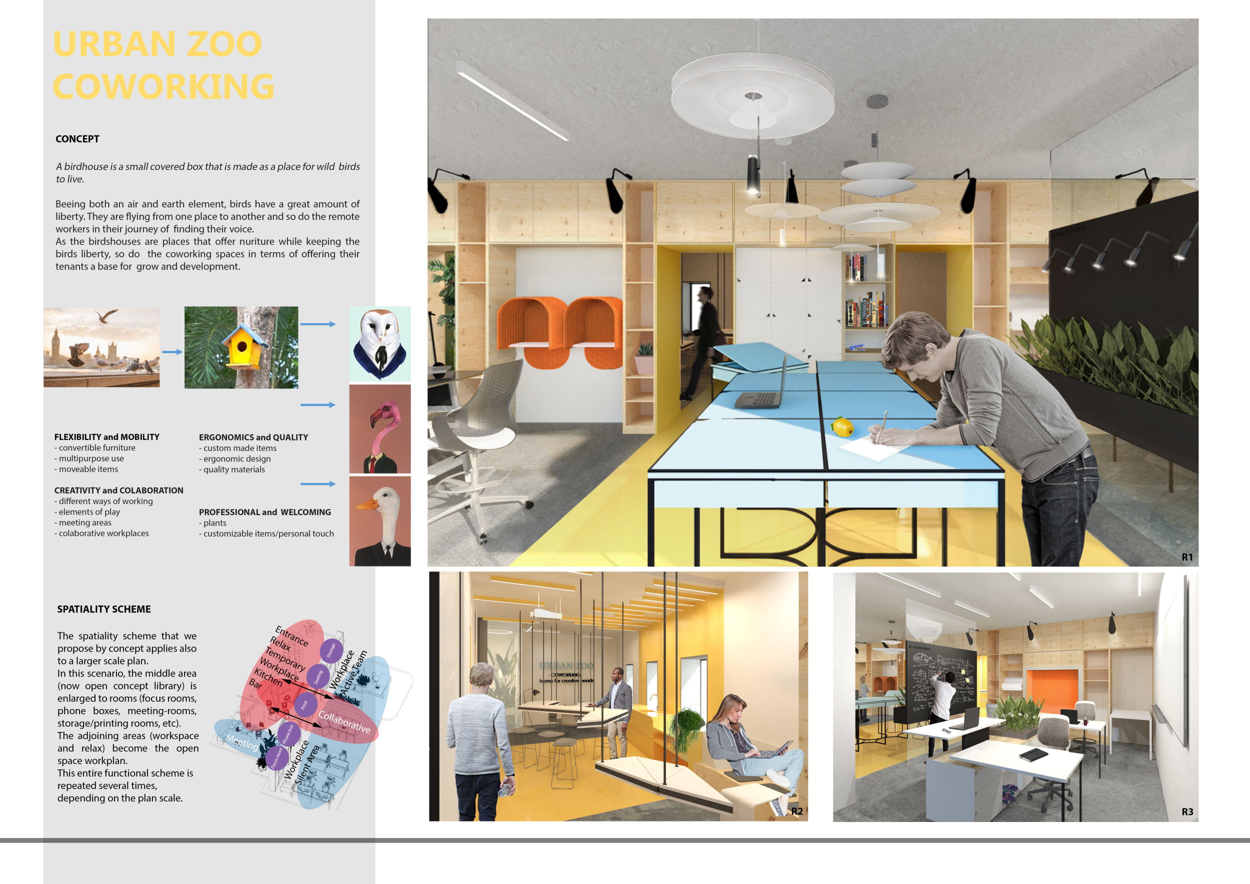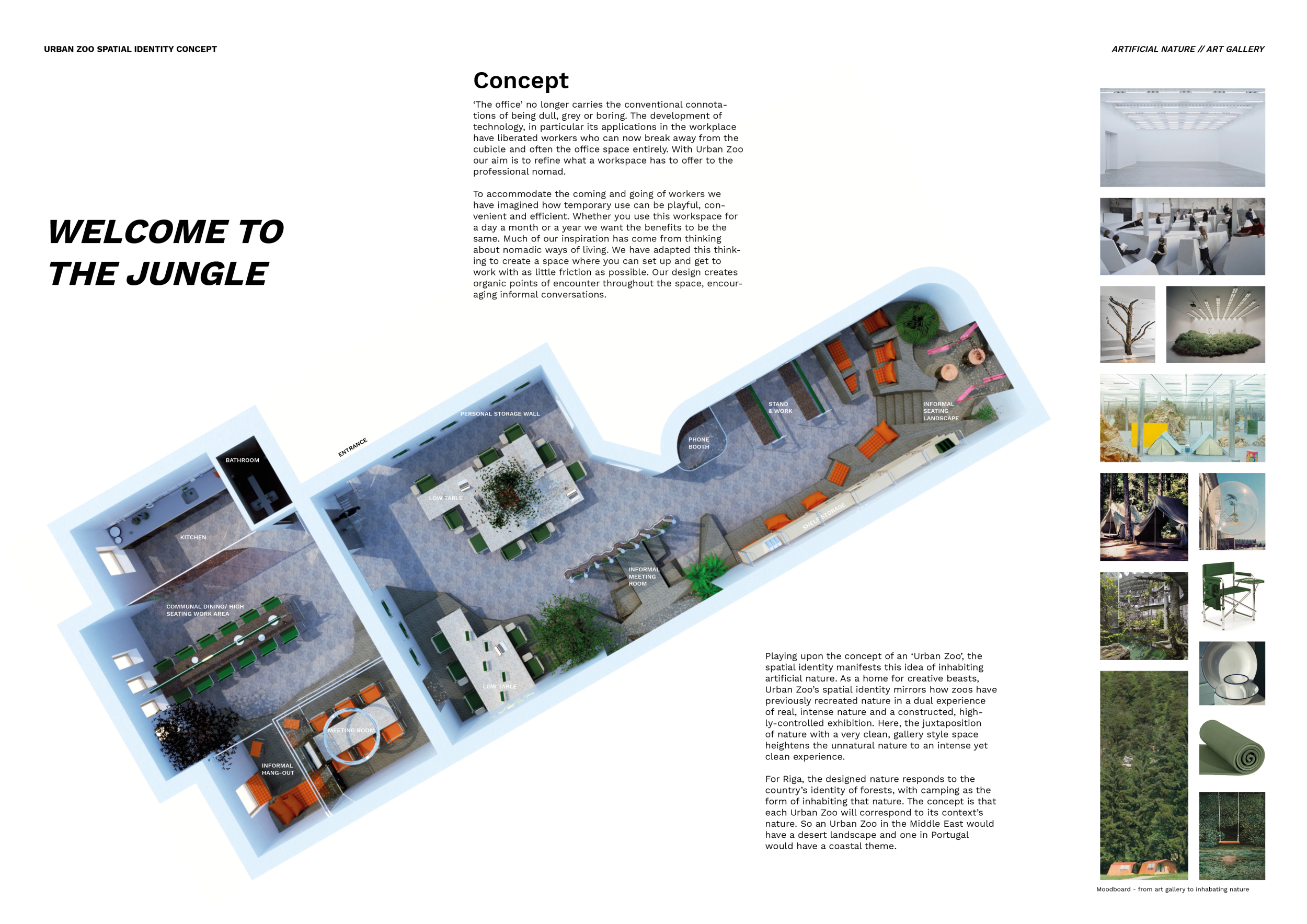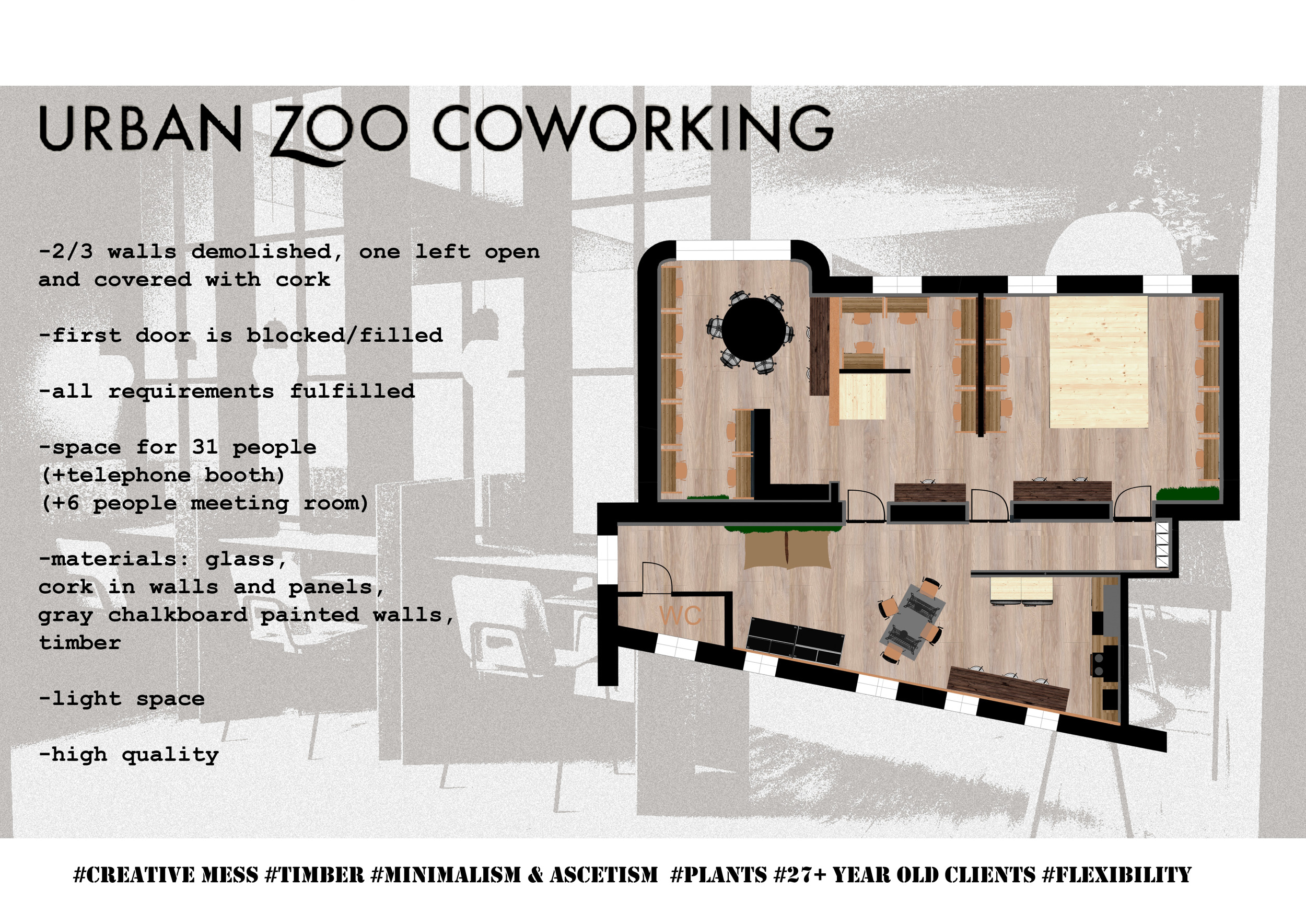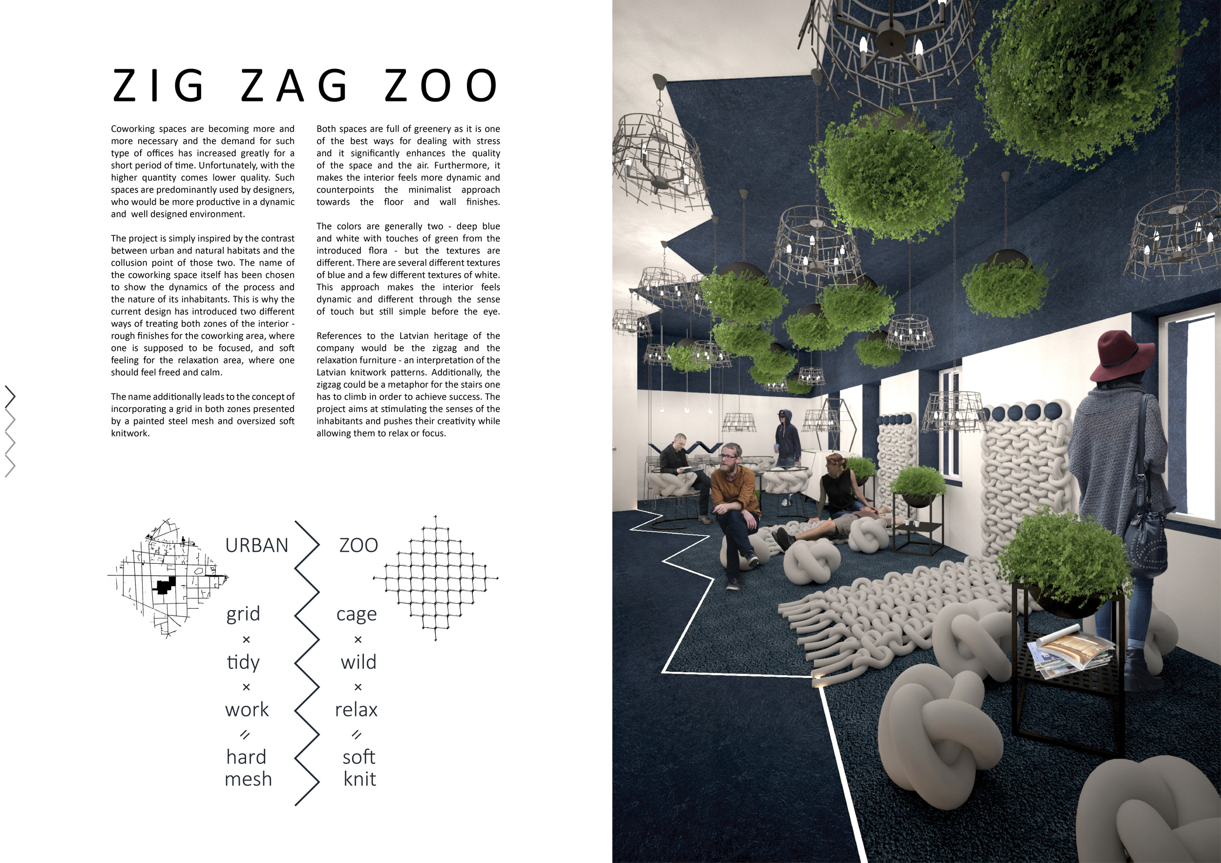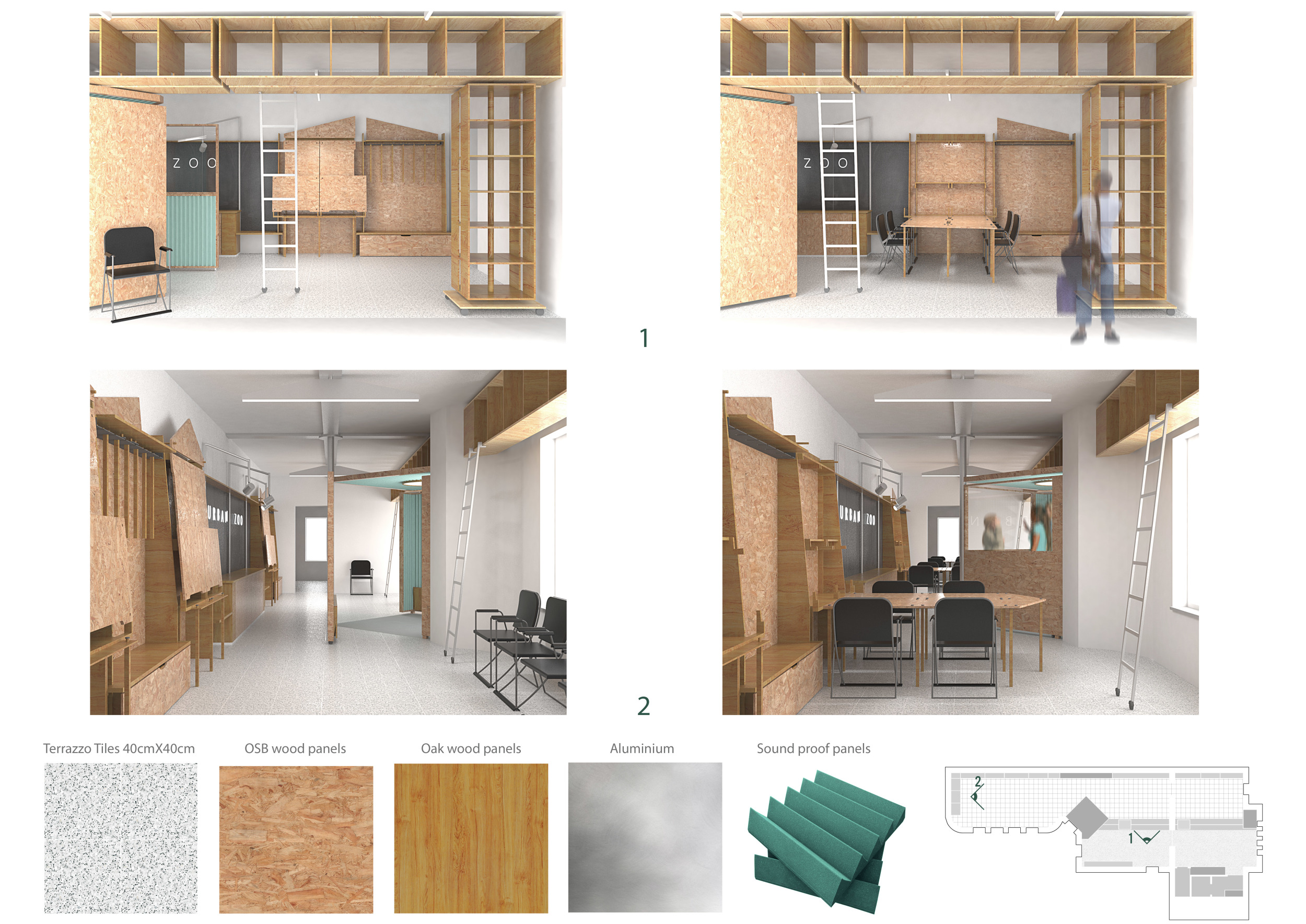 Urban Zoo Coworking was looking for a signature style for their co-working spaces, an interior design that could be applied to each new venue and customised to suit the creative needs of its users, from freelancers to startups and small businesses. Participants were challenged to create a unique space that would distinguish it from other traditional offices, invoking a sense of creativity and collaboration within the space.