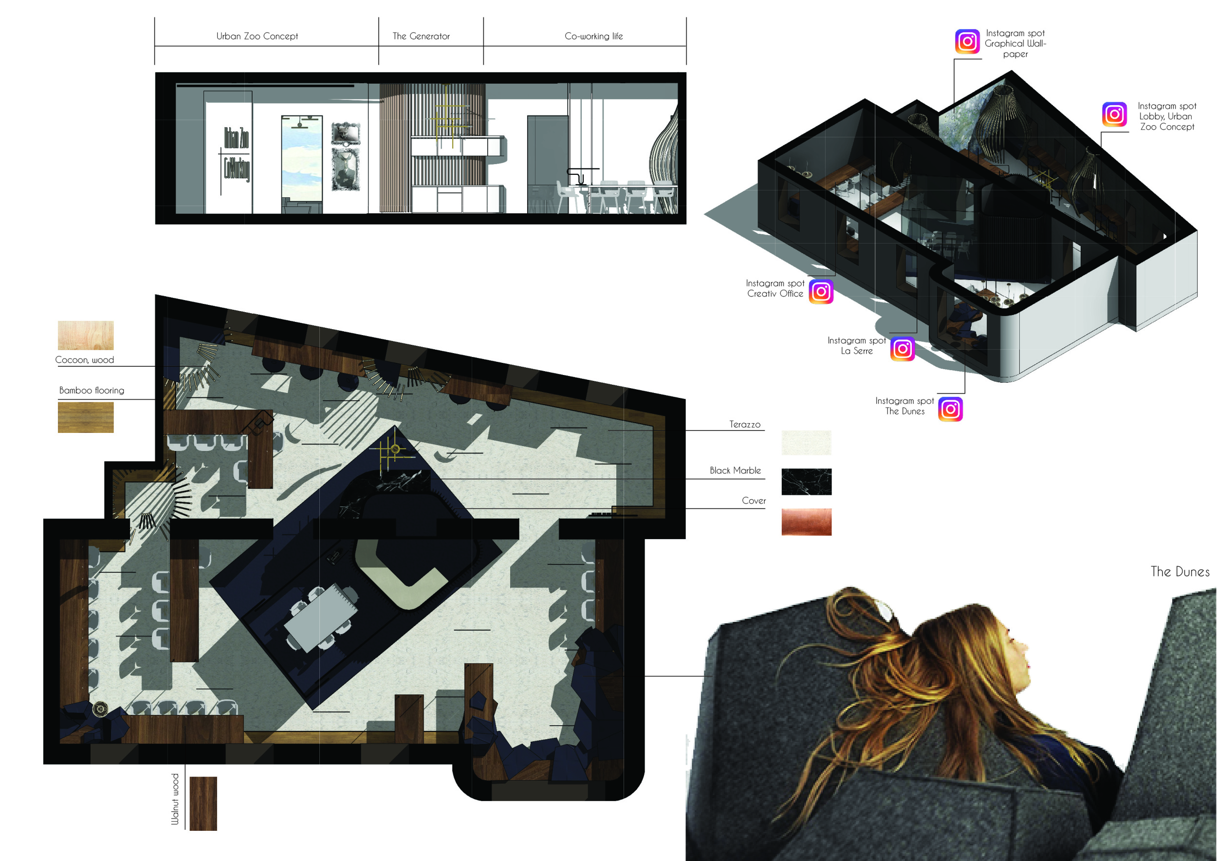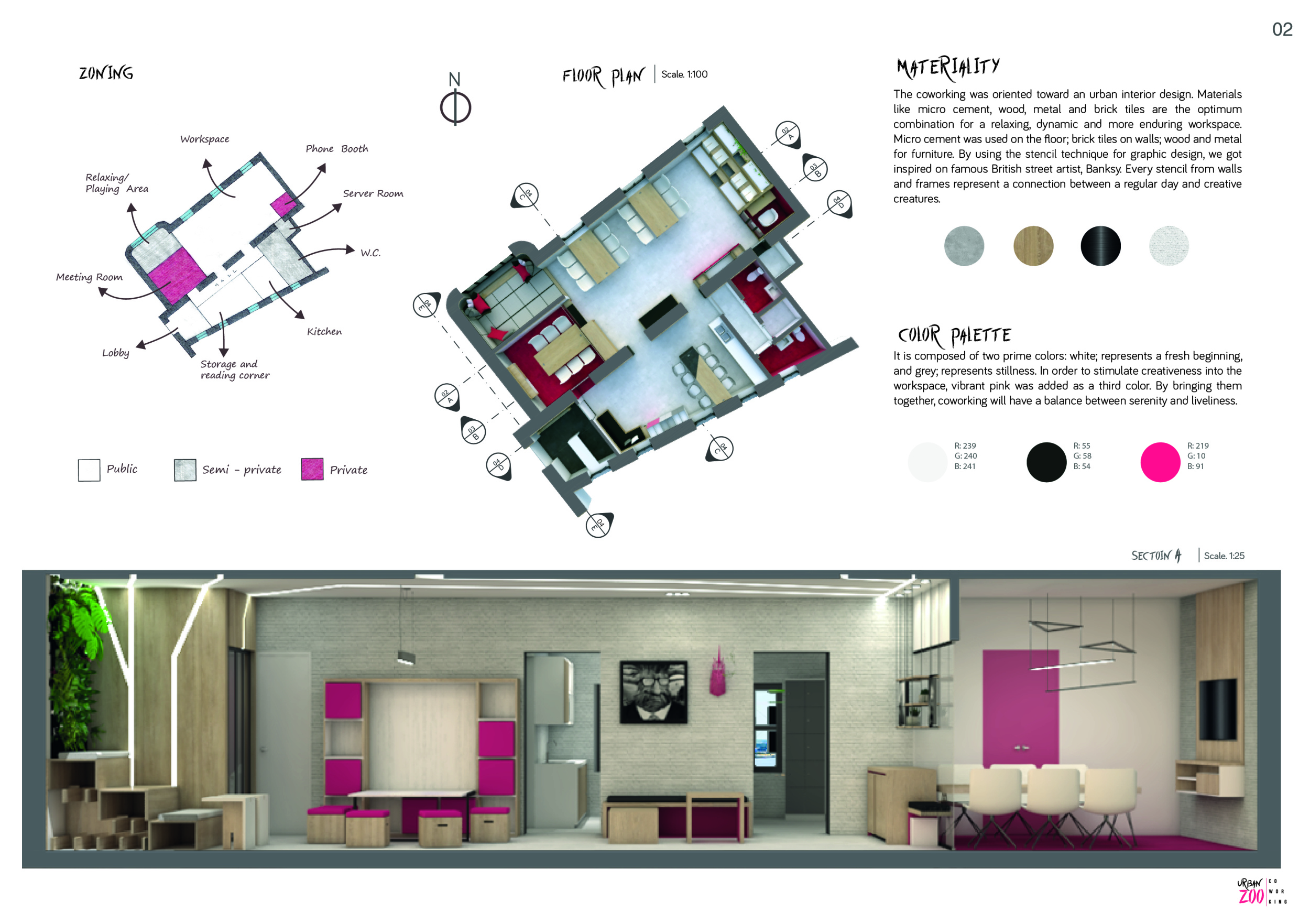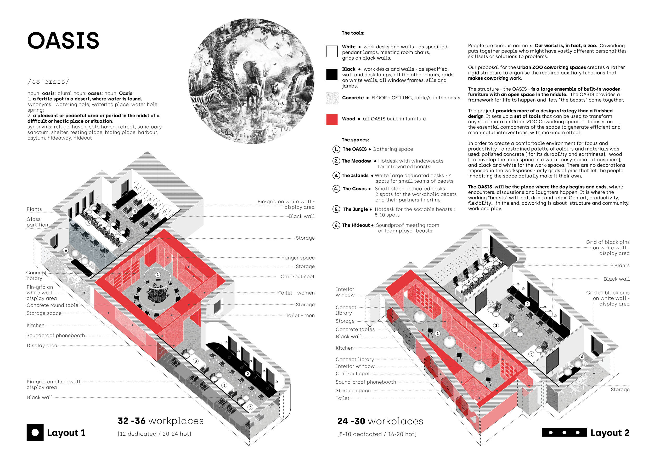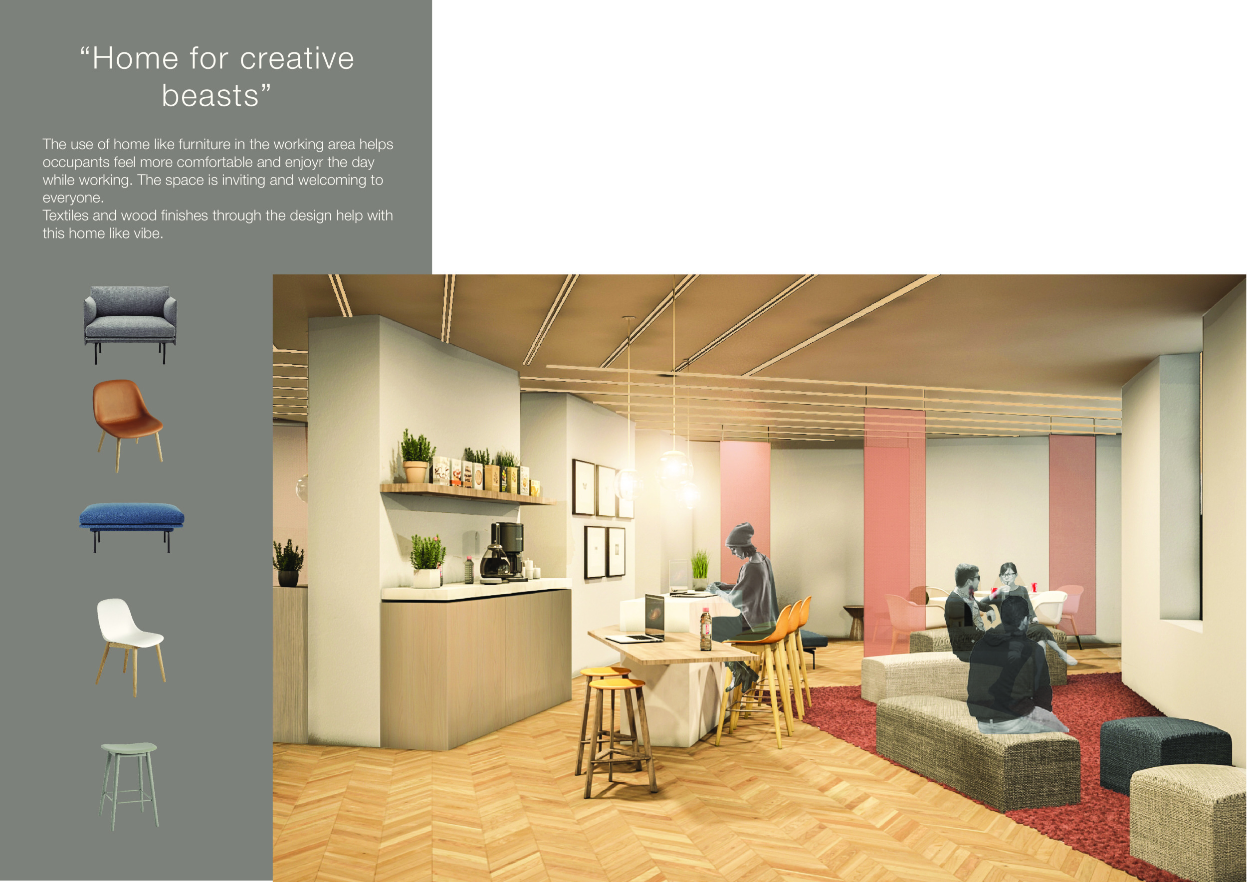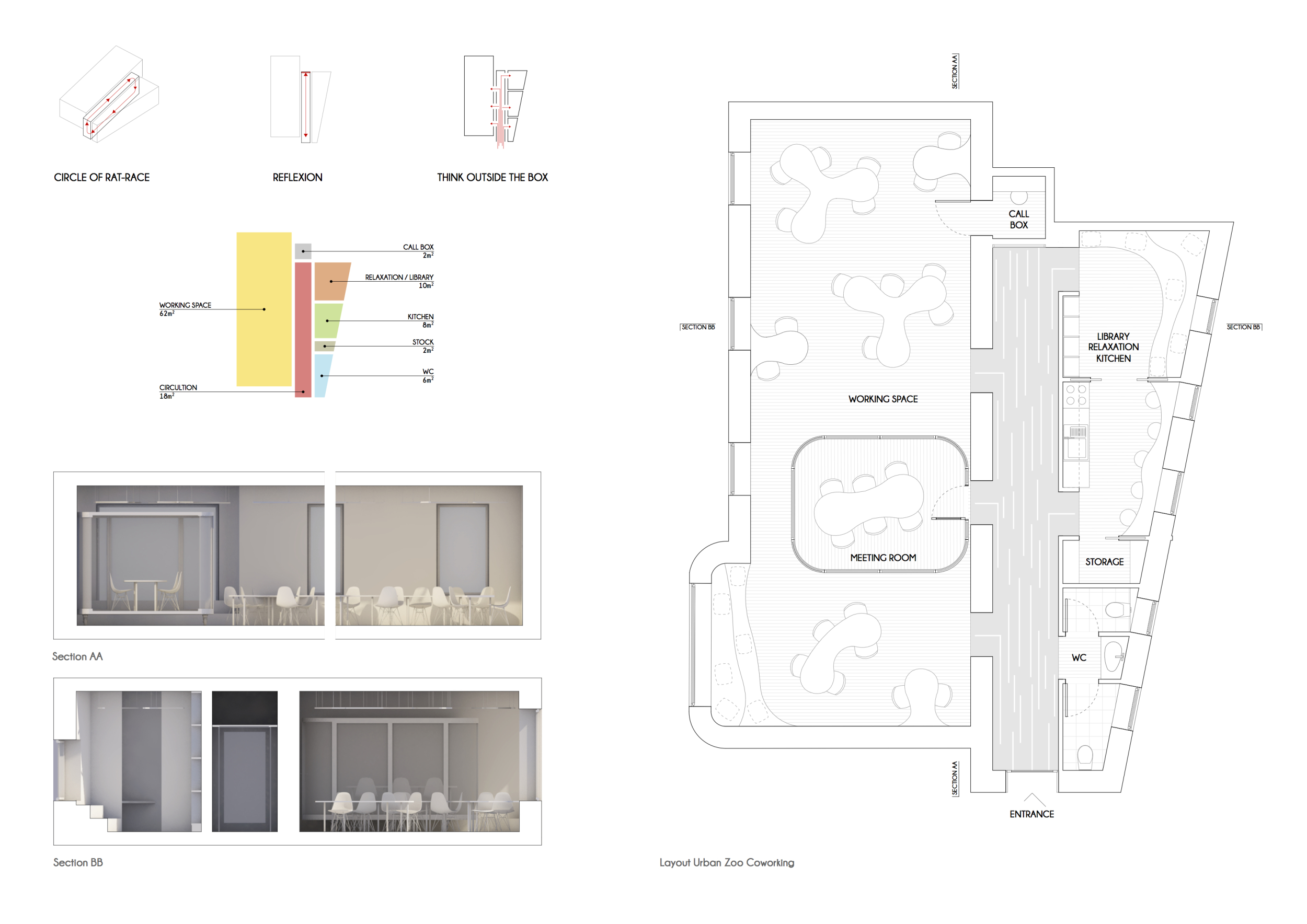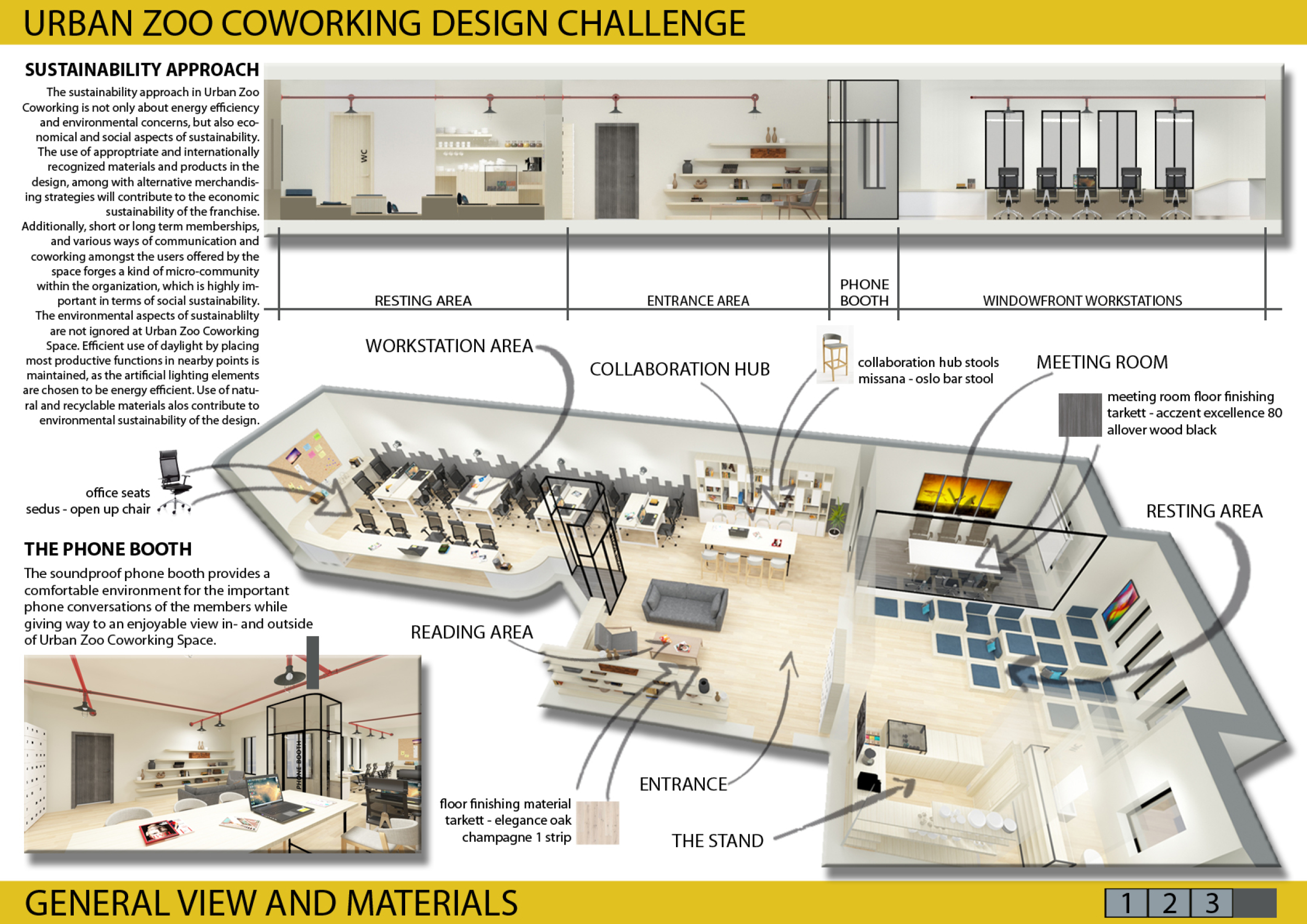 Urban Zoo Coworking was looking for a signature style for their co-working spaces, an interior design that could be applied to each new venue and customised to suit the creative needs of its users, from freelancers to startups and small businesses. Participants were challenged to create a unique space that would distinguish it from other traditional offices, invoking a sense of creativity and collaboration within the space.