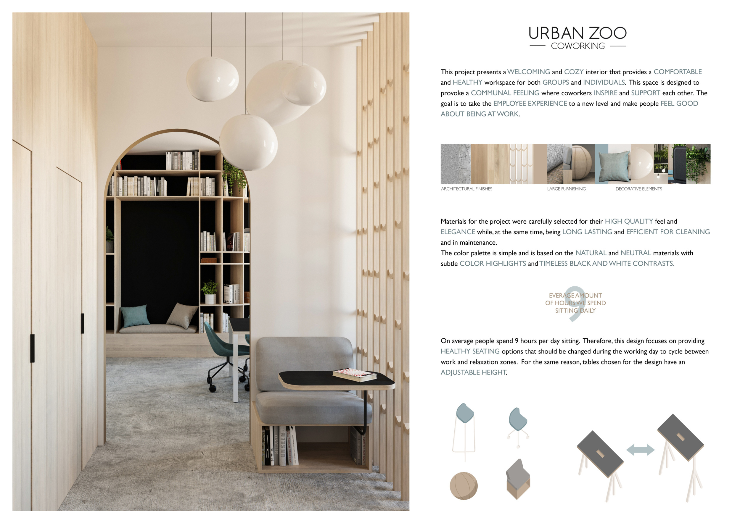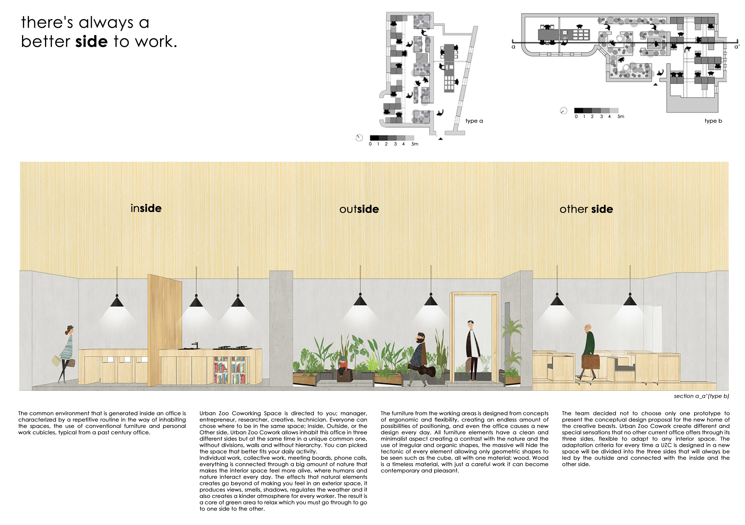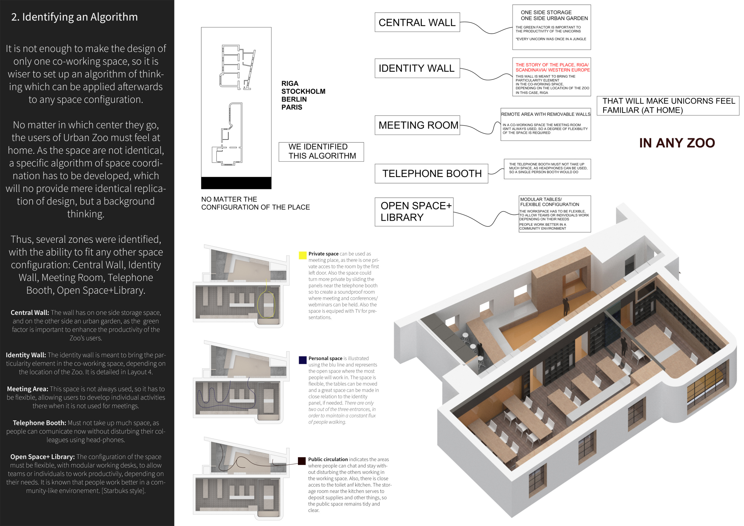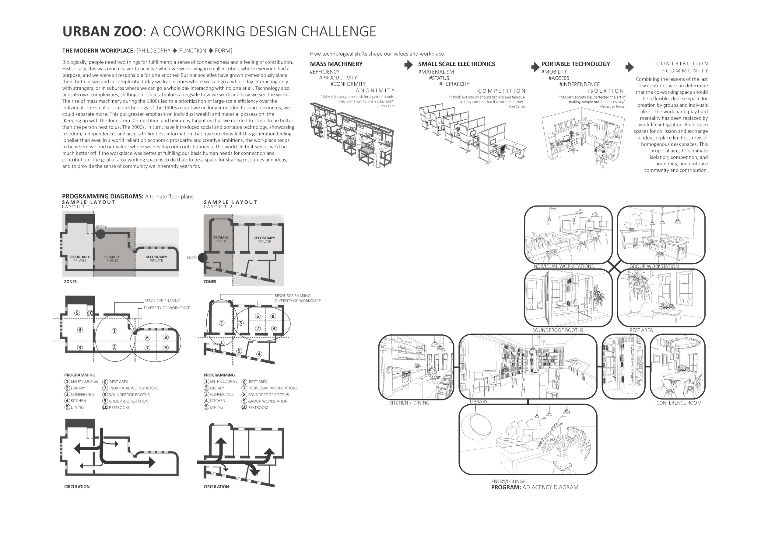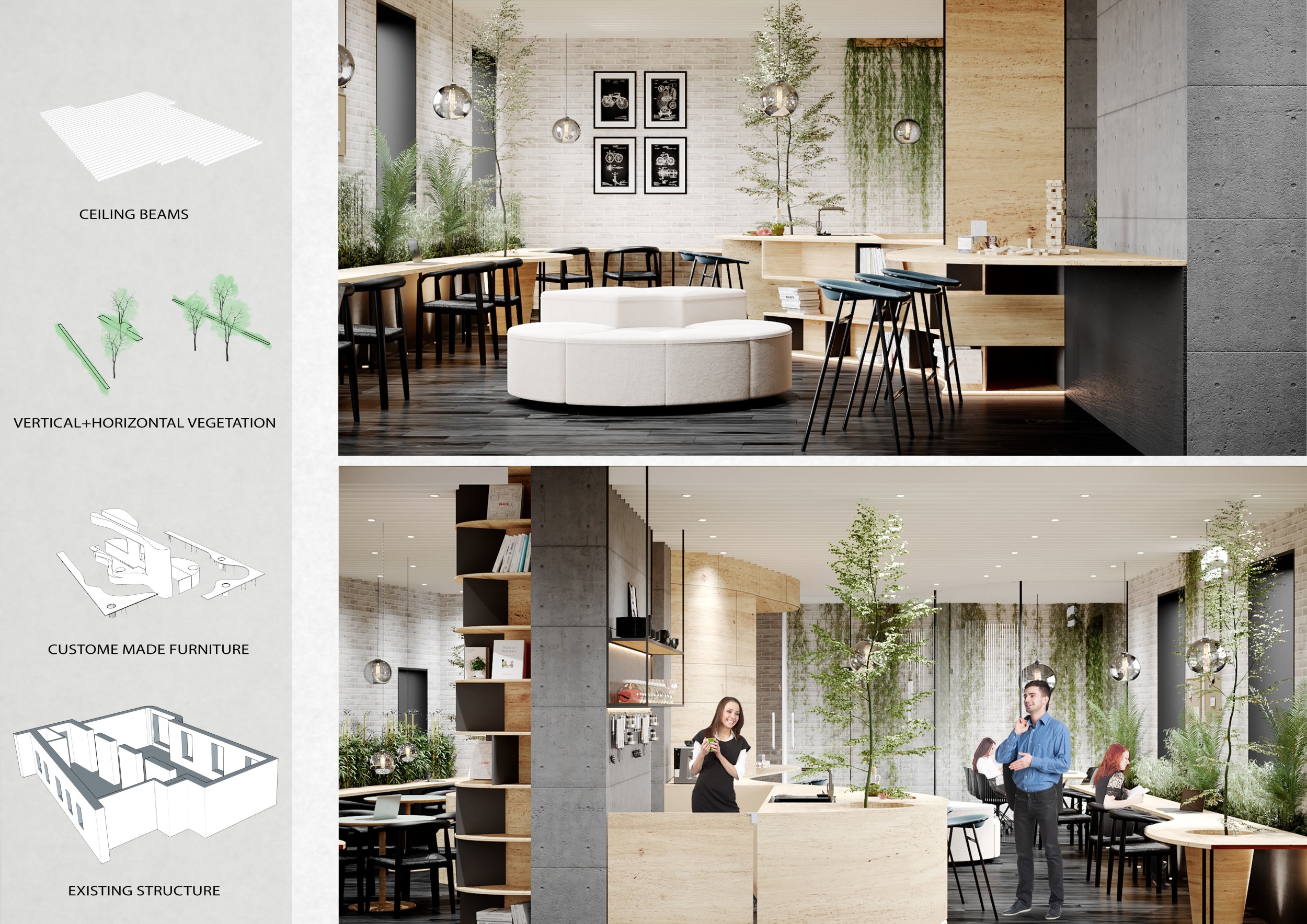 Urban Zoo Coworking was looking for a signature style for their co-working spaces, an interior design that could be applied to each new venue and customised to suit the creative needs of its users, from freelancers to startups and small businesses. Participants were challenged to create a unique space that would distinguish it from other traditional offices, invoking a sense of creativity and collaboration within the space.