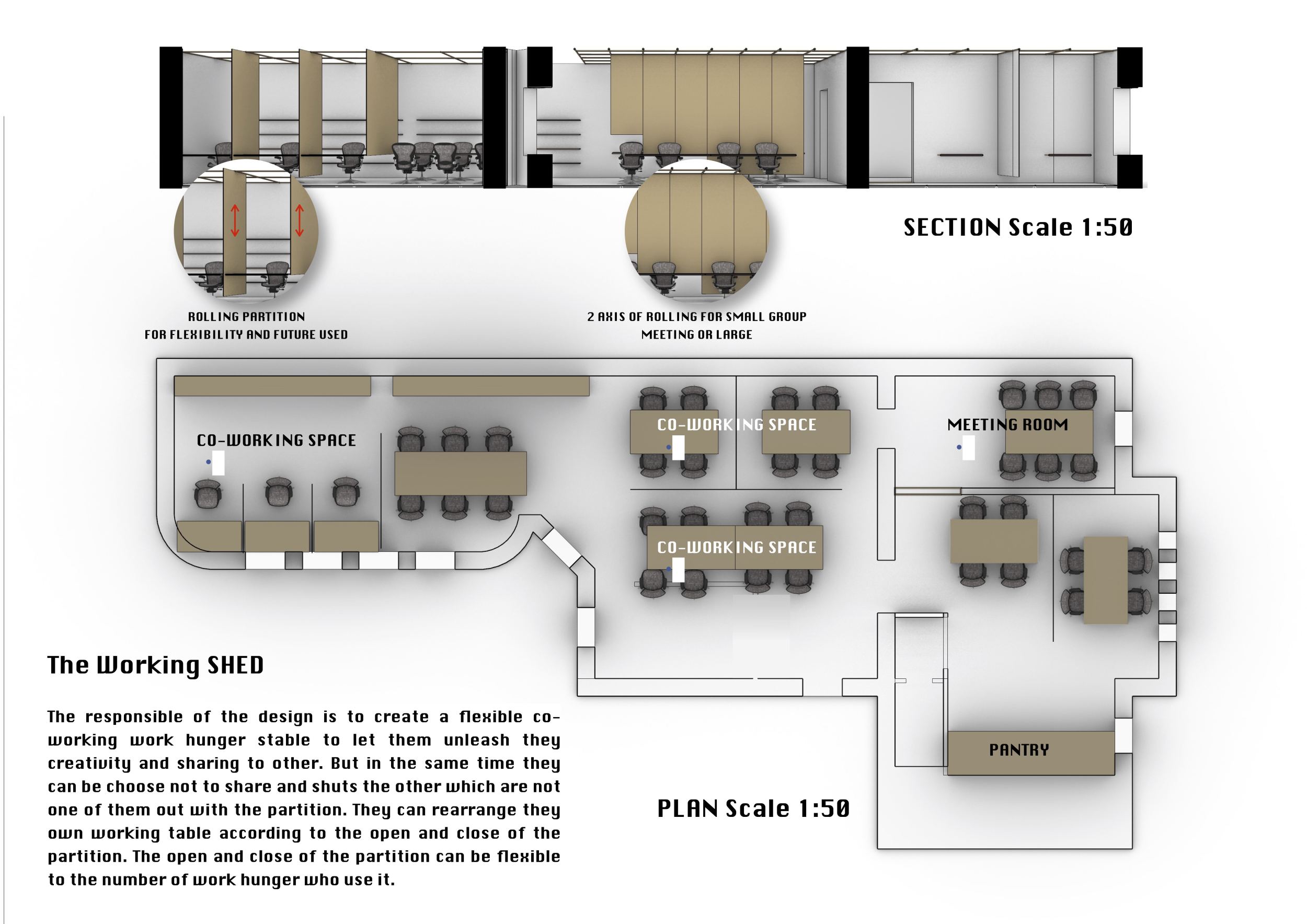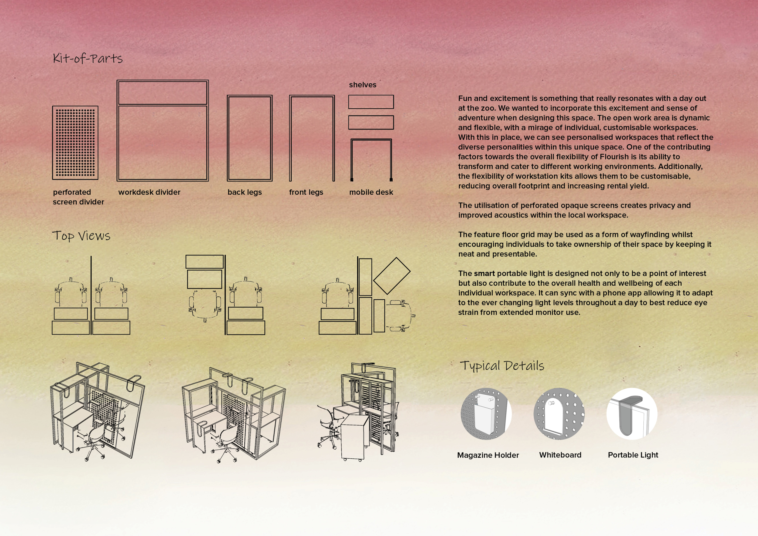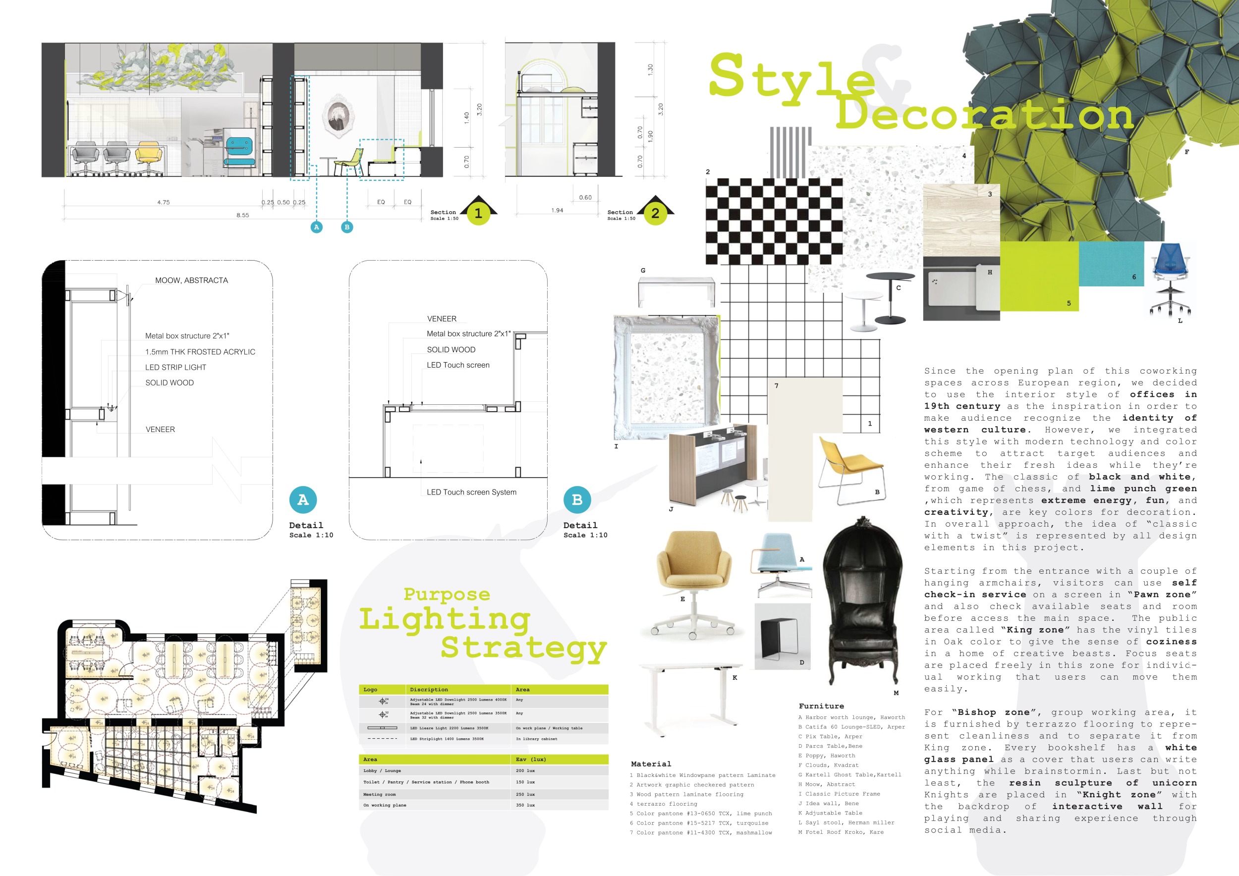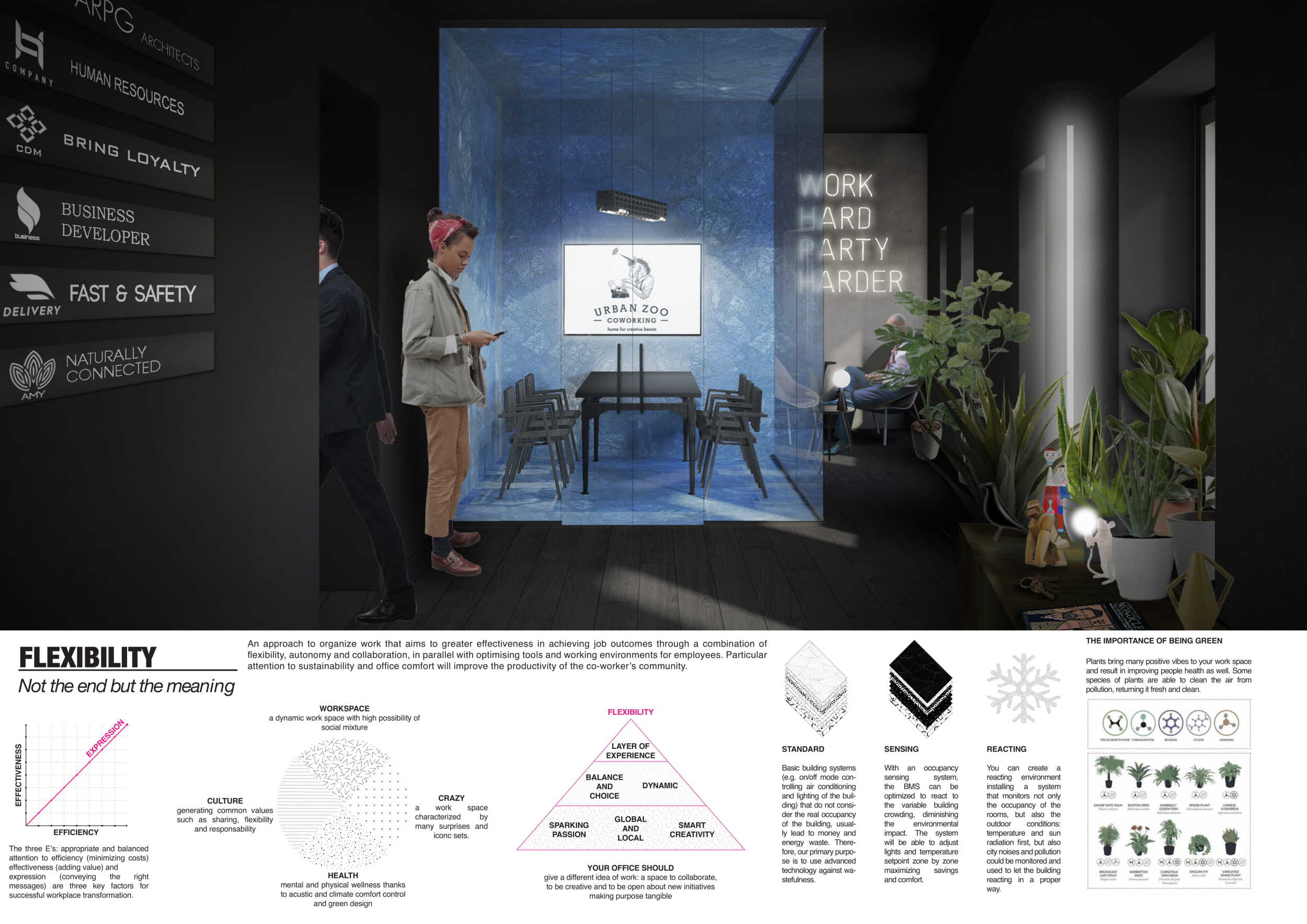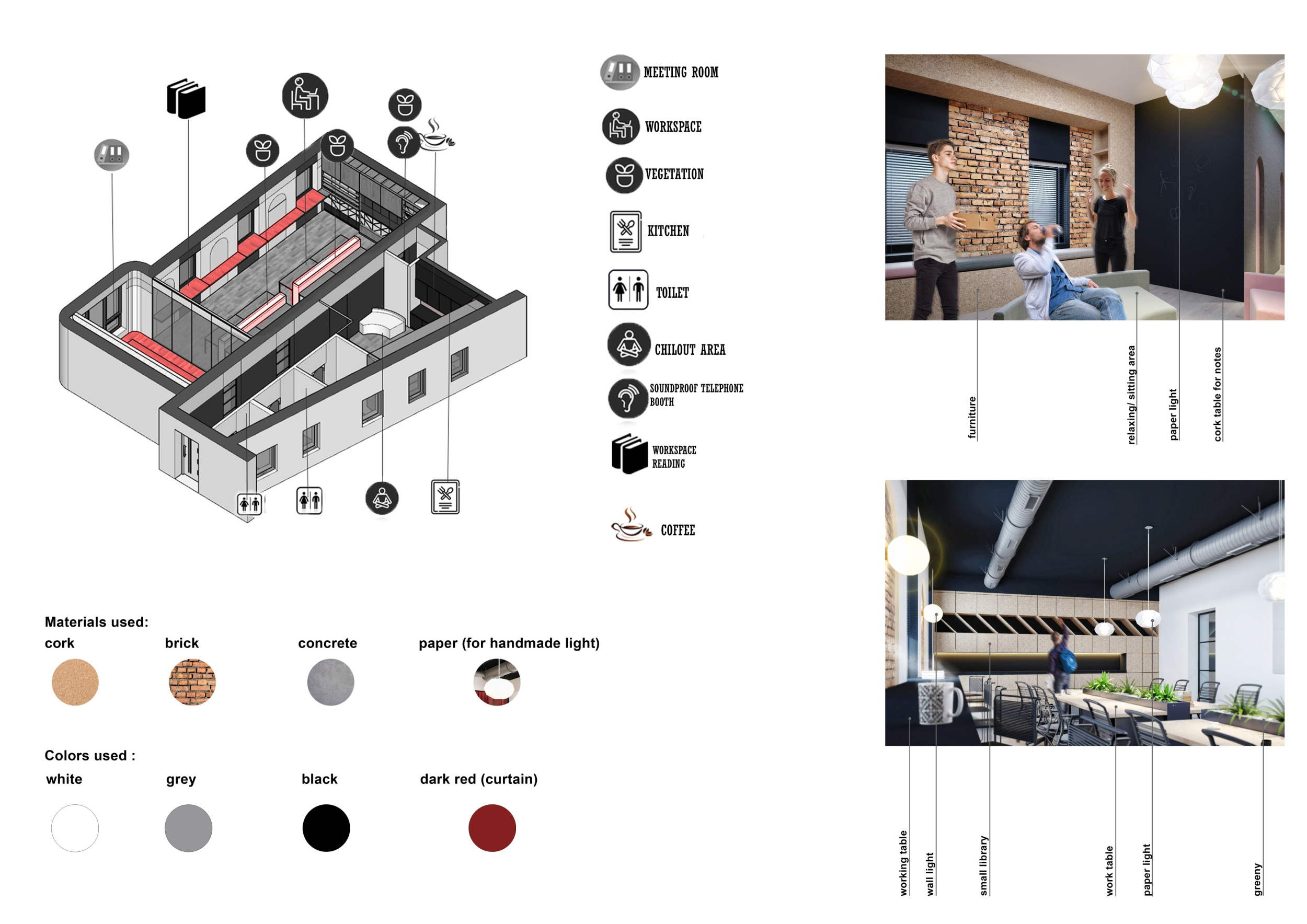 Urban Zoo Coworking was looking for a signature style for their co-working spaces, an interior design that could be applied to each new venue and customised to suit the creative needs of its users, from freelancers to startups and small businesses. Participants were challenged to create a unique space that would distinguish it from other traditional offices, invoking a sense of creativity and collaboration within the space.