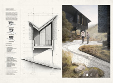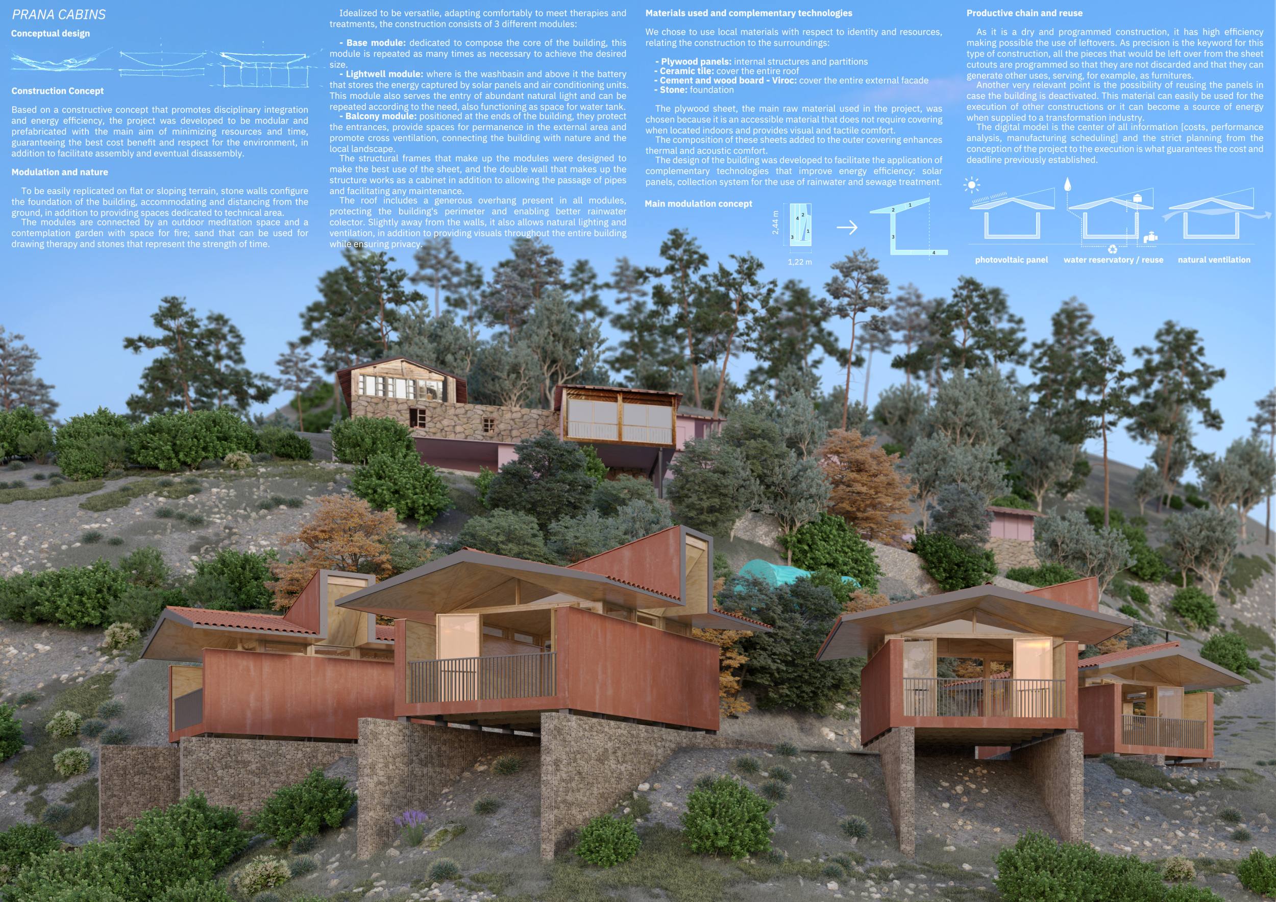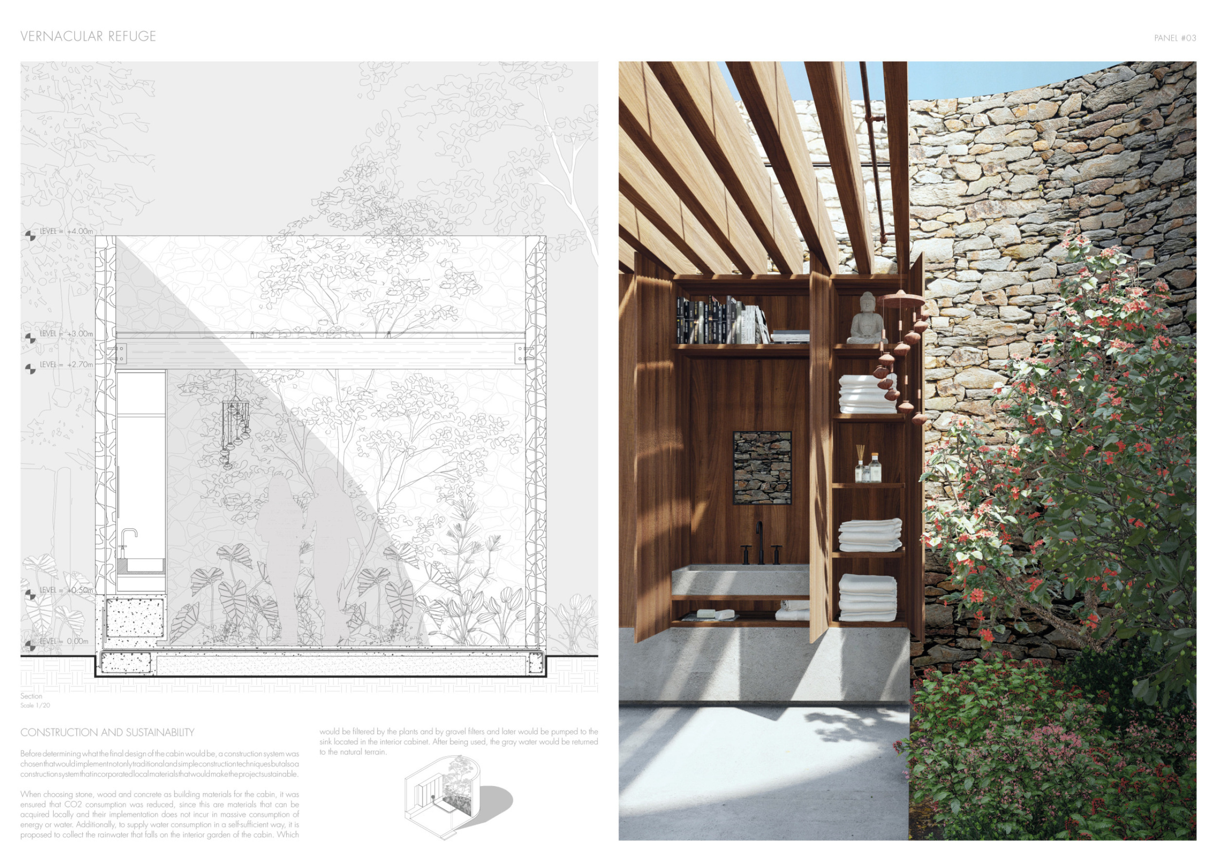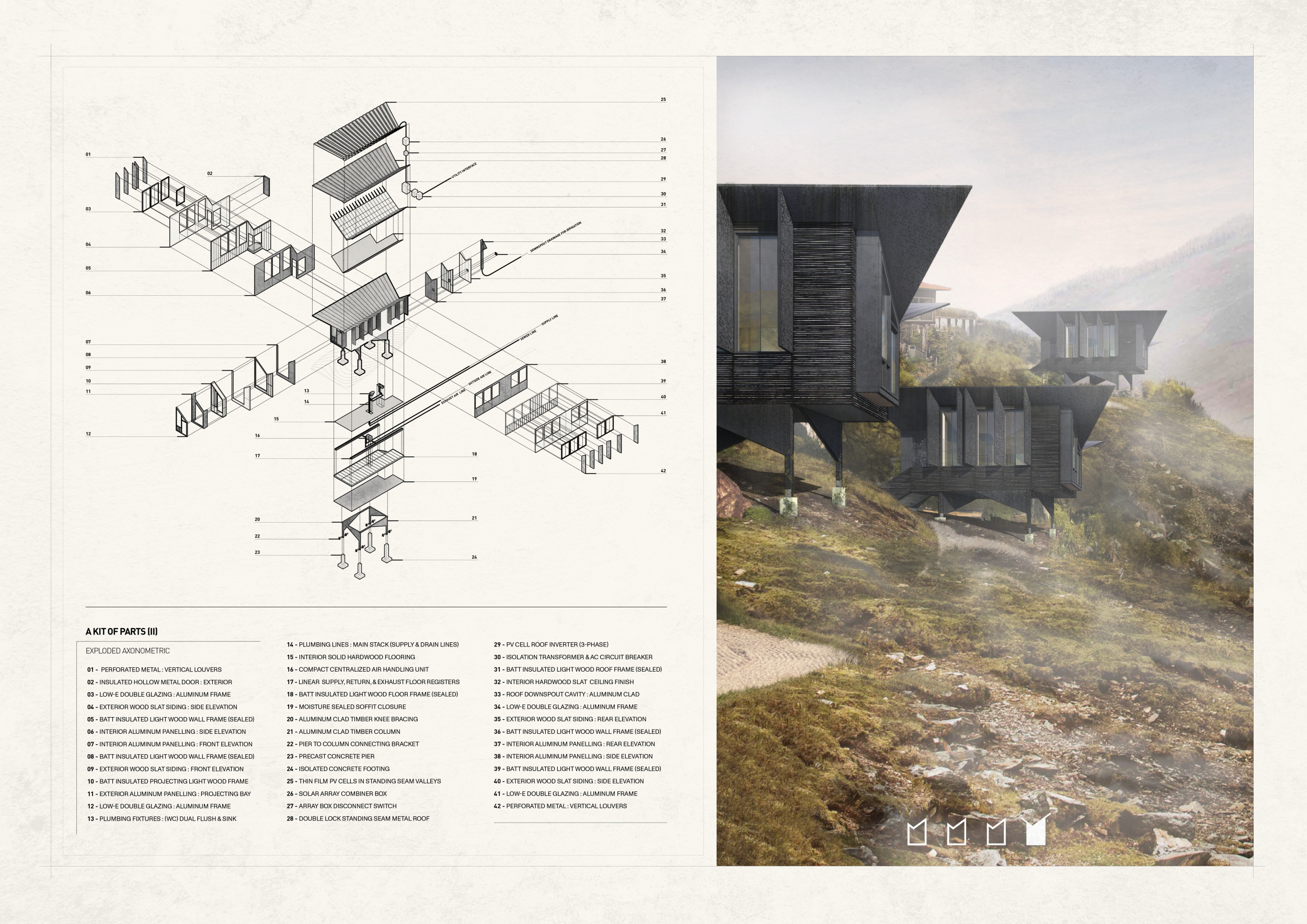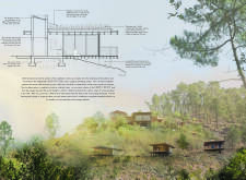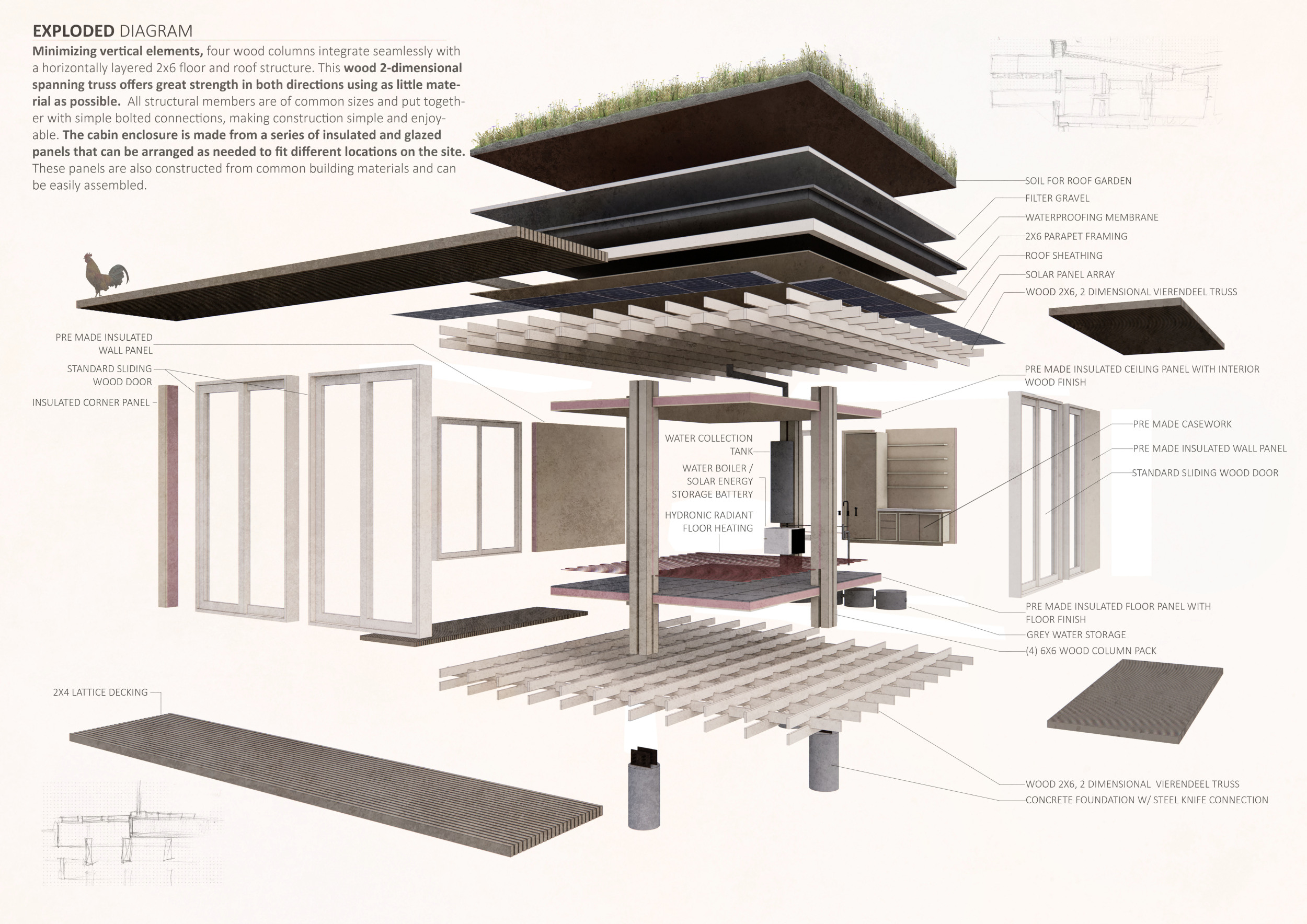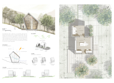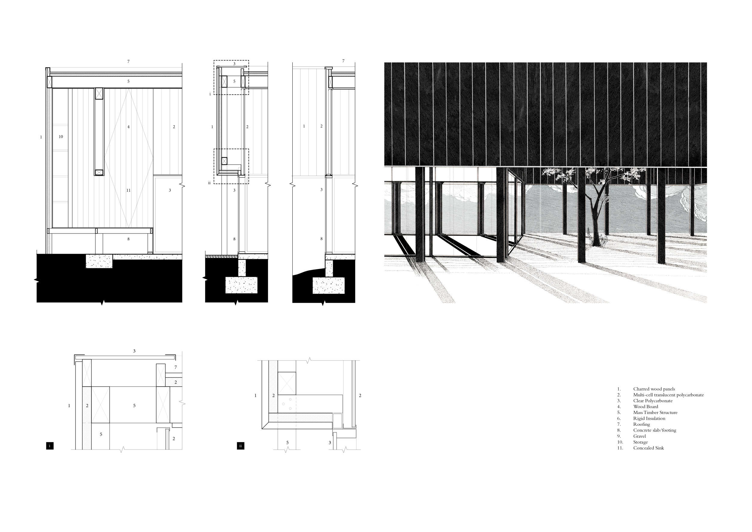 Participants were tasked here with submitting designs for a replicable ‘cabin’ for guest treatments and meditation sessions. The cabin is to be a space that allows guests to connect with the surrounding forest and gardens as part of a meditative and personal experience. Each cabin should provide sufficient space for one guest and one therapist.