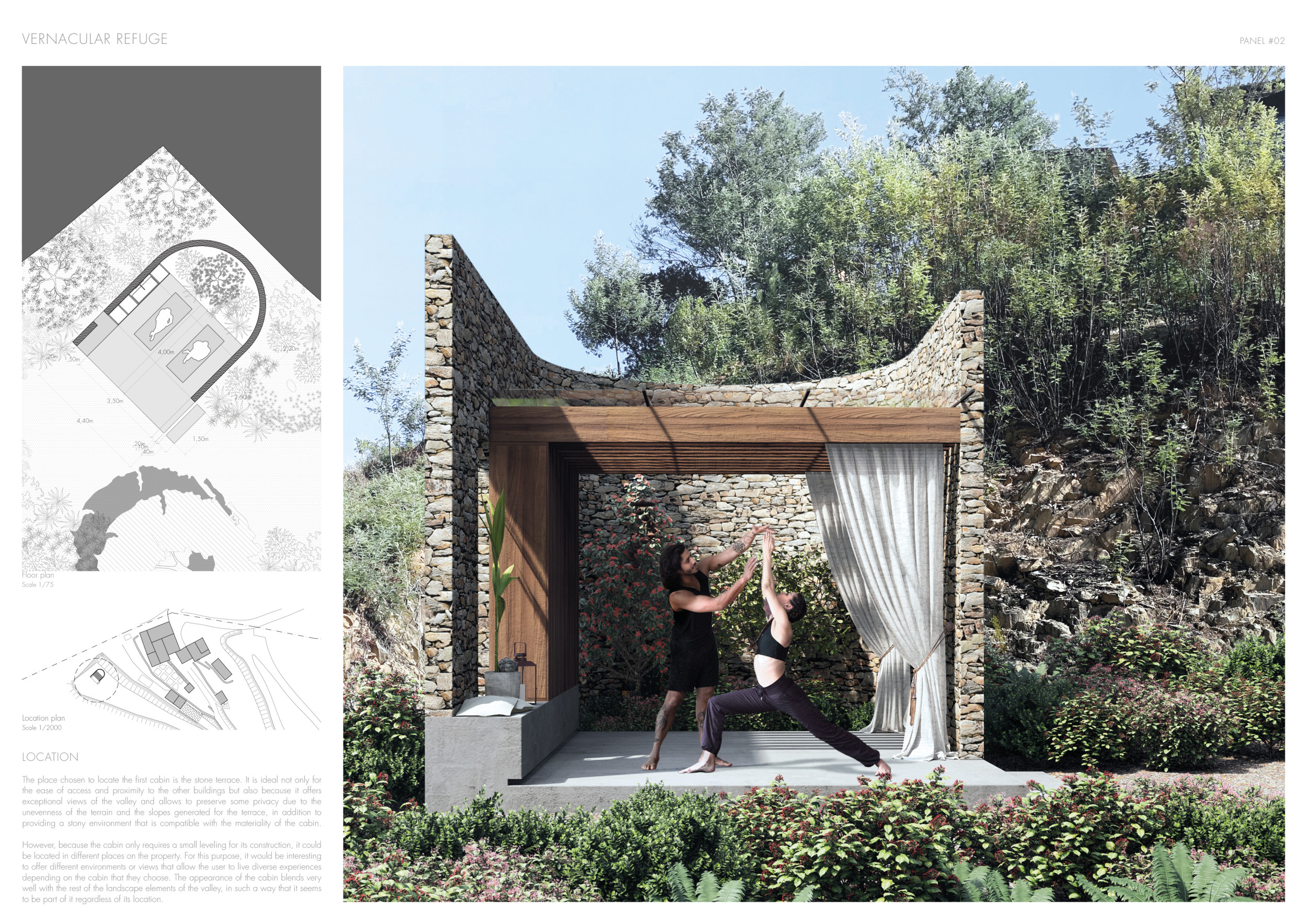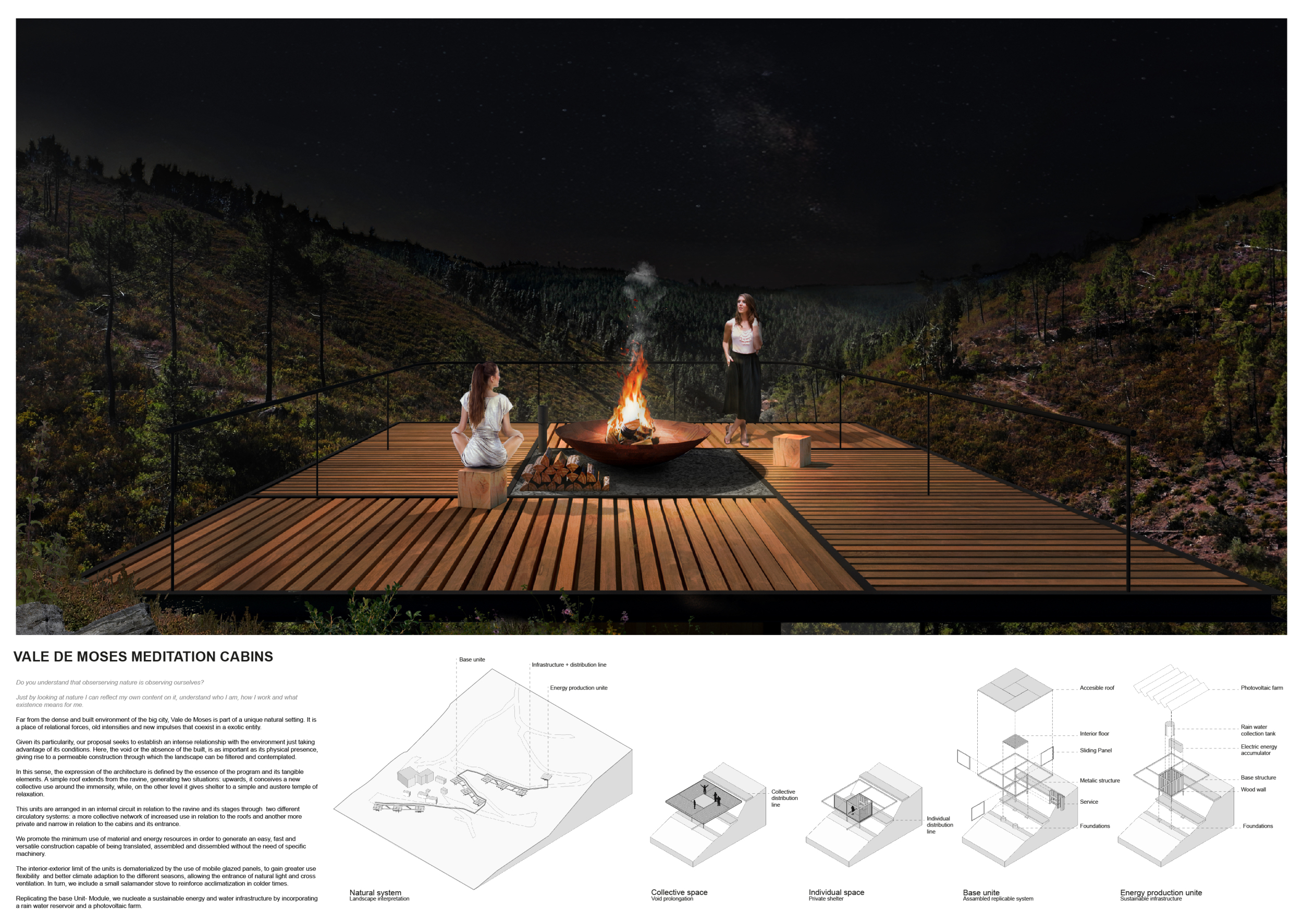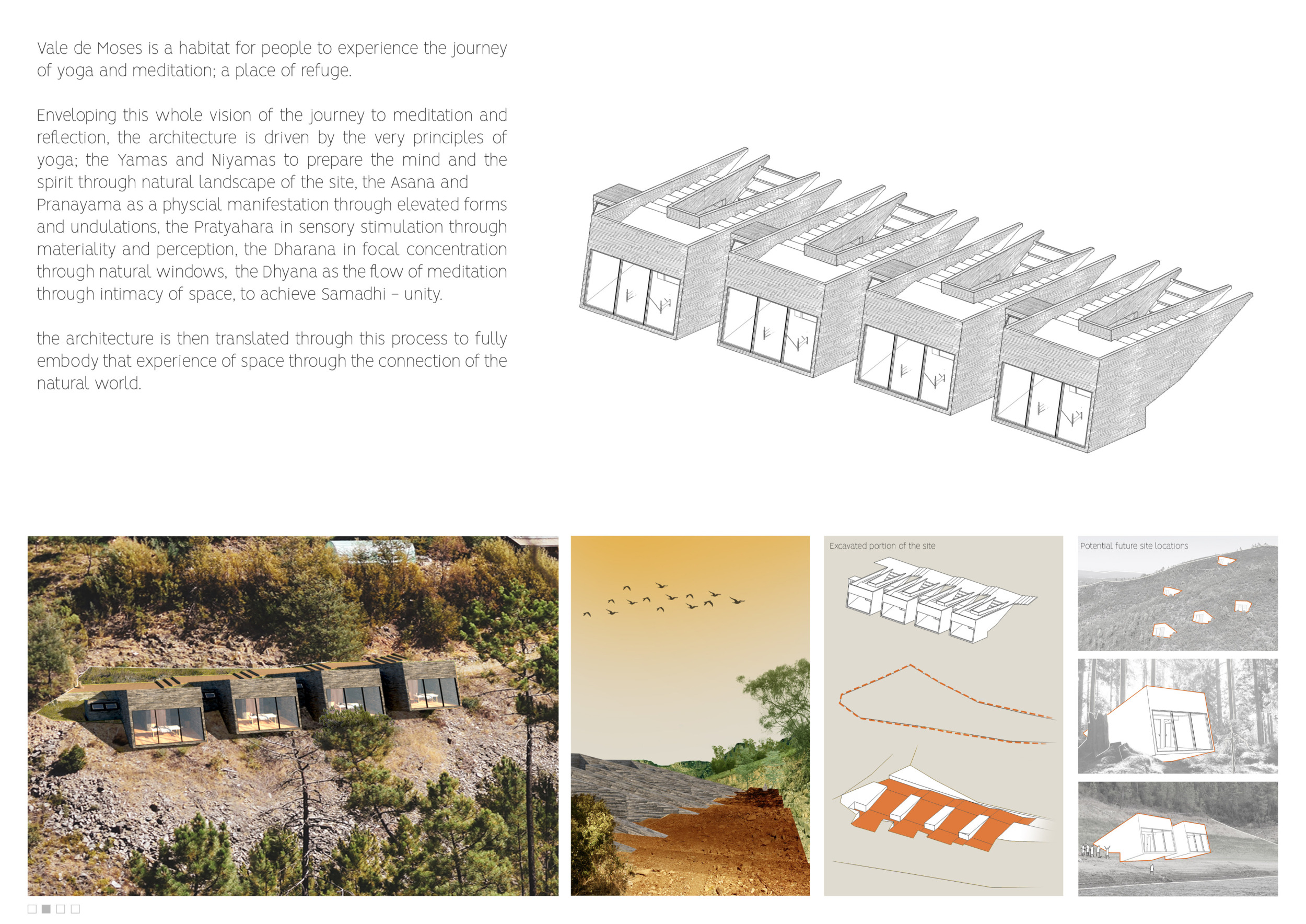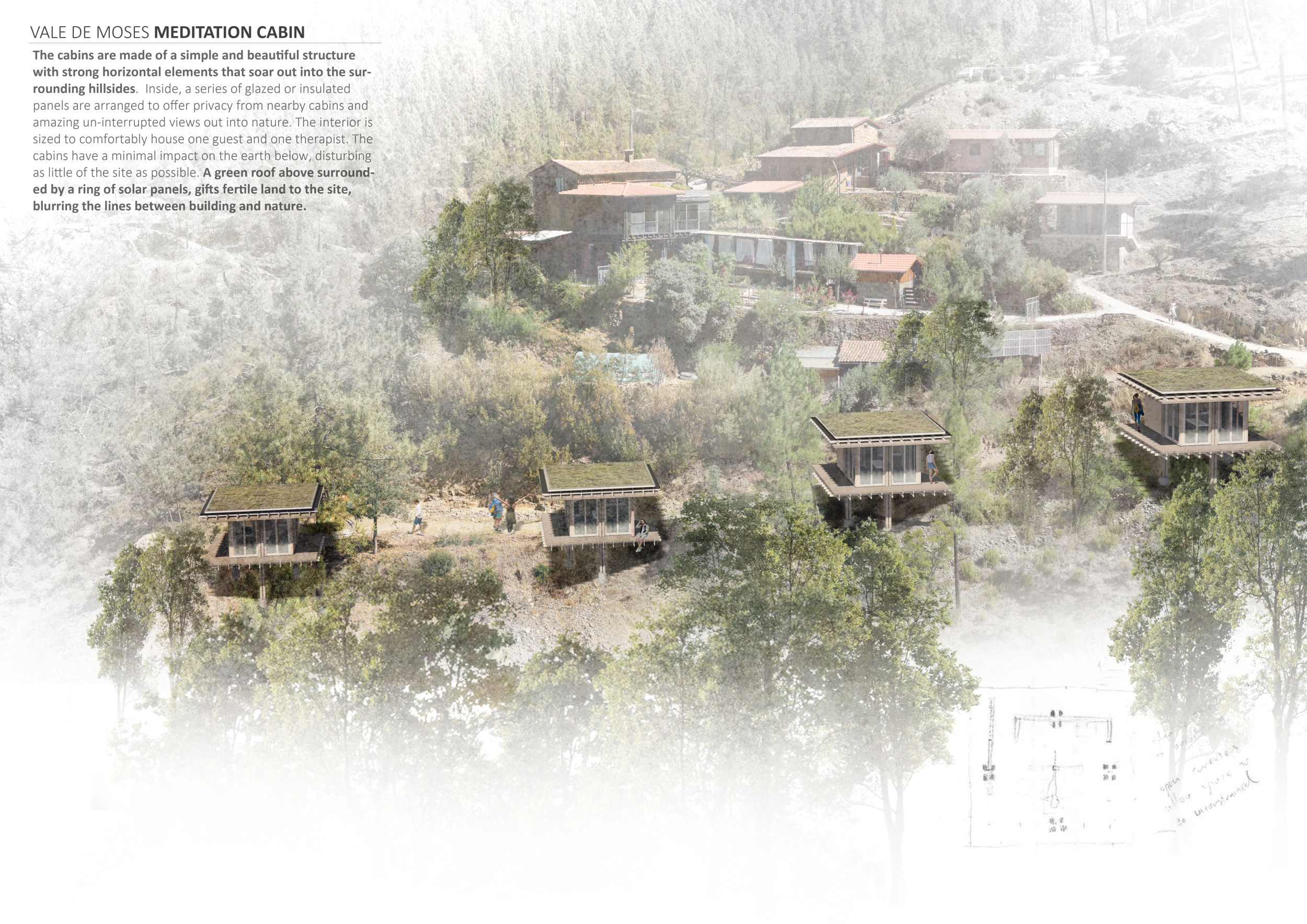 The infrastructure of the remote site consists of four stone farmhouse cottages, once abandoned, but then carefully repurposed and given new life. The Vale De Moses Meditation Cabins challenge is the first in a series of competitions in partnership with Vale de Moses, seeking design ideas for the construction of additional structures for meditation, yoga, and other activities on the site.