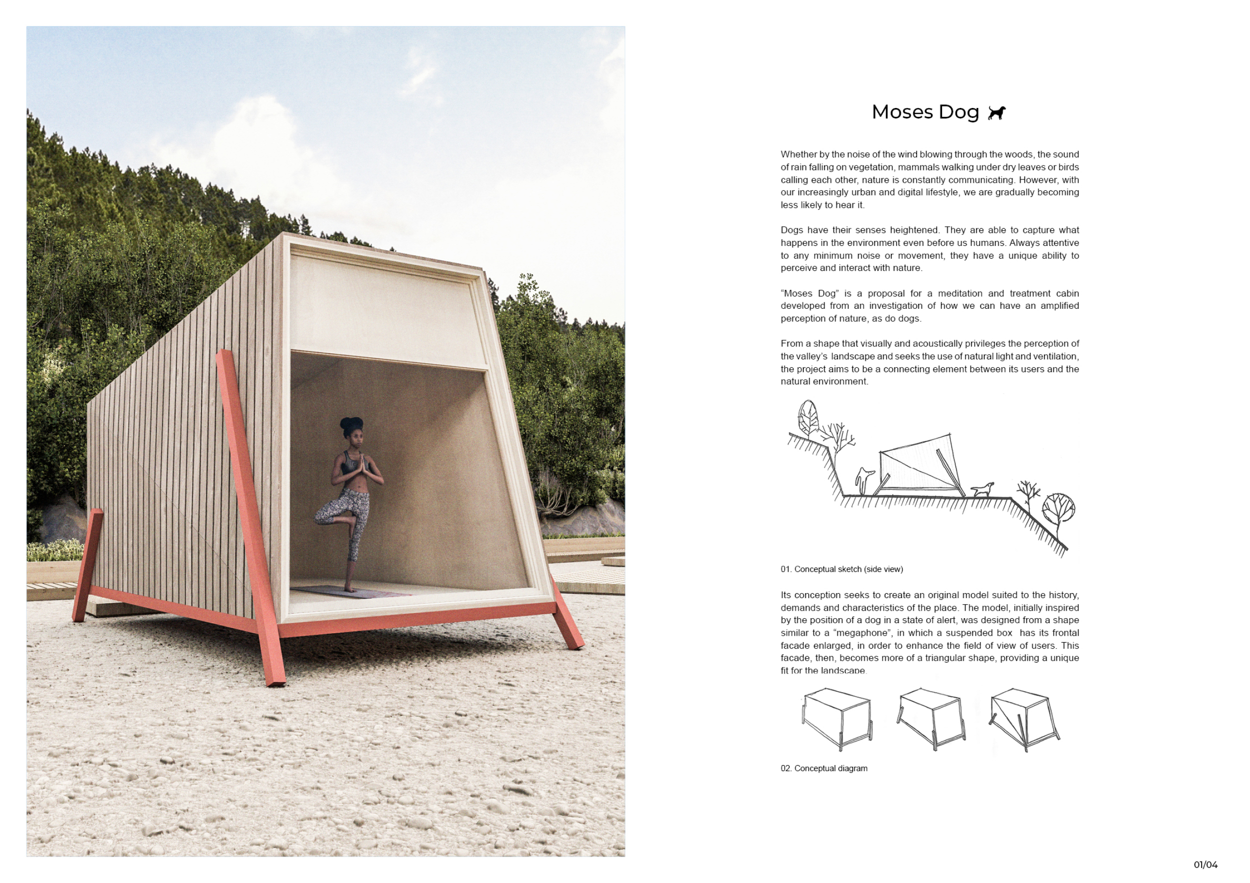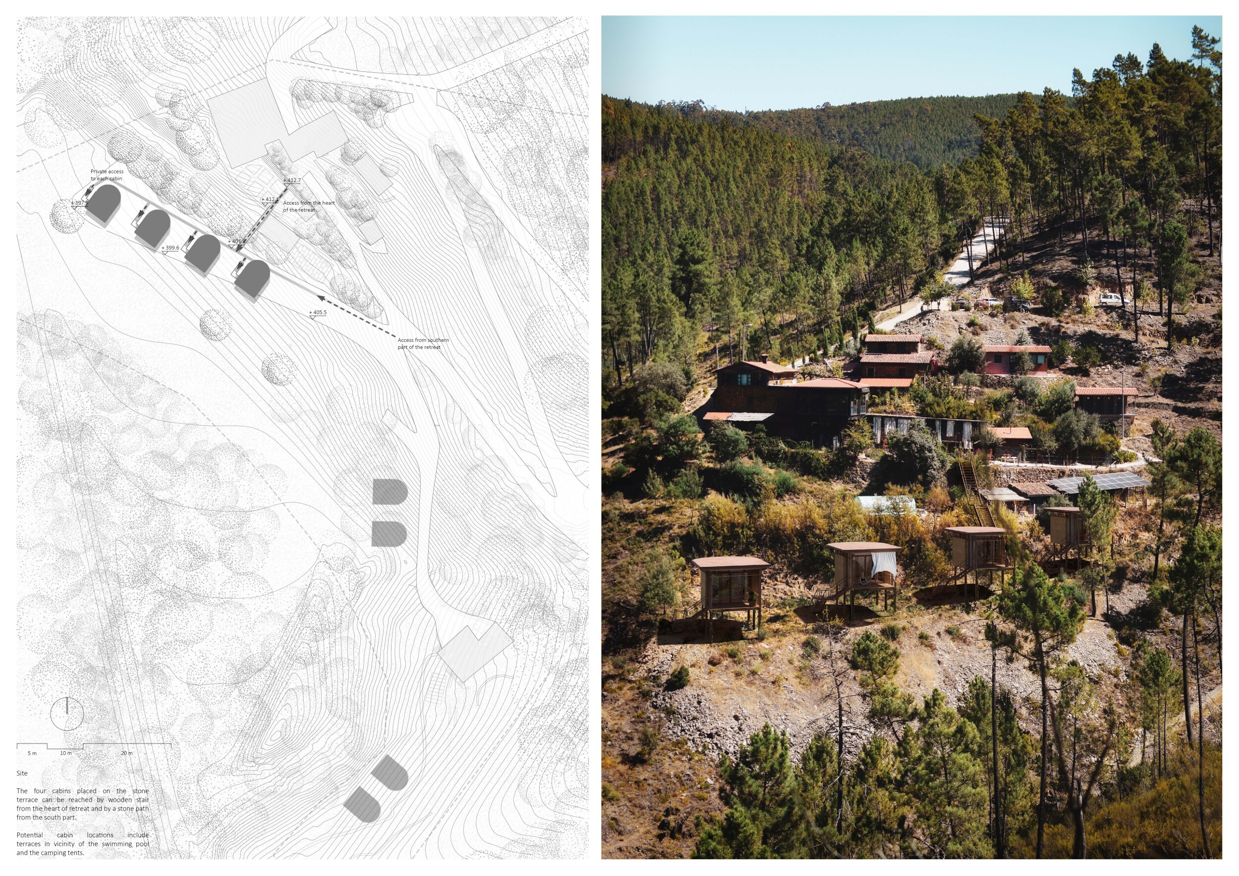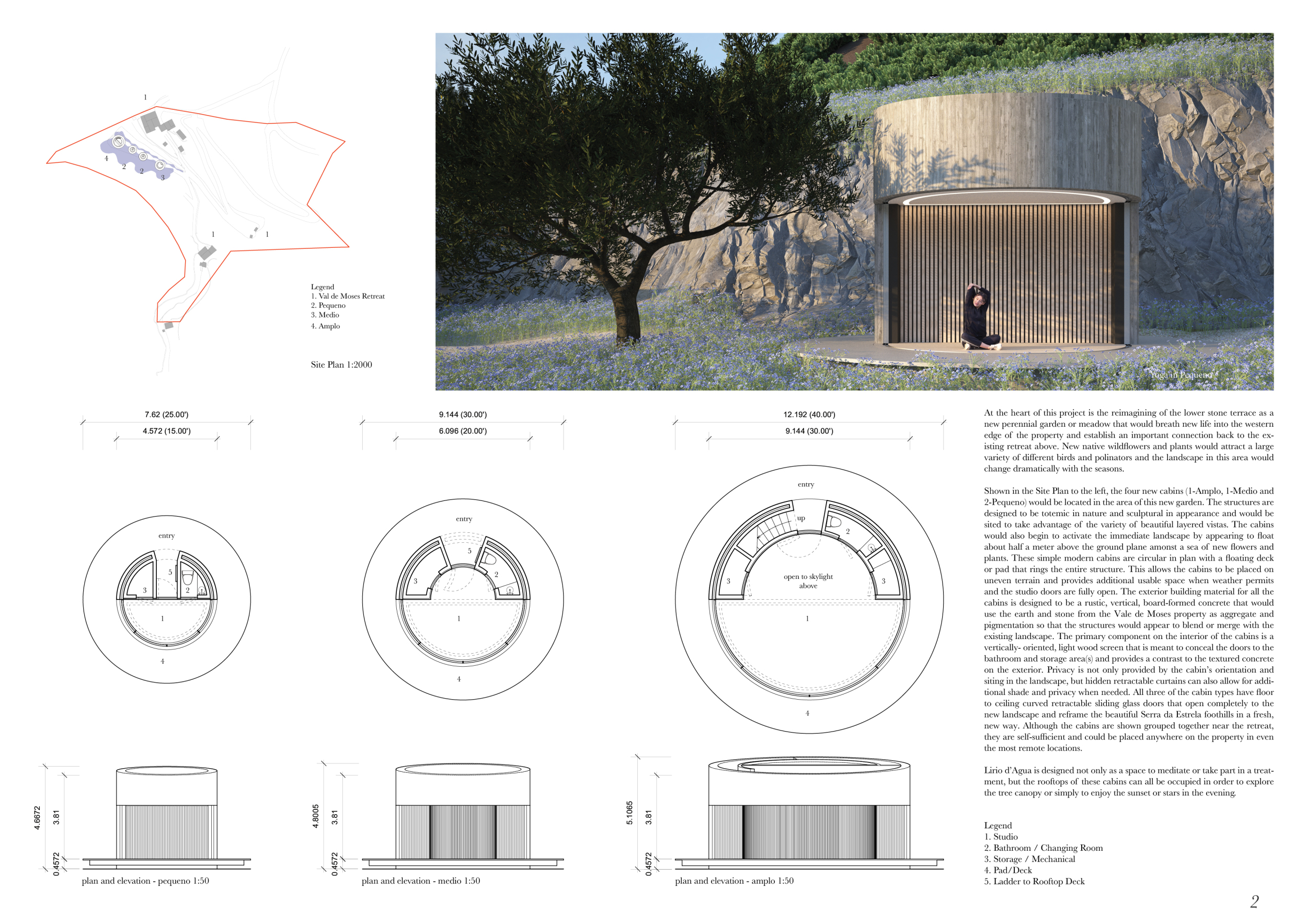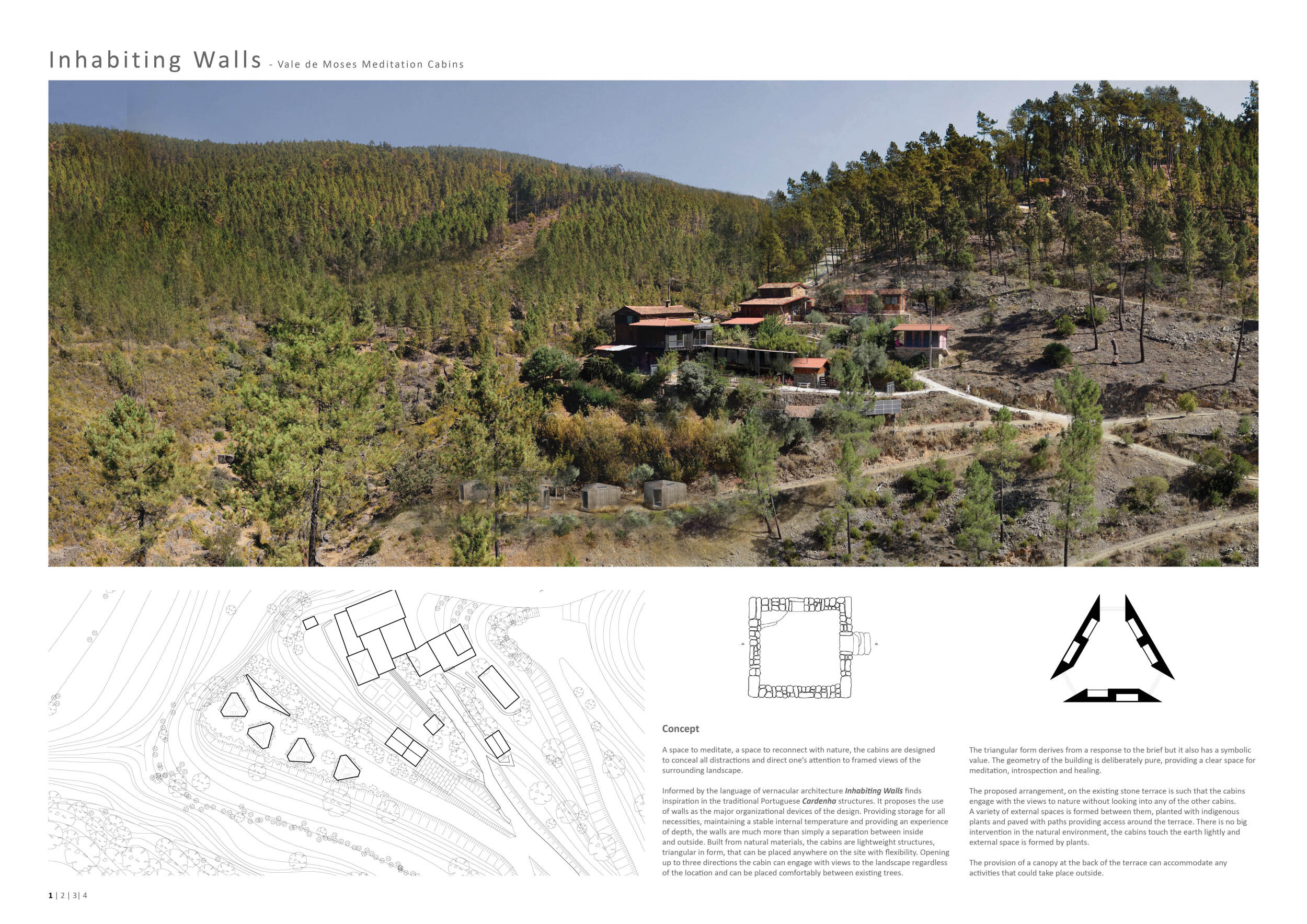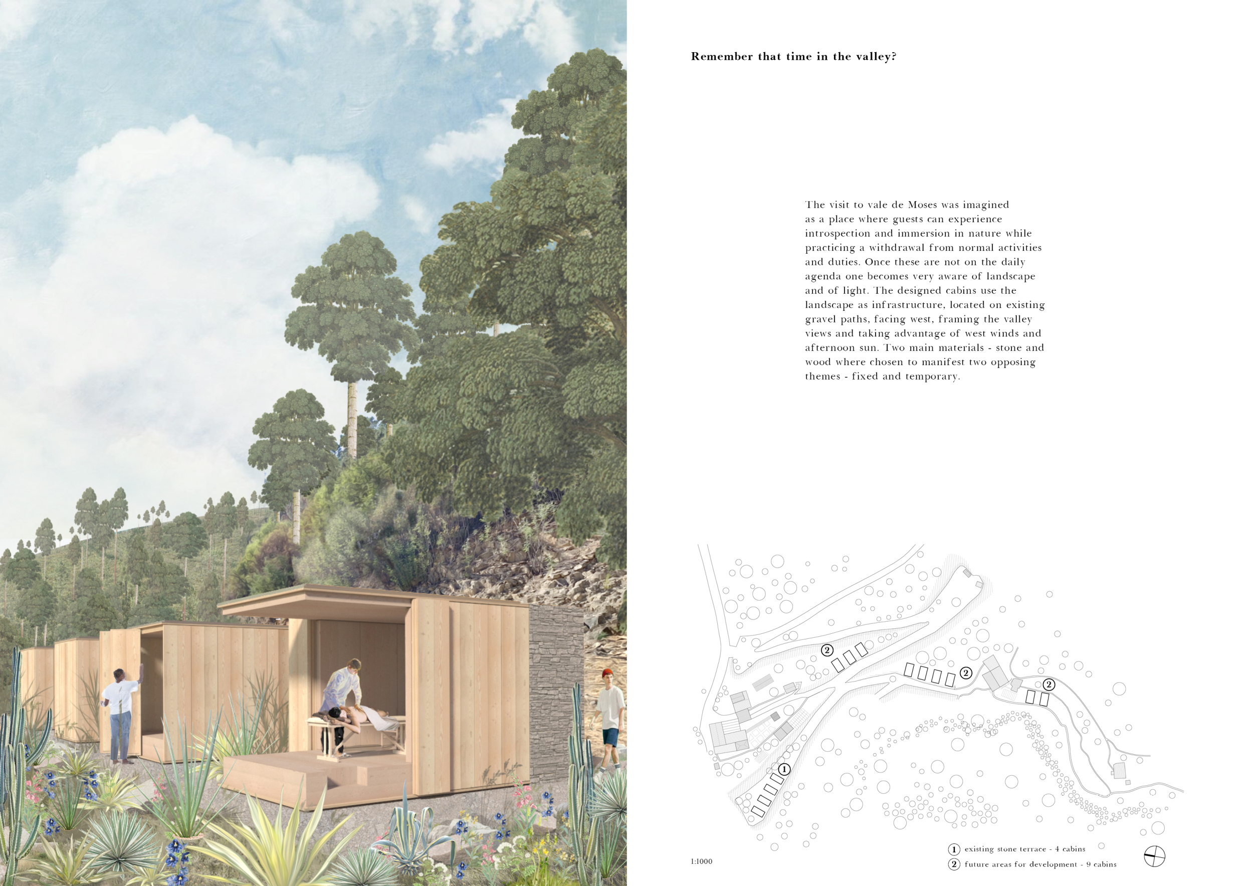 The infrastructure of the remote site consists of four stone farmhouse cottages, once abandoned, but then carefully repurposed and given new life. The Vale De Moses Meditation Cabins challenge is the first in a series of competitions in partnership with Vale de Moses, seeking design ideas for the construction of additional structures for meditation, yoga, and other activities on the site.