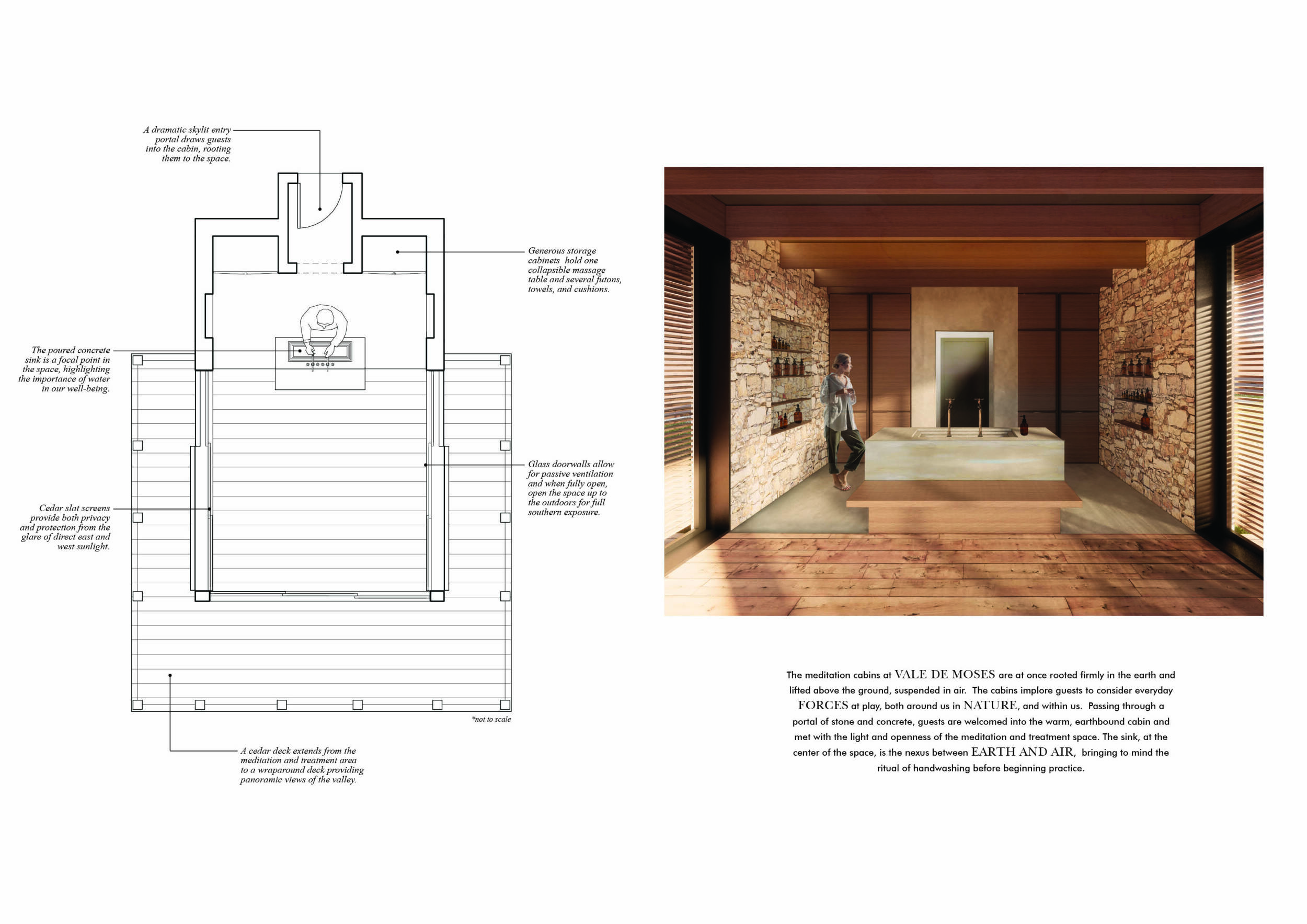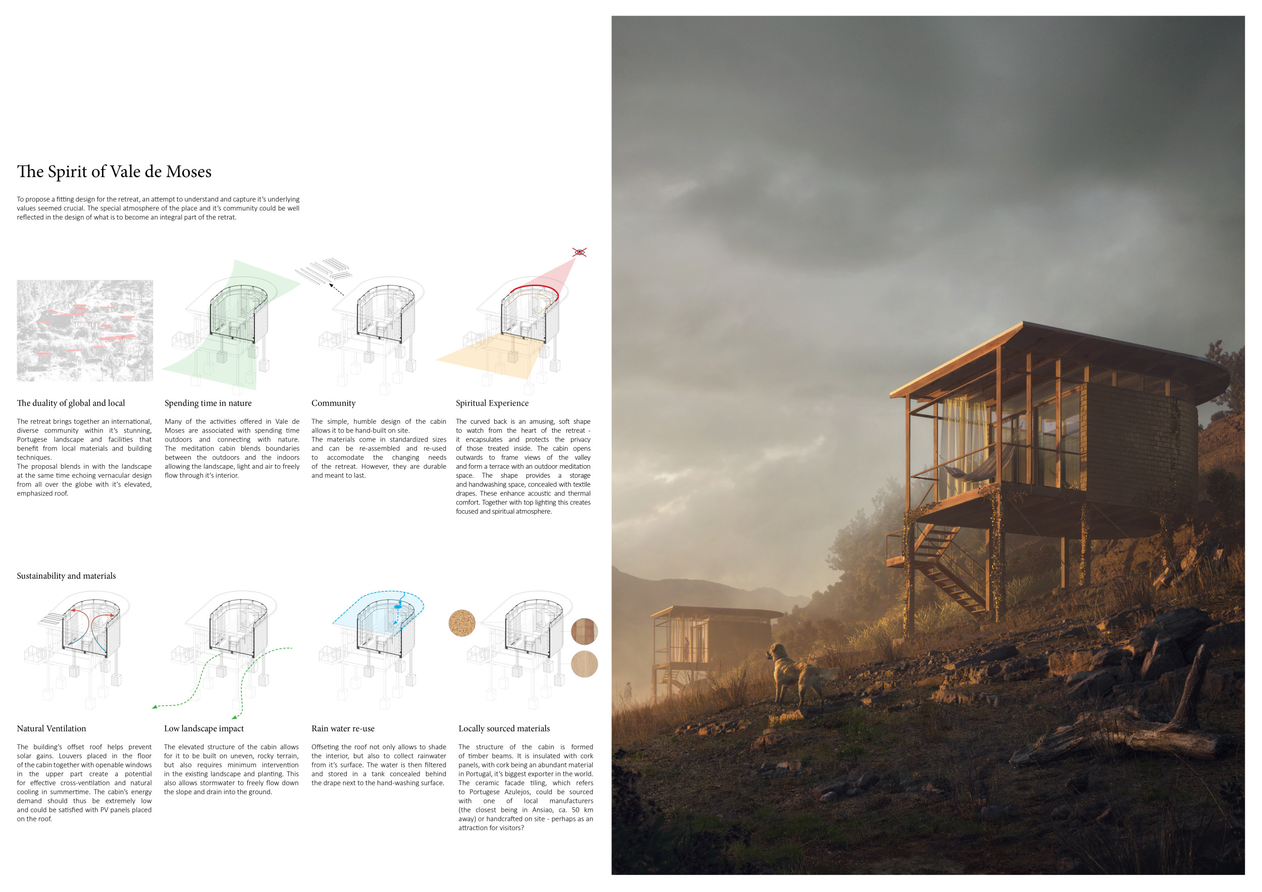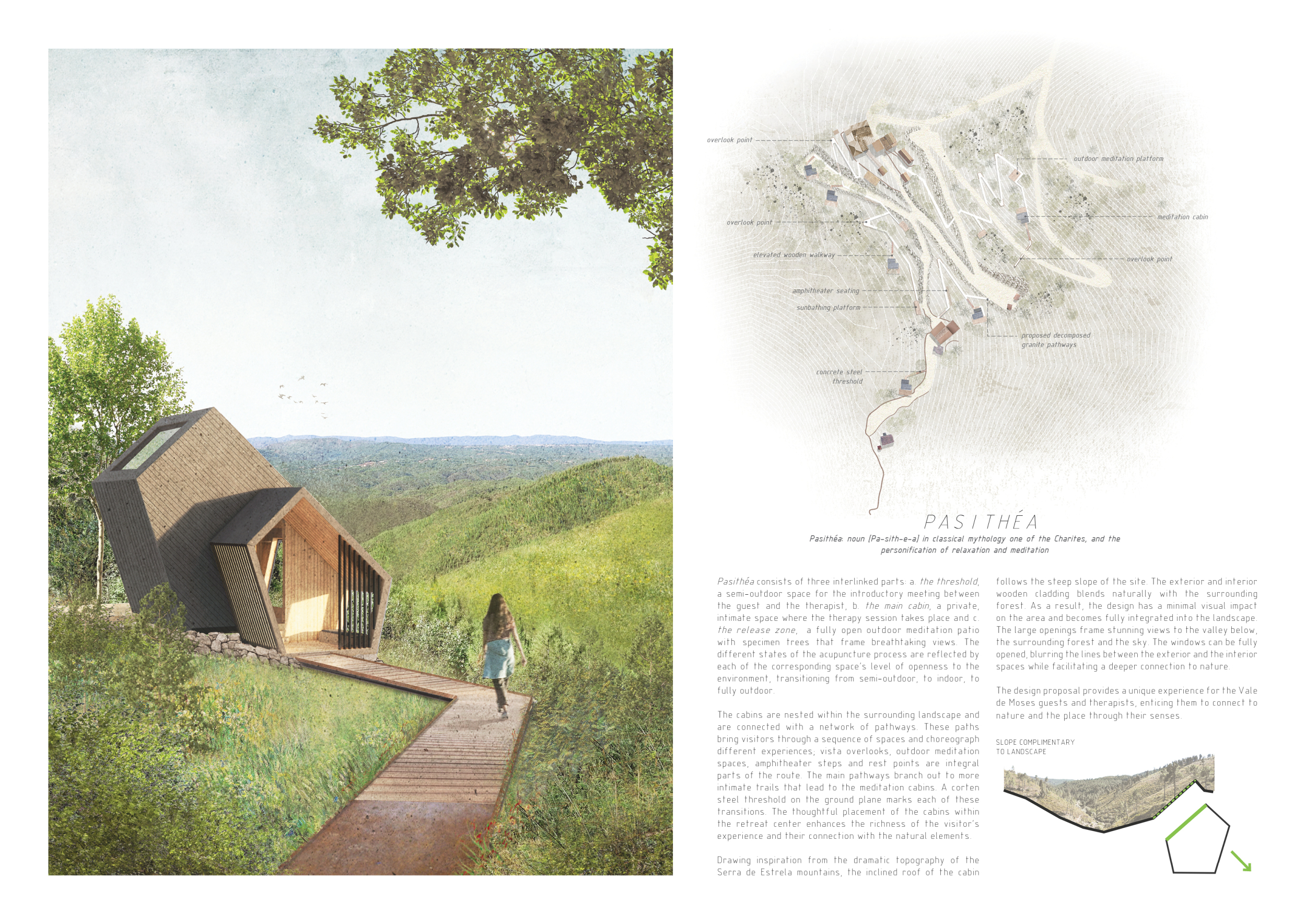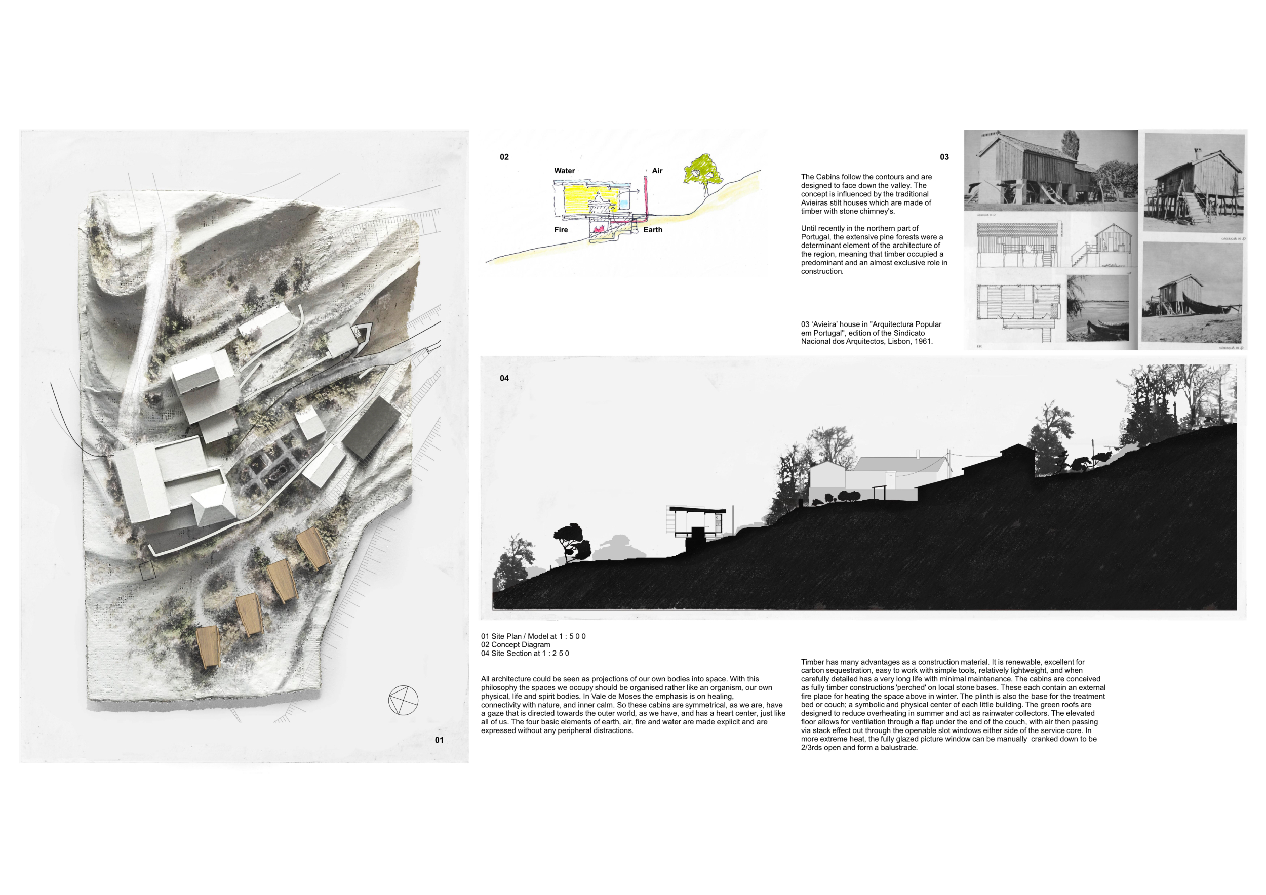 The infrastructure of the remote site consists of four stone farmhouse cottages, once abandoned, but then carefully repurposed and given new life. The Vale De Moses Meditation Cabins challenge is the first in a series of competitions in partnership with Vale de Moses, seeking design ideas for the construction of additional structures for meditation, yoga, and other activities on the site.